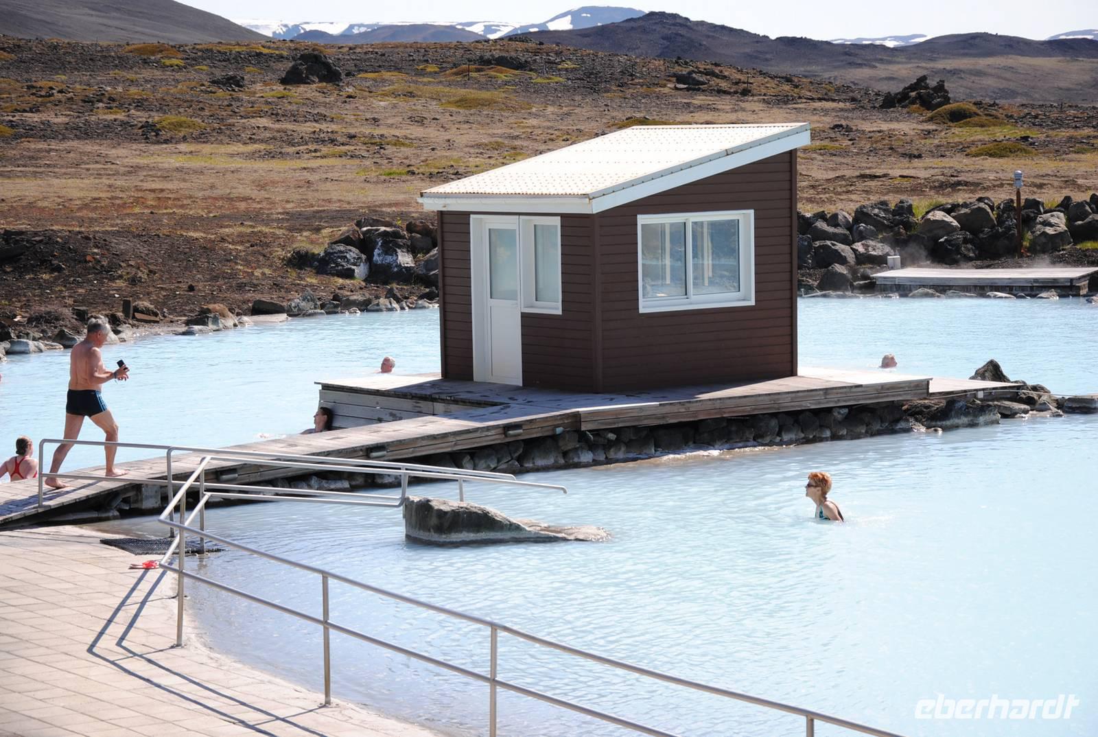 Aber nun heißt es Badezeit auf unserer heutigen Etappe. Entspannung in den Badelandschaften Jardbödin. In den heißen Quellen mit dem milchig blauen Wasser war ein tolles Erlebnis in mitten der reizvollen Landschaft.