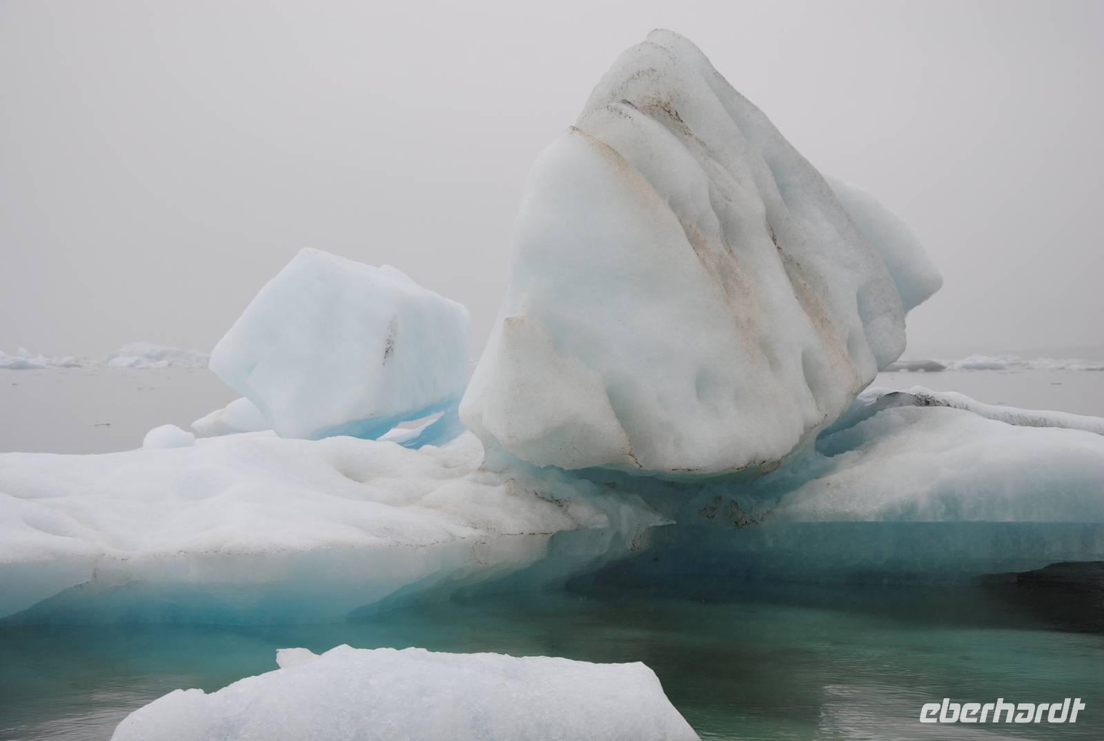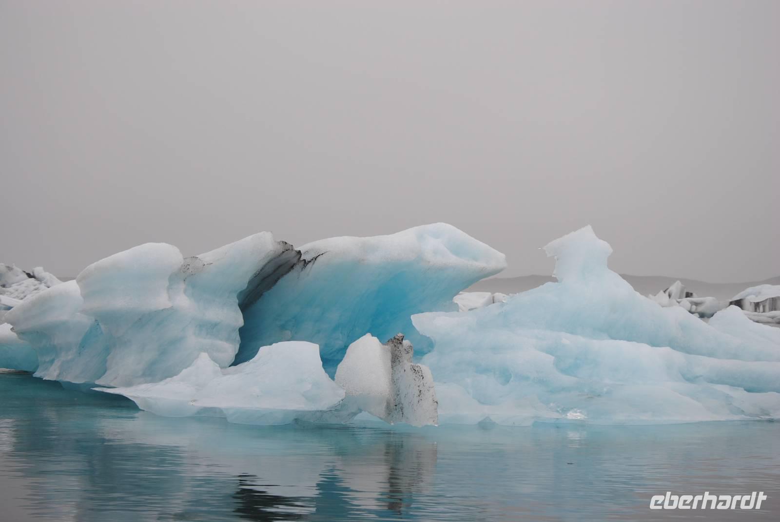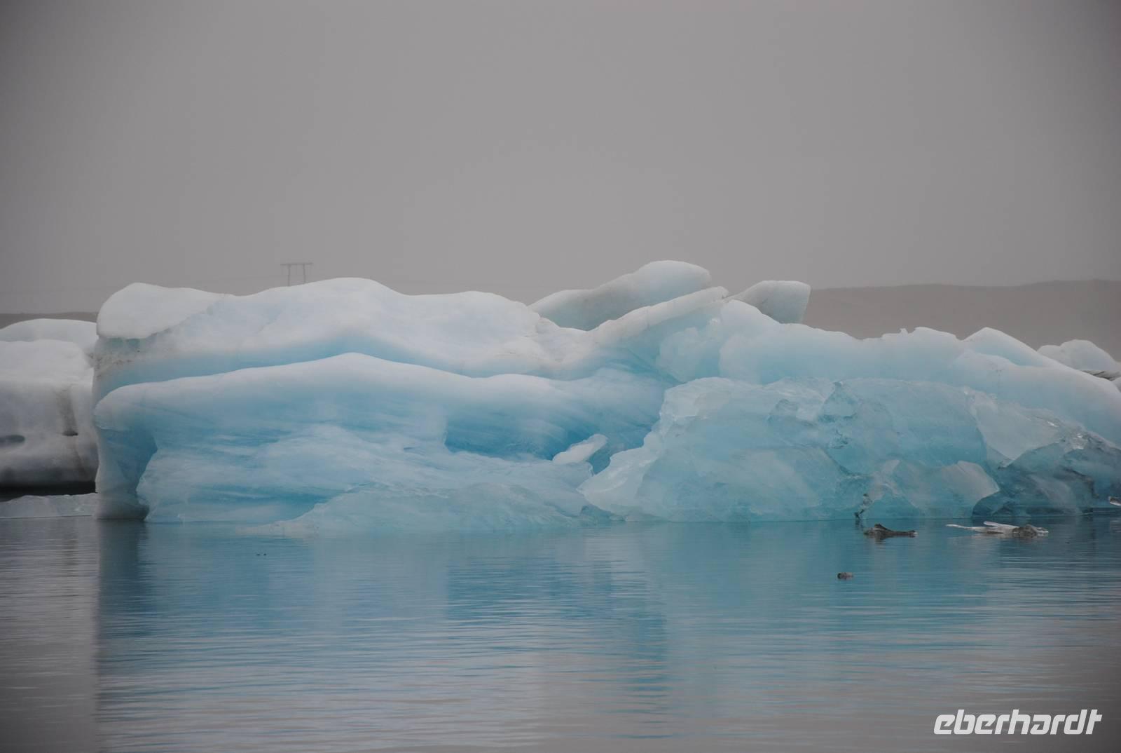 Eisberge, die sich vom Gletscher getrennt haben, trieben dennoch glitzernd blau auf dem Wasser. Hier unternahmen wir eine eindrucksvolle Fahrt mit einem Amphibien-Fahrzeug zwischen den mächtigen Eisbergen und erfuhren viel Wissenswertes über die Lagune. Insbesondere auch wie das wunderschöne Gletscherblau entsteht. Vereinzelnd konnten wir auch Robben entdecken.