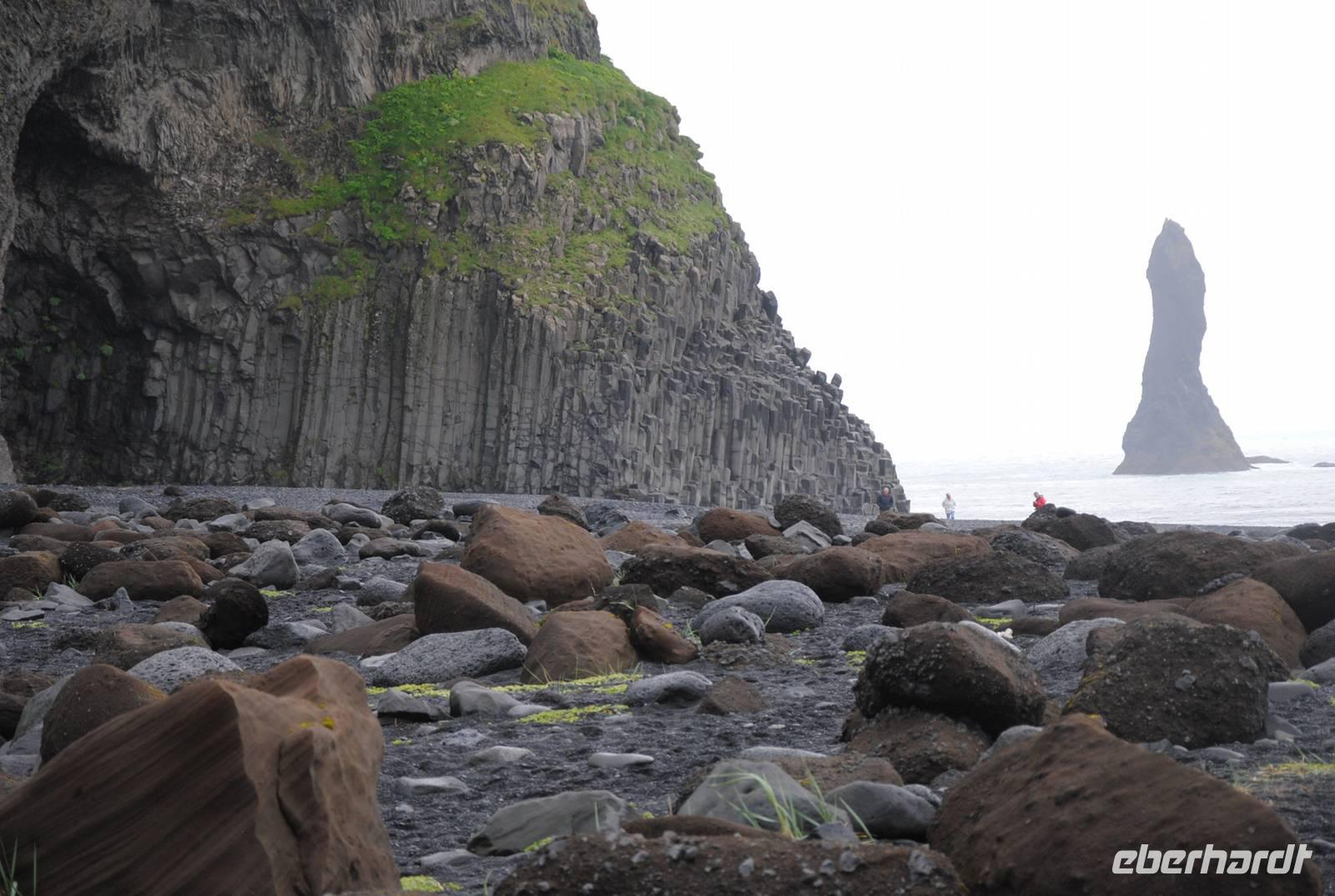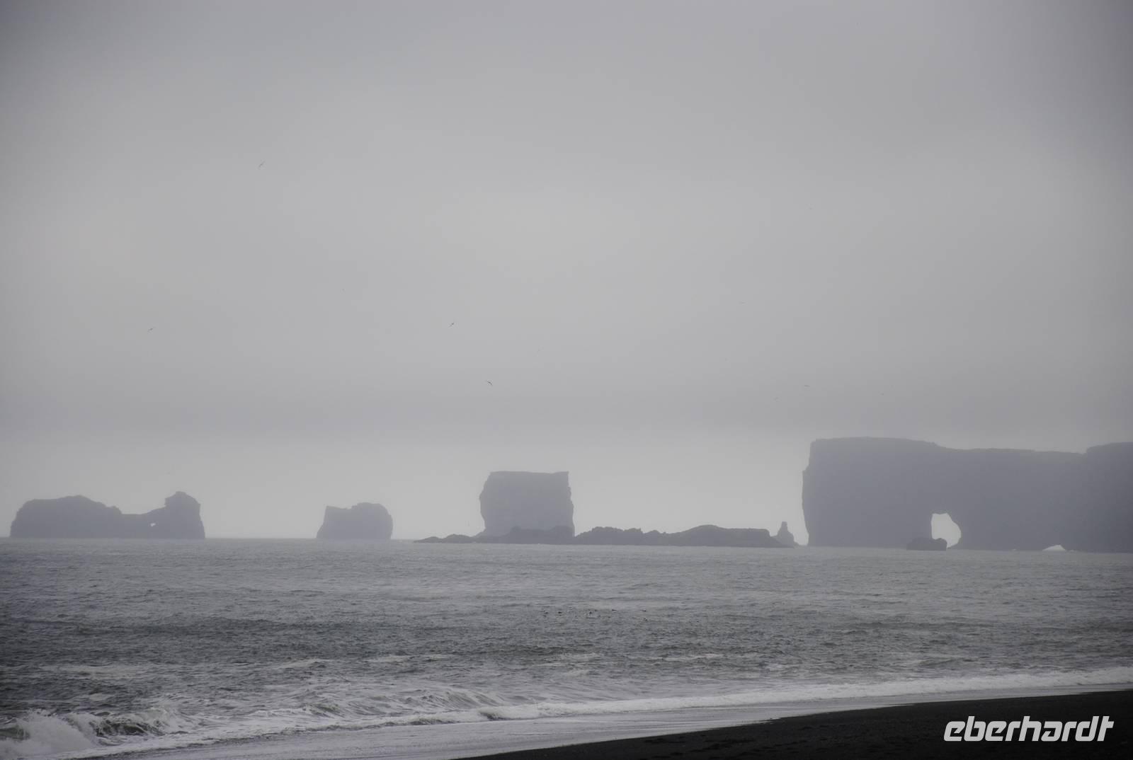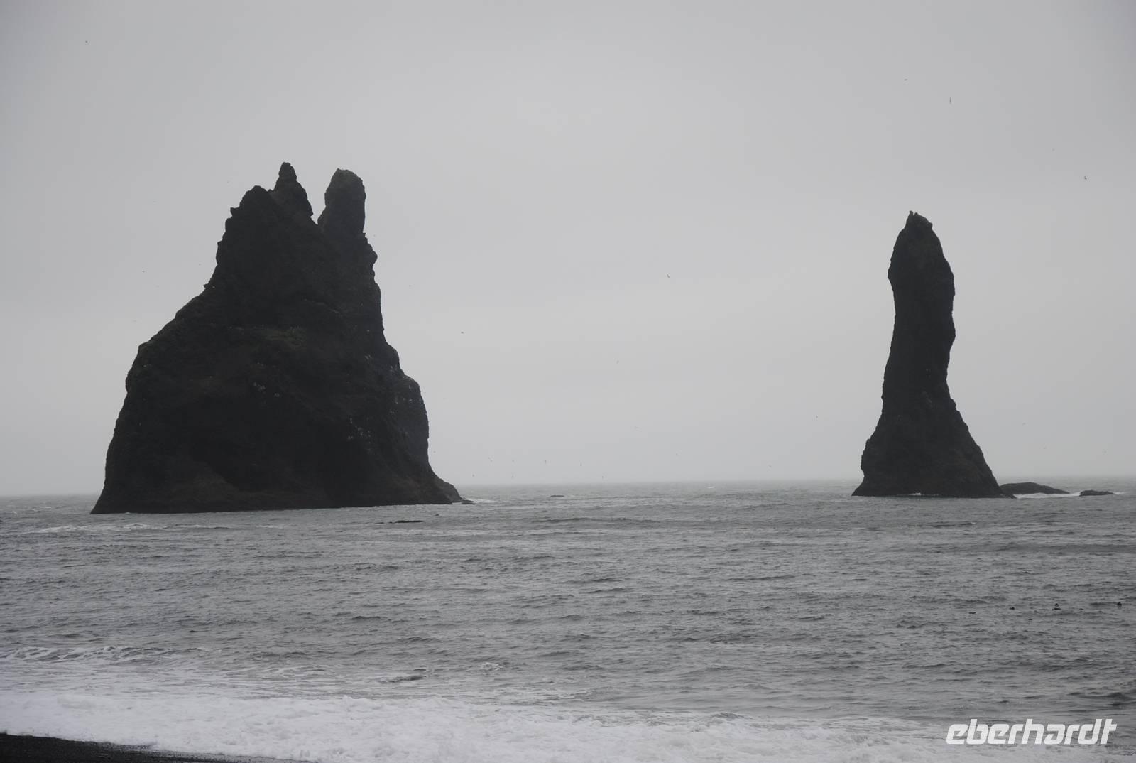Zeitig machten wir uns heute auf und unternahmen zunächst einen Spaziergang am feinsandigen, schwarzen Strand von Vik, wo in der Ferne die markanten Felsnadeln Reynisdrangar aus dem Meer ragte. Der Strand bestand aus schwarzer Lava und das Meer an dieser Stelle ist häufig wild und aufgewühlt. So auch am heutigen Tag. Jeder von uns bestätigte das Urteil des „Island-Magazins", dass dieser Stand wirklich zu den 10 schönsten Stränden der Welt zählt