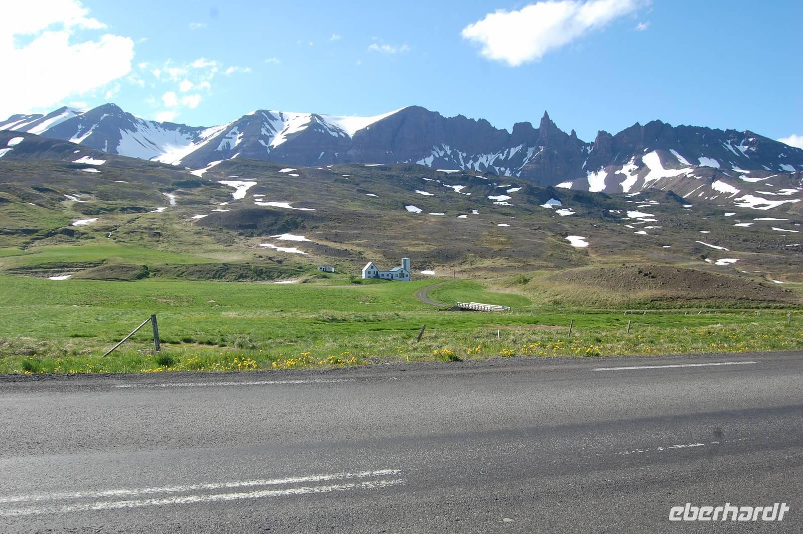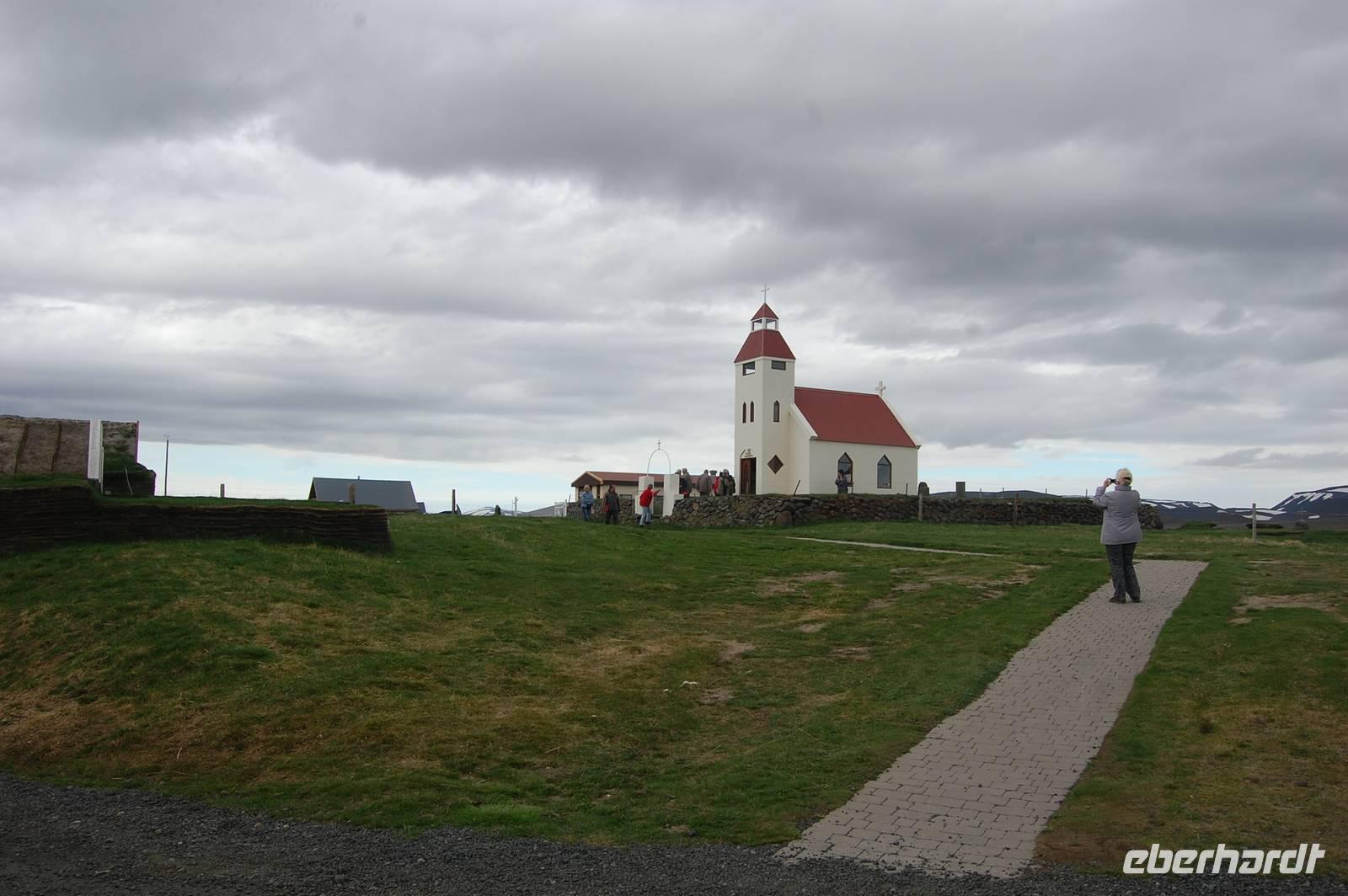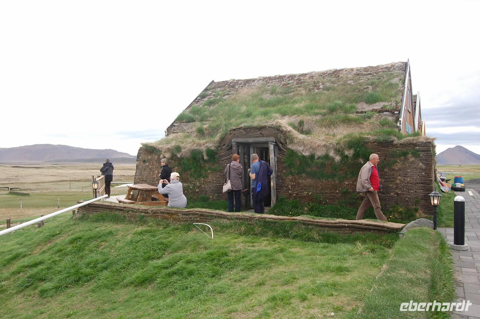 Auf unserer Weiterreise in süd-östliche Richtung verlassen wir die Straße N1, um über eine Schotterstraße zum höchstgelegenen Bauernhof Islands zu gelangen. Die hübschen Torfhäuser und die kleine Kirche bieten zahlreiche Fotomotive. In der kleinen Wirtschaft kann man Kaffee und „Liebeshoden", ein muffin-ähnliches Fettgebäck, kaufen.