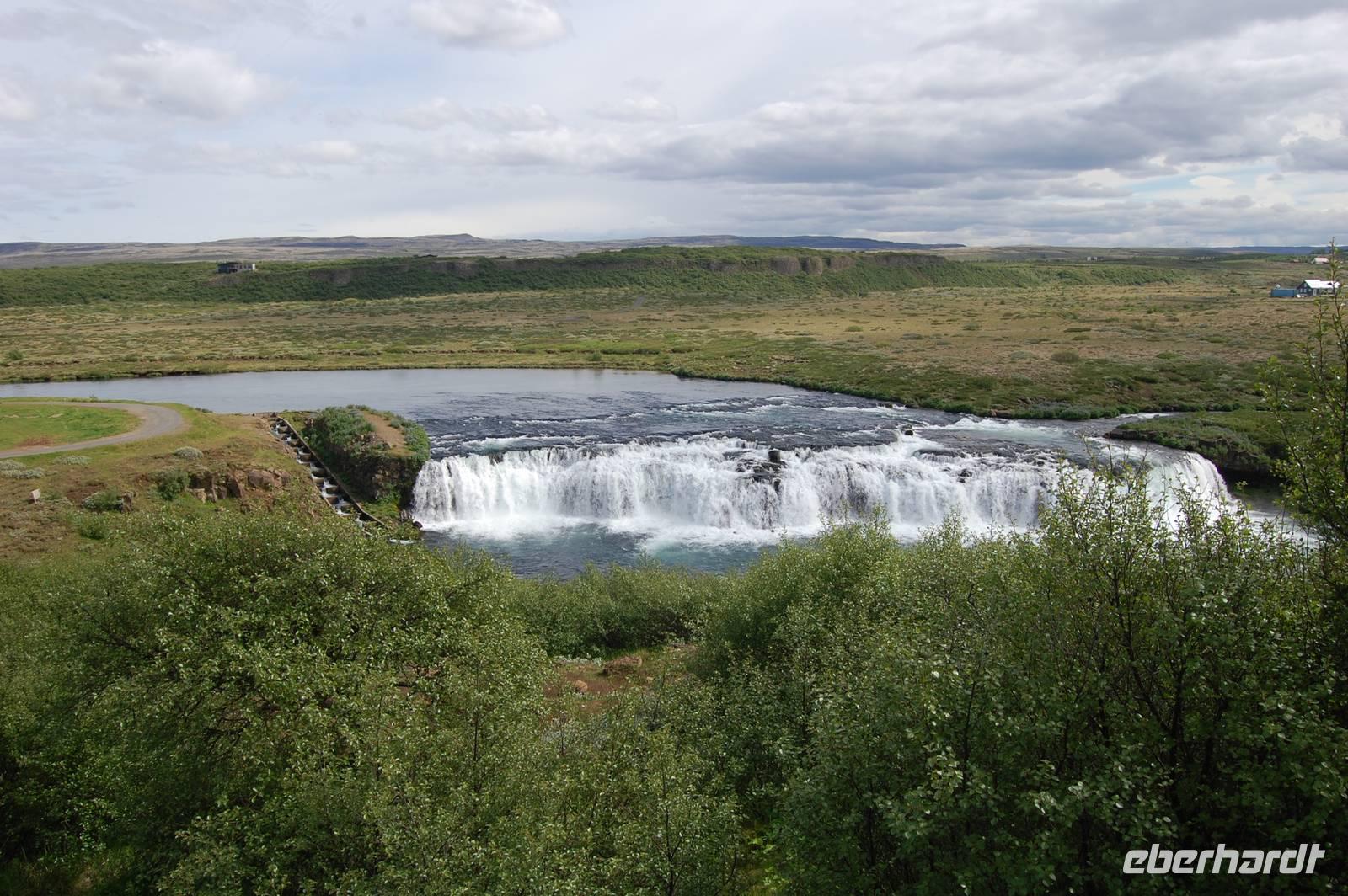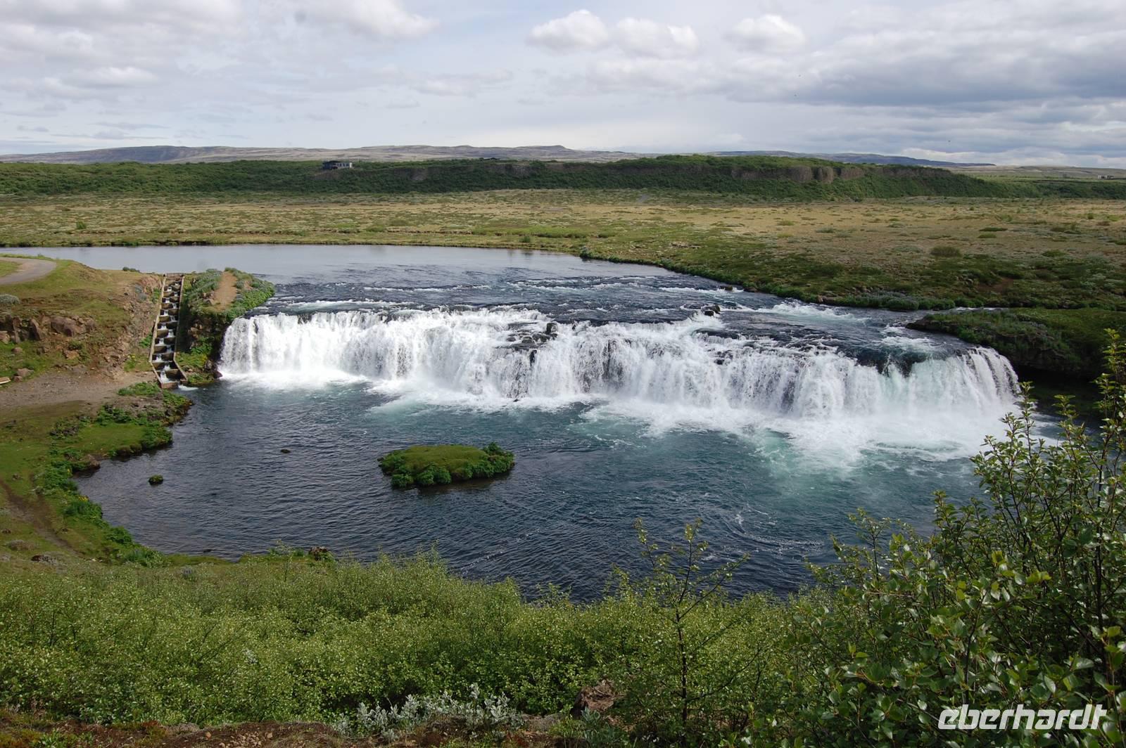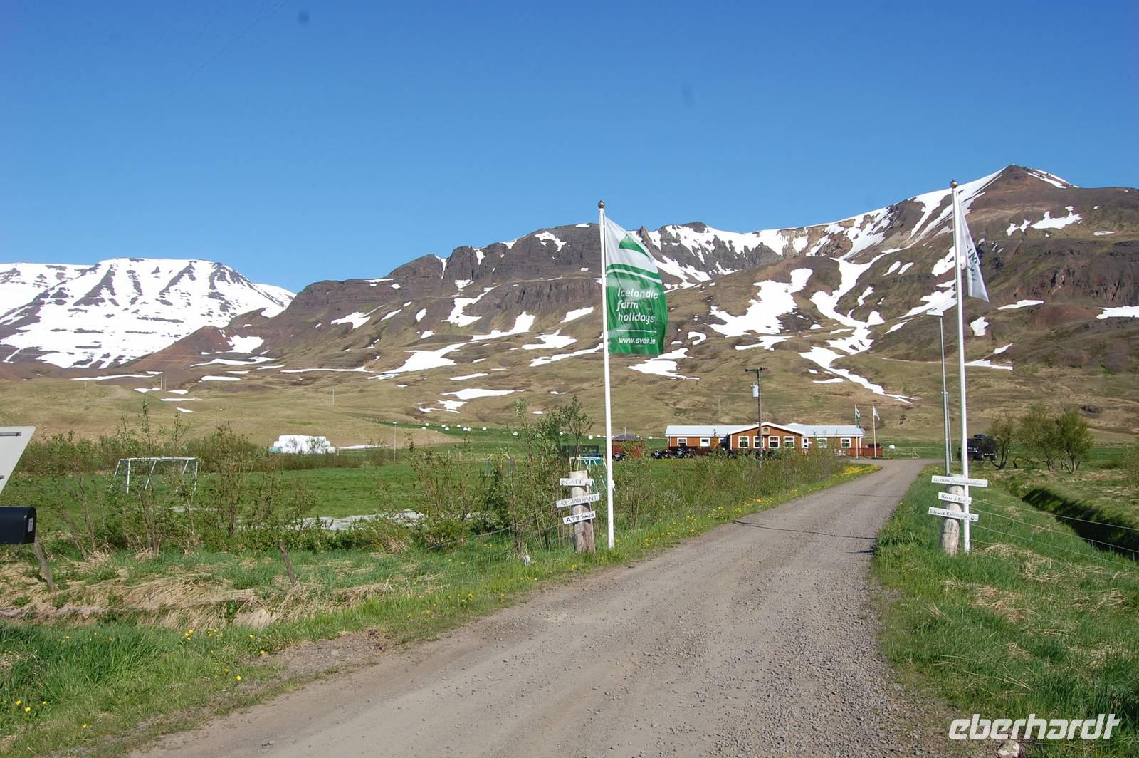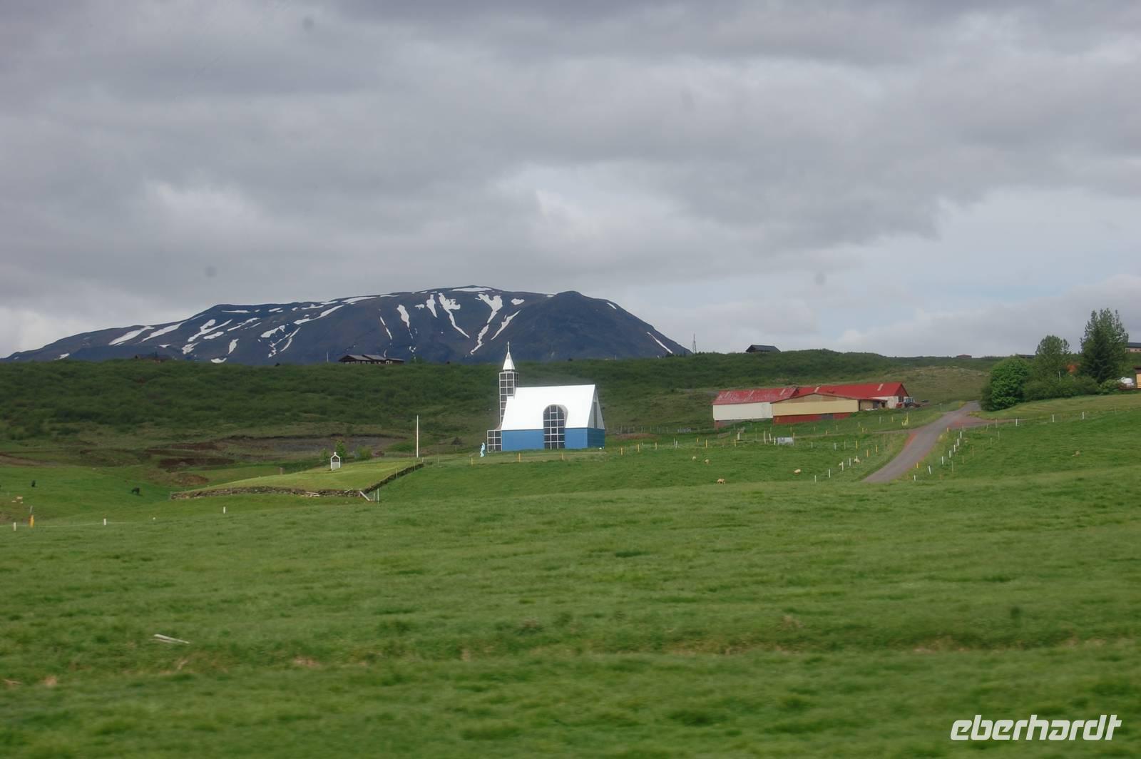 Auf unserer Weiterreise in süd-östliche Richtung verlassen wir die Straße N1, um über eine Schotterstraße zum höchstgelegenen Bauernhof Islands zu gelangen. Die hübschen Torfhäuser und die kleine Kirche bieten zahlreiche Fotomotive. In der kleinen Wirtschaft kann man Kaffee und „Liebeshoden", ein muffin-ähnliches Fettgebäck, kaufen.