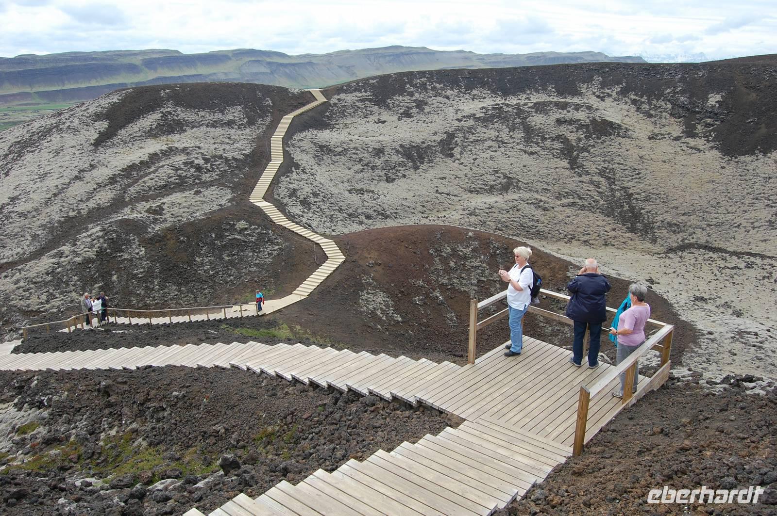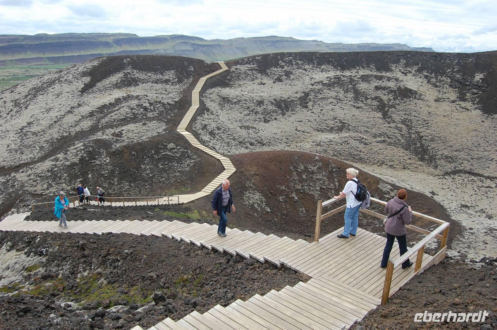 Wir schauen uns die Pseudokrater an, die dann entstehen, wenn heiße Lava über Moorgebiete fließt.