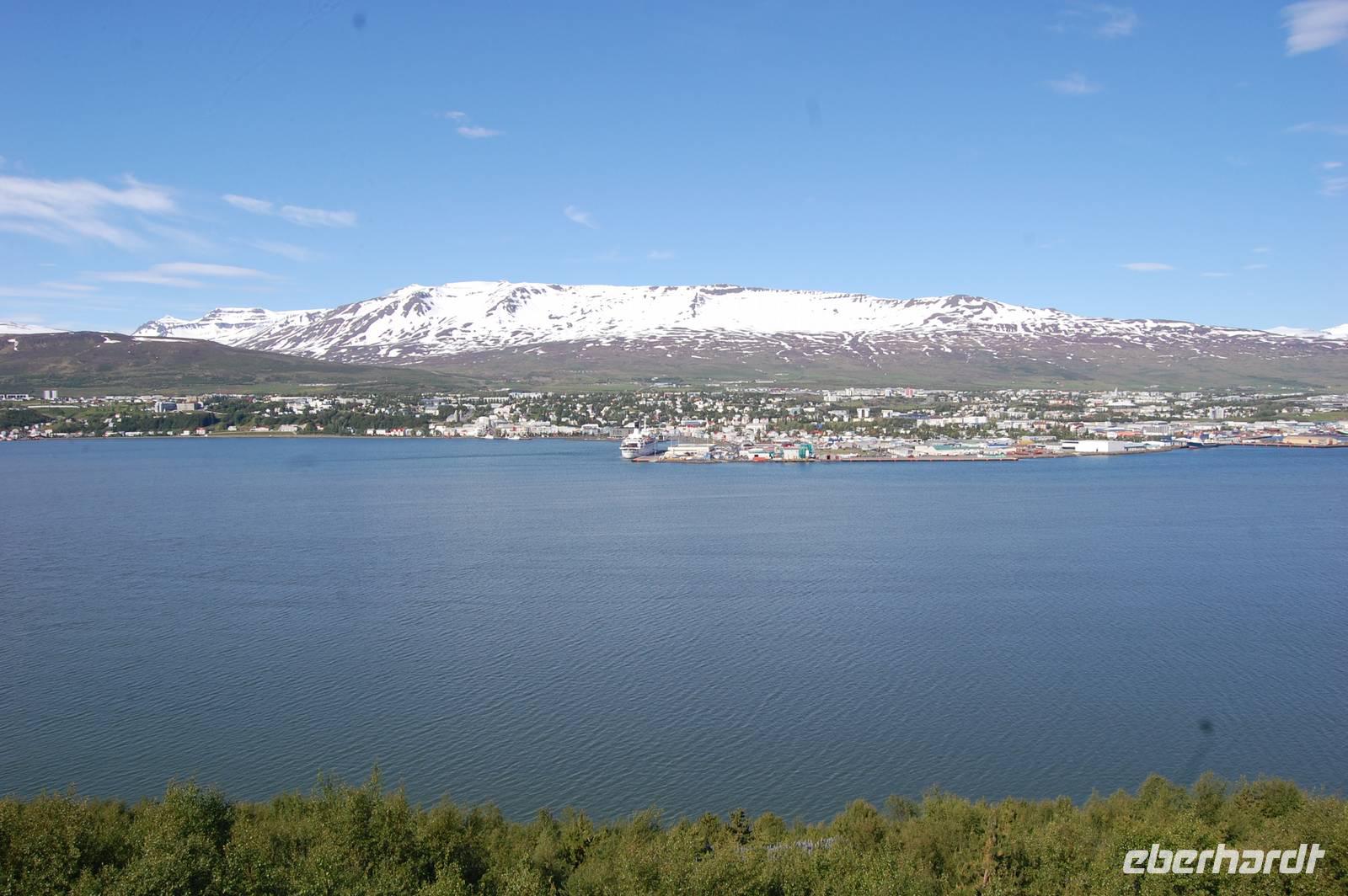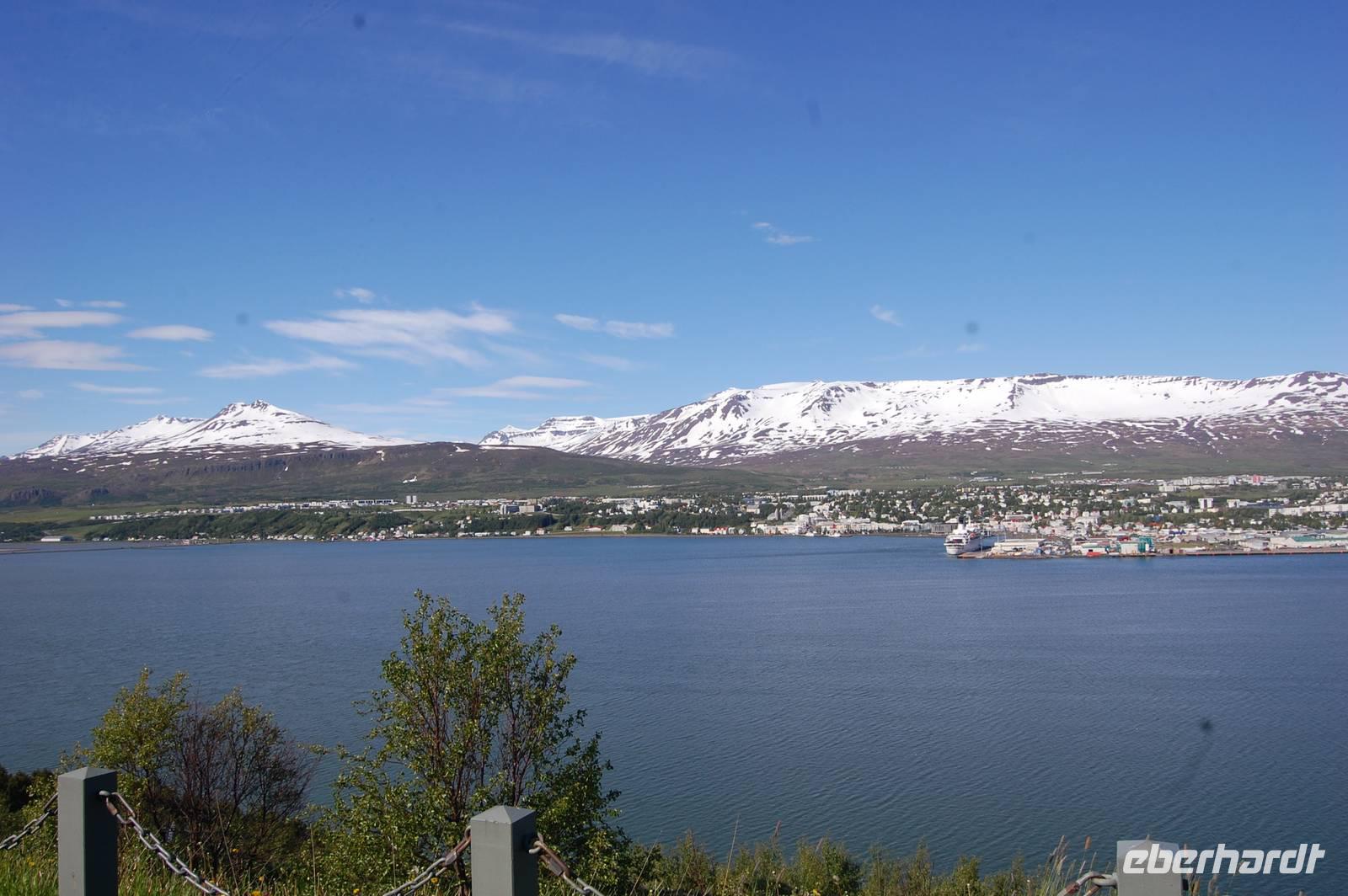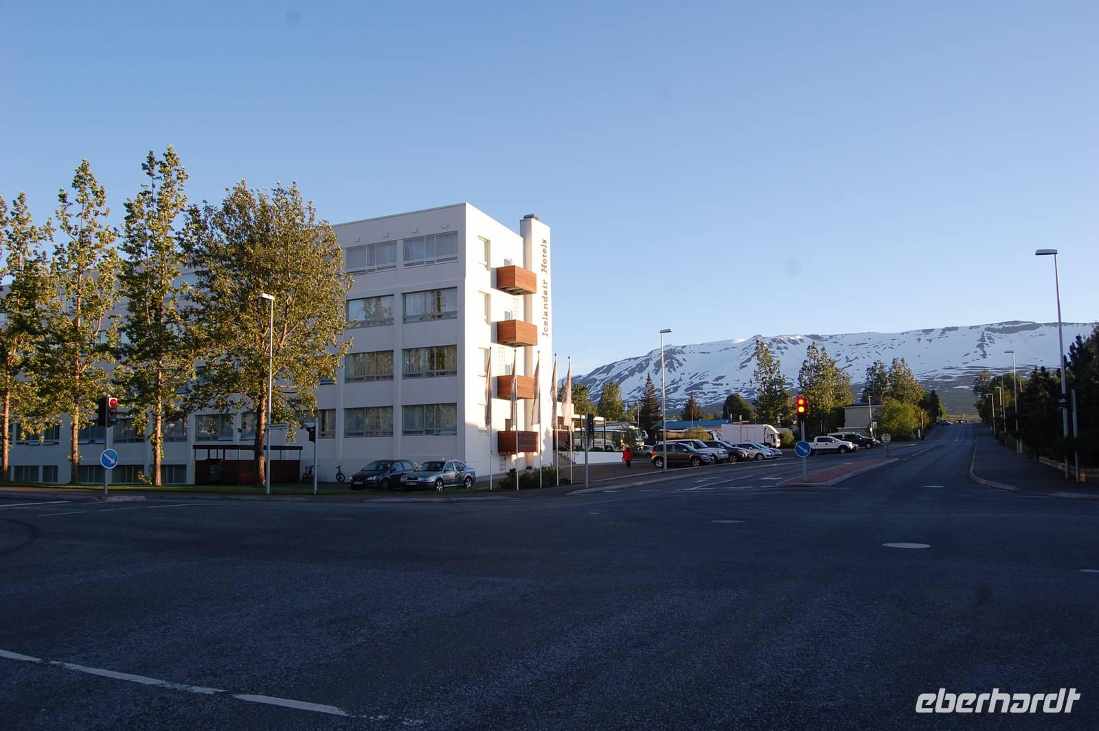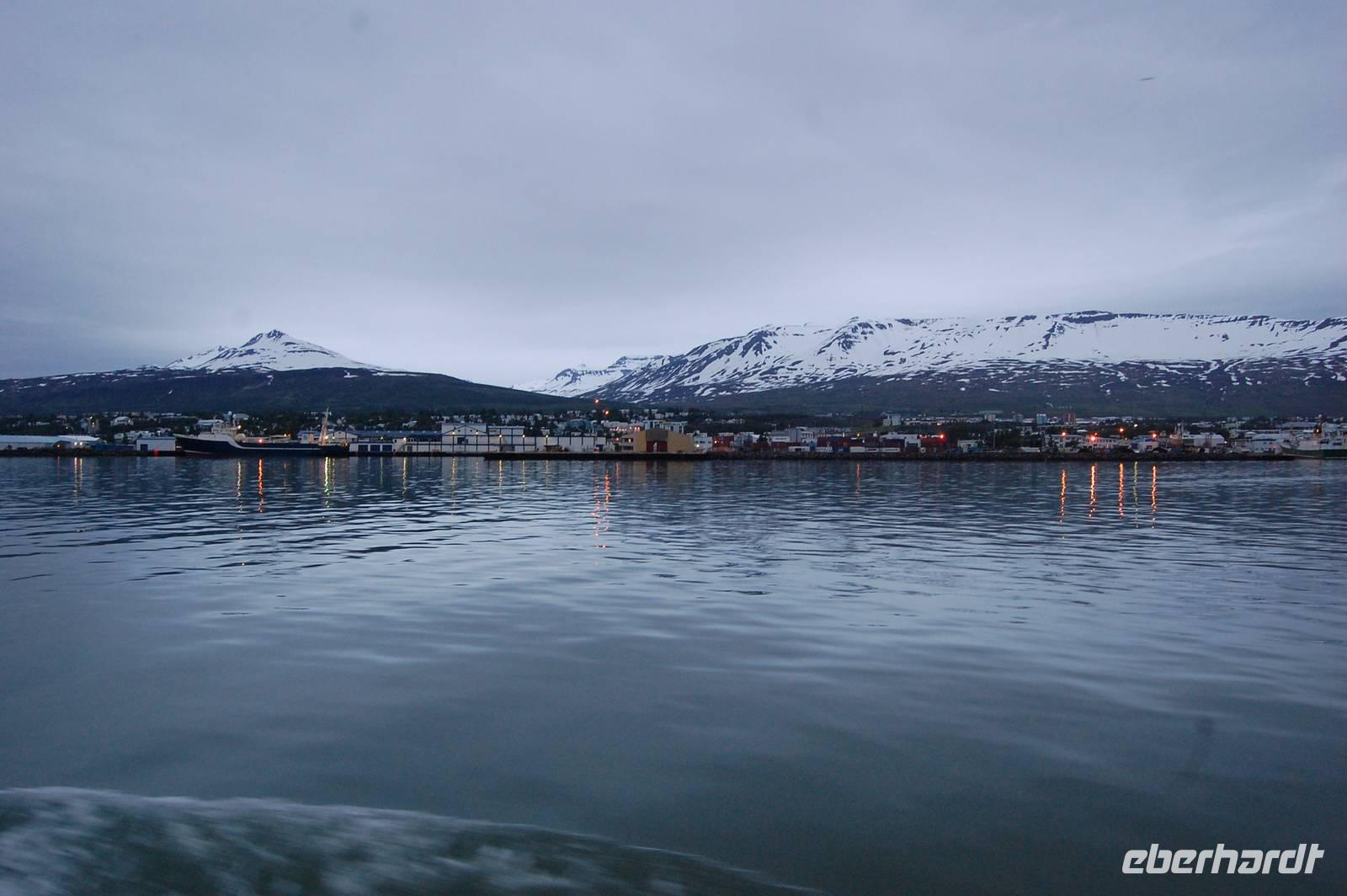 Schließlich erreichen wir die kleine Hafenstadt Akureyri, die am längsten Fjord „Eyjafjödur" der Insel, also ca. 60 km im Landesinneren liegt. Wir checken in das moderne „Icelandair-Hotel" ein. Dort treffen wir uns um 19.45 Uhr zum gemeinsamen Abendessen. Anschließend unternehmen einige von uns einen Spaziergang durch die amüsante Hafenstadt.