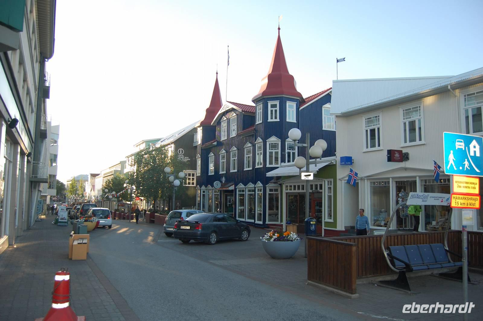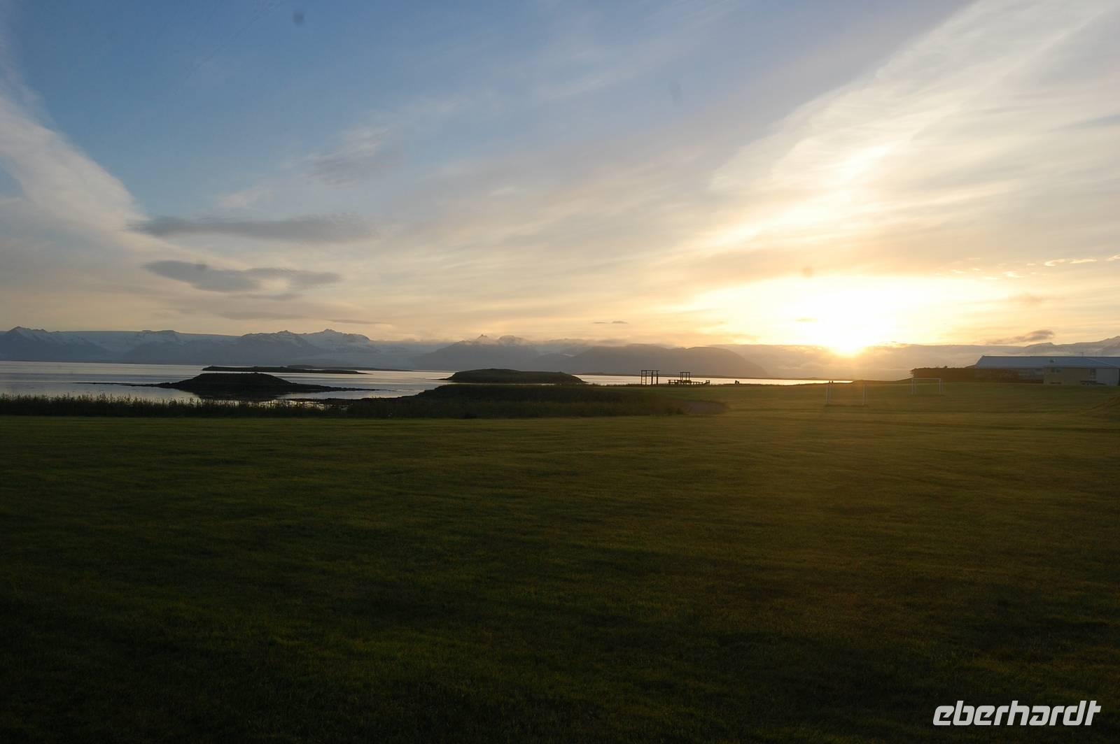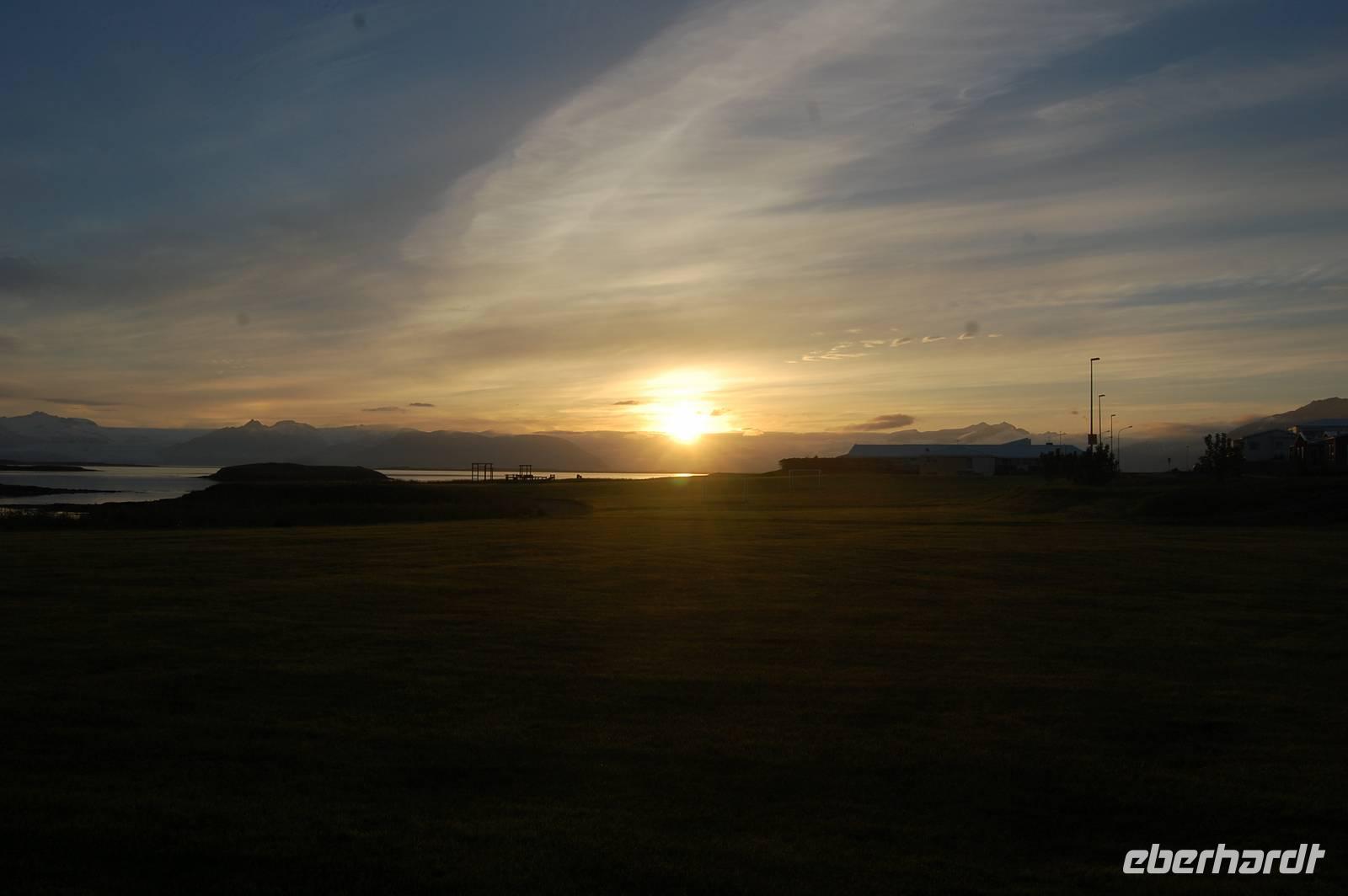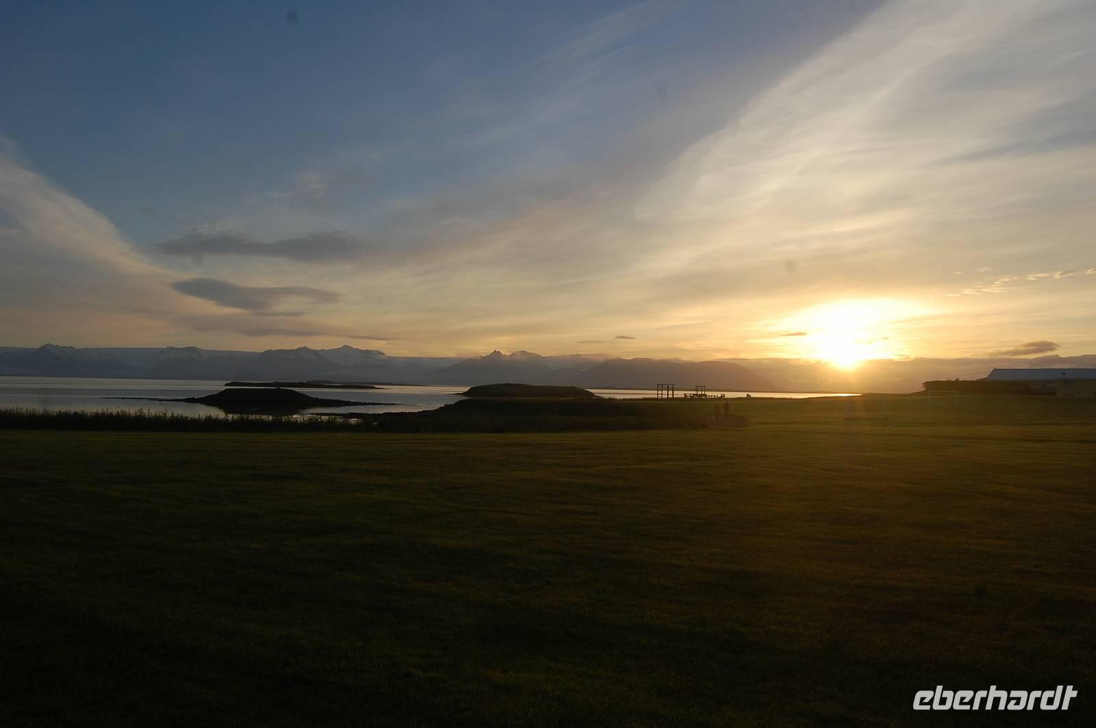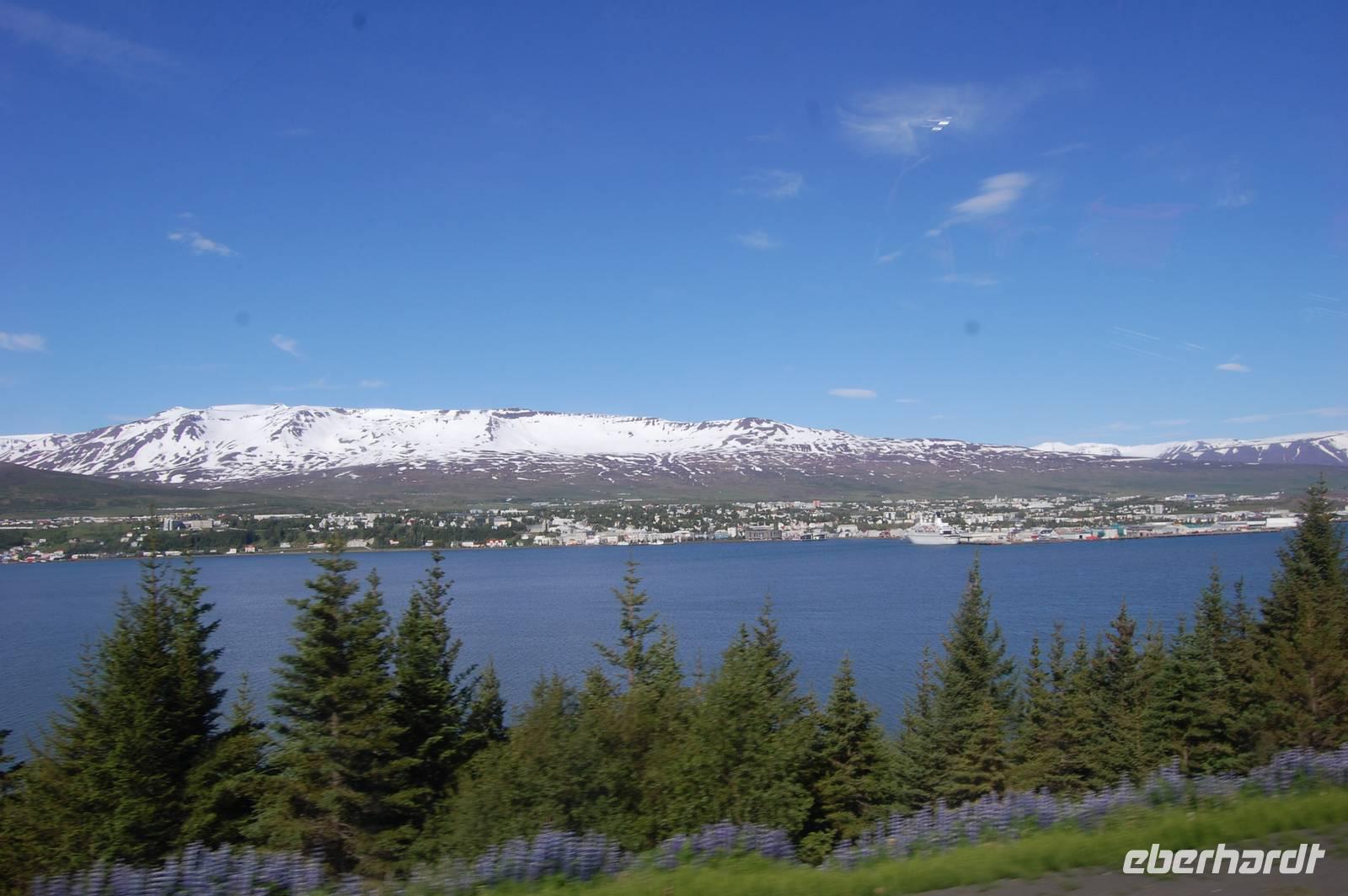 Schließlich erreichen wir die kleine Hafenstadt Akureyri, die am längsten Fjord „Eyjafjödur" der Insel, also ca. 60 km im Landesinneren liegt. Wir checken in das moderne „Icelandair-Hotel" ein. Dort treffen wir uns um 19.45 Uhr zum gemeinsamen Abendessen. Anschließend unternehmen einige von uns einen Spaziergang durch die amüsante Hafenstadt.
