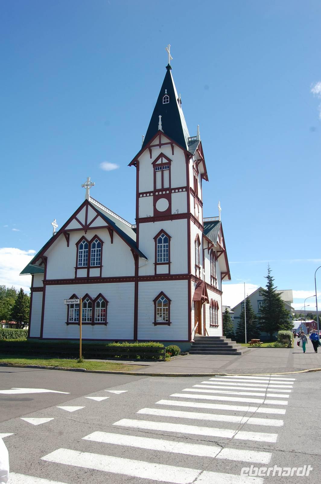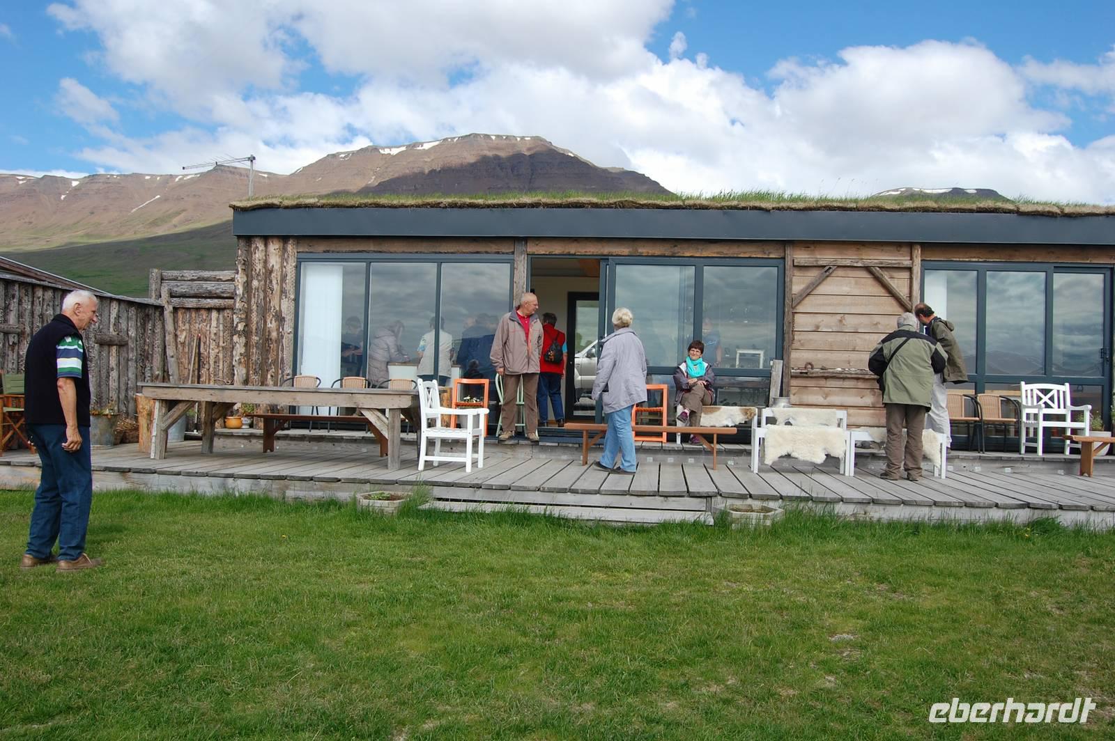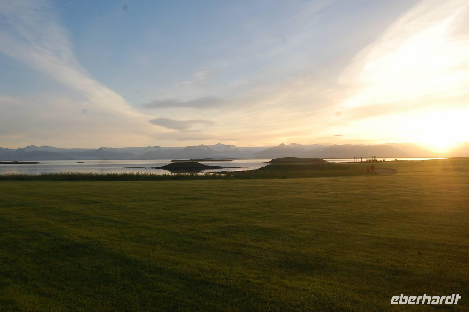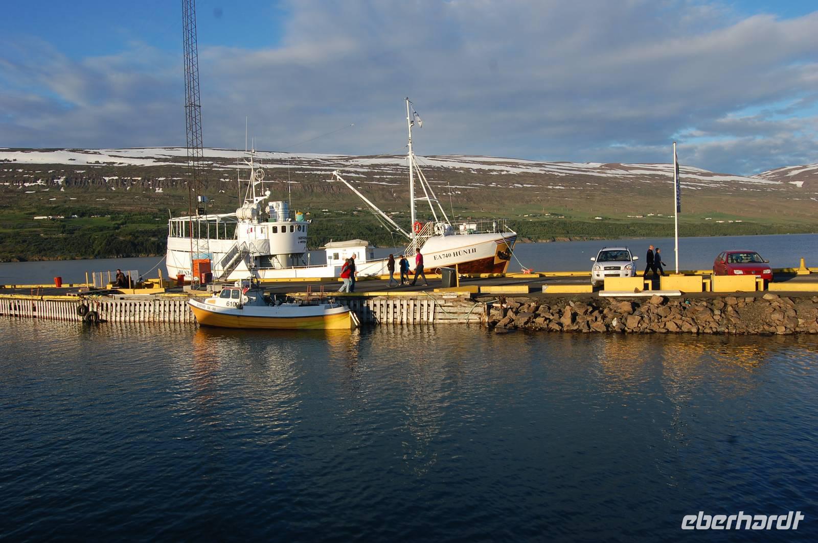 Schließlich erreichen wir die kleine Hafenstadt Akureyri, die am längsten Fjord „Eyjafjödur" der Insel, also ca. 60 km im Landesinneren liegt. Wir checken in das moderne „Icelandair-Hotel" ein. Dort treffen wir uns um 19.45 Uhr zum gemeinsamen Abendessen. Anschließend unternehmen einige von uns einen Spaziergang durch die amüsante Hafenstadt.