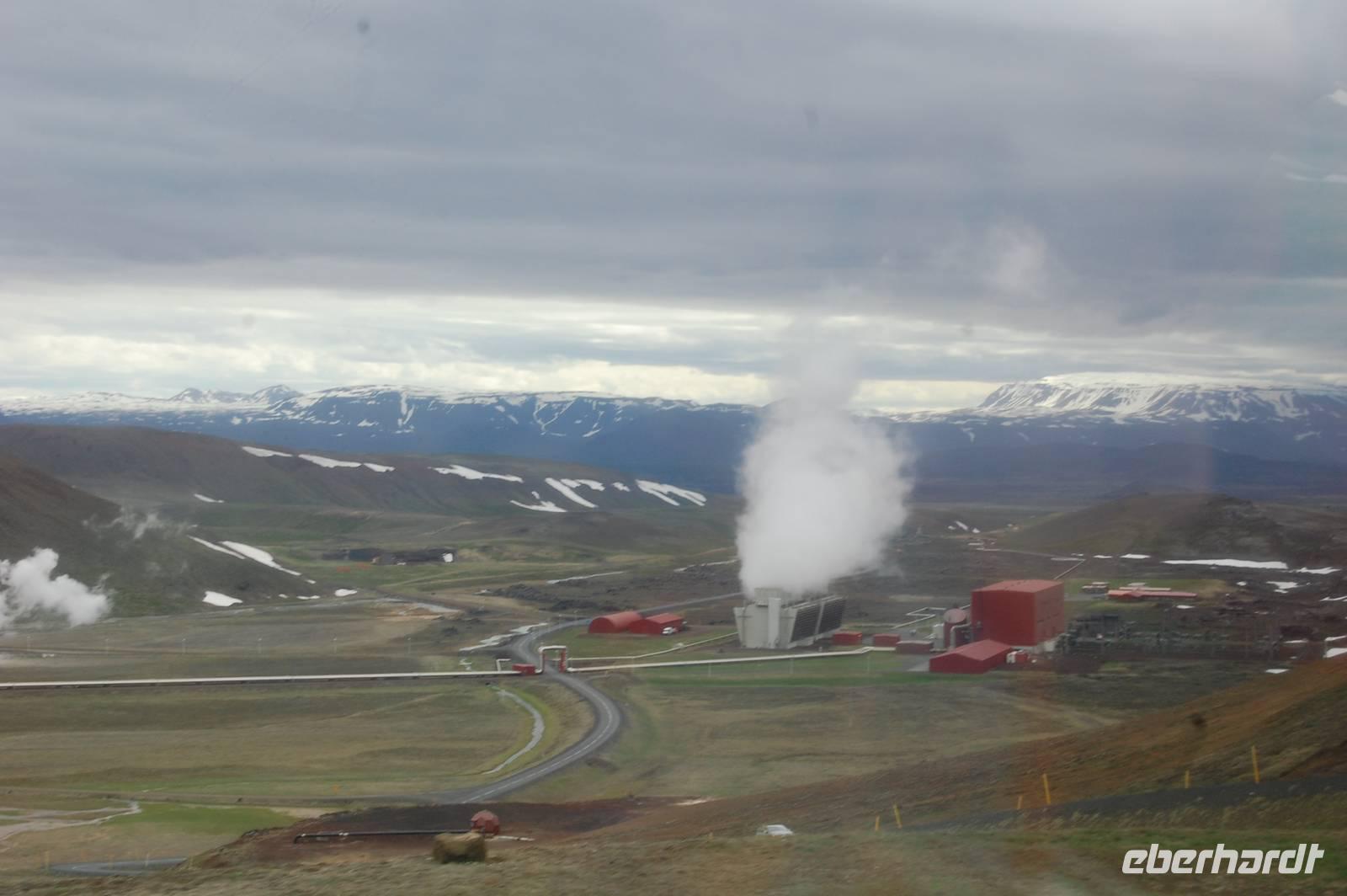 Abschließend fahren wir über das Hengillmassiv und ehemalige Lavagebiete zurück in Richtung Reykjavik. Überall sieht man heiße Quellen, und auch ein geothermisches Kraftwerk ist in dieser Heißregion zu sehen.
