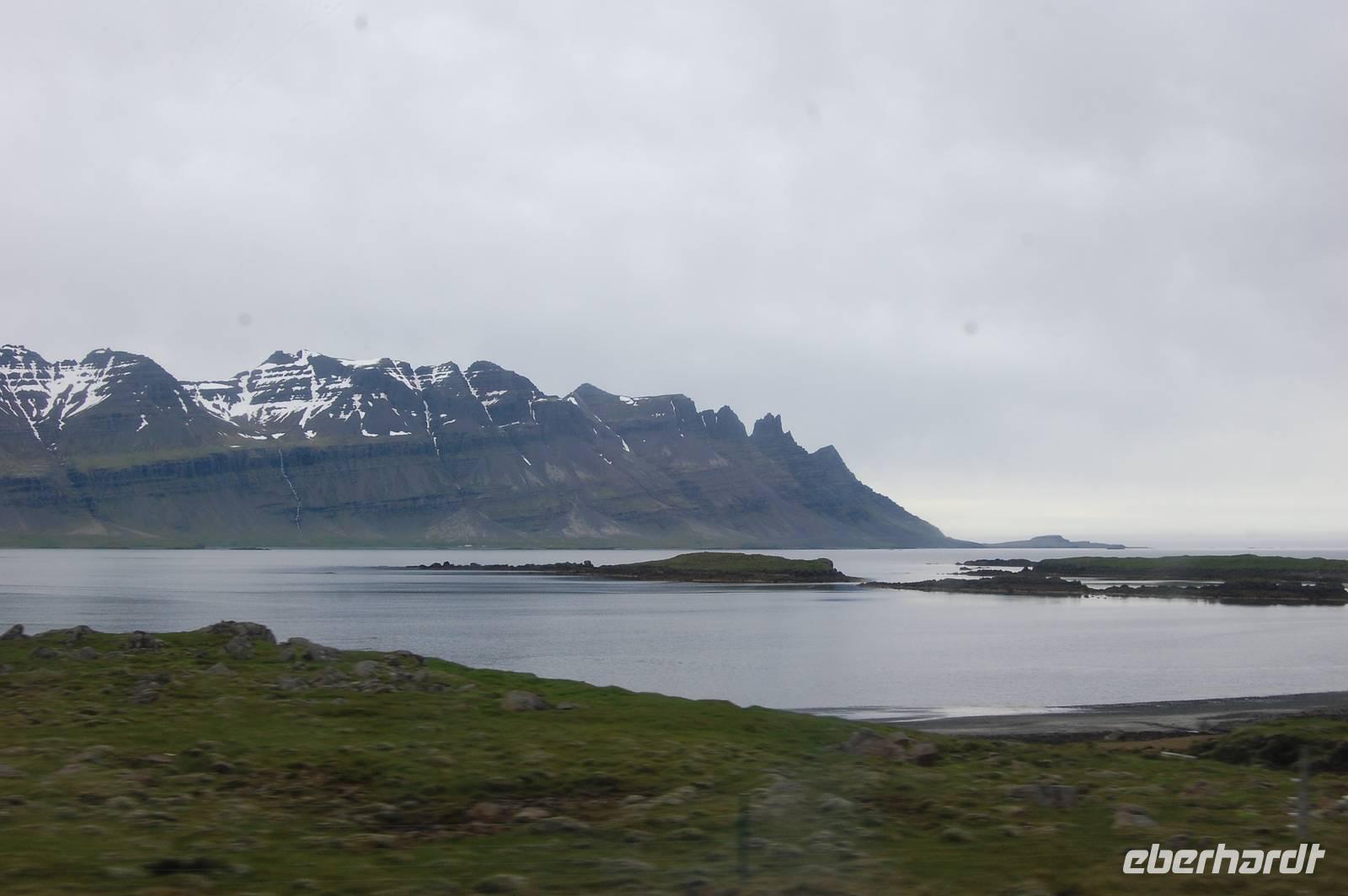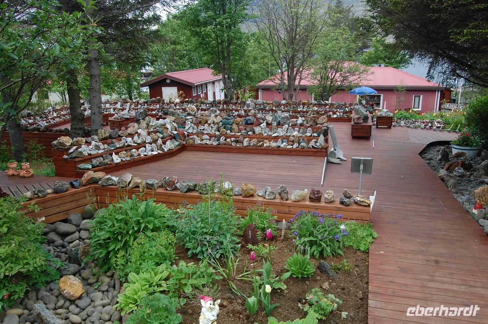 Wir starten wieder um 09.00 Uhr und fahren zunächst wieder zurück nach Egilsstadir. Dann folgen wir der N1 weiter über die Berge an die Ostküste. Wir erreichen den größten Fjord im Osten "Reydarfjödur". Von nun an folgen wir dem Verlauf der Uferstraße entlang der Fjorde weiter nach Süden und erreichen den Ort Stödvarfirdi. Dort besuchen wir „Petra´s Steinhaus". Petra sammelte Ihr Leben lang Steine der Insel und stellte diese schließlich im Garten aus.