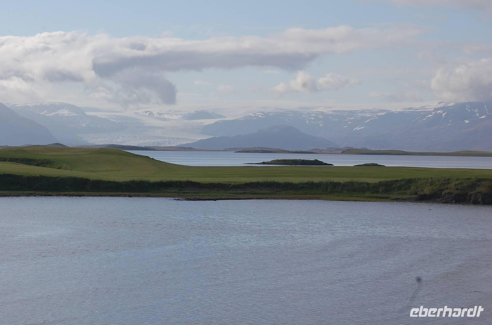 Nun treten wir das letzte Stück der langen Reise an. Wir folgen noch etwa 30 km der Schotterstraße und durchfahren bizarre Mondlandschaften. Nach einem letzten Fotostopp in dieser unwirtlichen Berglandschaft gelangen wir wieder auf die N1-Straße und erreichen die Ortschaft Egilsstadir, die an dem Fluss „Lagarfjór" liegt, der sich hier zu einem 50 km langen See aufstaut. Am östlichen Ufer des Sees, inmitten eines jungen Waldes, liegt unser Hotel „Hallormsstadur". Mit einem Blick auf den See genießen wir unser Abendbuffet.