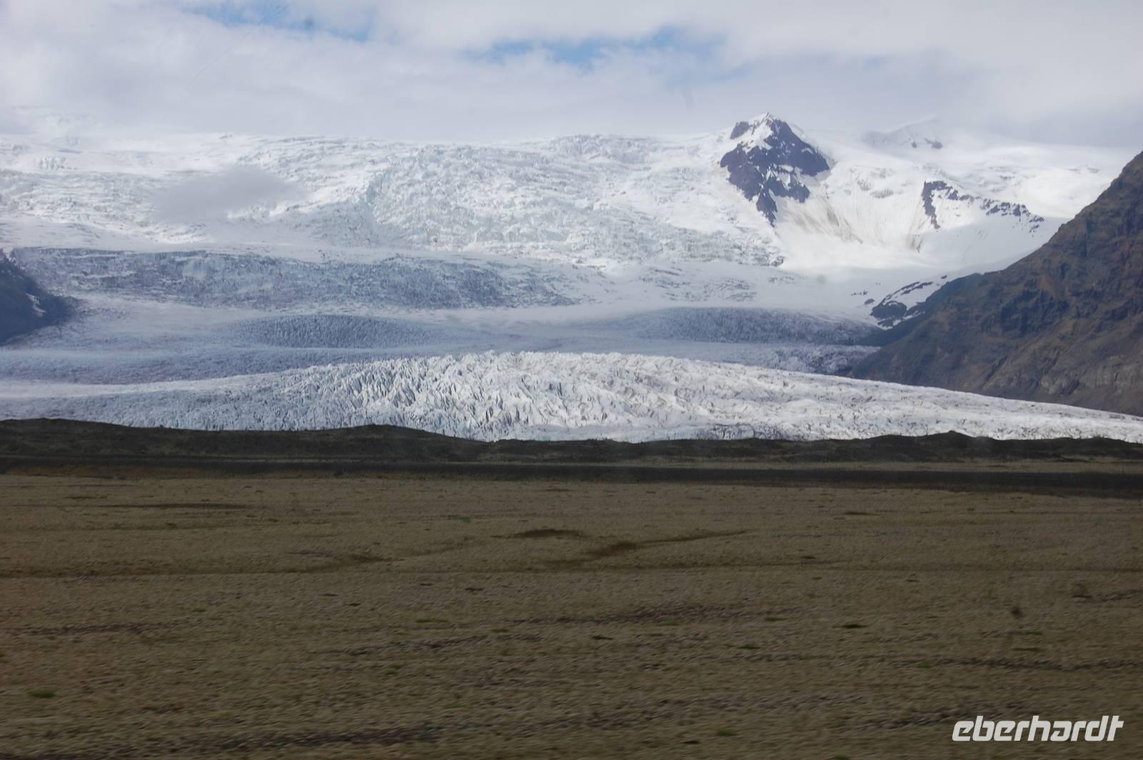 Weiter geht es auf der N1 weiter nach Osten. Wir legen einen nächsten Stopp am Besucherzentrum des Nationalparkes „Skaftafell" ein, wo wir den Film über den verheerenden Vulkanausbruch von 1996 anschauen. Einige laufen bis zur Gletscherzunge.