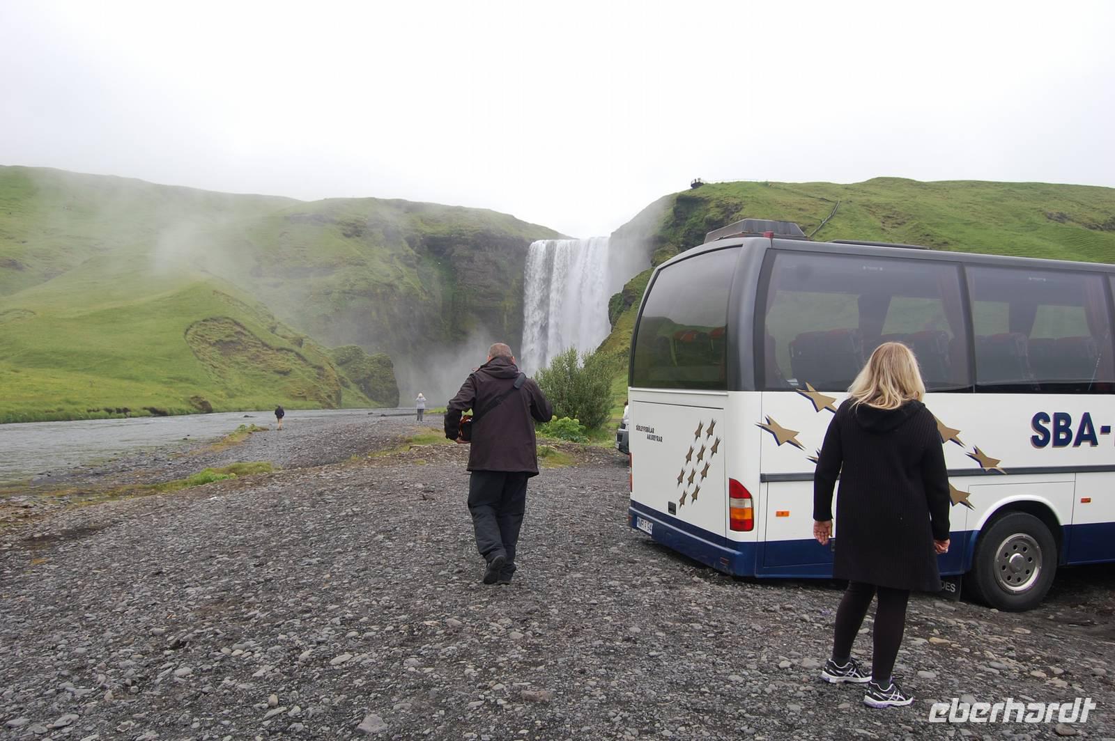 Im Besucherrestaurant der Anlage verbringen wir gleich unsere Lunchpause. Man kann schon von hier den 60 m hohen Wasserfall Skógafoss sehen, wo wir im Anschluss noch einmal halten. Schließlich sind wir wieder auf der Straße N1 weiter nach Osten unterwegs.