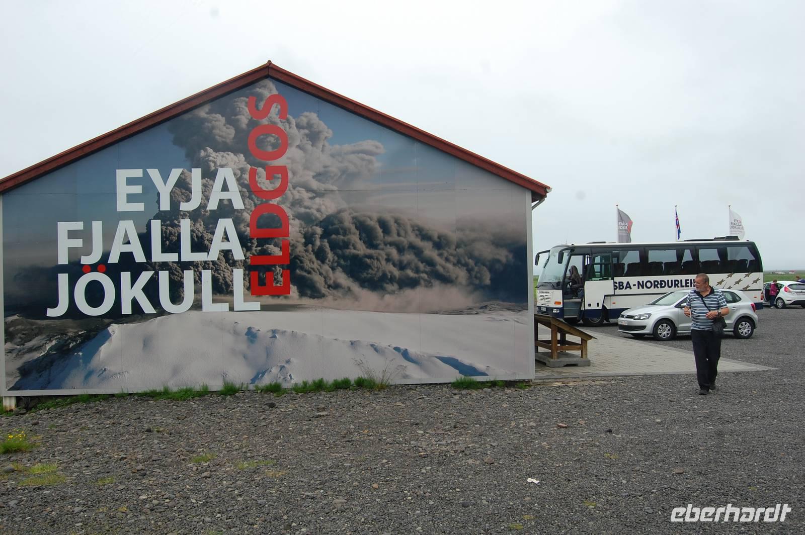 Wir stoppen am Besucherzentrum direkt an der N1, wo wir die Filmvorführung über den Vulkanausbruch des Eyjafjallajökull anschauen Die Filmvorführung in deutscher Sprache war sehr interessant und wer noch keine Souvenirs besorgen konnte, hat im Shop gute Möglichkeiten.