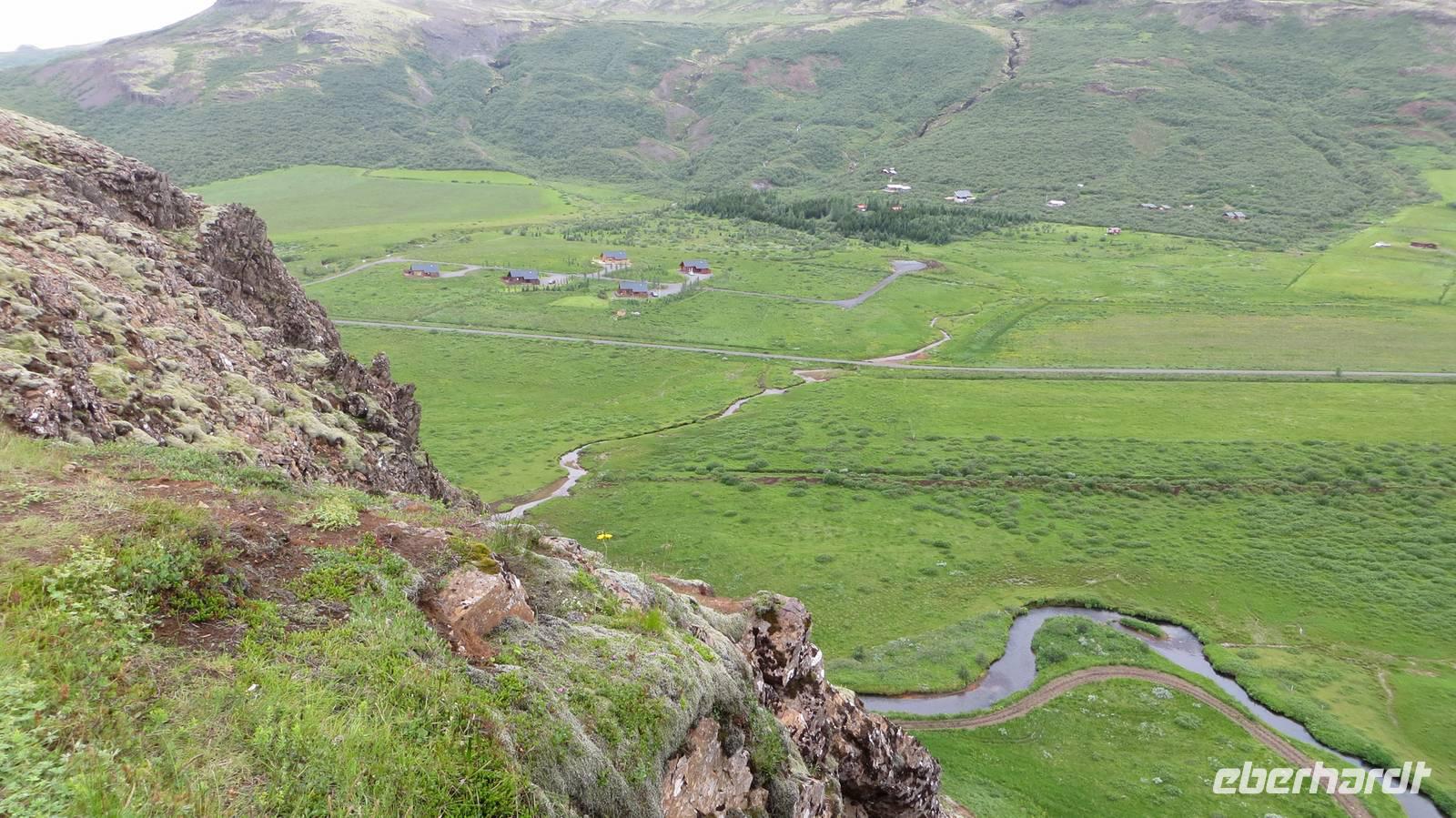 Nach einer ausgiebigen Nachtruhe bei für uns ungewöhnlicher Helligkeit sind wir wieder fit und starten in unseren zweiten Tag. Beim Frühstück treffen wir auf 2 weitere Gäste. Sie sind letzte Nacht aus Stuttgart angekommen und werden ebenfalls mit uns auf Erkundungsreise durch Island gehen . Nachdem wir uns ausreichend für den Tag gestärkt haben, werden wir nicht von Berglind sondern von Rosá, der Mutter von Berglind abgeholt. Die ganze Familie arbeitet als Reiseleiter und so werden wir dann morgen schließlich auch noch den Mann von Rosá, Ulrik, kennen lernen. Er wird mit uns zur Rundfahrt um die Insel starten. Doch heute wird uns Rosá erst einmal den berühmten Golden Kreis, ein Highlight von Island, zeigen. Bevor wir die Hauptstadt verlassen, unternehmen wir noch eine kleine Rundfahrt, wo wir einige Sehenswürdigkeiten, wie die Harfe (Konzert- und Konferenzhaus),das Höfdi-Haus, das Sonnenboot, die Kirche Fríkirkja, den Stadtteich Tjörnin oder das Rathaus sehen. Anschließend versorgen wir uns noch mit Wasser und ein paar Süßigkeiten und verlassen Reykjavik schließlich in Richtung Norden. Dabei sehen wir auf der rechten Seite den Hausberg der Stadt, Esja. Nach kurzer Fahrt treffen wir auch schon bald auf den Þingvallavatn, den mit ca. 84 km² größten natürlichen See hier auf Island. Dieser weist an der tiefsten Stelle eine Tiefe von 114 m auf und ist Lebensraum von 8 verschiedenen Forellenarten. Nachdem wir ein Stückchen an diesem Gewässer vorbeigefahren sind, erreichen wir schließlich das Informationszentrum des Þingvellir Nationalparks, welcher von geologischer aber auch historischer Bedeutung sowie Teil des UNESCO-Weltkulturerbes ist. So befindet sich hier eine Driftzone zwischen der amerikanischen und der eurasischen Kontinentalplatte, die an jeder Seite von einer großen Abbruchspalte begrenzt ist. Die Platten sind inzwischen schon ca. 2 ½ km voneinander entfernt, was auch dazu führt, dass Island, welches geologisch gesehen noch ein junges Land ist, um ca. 1 bis 2 cm pro Jahr wächst. Wir steigen aus dem Bus und laufen etwas durch diese Driftzone durch. Doch bevor wir die Senke zu Fuß erreichen, genießen wir noch den herrlichen Ausblick über die Driftzone und den Þingvallavatn und gehen zum Thingfeld, wo früher das erste Parlament von Island tagte und u. a. die Einführung des Christentums beschloss und die Republik ausrief. Wir schießen ein tolles Gruppenfoto an diesem bedeutenden Ort. Bei unserem anschließenden Spaziergang staunen wir über die Abbruchspalten und steigen schließlich am anderen Ende der Senke "verfolgt" von vielen kleinen Fliegen wieder in den Bus ein. Weiter geht es nun auf der Eurasischen Platte zu einem weiteren Höhepunkt unseres Ausfluges - dem berühmten Geothermalgebiet „Geysir". Hier befindet sich auch der „Alte Geysir", der weltweit als Namensgeber für alle Springquellen gilt. Dieser ist jedoch schon fast ausgestorben, da sich das Wasser abkühlt und es zu keinen „Wasserausbrüchen" mehr kommt. Hier erklärt uns Rosá auch wie es zu solchen Explosionen kommt. Gemeinsam gehen wir zum Strokkur (auch als Butterfass bezeichnet), dem größten aktiven Geysir in diesem Gebiet, der ca. aller 5 min eine 10 bis 20 m hohe Wassersäule in den Himmel schießt. Schon nach kurzer Zeit sehen auch wir die Wasserkugel und die anschließende Wasserfontäne. Beeindruckt von diesem Naturphänomen versuchen wir diese auch auf einem Foto festzuhalten, was dem ein oder anderem mehr oder weniger gut gelingt. Nach diesem tollen Erlebnis stärken wir uns noch in dem nahegelegenen Selbstbedienungsrestaurant und fahren dann weiter zum Gullfoss, dem Goldenen Wasserfall. Direkt unten am Wasserfall steigen wir aus und laufen vor - ganz nah an diesen gewaltigen Wasserfall, der etwas besonders ist, da es praktisch 2 Wasserfälle sind. Der Obere ist 11 m hoch und der Untere 20 m hoch, somit beträgt die Gesamthöhe dieses Wasserfalls ca. 31 m. Von unten spazieren wir langsam nach oben auf eine Aussichtsplattform, wo wir dieses Naturschauspiel nochmals in seiner ganzen Pracht bestaunen und unvergessliche Fotos für unseren Lieben daheim schießen. Zum Abschluss fahren wir nun noch zu dem unbekannteren Wasserfall Faxi. Schließlich machen wir uns wieder auf den Weg nach Reykjavik. Unterwegs legen wir noch einen Stopp in der Gartenstadt Hveragaerdi ein, wo uns Rosá in einem Einkaufszentrum eine Erdbebensimulation von dem Erdbeben, welcher sich hier 2008 ereignete, zeigt. Mit einzigartigen Eindrücken und Erlebnissen fahren wir über die Hochebene zurück nach Reykjavik. Da wir morgen nicht mehr Rosá sondern mit Ulrik als Reiseleiter haben werden, bedanken wir uns für die schönen Tag und verabschieden uns. Nachdem wir uns etwas frisch gemacht haben, treffen wir uns alle wieder an der Hotelrezeption, um gemeinsam zum Steakhaus Steikhusid zu laufen. Hier essen wir wie es der Name schon sagt, ein leckeres Fisch- bzw. Fleischsteak und verbringen einen lustigen Abend.