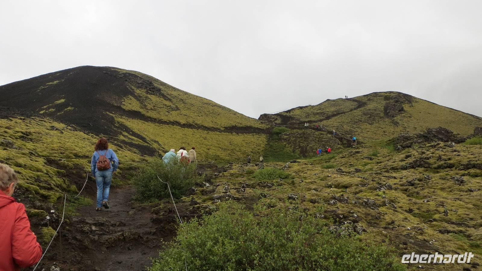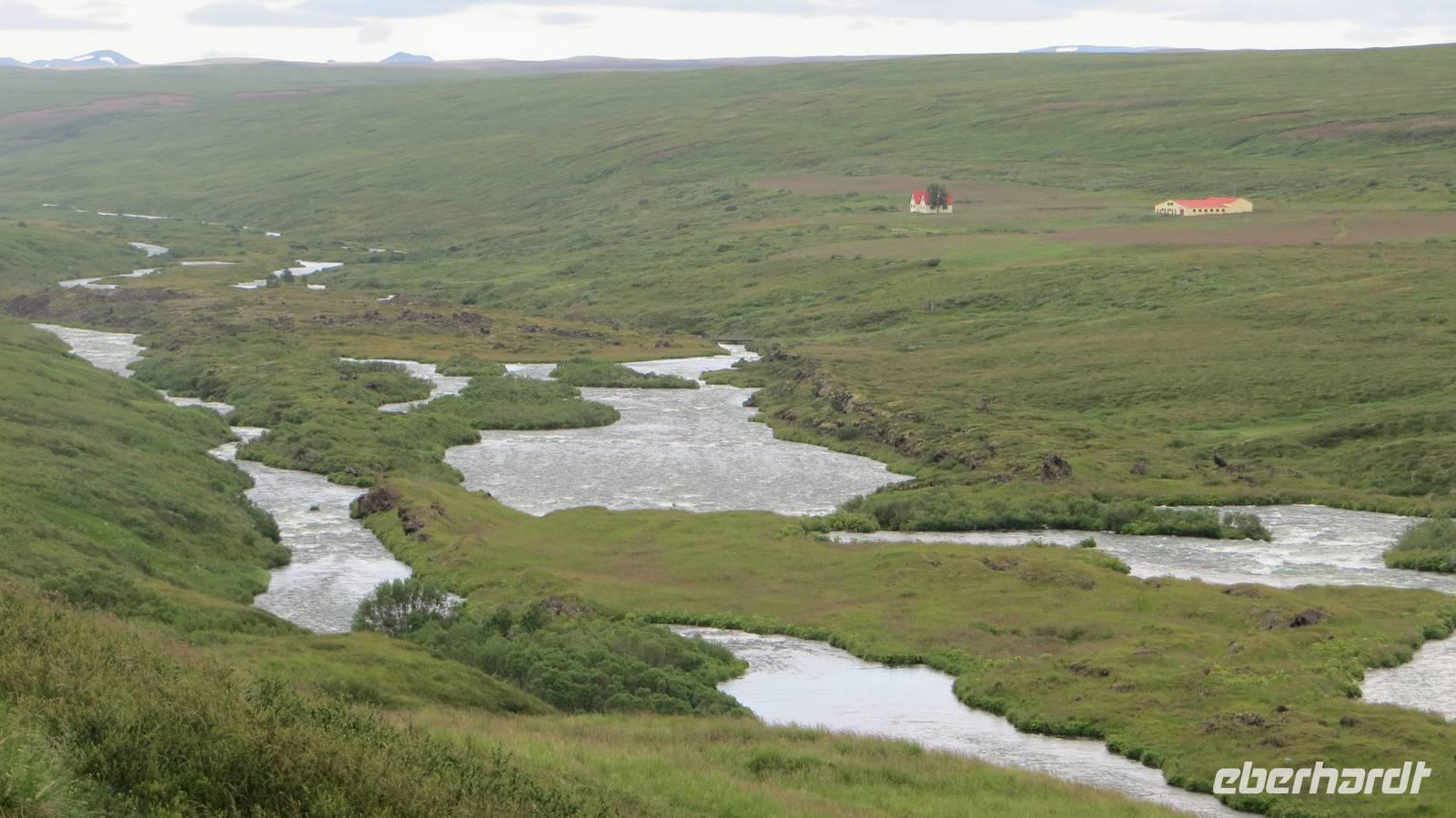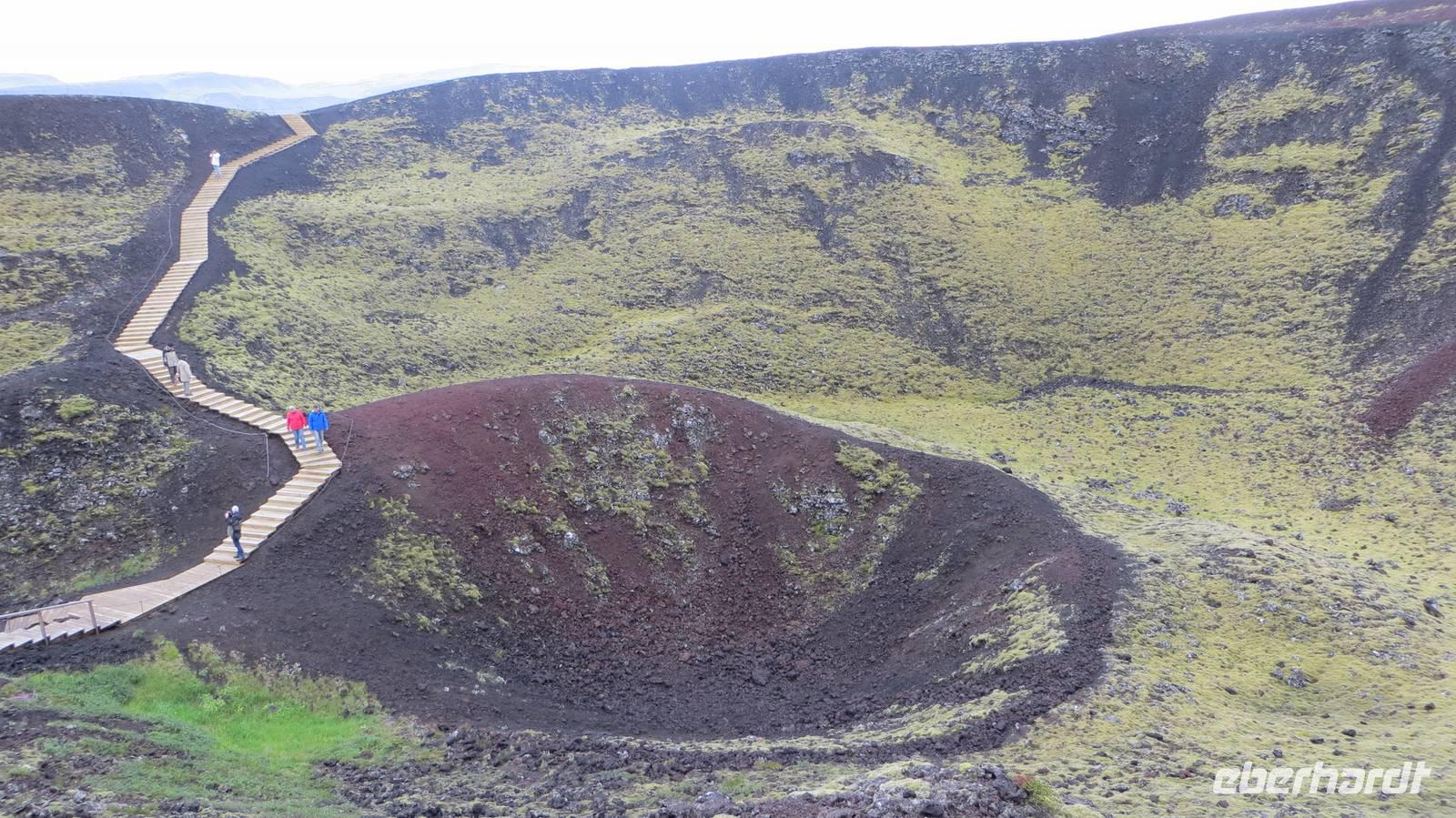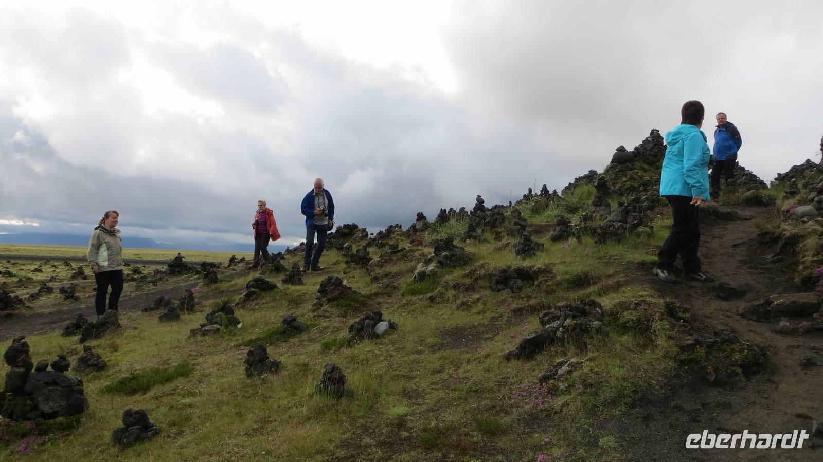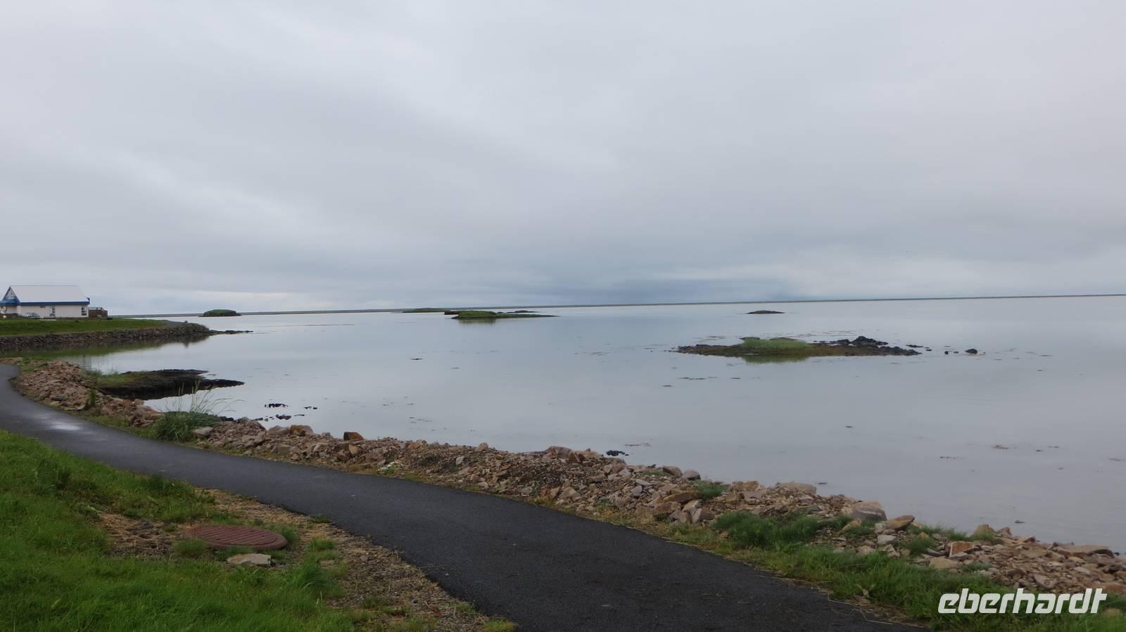 Da wir heute eine lange Fahrt mit vielen Programmpunkten vor uns haben, starten wir schon eine Stunde früher als gewohnt. Und so verlassen wir gegen 08:00 Uhr das Hotel in Akureyri. Zunächst fahren wir bis zum Wasserfall Godafoss - die gleiche Strecke wie gestern. Von hier setzen wir unsere Reise zum Myvatn, dem Mückensee, fort. Unterwegs legen wir einen Stopp am Laxá-Fluss ein. Dieser verfügt über einen interessanten Verlauf und weist zahlreiche Lachse auf, wodurch er ein beliebter Fluss zum Angeln ist. Dies ist in Island jedoch nicht ganz billig, da ein Tag angeln pro Person gleich mal 3000 € kosten kann. Am Mückensee herrscht heute stärkerer Wind und so werden wir nicht von den sonst hier zahlreich anzutreffenden Mücken begrüßt. Glücklich über diesen Umstand unternehmen wir einen kleinen Spaziergang entlang dem Binnensee, der eine Fläche von ca. 37 km² hat und Lebensraum von bis zu 16 verschiedenen Entenarten ist. Wir bestaunen hier die zahlreichen Pseudokrater, welche durch den Fluss frischer Lava über dieses Feuchtgebiet entstanden sind. Die Landschaft ist saftig grün und ein paar Schafe lassen sich das Gras schmecken. Auch einen kleinen Vogel, der am Wegesrand durch die Wiese läuft, hat schnell unsere Aufmerksamkeit. In der Ferne sehen wir auch einen riesigen Schildvulkan, der der größte auf Island ist. Bevor es weiter geht, gehen wir noch in einen kleinen Souvenirshop und erledigen unsere "technischen" Bedürfnisse . Unser zweites Ziel des heutigen Tages ist das Lavafeld von Dimmuborgir, was so viel heißt wie dunkle Städte oder dunkle Burgen. Bei einem Spaziergang durch das Labyrinth, welches aus zahlreichen Türmen, Brücken, Höhlen und Überhängen besteht, sehen wir auch Erdspalten, die sich diagonal durch das Lavafeld ziehen und sehr gefährlich sein können. Wir lassen unsere Fantasie spielen und erkennen in den bizarren Naturformationen die verschiedensten Gestalten. An einem großen Loch in einer Formation verlassen 3 Gäste kurzerhand die Gruppe, um einen Blick in die "Welt" dahinter zu riskieren . Gespannt wartet der Rest der Gruppe auf ihre Berichte. Wieder am Bus genießen wir noch einmal einen Blick auf dieses ca. 1 km² großes Feld. Dann geht es auch schon weiter. Nun haben wir uns erst einmal etwas Entspannung verdient und statten deshalb der Badelandschaft Jardbödin eine Besuch ab. Wir lassen uns in dem milchig blauen und auch teilweise wirklich ganz schön heißen Wasser treiben. Der Zeit vergeht wie im Flug und schon ist es wieder Zeit, dass wir uns auf den Weg machen. Doch bevor wir weiterfahren, stärken wir uns noch im Restaurant und der ein oder andere kostet das für diese Region typische Quellbrot mit Forelle. Wir fahren ein kleines Stück und genießen nochmals den Blick über Jardbödin, das ehemalige Thermalbad und den Mückensee. Nun geht es zum Hochtemperaturgebiet Námaskarð, wo wir buchstäblich in Teufels Küche kommen. Unterhalb des Berges Námafjall befindet sich das aktive Solfatarenfeld Hverarönd. Wir sind beeindruckt von diesem Naturschauspiel. Die in Gelb-. Orange- und Brauntönen gefärbte Ebene ist ein Feld mit brodelnden Schlammtöpfen und zahlreichen zischenden Dampf- und Schwefelquellen. Hier erleben wir hautnah, wie die Erde "lebt". Weiter geht es zum nächsten Naturerlebnis - dem Dettifoss, einem der wohl eindrucksvollsten Wasserfälle Europas. Er ist mit 45 m zwar nicht der höchste Wasserfall, aber mit einer Wassermenge von ca. 193 m³ pro Sekunde der energiereichste Wasserfall Europas. Wir sind überwältigt von diesem Naturphänomen. Welch ohrenbetäubenden Lärm und großen Sprühnebel der Wasserfall bewirkt. Entlang dem Jökulsá-Fluss laufen einige Gäste noch zum 10 m hohen Selfoss, welcher sich oberhalb des Dettifoss befindet. Auf unseren weiteren Weg in Richtung der Ostfjorde stellt uns Ulrik das berühmte isländische Reiterlied vor, welcher er am Ende sogar extra für uns zum Besten bringt . Um eine kleine Kaffeepause zu machen, fahren wir zu einem Bauernhof, der weit abseits der Straße im Nirgendwo liegt. Weit und breit gibt es hier nur diesen Hof, welcher aber über eine Kirche, ein Café und sogar eine eigene kleine Tankstelle verfügt. Wir schauen uns etwas um und lassen uns bei einem Ausblick in diese unendliche Weite einen Kaffee mit Kuchen schmecken. Schließlich brechen wir zu unserer letzten Etappe des heutigen Tages auf - nach Egilsstaðir bzw. Hallormsstaður, wo sich unser Hotel befindet. Wir fahren durch karge Wüstenlandschaft und legen unterwegs noch 3 kurze Stopps ein, um diese Landschaft, wo auch zahlreiche Wasserfälle zu sehen sind, nicht nur im Kopf sondern auch auf Fotos festzuhalten. Um 20:00 Uhr treffen wir schließlich im Hotel Hallormsstaður. Dieses ist ganz idyllisch im größten zusammenhängenden Wald Islands direkt an einem See gelegen. Wir beziehen schnell unsere Zimmer und treffen uns zum gemeinsamen Abendessen im Restaurant wieder. Mit Blick auf den See lassen wir uns das köstliche Buffet schmecken. Unser Busfahrer Siggi kann heute nicht mit uns zu Abend essen. Das Busmikrofon hat uns heute zum Ende des Tages leider komplett im Stich gelassen hat und so kümmert sich Siggi gleich nach unserer Ankunft im Hotel um die Reparatur, so dass wir morgen wieder mit einem funktionieren Mikrofon starten können.
