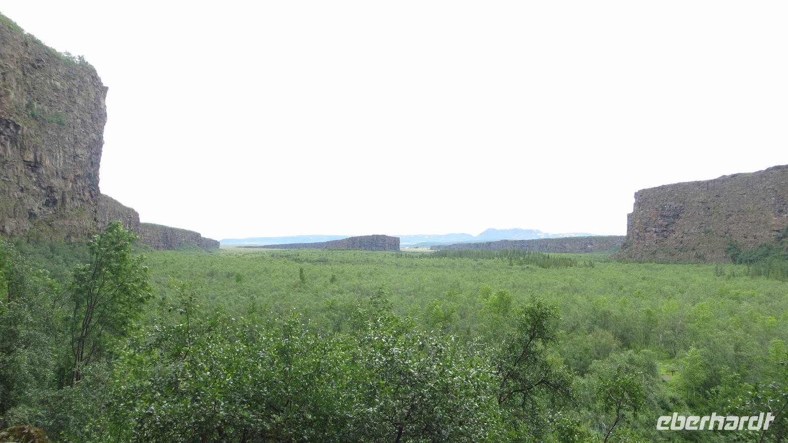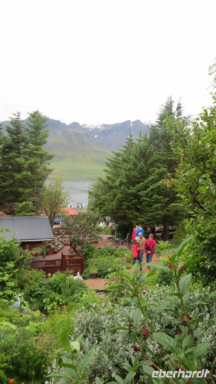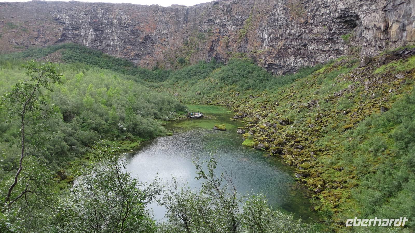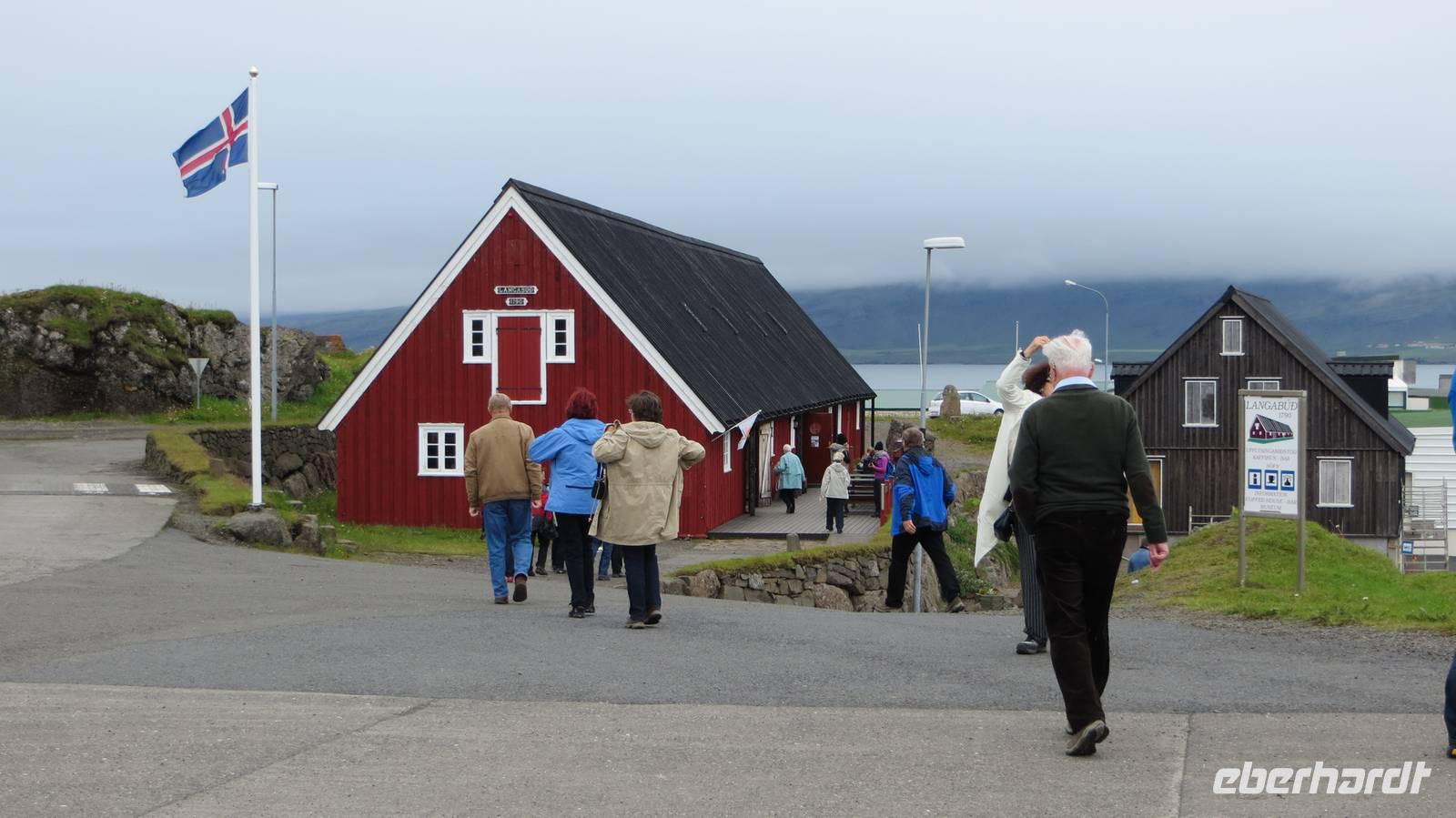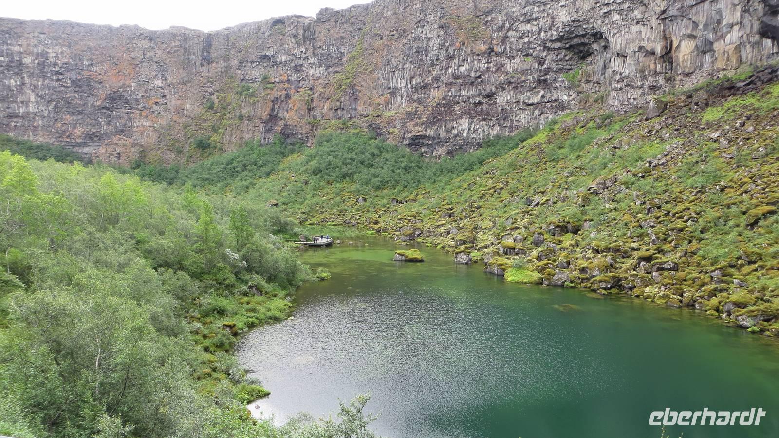 Nach einem reichhaltigen Frühstück starten wir heute leider bei Regen in den Tag. Doch dies sollte sich wohl Dank einer Dame, welche das Wetter besungen hatte, im Laufe des Tages schnell ändern. Von unserem Hotel fahren wir den Berg hinab bis zur Küstenstraße, wo wir noch einen kurzen Stopp an dem Dichterhaus von Jôn Sveinsson einlegen. Dieser hatte hier in den 1860er-Jahren seine Kindheit verbracht und ist dann später durch seine Nonni-Kinderbücher bekannt geworden. Über eine Brücke, die am Flughafen von Akureyri vorbeiführt, erreichen wir die andere Seite des Fjords, welchen wir erst einmal noch Stück entlang fahren. Dann verlassen wir die Küste um zum sagenumwobenen Godafoss zu fahren. Dieser wird auch als Götterwasserfall bezeichnet, da Þorgeir nach seiner Entscheidung, dass die Isländer zum Christentum übertreten sollen, alle seine heidnischen Götterbilder in den Wasserfall geworfen hat. Wir steigen am Wasserfall aus und unternehmen einen kleinen Spaziergang entlang dieses 12 m hohen Sturzes und dem Fluss Skálfandafljót. Über eine Brücke, wo wir nochmals einen herrlichen Blick auf das Gewässer haben, erreichen wir wieder unseren Bus. Weiter führt uns die heutige Reise in das malerische Fischerörtchen Húsavík. Hier gehen wir erst einmal in eine Bank, um uns für die kommenden Tage mit weiteren Isländischen Kronen auszustatten. Da es hier in der Bank auch noch kostenlosen Kaffee gibt, legen wir kurzerhand eine kleine Kaffeepause ein, bevor dann jeder zu seiner individuellen Besichtigungstour aufbricht. Wir bummeln durch die Straßen der Stadt, kaufen uns eine Kleinigkeit für unser Mittagspicknick, besuchen die kleine Holzkirche aus dem Jahre 1907 und spazieren entlang des Hafens, von welchem wir die schneebedeckten Berge im Hintergrund sehen. Ein tolles Bild, das wir mit unseren Fotoapparaten für die Daheimgebliebenen festhalten. Anschließend fahren wir weiter entlang der Küste über die Halbinsel Tjörnes. Wir sind jetzt nur noch ca. 2360 km vom Nordpol entfernt, dennoch herrschen hier auf Island die höchsten Temperaturen. Um unseren Tag mit einer kleinen Überraschung zu versüßen, legen wir einen kurzen Stopp ein, wo wir das erste Mal während unserer Reise die niedlichen Papageitaucher sehen. Diese typisch für die Nordhalbkugel anzutreffenden Vögel werden jedoch immer weniger, was vor allem am Wandel des Klimas und an deren beschaulichem Ausbrüten von nur einem einzigen Ei pro Saison liegt. Mit allerhand tollen Fotos im Kasten setzen wir unsere Fahrt nach Süden zum Nationalpark Asbyrgí fort. Hier machen wir auf der Terrasse des Besucherzentrums mit den eingekauften Snacks aus Húsavík und Blick auf die hufeisenförmige Asbyrgí Schlucht ein Mittagspicknick. Wieder gestärkt, fahren wir weiter in die Schlucht hinein, welche durch einen vom Vatnajökull kommenden Gletscherfluss entstanden ist. Sie ist mit Bäumen bewachsen und lädt somit zu einem kleinen Waldspaziergang ein. Durch den Wald und vorbei an dem See unterhalb des ehemaligen Wasserfalles laufen wir bis zu einem Aussichtpunkt, der uns einen weiten Blick über diese beeindruckende Schlucht und den Botnstjörn See eröffnet. Abschließend laufen wir nochmals zum See. Wir genießen diese traumhafte Natur und beobachten eine kleine Entenfamilie. Nun ist es langsam Zeit die Rückfahrt nach Akureyri anzutreten. Auf unserem Rückweg halten wir auf der gegenüberliegenden Seite von Akureyri. Das Wetter ist im Gegensatz zu heute Morgen sehr freundlich, so dass wir einen fantastischen Blick auf das Städtchen haben. Wieder im Hotel trifft sich ein Teil der Gruppe zu einem gemeinsamen Spaziergang durch den gleich am dem Hotel liegenden Botanischen Garten, welcher mit einer tollen Blumenpracht glänzt. 18:30 Uhr treffen wir uns schließlich im Hotelrestaurant zum gemeinsamen Abendessen. Auch heute hält das Buffet wieder allerhand leckere Speisen und Köstlichkeiten für uns bereit. Damit wir nicht nur die Island-Pferde mal gesehen haben, sondern auch sagen können, dass wir auf einem gegessen haben , bricht ein Großteil der Gruppe zu einem abendlichen Reitausflug auf. Dieser bereitet allen viel Freude, so dass alle gut gelaunt zurück ins Hotel kehren. Bei einem Trink an der Hotelbar lassen wir den Abend mit einer Berichterstattung über das Reiterlebnis ausklingen.