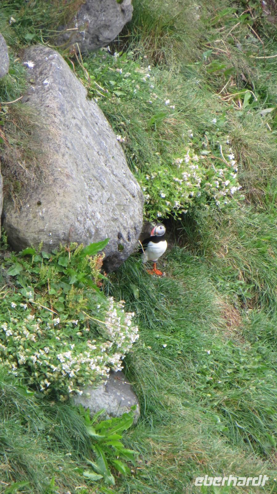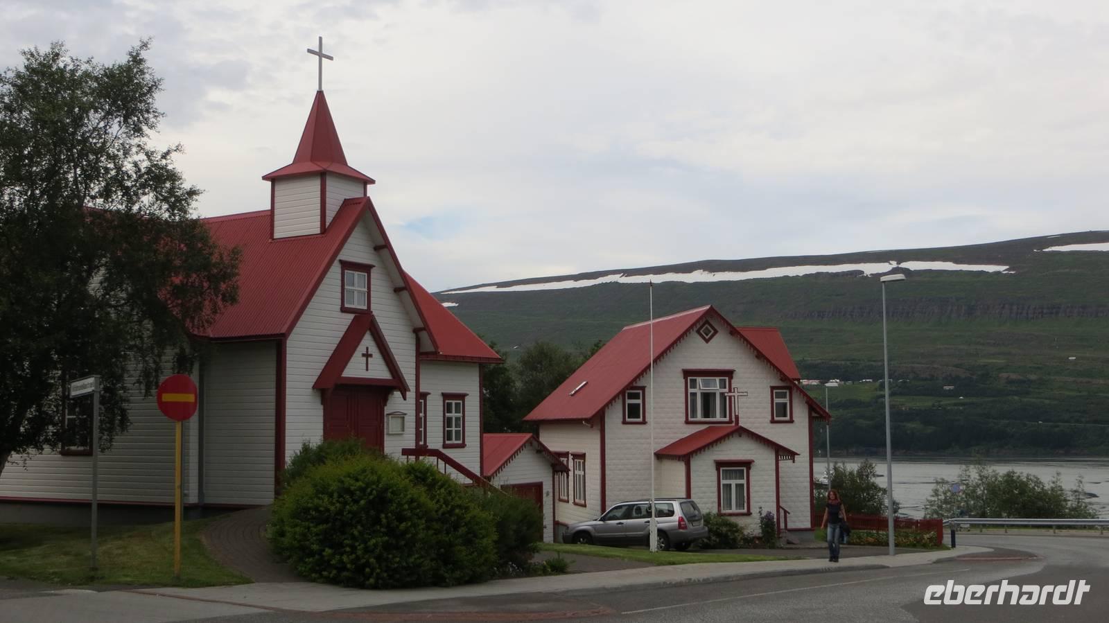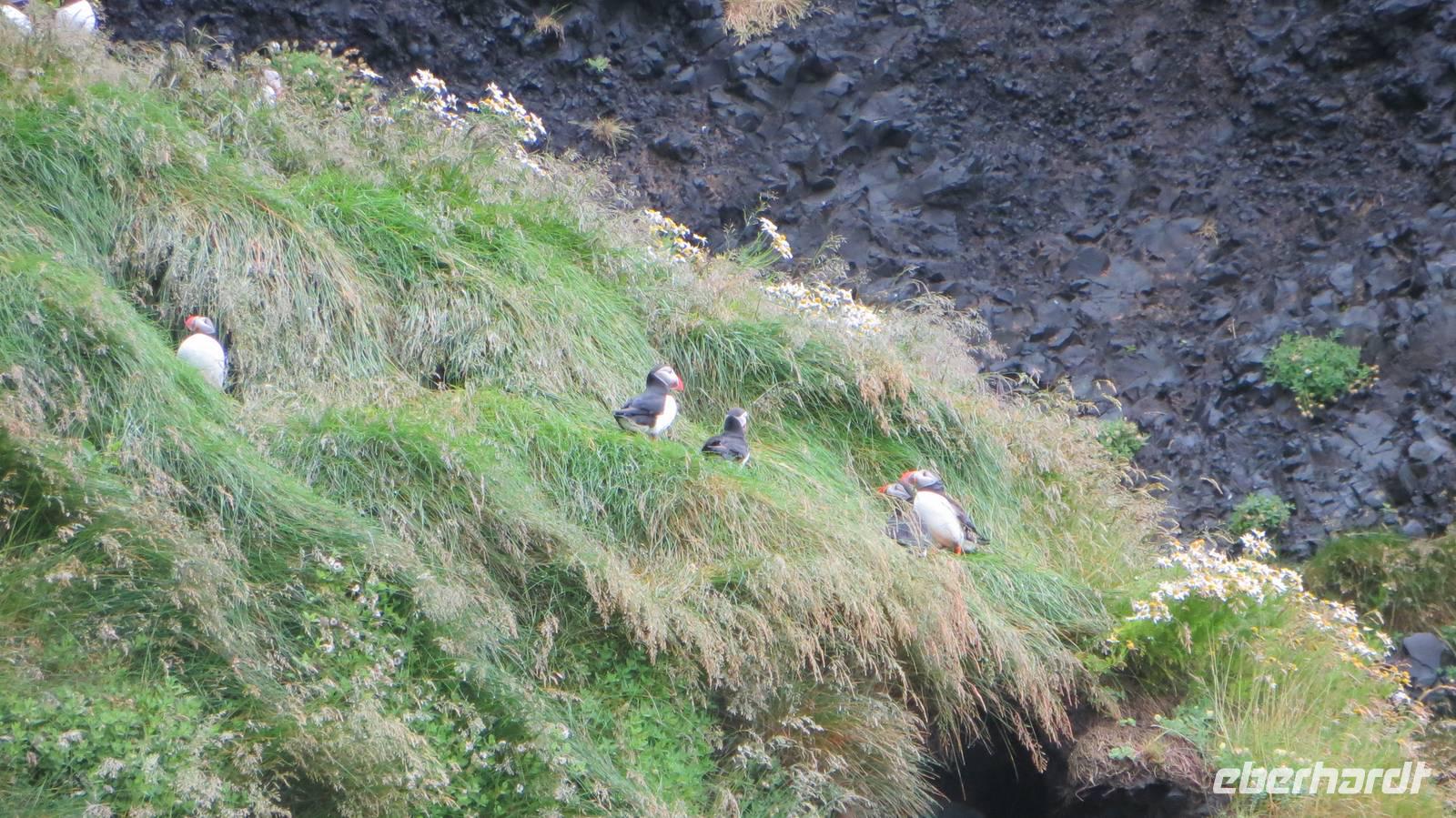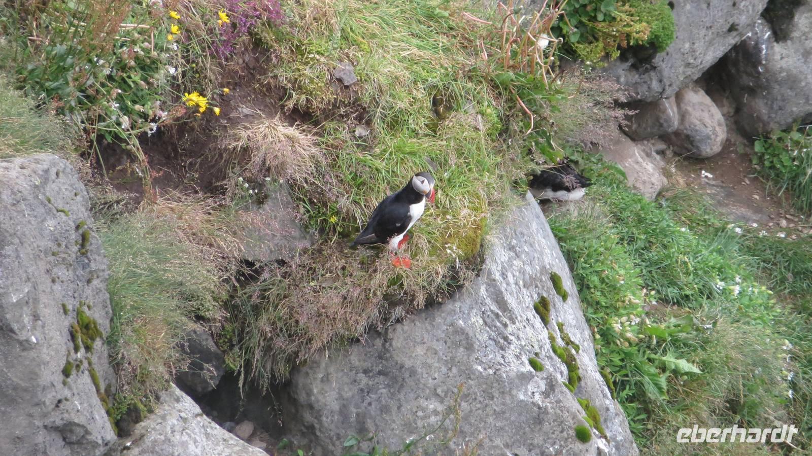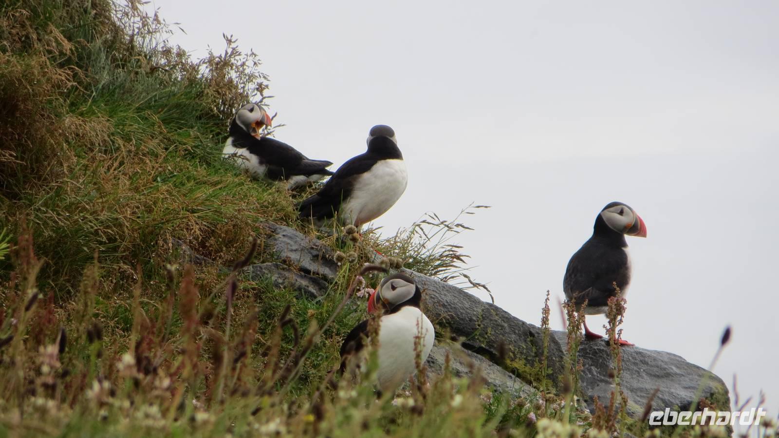 Nach einem reichhaltigen Frühstück starten wir heute leider bei Regen in den Tag. Doch dies sollte sich wohl Dank einer Dame, welche das Wetter besungen hatte, im Laufe des Tages schnell ändern. Von unserem Hotel fahren wir den Berg hinab bis zur Küstenstraße, wo wir noch einen kurzen Stopp an dem Dichterhaus von Jôn Sveinsson einlegen. Dieser hatte hier in den 1860er-Jahren seine Kindheit verbracht und ist dann später durch seine Nonni-Kinderbücher bekannt geworden. Über eine Brücke, die am Flughafen von Akureyri vorbeiführt, erreichen wir die andere Seite des Fjords, welchen wir erst einmal noch Stück entlang fahren. Dann verlassen wir die Küste um zum sagenumwobenen Godafoss zu fahren. Dieser wird auch als Götterwasserfall bezeichnet, da Þorgeir nach seiner Entscheidung, dass die Isländer zum Christentum übertreten sollen, alle seine heidnischen Götterbilder in den Wasserfall geworfen hat. Wir steigen am Wasserfall aus und unternehmen einen kleinen Spaziergang entlang dieses 12 m hohen Sturzes und dem Fluss Skálfandafljót. Über eine Brücke, wo wir nochmals einen herrlichen Blick auf das Gewässer haben, erreichen wir wieder unseren Bus. Weiter führt uns die heutige Reise in das malerische Fischerörtchen Húsavík. Hier gehen wir erst einmal in eine Bank, um uns für die kommenden Tage mit weiteren Isländischen Kronen auszustatten. Da es hier in der Bank auch noch kostenlosen Kaffee gibt, legen wir kurzerhand eine kleine Kaffeepause ein, bevor dann jeder zu seiner individuellen Besichtigungstour aufbricht. Wir bummeln durch die Straßen der Stadt, kaufen uns eine Kleinigkeit für unser Mittagspicknick, besuchen die kleine Holzkirche aus dem Jahre 1907 und spazieren entlang des Hafens, von welchem wir die schneebedeckten Berge im Hintergrund sehen. Ein tolles Bild, das wir mit unseren Fotoapparaten für die Daheimgebliebenen festhalten. Anschließend fahren wir weiter entlang der Küste über die Halbinsel Tjörnes. Wir sind jetzt nur noch ca. 2360 km vom Nordpol entfernt, dennoch herrschen hier auf Island die höchsten Temperaturen. Um unseren Tag mit einer kleinen Überraschung zu versüßen, legen wir einen kurzen Stopp ein, wo wir das erste Mal während unserer Reise die niedlichen Papageitaucher sehen. Diese typisch für die Nordhalbkugel anzutreffenden Vögel werden jedoch immer weniger, was vor allem am Wandel des Klimas und an deren beschaulichem Ausbrüten von nur einem einzigen Ei pro Saison liegt. Mit allerhand tollen Fotos im Kasten setzen wir unsere Fahrt nach Süden zum Nationalpark Asbyrgí fort. Hier machen wir auf der Terrasse des Besucherzentrums mit den eingekauften Snacks aus Húsavík und Blick auf die hufeisenförmige Asbyrgí Schlucht ein Mittagspicknick. Wieder gestärkt, fahren wir weiter in die Schlucht hinein, welche durch einen vom Vatnajökull kommenden Gletscherfluss entstanden ist. Sie ist mit Bäumen bewachsen und lädt somit zu einem kleinen Waldspaziergang ein. Durch den Wald und vorbei an dem See unterhalb des ehemaligen Wasserfalles laufen wir bis zu einem Aussichtpunkt, der uns einen weiten Blick über diese beeindruckende Schlucht und den Botnstjörn See eröffnet. Abschließend laufen wir nochmals zum See. Wir genießen diese traumhafte Natur und beobachten eine kleine Entenfamilie. Nun ist es langsam Zeit die Rückfahrt nach Akureyri anzutreten. Auf unserem Rückweg halten wir auf der gegenüberliegenden Seite von Akureyri. Das Wetter ist im Gegensatz zu heute Morgen sehr freundlich, so dass wir einen fantastischen Blick auf das Städtchen haben. Wieder im Hotel trifft sich ein Teil der Gruppe zu einem gemeinsamen Spaziergang durch den gleich am dem Hotel liegenden Botanischen Garten, welcher mit einer tollen Blumenpracht glänzt. 18:30 Uhr treffen wir uns schließlich im Hotelrestaurant zum gemeinsamen Abendessen. Auch heute hält das Buffet wieder allerhand leckere Speisen und Köstlichkeiten für uns bereit. Damit wir nicht nur die Island-Pferde mal gesehen haben, sondern auch sagen können, dass wir auf einem gegessen haben , bricht ein Großteil der Gruppe zu einem abendlichen Reitausflug auf. Dieser bereitet allen viel Freude, so dass alle gut gelaunt zurück ins Hotel kehren. Bei einem Trink an der Hotelbar lassen wir den Abend mit einer Berichterstattung über das Reiterlebnis ausklingen.