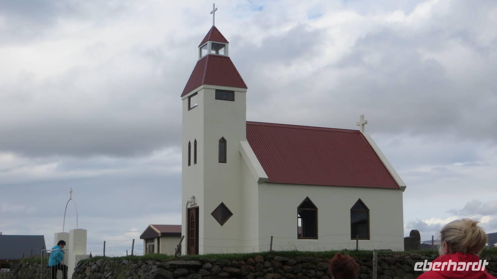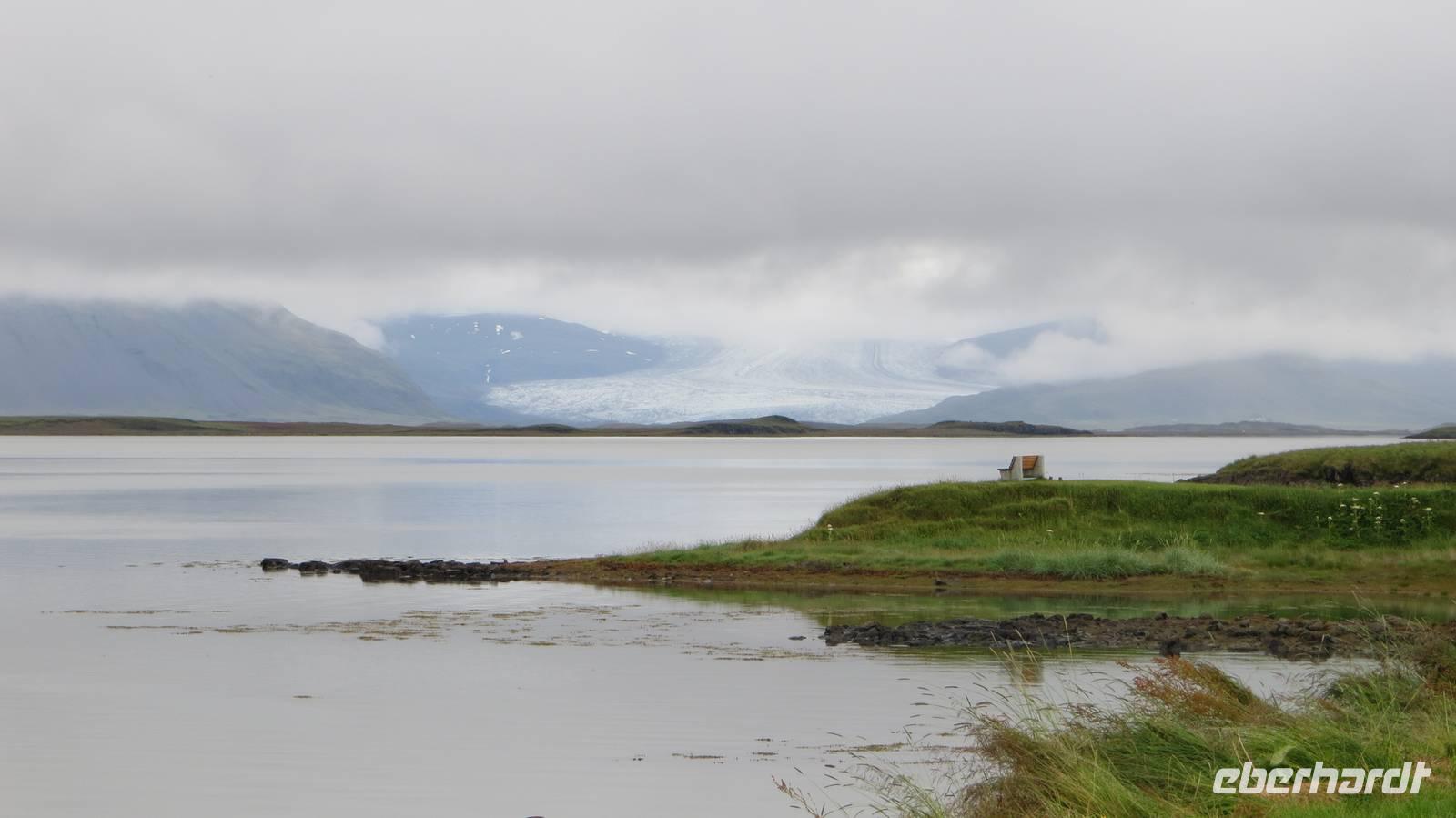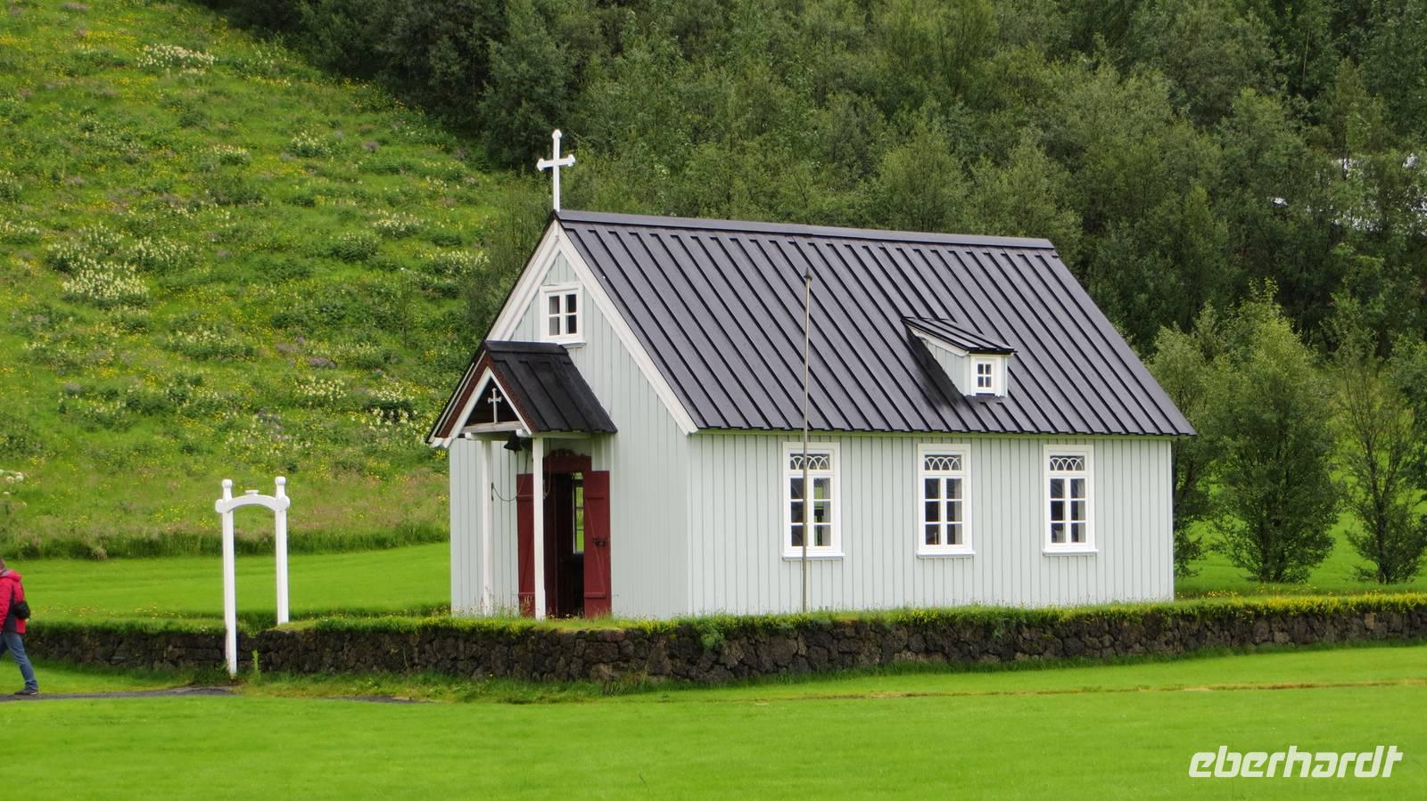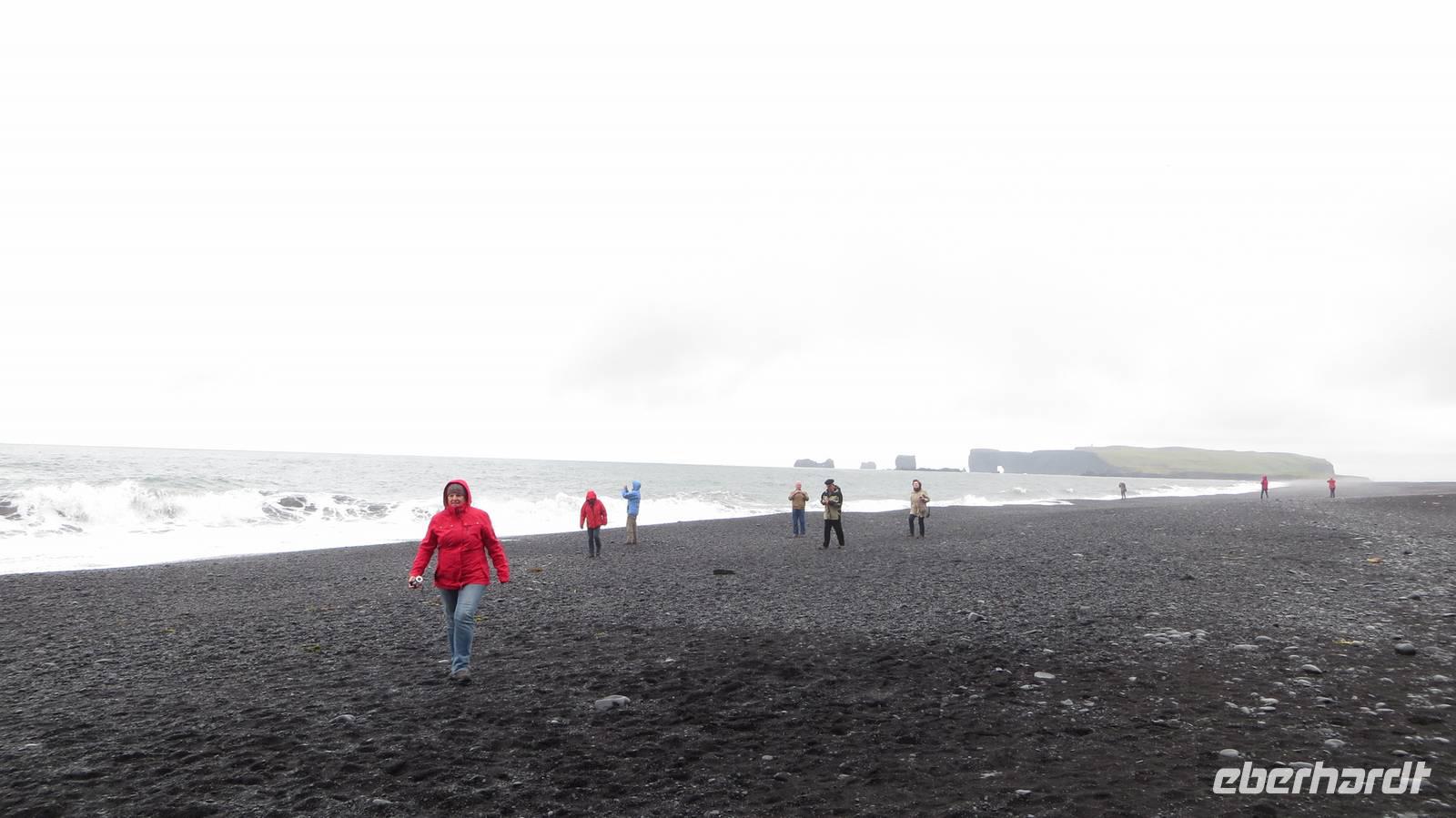 Nachdem Frühstück haben wir noch Zeit bis zur Abfahrt und genießen die neben unserem Hotel gelegene Seelandschaft mit den mächtigen Gletscherausläufern im Hintergrund. Ein herrlicher Blick, der zum längeren Verweilen einlädt. Aber nun ist es Zeit Abschied zu nehmen und so verlassen wir gegen 09:00 Uhr die Kleinstadt Höfn. Zwischen Gletscher und Meer fahren wir ca. 85 km bis zur Gletscherlagune Jökulsárlon, auf der riesige Eisberge schwimmen, die vom dahinterliegenden Breiðamerkurjökull abgebrochen sind. Die Lagune hat eine Verbindung zum offenen Meer und besteht deshalb zur Hälfte aus Süß- und zur anderen Hälfte aus Salzwasser. Mit einem abenteuerlich aussehenden Amphibienfahrzeug fahren wir von Land aus in den See, der mit 248 m der tiefste See Islands ist. Zwischen den unterschiedlichst geformten Eisbergen, welche nur zu 10 % aus dem Wasser ragen, schippern wir durch die Lagune. Eine atemberaubende Kulisse, die übrigens auch schon als Filmkulisse für Hollywood-Filme, wie z.B. James Bond oder Batman, genutzt wurde. Neben den blauen teilweise mit schwarzer Asche versetzten Eisbergen sehen einige Gäste auch Robben, die hier vereinzelt anzutreffen sind. Zur Krönung unserer Fahrt wird ein Stück Eis aus dem See gefischt und in kleine Stücke zerhackt, so dass jeder einmal ein Stück von diesem über 1.000 Jahre alten Gletschereis probieren kann. Nach dieser Abkühlung benötigen wir nun aber einen starken Schnaps zum Aufwärmen und so lädt Nadine zu einer Runde isländischen Brennivín ein . Dieses 37,5 %-haltige Nationalgetränk der Isländer ist ein Branntwein, der aus Kartoffeln und Kümmel erzeugt und auch als "schwarzer Tod" bezeichnet wird. Wieder an Land genießen wir ein letztes Mal den Blick auf Jökulsarlon und setzen schließlich unsere Fahrt in Richtung Westen fort. Unterwegs legen wir in Höf eine kleine Pause ein, wo wir die kleine, hübsche grasbewachsene Kirche sowie den danebenliegenden Friedhof besichtigen. Gegen Mittag erreichen wir die Gletscherzunge Svínafellsjökull. Bis auf wenige Meter nähern wir uns bei einer kleinen Wanderung diesem Ausläufer, welcher für uns einen fantastischen Anblick bietet. Wir beobachten auch eine Gruppe, welche gerade zu einer Gletscherwanderung startet. Weiter geht es nun zum Skaftafell Nationalpark, der eine Fläche von 1.600 km² besitzt und größtenteils mit Eis bedeckt ist. Er umgibt auch den mit einer Höhe von 2.110 m höchsten Berg der Insel - den „Hvannadalshnúkur". In diesem Nationalpark steuern wir als erstes das Besucherzentrum an, wo wir eigentlich unsere Mittagspause verbringen möchten. Aber leider hat das Restaurant gerade technische Probleme, so dass sie uns leider nichts zu essen verkaufen können. Wir schauen uns aber trotzdem noch einen kurzen Dokumentarfilm über den 1996 stattgefundenen Vulkanausbruch im Skaftafell Nationalpark an. Wir sind schockiert, welche Auswirkungen so ein Ausbruch doch haben kann. Um nun aber eine Kleinigkeit zu essen, fahren wir ein kleines Stück bis zum nächsten Rasthof, wo wir uns für die weitere Fahrt stärken. Anschließend setzen wir unsere Fahrt nach Vík fort. Unterwegs legen wir noch mehrere Stopps ein, wo wir das arktische Weidenröschen aus der Nähe betrachten, einen weiteren der vielen Wasserfälle fotografieren, auf einem weichen moosbewachsenen Lavafeld laufen, die bösen Geister durch den Weiterbau einer Steinpyramide verjagen und natürlich auch noch die Reisebegleiterin Nadine in die Lupinen schicken ?. Schließlich erreichen wir am Abend das Städtchen Vík, wo wir sofort zu ein kleiner „Ortsrundfahrt" starten. Dabei kommen wir auch zu dem berühmten schwarzen Sandstrand, von welchem die emporragenden Reynisdranger gut zu sehen sind. Der Sage nach sind dies versteinerte Trolle, welche versucht haben einen Dreimaster aus dem Meer zu ziehen. Die Zeit schreitet schnell voran und so entscheiden wir nun erst einmal im Hotel einzuchecken. Nachdem alle ihre Zimmer bezogen und sich etwas frisch gemacht haben, gehen wir gemeinsam zum Abendessen. Wie immer schmeckt es ausgezeichnet, so dass alle gut gesättigt das Restaurant für einen anschließenden Spaziergang durch den Ort verlassen. Hierbei besuchen wir auch die Wollfabrik, die sich nicht weit von unserem Hotel befindet. So vergeht der Abend wie im Flug und es ist Zeit schlafen zu gehen. Unsere letzte Nacht auf dem „Lande" ist angebrochen.