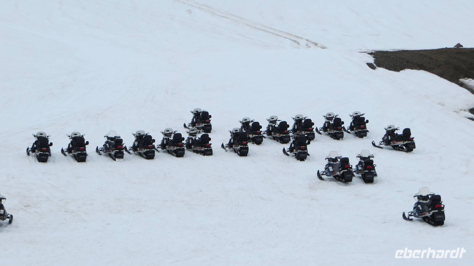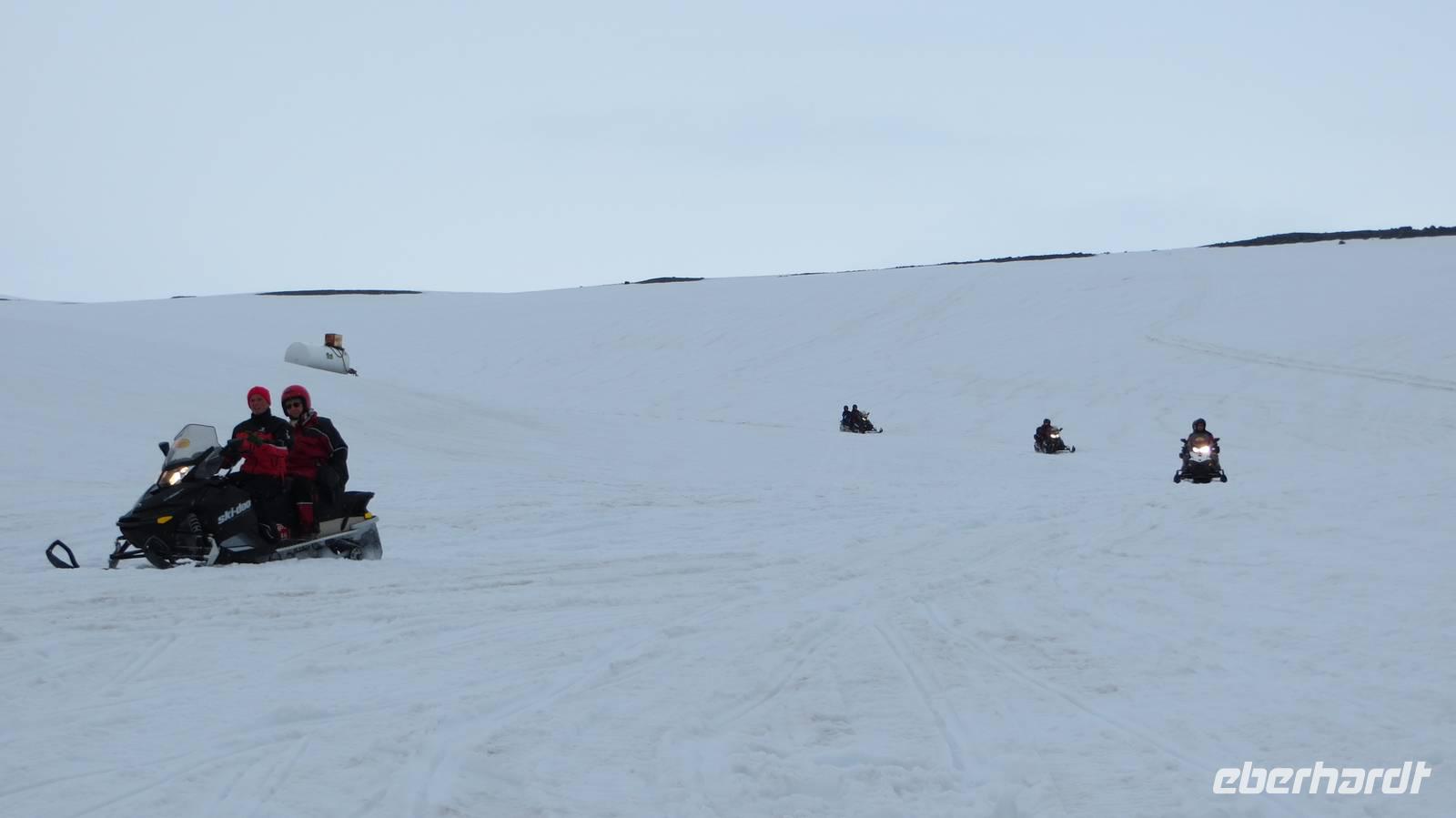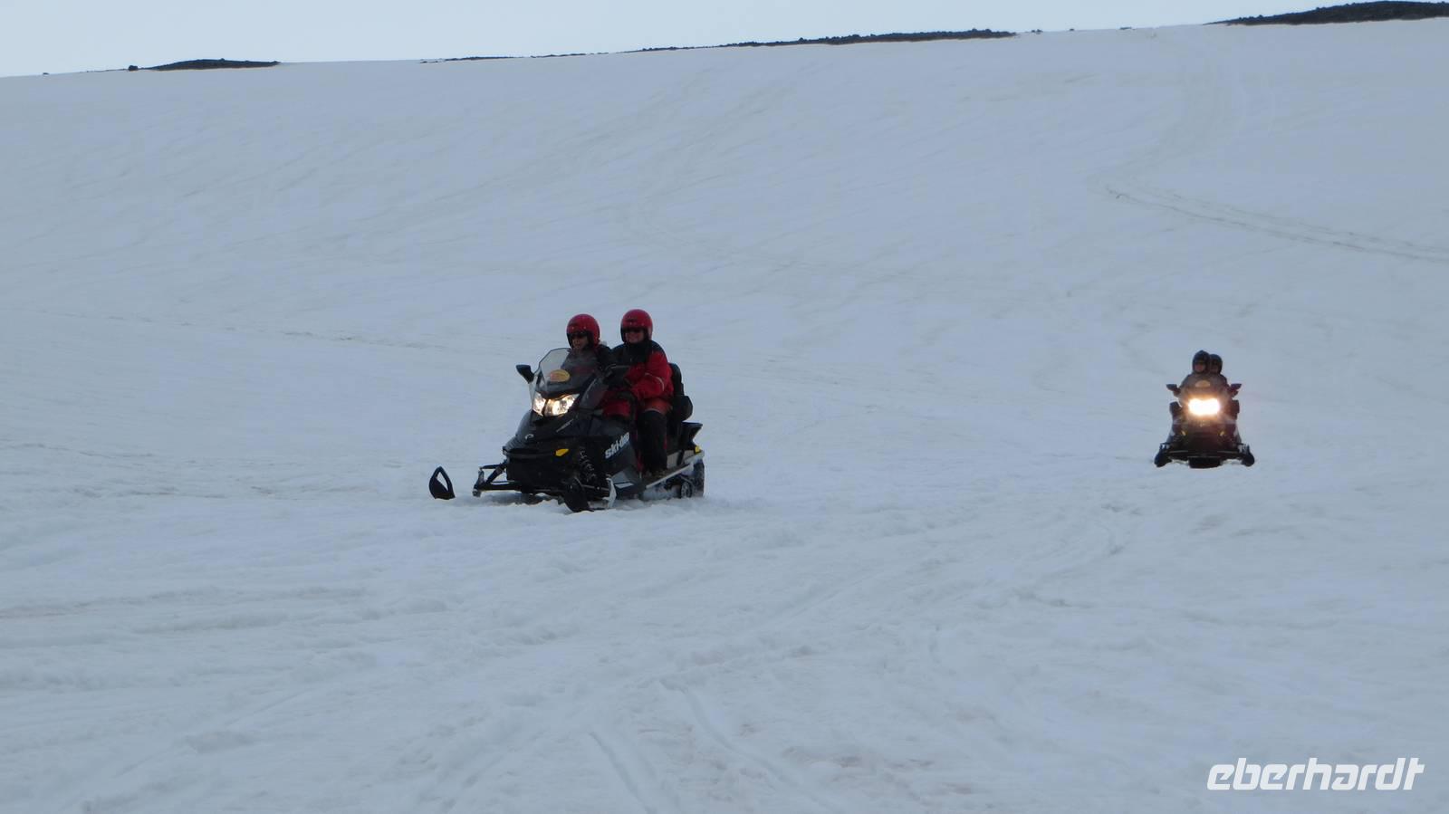 Gleich nachdem wir heute alle im Bus sitzen, überbringen uns Ulrik und Siggi die gute Botschaft. Über Nacht konnte das defekte Mikrofon, dass uns während der Reise immer mal wieder einen Streich gespielt hat, nun endlich repariert werden, so dass wir nun also in den kommenden Tagen Ulrik's zahlreichen Erläuterungen und Geschichten wieder bestens im gesamten Bus verfolgen können . Durch den Wald, welcher für isländische Verhältnisse wie der reinste Urwald ist, fahren wir zurück bis nach Egilsstaðir. Von hier geht es weiter zur Ostküste Island, wo wir auf den längsten Fjörd an dieser Küste treffen. Es ist der Reyðarfjörður, welcher ca. 30 km ins Landesinnere reicht. Bei einem Fotostopp kurz vor dem 6 km langen Tunnel zum Fáskrúðsfjörður betrachten wir das vielfach geschichtete Basalt, das von eiszeitlichen Gletschern geformt wurde, bevor wir schließlich gegen 10:00 Uhr in Stöðvarfjörður ankommen. Dieser Ort ist durch Petra María Sveinsdóttir berühmt geworden. Sie war eine leidenschaftliche Steinsammlerin und hat während ihres Lebens eine der weltweit größten privaten Sammlungen verschiedenster Steine bzw. Mineralien jeder Größe, Form, Farbe und Herkunft geschaffen. Wir unternehmen einen Rundgang durch Petra's ehemaligen liebevoll angelegten Garten sowie ihr Wohnhaus. Beeindruckt von dem Umfang und der Vielfältigkeit der Sammlung fällt uns aber auch auf, dass sie nicht nur Steine, sondern auch Firmenkugelschreiber, Streichholzschachteln, Stofftaschentücher, Muscheln und andere kleine Gegenstände gesammelt hat - sie war eben eine richtige passionierende Sammlerin . Wieder im Bus setzen wir unsere Fahrt entlang der Küste fort. Damit wir den Atlantik nicht nur von den Fenstern des Busses betrachten können, sondern auch mal aus der Nähe sehen, unternehmen wir einen kleinen Spaziergang zum schwarzen Strand. Wir halten die Hände ins Wasser und stellen fest, dass es hier wohl leider nichts mit baden wird . Während uns eine frische Meeresbrise um die Nase weht, lassen wir die traumhafte Kulisse auf uns wirken. Anschließend fahren wir weiter zu einem namenlosen Wasserfall. Wie wir nun schon während unserer Reise mitbekommen haben, gibt es diese auf Island en masse. So ist es also nicht verwunderlich, dass dieser keinen Namen besitzt. Durch einen Zaun, welcher durch ein Art "Fass" passiert werden kann, nähern wir uns diesem eher kleinen aber dennoch tollen Naturschauspiel, welches sich eingebettet in einer geschichteten Basaltlandschaft befindet. Nun ist es aber Zeit für eine Stärkung und so verbringen wir die heutige Mittagspause in dem niedlichen Fischerstädtchen Djúpivogur. Am malerischen Hafen essen wir hier im ältesten Handelshaus Island, dem Langabúð. Es erinnert an ein Wikinger-Langhaus und dient heute als Café, Fremdenverkehrsamt sowie Ortsmuseum. Am Nachmittag erreichen wir schließlich unser Hotel in Höfn, wo wir bereits schon von 2 Jeeps erwartet werden, welche heute einen Großteil der Gruppe zu einem einmaligen Ausflug zu Europas größten Gletscher, dem Vatnajökull, bringen sollen. Doch bevor es los gehen kann, müssen uns noch kurz umziehen und die dicken Socken aus dem Koffer holen. Fertig für die Gletschertour starten wir leider bei Regen in Richtung Vatnajökull. Lediglich 3 Gäste bleiben in Höfn und machen gemeinsam mit Ulrik und Siggi die Stadt unsicher, die gerade einmal über 1700 Einwohner verfügt. Im Jeep sind wir schon aufgeregt auf die bevorstehende Fahrt mit dem Schneemobilen. Was wird uns erwarten? Durch die herrliche Fjordlandschaft geht es bis zu einer Schotterpiste, wo wir die Asphaltstraße verlassen. Einige der Gäste müssen nun in einem Superjeep umsteigen. Steil bergauf fahren wir durch unwegsames Gelände bis über die Wolken, wo wir die Schneemobil-Station an Schneegrenze erreichen. Nun schlüpft jeder in einen Overall, Gummistiefel und Helm. Bestens ausgestattet, begeben wir uns zu den Schneemobilen. Doch bevor es losgehen kann, erhalten wir noch eine Einweisung, damit wir auch genau wissen, wie die Mobile funktionieren und was zu beachten ist. Dann ist es endlich soweit. Immer zu zweit wird ein Mobil bestiegen. Voller Adrenalin bestätigen wir den Gasschalter und los geht's. In einer Reihe fahren wir hinten und vorne begleitet von 2 Guides. Anfangs noch etwas zaghaft, aber dann doch schnell mit dem Mobil vertraut fühlend, brettern wir mit voller Freunde durch das unendlich weit scheinende weiße Nichts. Um einen genauen Blick auf die Umgebung zu werfen, tolle Erinnerungsfotos zu machen und ein paar interessante Informationen zu erhalten, machen wir eine kurze Verschnaufpause. Wir steigen ab und erfahren von einem der Guides, dass wir nun auf dem drittgrößten Gletscher der Welt stehen, der ein Ausmaß von 8.100 km² besitzt. Das Eis unter uns hat eine Dicke von bis zu 400 m, kann aber maximal sogar bis zu 1000 m dick sein. Zum Abschluss schießen wir noch ein Gruppenfoto, das uns immer an dieses einmalige Erlebnis erinnern soll. Wieder auf dem Schneemobil fahren wir zurück zur Station. Leider fängt es etwas an zu regnen, so dass die Sicht nicht mehr so gut ist. Wir sind trotzdem sehr glücklich über dieses Erlebnis und könnten noch eine Runde drehen . Wieder in der Station legen wir die Overalls, Stiefel und Helme ab und stoßen mit einem „Vatnajökull-Bier" (gebraut aus Gletscherwasser und mit Kräutern der Umgebung verfeinert) auf die Gletscherfahrt an. Nun schwingen wir uns wieder in die Jeeps, um zurück zum Hotel zu fahren. Es ist sehr neblig und wir sind beeindruckt, wie sicher trotzdem unsere Guides, diese sehr unwegsame Strecke bis zur Asphaltstraße fahren. Im Hotel angekommen, begibt sich ein Teil der Gruppe direkt vor die Fernseher, denn schließlich findet heute auch noch das WM-Finale Deutschland - Argentinien statt. Der Rest der Gruppe geht direkt zum Abendessen. Bei einem leckeren Menüessen tauschen wir uns über das Erlebte aus und verfolgen nebenbei auch das Fußballfinale au