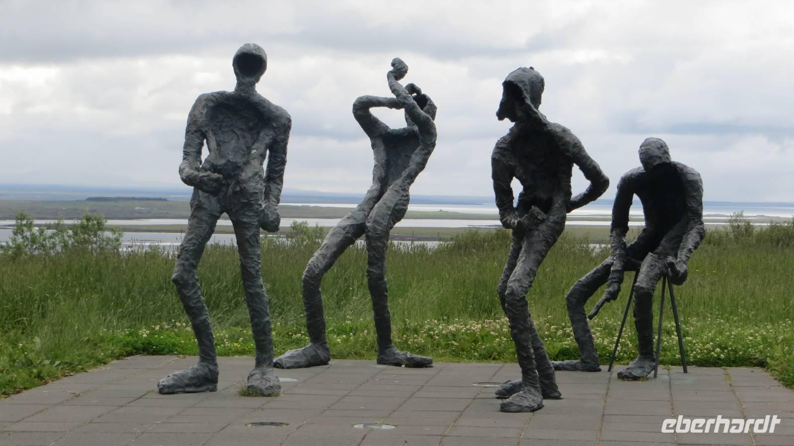 Der heutige Tag in Reykjavík steht zur freien Verfügung. Das Wetter soll etwas durchwachsen sein, aber dennoch hat sich der Großteil der Gruppe zu einem gemeinsamen Stadtrundgang verabredet. Doch bevor wir starten, verabschieden wir erst einmal unsere lieben Gäste aus Stuttgart. Denn sie werden sich heute noch etwas in der Blauen Lagune entspannen und dann ihre letzte Nacht in Reykjavik verbringen. Nachdem wir unser Gepäck sicher in dem Besprechungsraum des Hotels verstaut haben, brechen wir zu unserer Erkundungstour auf. Unser erster Anlaufpunkt ist das Rathaus, welches sich direkt am Stadtteich von Reykjavík befindet und aus Stahl, Glas und Chrome besteht. Wir gehen hinein und schauen uns das riesige Reliefmodell von Island an. Hier können wir den Ablauf unserer Reise nochmals nachvollziehen. Weiter geht es vorbei an der Skulptur des Unbekannten Arbeiters und dem Stadtteich mit seinen entzückenden Entlein bis zur 73 m hohen Hallgrímskirche. Sie ist eines der Wahrzeichen von Reykjavík und mit 1.200 Sitzplätzen das größte Gotteshaus auf Island. Vor ihr befindet sich die Skulptur von Leif Eriksson, die 1930 anlässlich der 1.000-Jahr-Feier des Althing Islands von den USA geschenkt wurde. Als wir die Kirche erreichen, werden gerade noch die Leute für ein Gesangskonzert hereingelassen. Kurzerhand entscheidet sich auch eine Dame unserer Gruppe dem Konzert beizuwohnen. Wir nutzen unterdessen die Zeit um den Turm der Kirche mit einem Fahrstuhl zu „erklimmen" . Von oben bietet sich uns ein toller Ausblick auf die Stadt und die Bucht. Als wir alle wieder unten sind, beginnt es stark zu regnen. Wir entscheiden uns den Regenguss abzuwarten und nach dem Gesangskonzert noch die Kirche von innen zu besichtigen. Sie ist eher schlicht gehalten, wartet aber mit einer fantastischen Orgel auf. Nun ist der Regen auch vorbei und wir können unseren Rundgang fortsetzen. Entlang der Frakkastígur spazieren wir bis runter bis zum Meer, wo sich das berühmte Sonnenboot befindet. Dieses wurde 1986 von dem Künstler Jón Gunnar Árnason geschaffen und bietet uns für ein letztes Gruppenfoto ein gutes Motiv. Nächstes Ziel ist nun die Harfe (Harpa), die direkt am Hafen von Reykjavík gelegen ist. Sie ist ein Konzert- und Konferenzhaus, welches erst 2011 eröffnet wurde und durch seine einzigartige Architektur beeindruckt. Neben dem Sitz der Nationaloper und des Nationalorchesters befinden sich in diesem Gebäude auch Souvenirgeschäft sowie ein Restaurant, wo einige einen vorzüglichen Snack genießen und andere sich mit einem Kaffee vergnügen, da für das Mittagessen bereits schon ein Stopp an dem legendären Hot Dog-Stand Baejarins Beztu Pylsur, wo auch schon Bill Clinton einen Hot Dog verzehrt hat, geplant ist. Und so gehen wir direkt nach unserem Besuch der Harfe zu diesem Imbiss. Der Hot Dog schmeckt lecker, so dass wir glatt noch einen vertragen könnten. Aber wir halten uns zurück und lenken unsere Aufmerksamkeit auf die zahlreichen Souvenirläden, die wir noch besuchen wollen, um ein paar letzte schöne Andenken zu erstehen. Hiermit endet auch unsere gemeinsame Rundtour. Jeder nutzt die restliche Zeit bis zum Treff im Hotel für individuelle Dinge, die noch „abgearbeitet" werden müssen. Dann gönnen sich einige noch ein kühles Bier zur Happy Hour im Hotel und schon ist es soweit, dass unser Bus zur Abfahrt nach Keflavík bereit steht. Wir nehmen unser Gepäck und besteigen den Bus, der uns zum Hotel Smari in unmittelbarer Nähe des Flughafens bringt. Unterwegs hören wir noch etwas isländische Volkmusik und erkennen sofort das berühmte Reiterlied wieder, das uns Ulrik während der Rundreise vorgesungen hat. Im Hotel angekommen, gehen wir nach dem Check-In gleich zum Abendessen, welches uns heute in Buffetform serviert wird. Anschließend geht ein Großteil der Gäste gleich zu Bett, denn vor uns stand eine sehr kurze Nacht. Die anderen prüfen noch den Weg zum Flughafen, welchen wir morgen früh gehen werden.