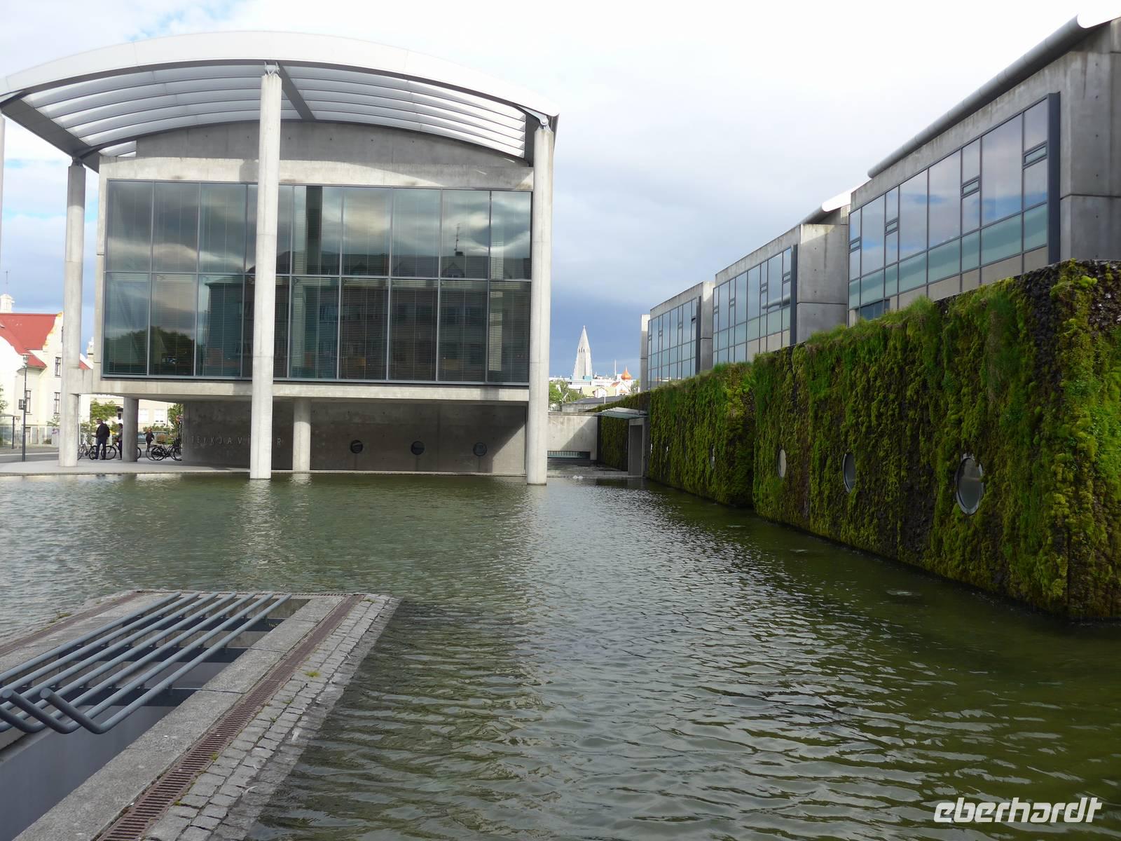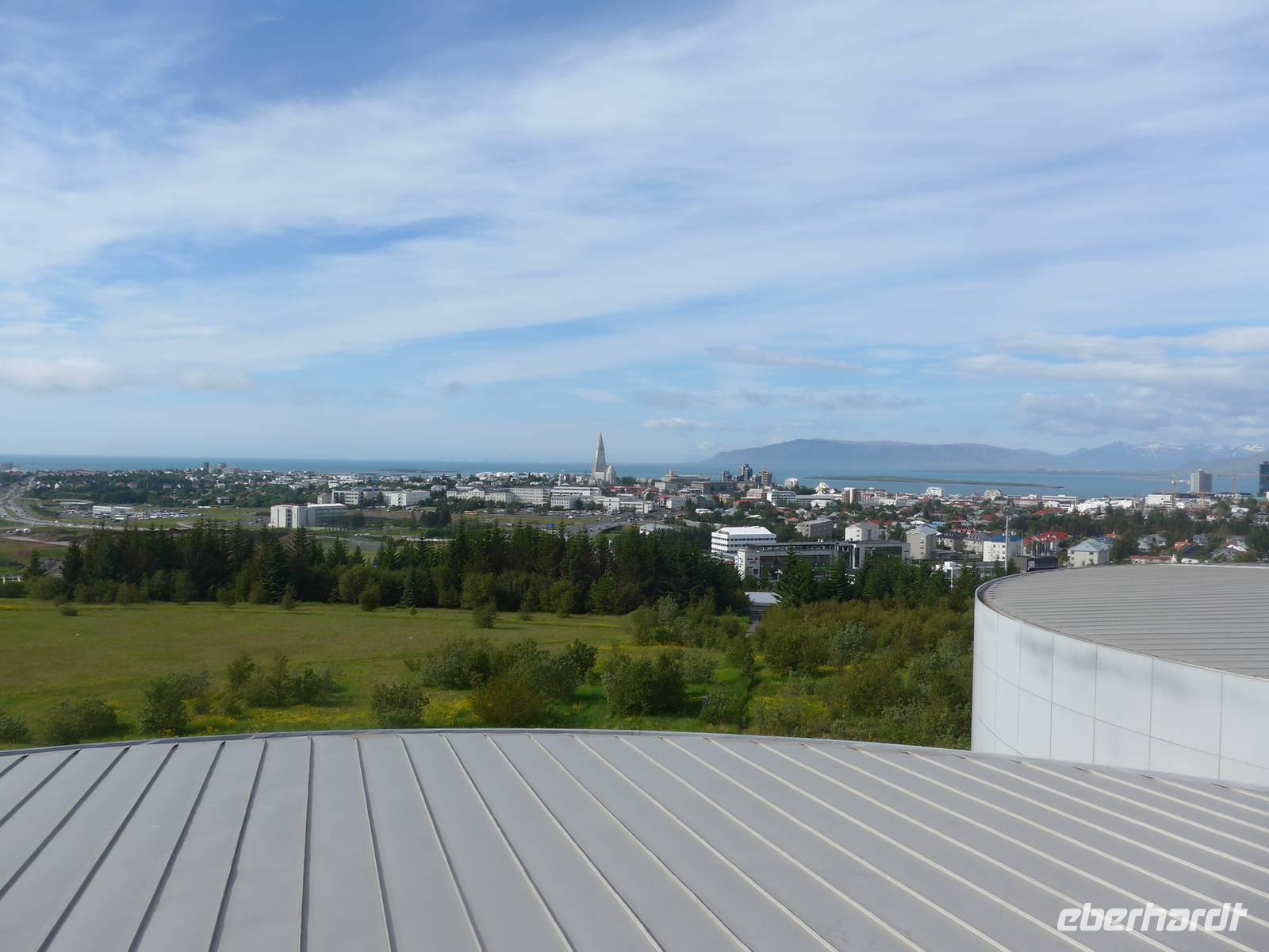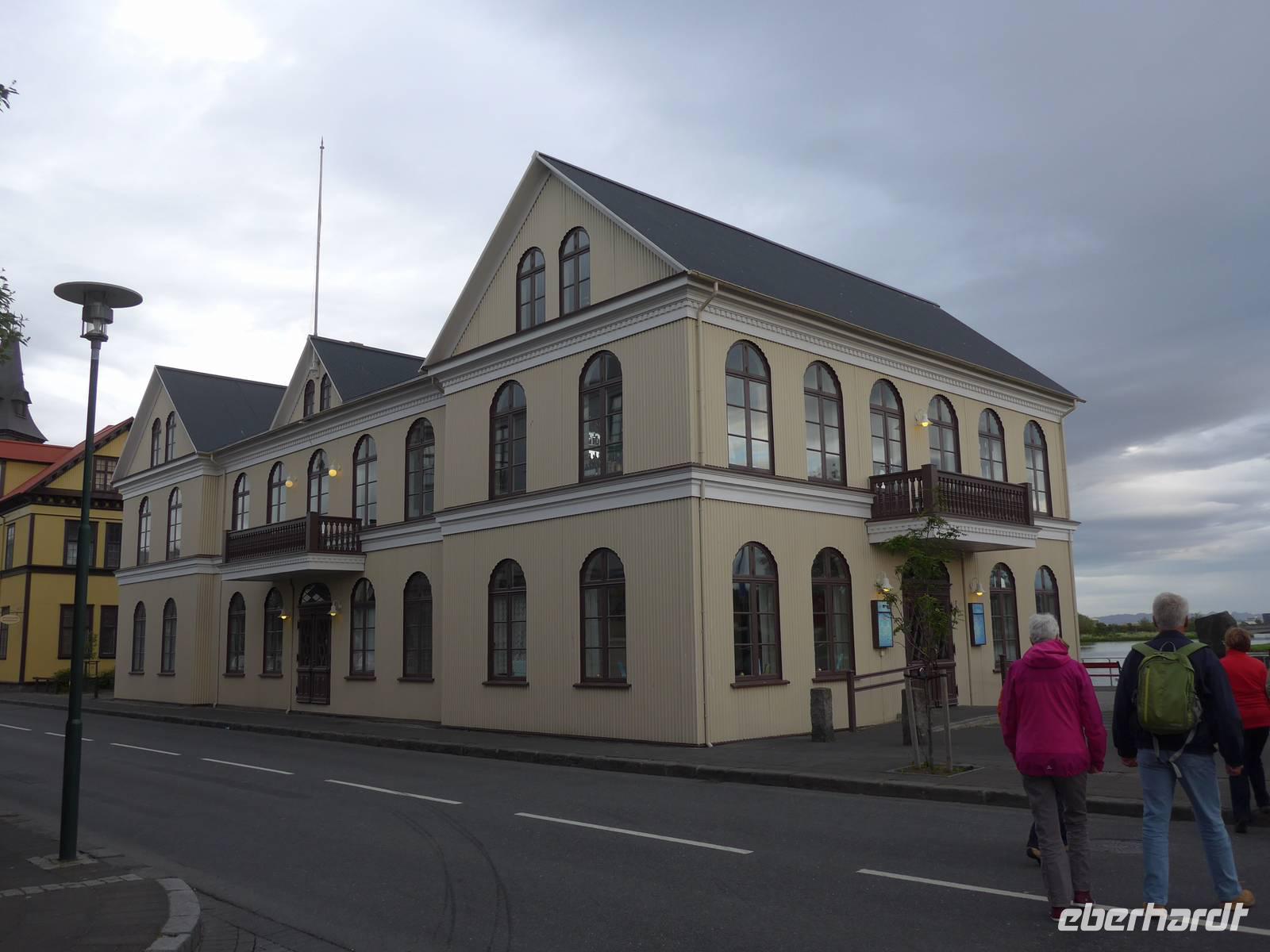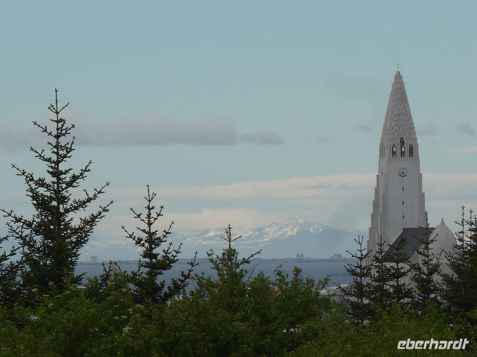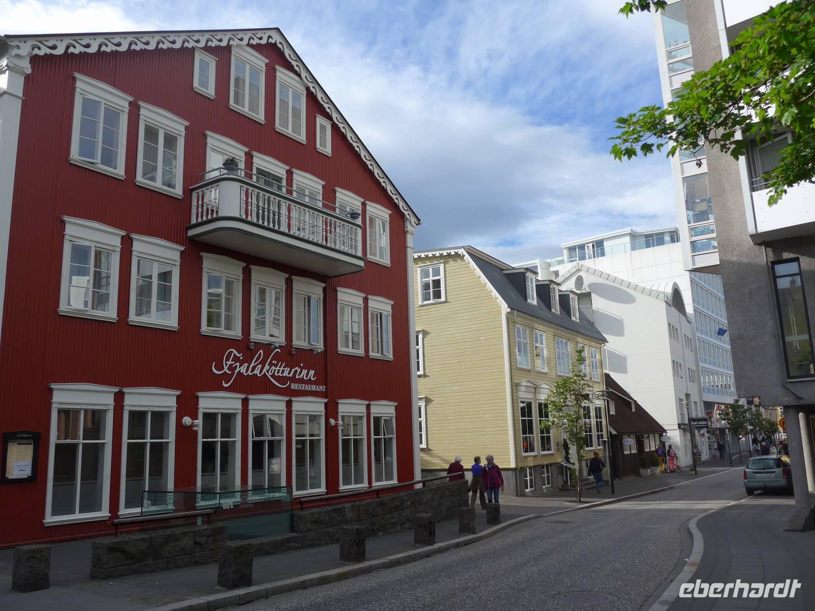 Nun war es Zeit, in unser Hotel Radisson Blue Saga zu fahren und uns für 2 Nächte einzurichten. Wir dankten Jon und trafen uns nach einer halben Stunde wieder, um zu Fuß durch die Stadt zum Abendessen am Hafen zu gehen. Wir nahmen den Weg am Tjörnin, dem See mitten in Reykjavik, vorbei am Rathaus und durch das Stadtzentrum. Das Abendessen gab es im Obergeschgoß eines zauberhaften Lokales mit Blick auf das Hafengeschehen. Das Essen war köstlich und nebenbei konnten wir die Schiffe beobachten. Auf dem Heimweg gingen wir durch das alte Stadtzentrum, sahen das Parlament, die wichtigsten Plätze von Reykjavik, besuchten die Domkirche und spazierten am Ufer des Tjörnin vorbei an der Nationalgalerie und der Nationalbibliothek zurück ins Hotel. Und es war immer noch taghell.