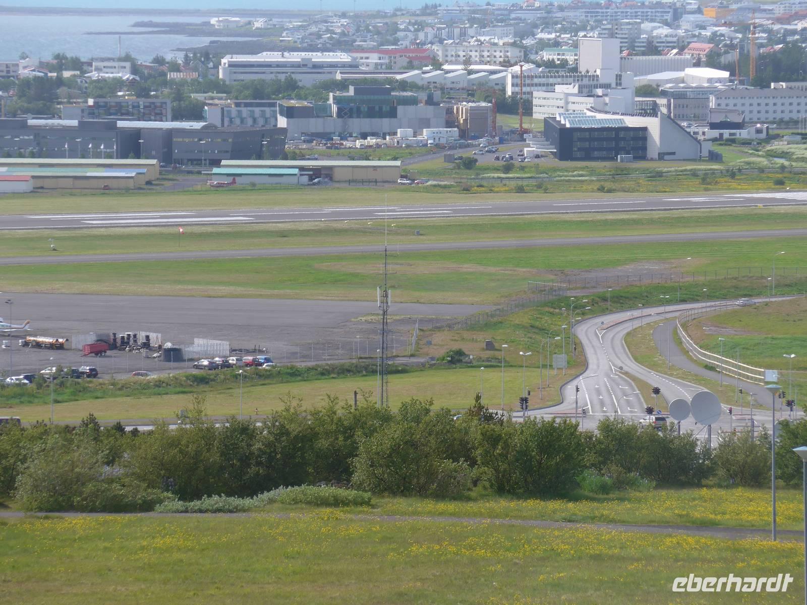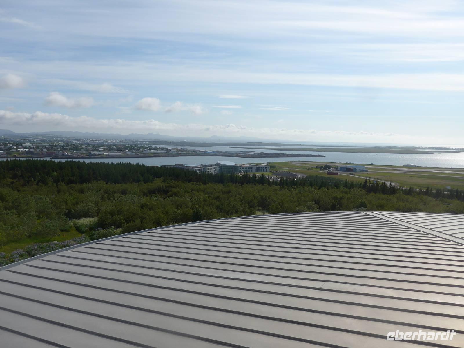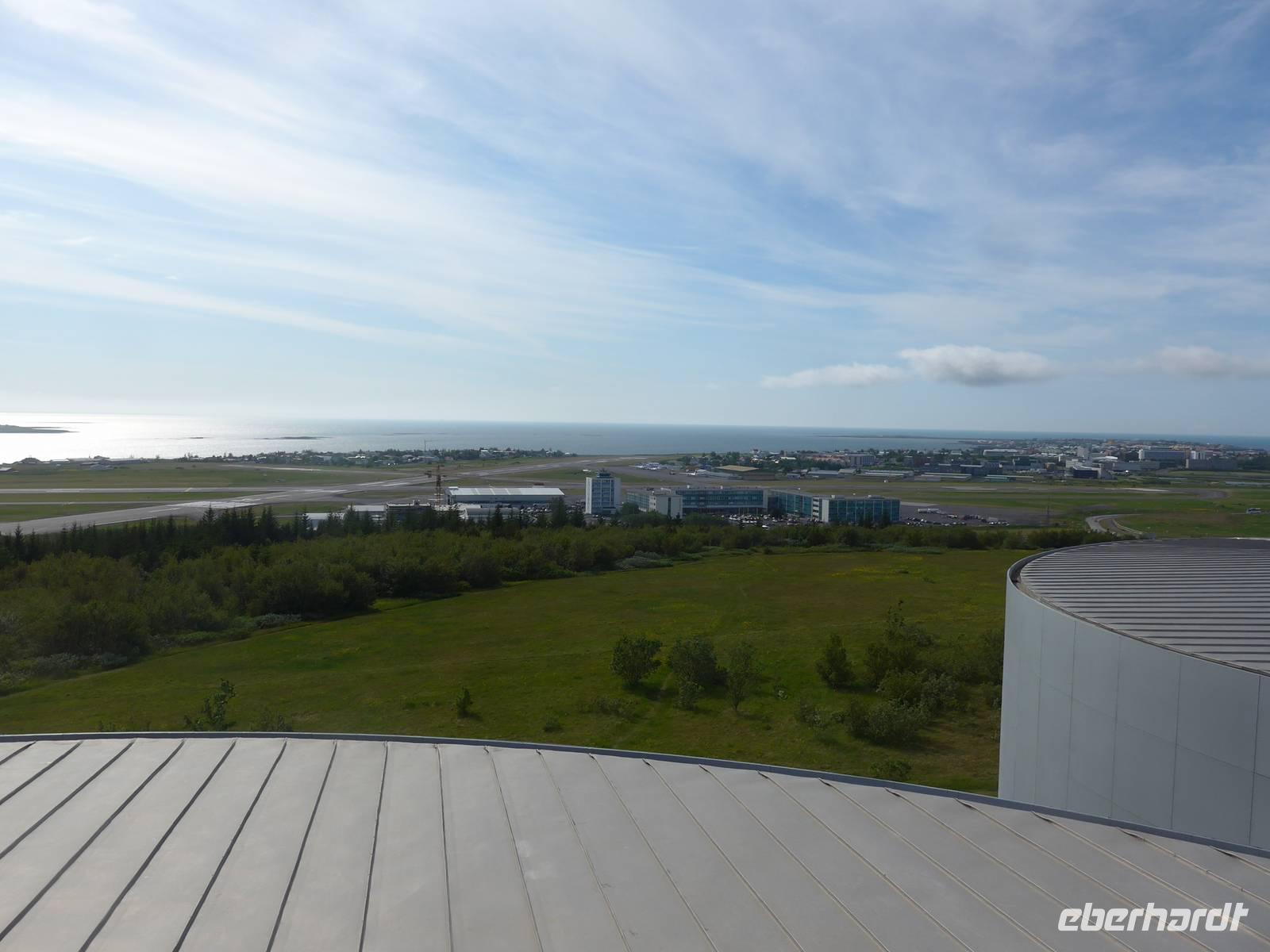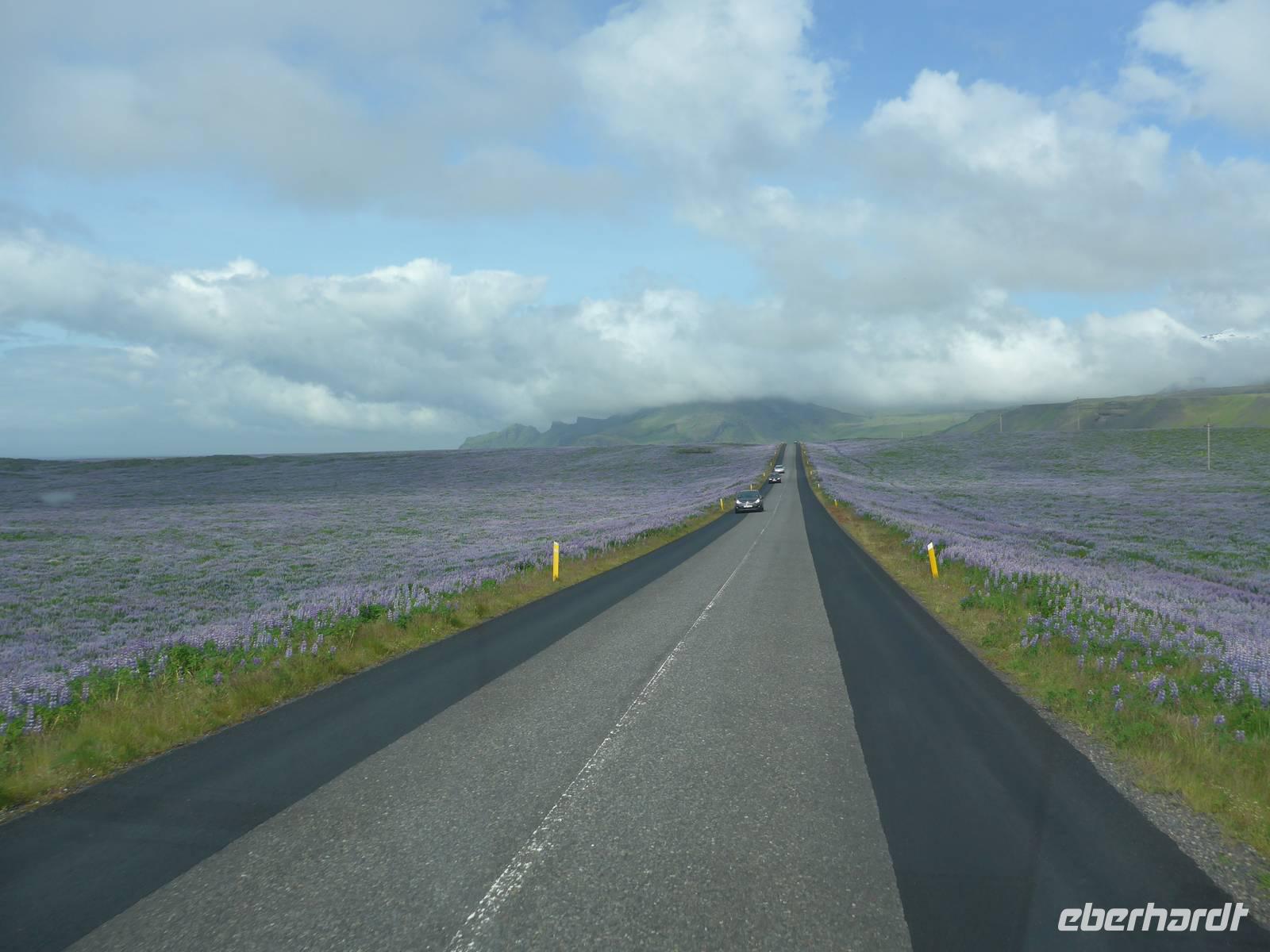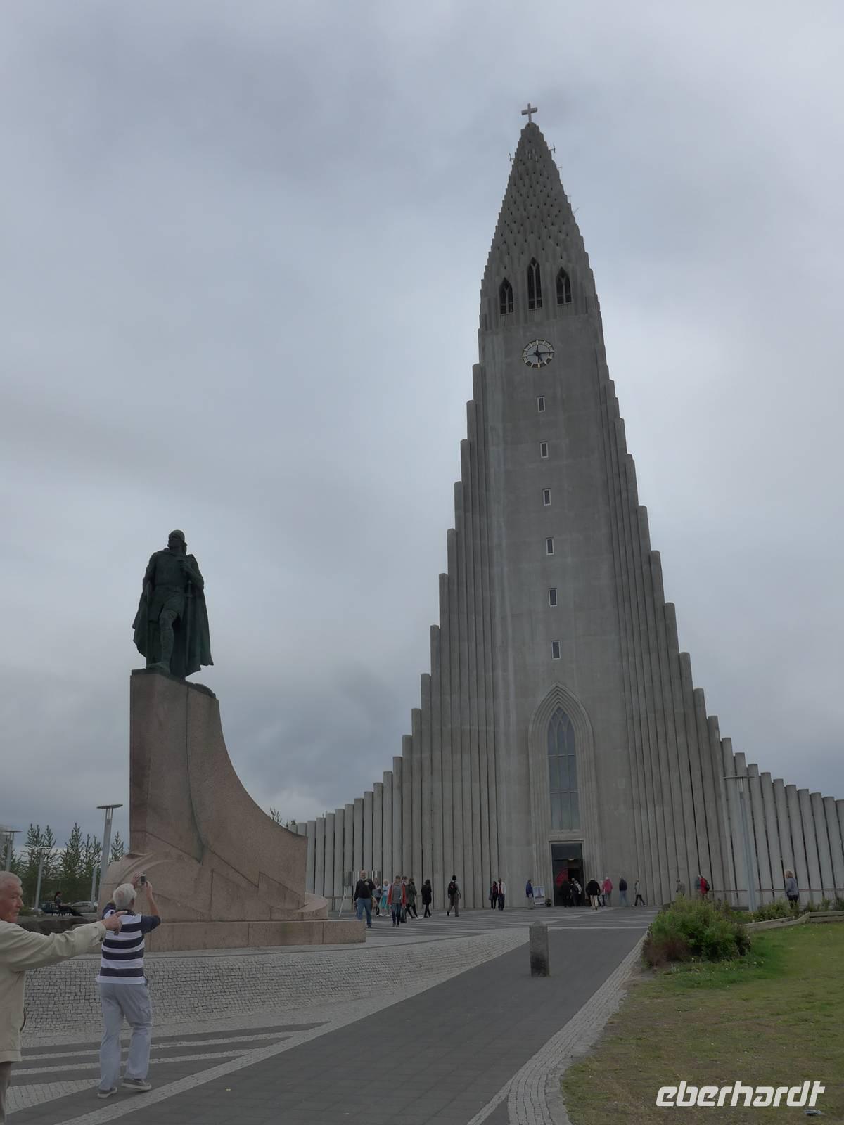 Der internationale Flughafen liegt auf der Halbinsel Keflavik und bis nach Reykjavik waren es 50 km. Noch am Kofferband tauschten wir Geld und draußen trafen wir unsere Gäste aus Frankfurt kommend und unseren Fahrer Jon. Nun waren wir komplett und die Erkundung der Insel konnte beginnen. Jon zeigte uns auf der Fahrt in die Stadt das Wikingerdorf, wo alljährlich Festspiele stattfinden und den Wohnsitz des isländischen Präsidenten. Danach fuhren wir in das Tal der heißen Quellen, wo sich heute die wichtigsten Sportstätten und ein großes Freizeitbad befinden. An der Uferstraße stoppten wir an der "Sonnenfahrt" zu einer Fotopause und weiter ging es vorbei an der Harpa und den neuen Gebäuden im Hafenviertel, um das alte Stadtzentrum herum, hinauf zur Hallgrimskirja-dem Wahrzeichen Reykjaviks. Wir nahmen uns Zeit für eine Innenbesichtigung und staunten über die riesige Orgel, die unten im Kirchenschiff gespielt wird. Danach brachte uns Jon auf den Perlan, zum Heißwasserspeicher für Reykjavik. Von oben hatten wir eine gute Sicht auf die Stadt, den Hausberg Esja und wir konnten endlich die herrlichen Lupinen aus der Nähe betrachten. Die Lupinen wurden aus Alaska eingeführt und dienen dem Schutz von großen Sandflächen.