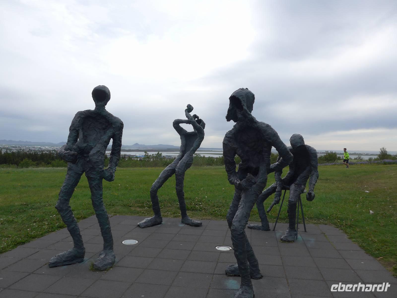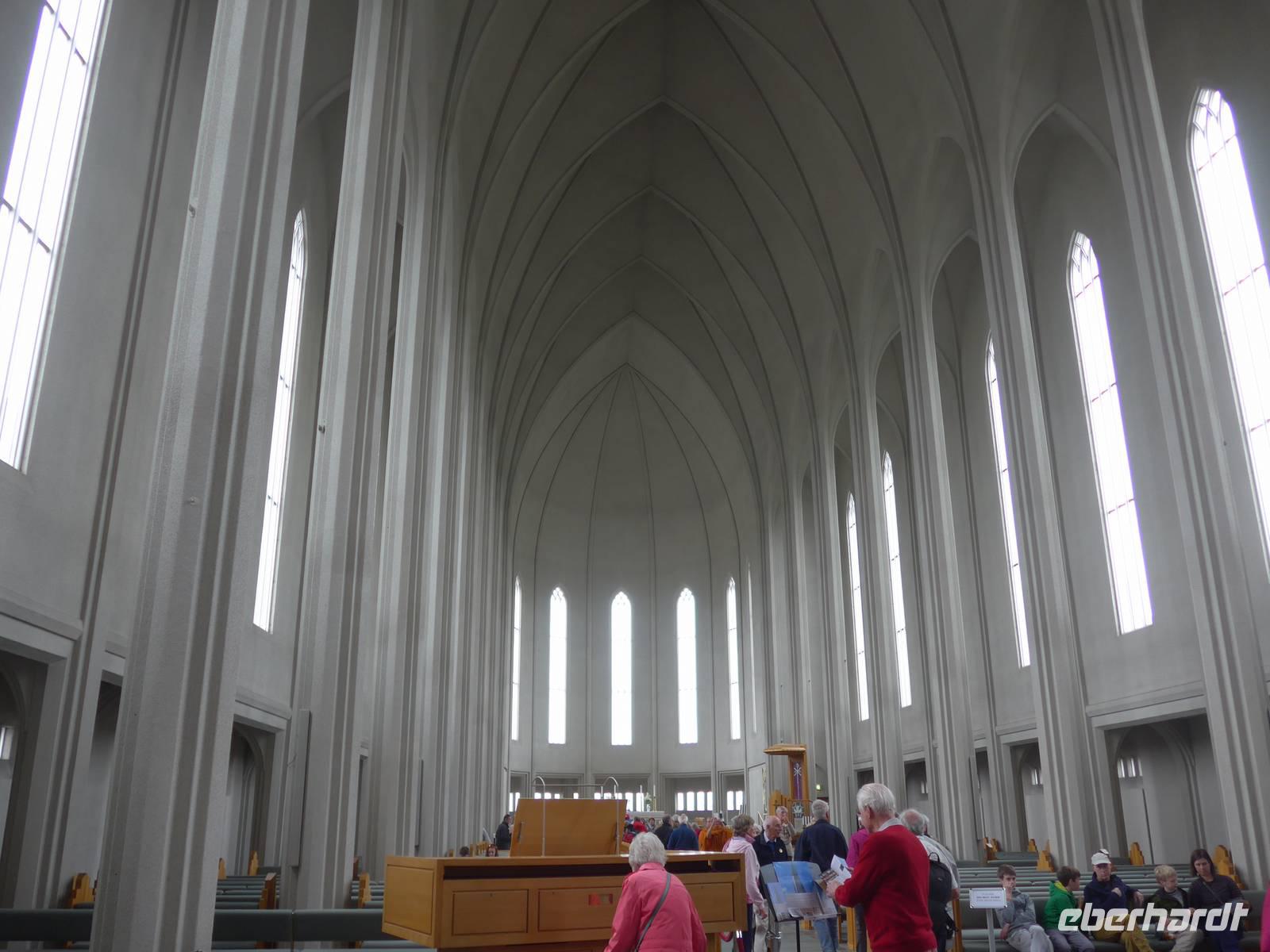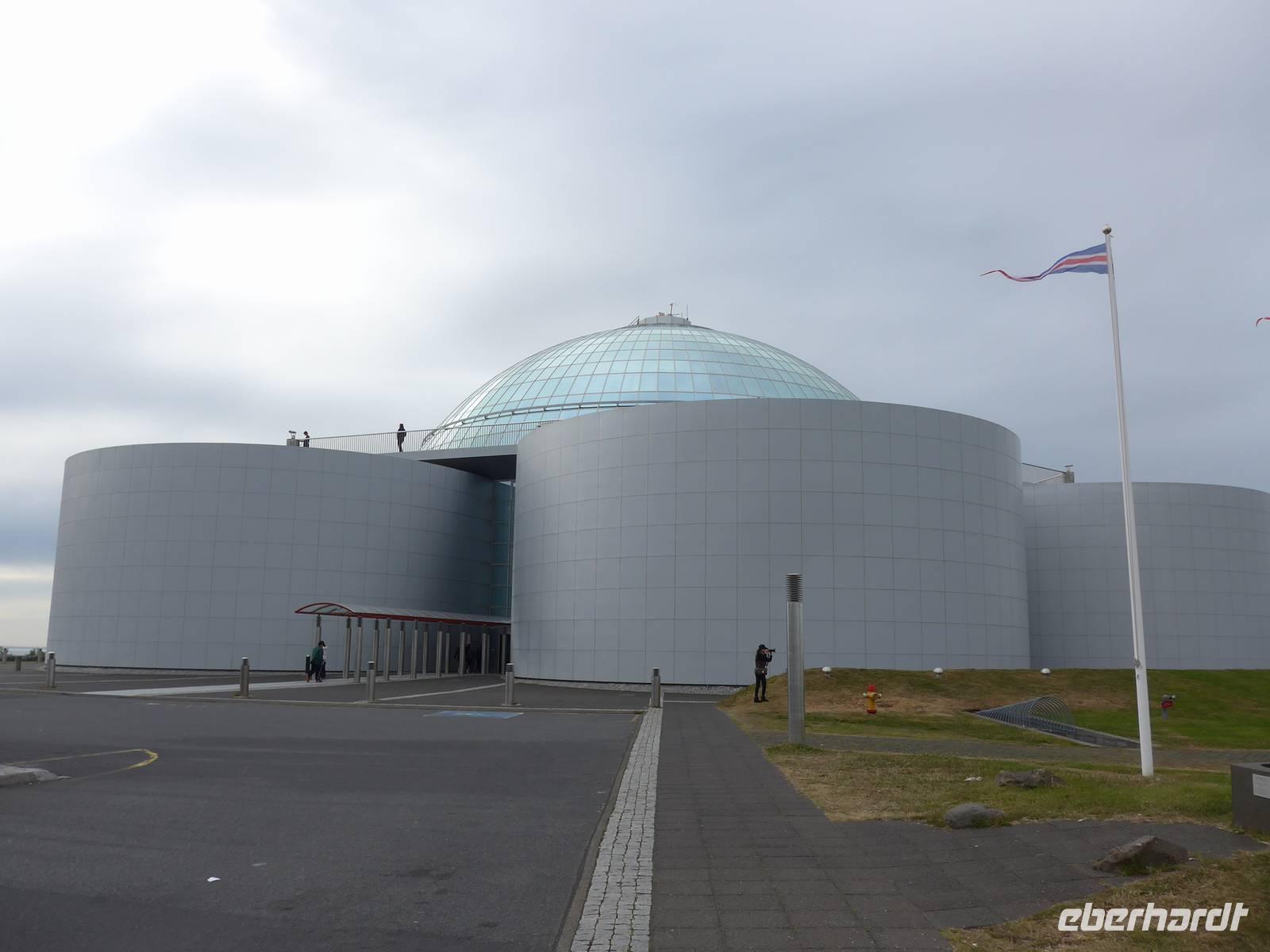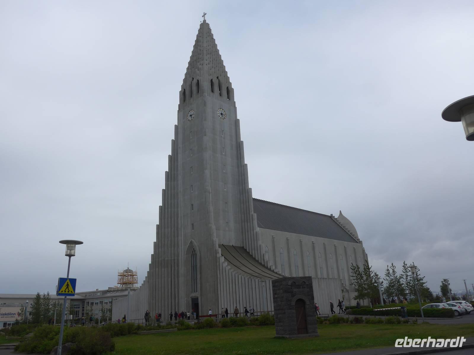 Der internationale Flughafen liegt auf der Halbinsel Keflavik und bis nach Reykjavik waren es 50 km. Noch am Kofferband tauschten wir Geld und draußen trafen wir unsere Gäste aus Frankfurt kommend und unseren Fahrer Jon. Nun waren wir komplett und die Erkundung der Insel konnte beginnen. Jon zeigte uns auf der Fahrt in die Stadt das Wikingerdorf, wo alljährlich Festspiele stattfinden und den Wohnsitz des isländischen Präsidenten. Danach fuhren wir in das Tal der heißen Quellen, wo sich heute die wichtigsten Sportstätten und ein großes Freizeitbad befinden. An der Uferstraße stoppten wir an der "Sonnenfahrt" zu einer Fotopause und weiter ging es vorbei an der Harpa und den neuen Gebäuden im Hafenviertel, um das alte Stadtzentrum herum, hinauf zur Hallgrimskirja-dem Wahrzeichen Reykjaviks. Wir nahmen uns Zeit für eine Innenbesichtigung und staunten über die riesige Orgel, die unten im Kirchenschiff gespielt wird. Danach brachte uns Jon auf den Perlan, zum Heißwasserspeicher für Reykjavik. Von oben hatten wir eine gute Sicht auf die Stadt, den Hausberg Esja und wir konnten endlich die herrlichen Lupinen aus der Nähe betrachten. Die Lupinen wurden aus Alaska eingeführt und dienen dem Schutz von großen Sandflächen.