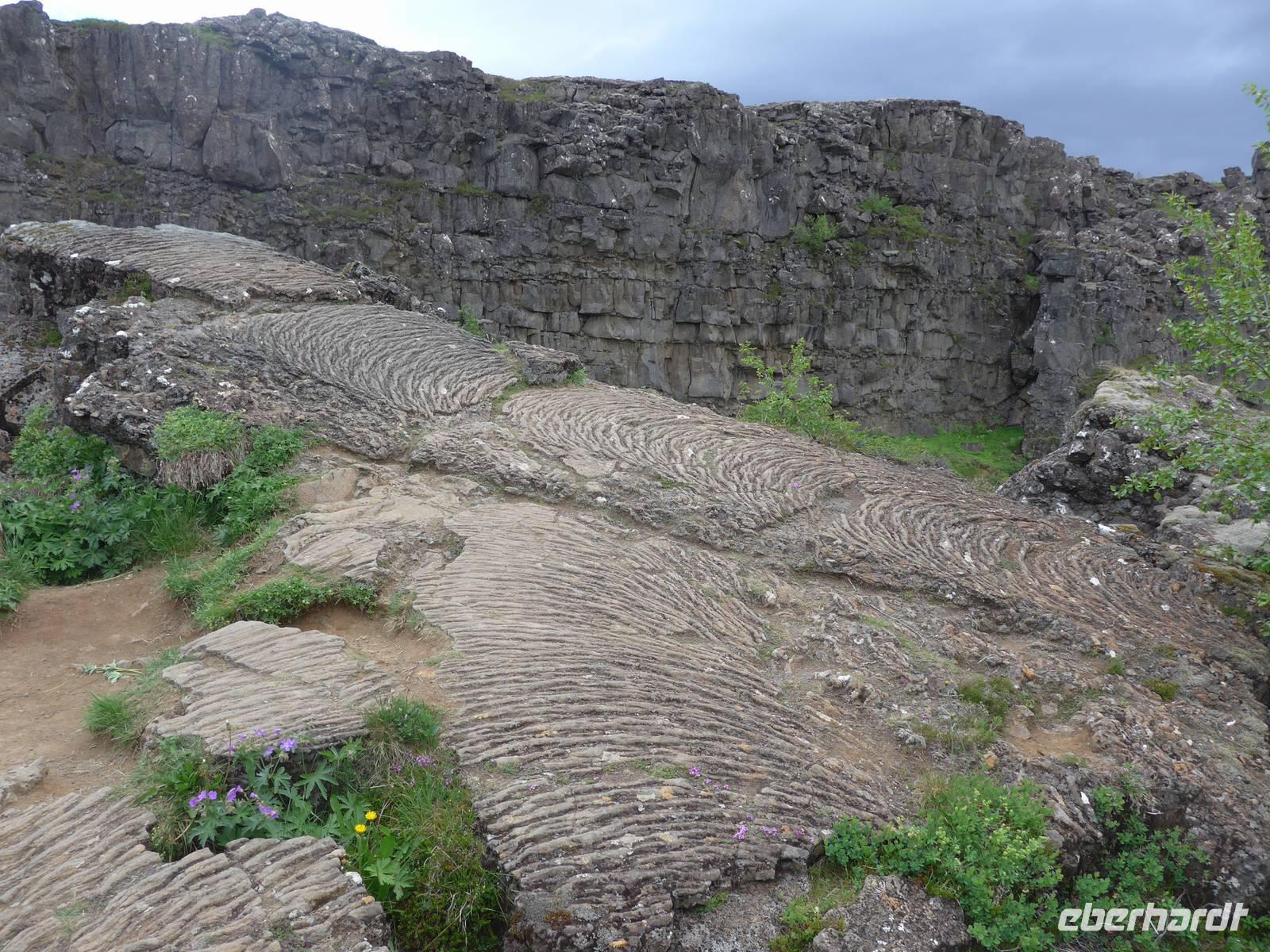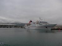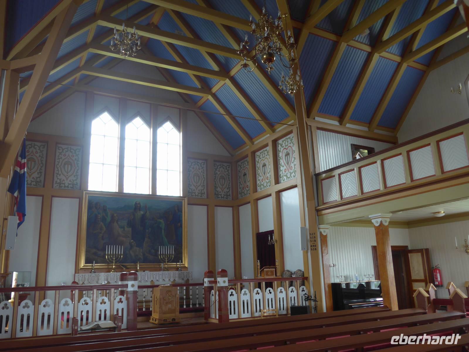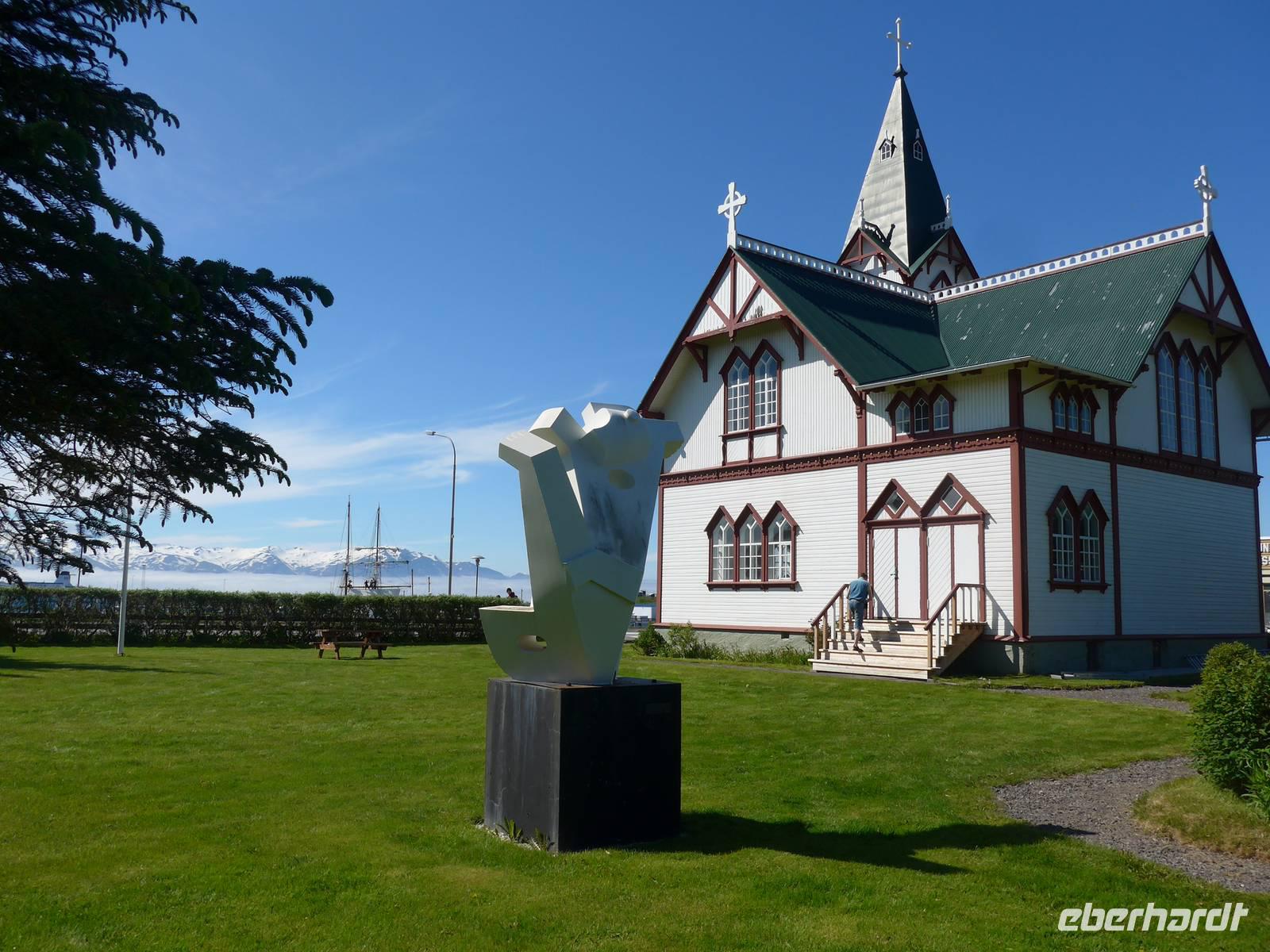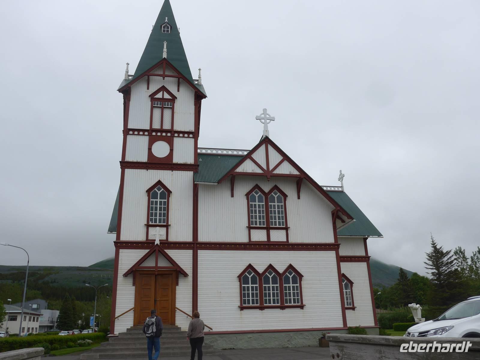 Nach einem guten und reichlichen Frühstück fuhren wir nach Husavik. Wir besuchten dort den Hafen und die Holzkirche mit einer wunderschönen Innenausstattung. Von Husavik starten mehrere Firmen zur Walbeobachtung. In Island gibt es 12 Walarten, 7 Zahnwalarten, die sich von Fischen ernähren und 5 Bartwalarten, die Plankton fressen und in Husavik ein interessantes Walfangmuseum. Im Hafen lag neben der MS Berlin auch ein historisches Segelschiff. Auf unserer Weiterfahrt sahen wir die kalte Wange und umrundeten die Halbinsel Tjörnes. An einer Steilküste hielt Aldis und zeigte uns Brutplätze der Papageitaucher und den weißen Silberwurz - die Nationalblume Islands. Die hufeisenförmige Schlucht Asbyrgi war unser nächstes Ziel. Am kleinen See am Ende der Schlucht konnten wir viele Wasservögel beobachten und auf einer großen Wiese machten wir Picknick. Da die Straße nach Süden durch einen Erdrutsch gesperrt war, mußten wir die Strecke über Husavik wieder zurück fahren und besuchten dann noch die dunklen Burgen, den Mückensee und die Badelandschaft. Jardbödin wird auch die Blaue Lagune des Nordens genannt mit Badetemperaturen von 36 - 39 Grad Celsius. Nach gründlicher Reinigung stiegen wir in die Badebecken und genossen das warme Wasser.