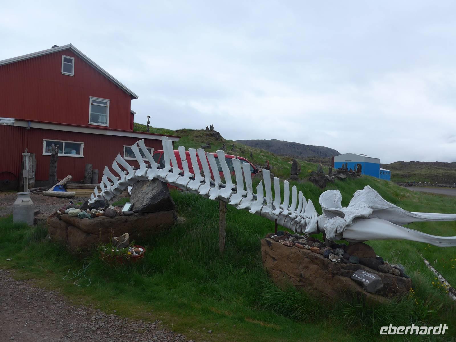 Wir stärkten uns vom Buffet und marschierten dann zum Hafen zur Walbeobachtung. 2,5 Stunden waren wir mit dem Boot im längsten Fjord Islands unterwegs und wir sahen sehr viele Buckelwale. Zweimal sprang ein Wal komplett aus dem Wasser, drehte sich und tauchte wieder ein. Die "Vorführung" war so überraschend, daß wohl kaum einer ein Foto machen konnte. Die Walbeobachtung wurde von einer jungen Deutschen kommentiert, die in Wales Meeresbiologie studiert und so bekamen wir im Anschluß noch interessante Informationen von ihr. Kurz vor Mitternacht waren wieder zurück im Hotel und sehr glücklich, so viele Wale gesehen zu haben.