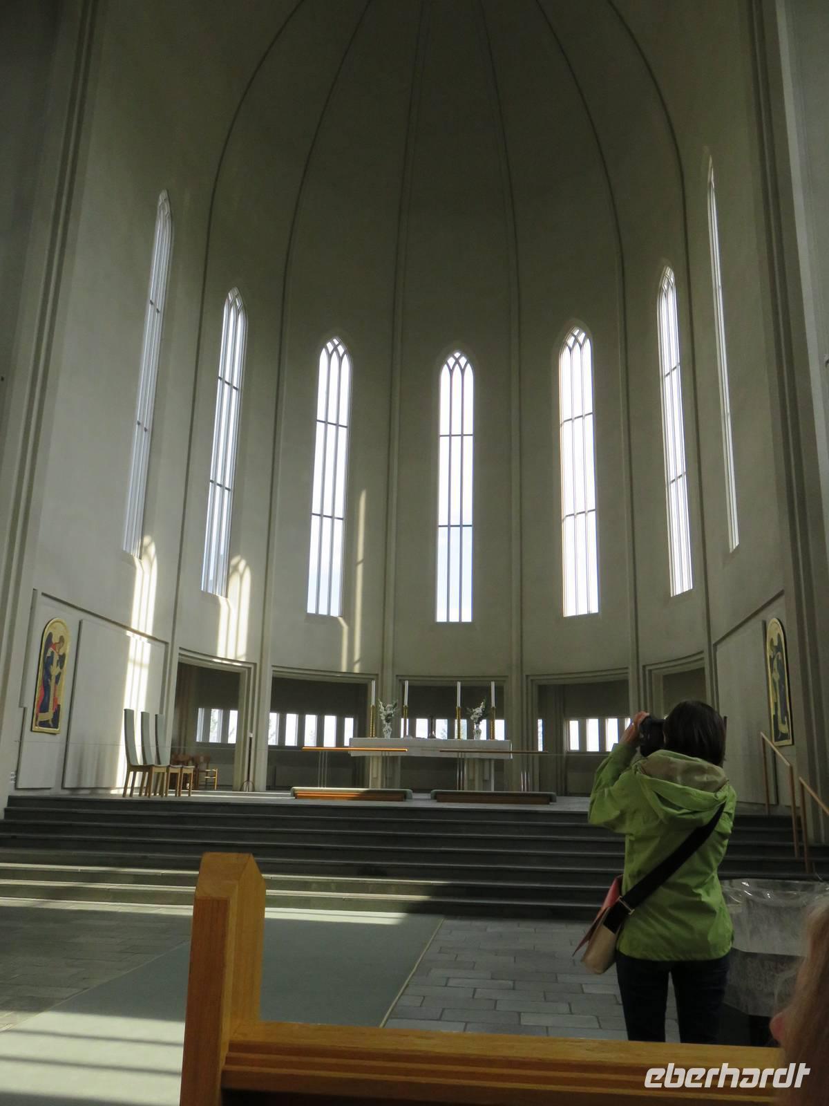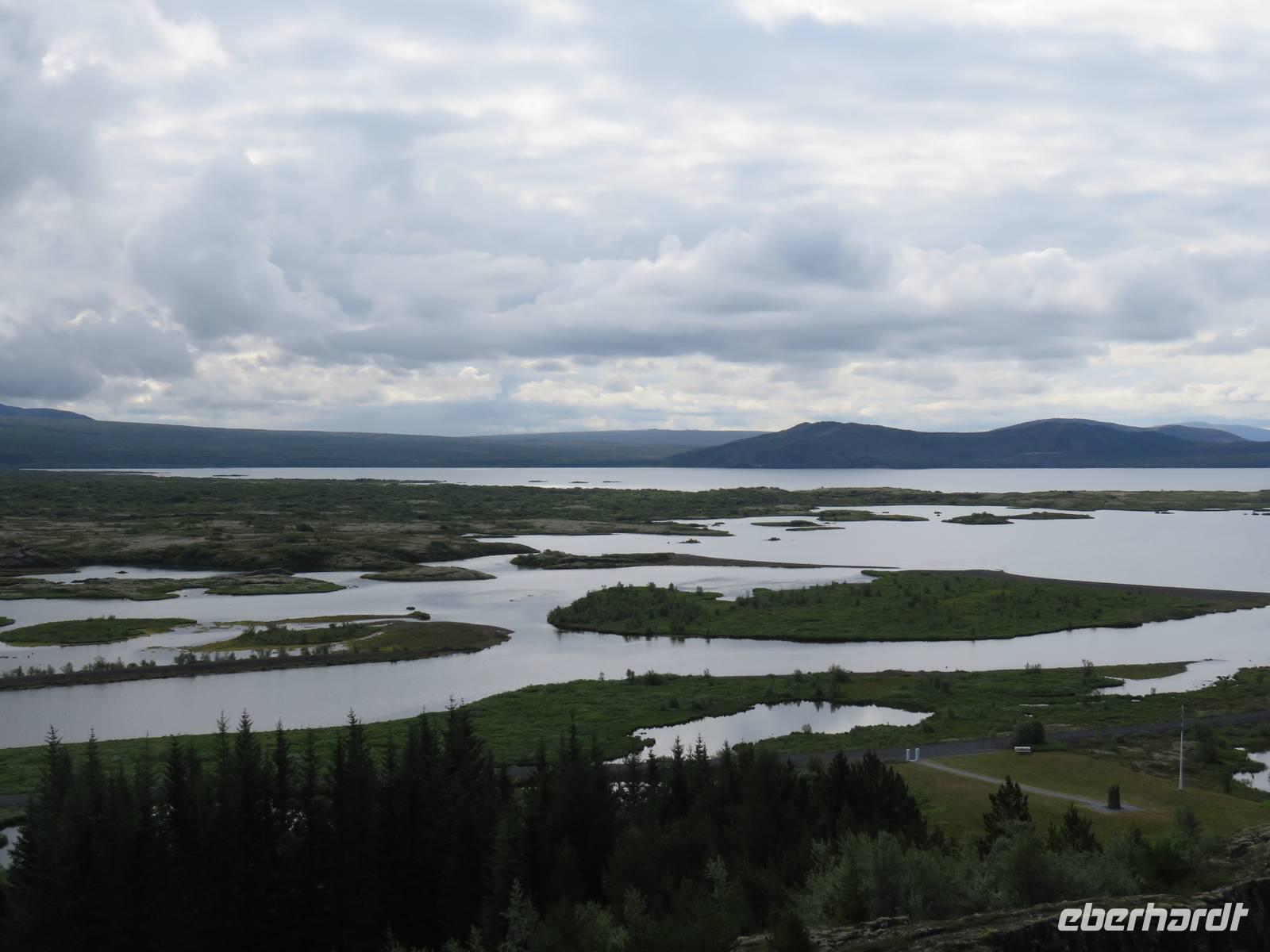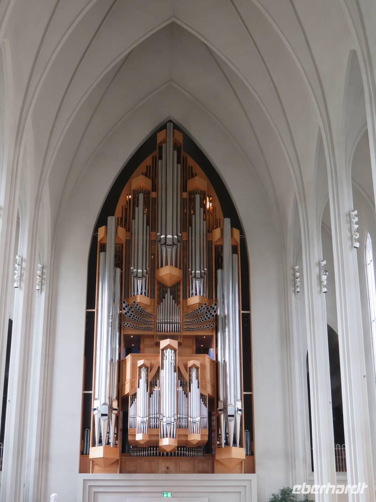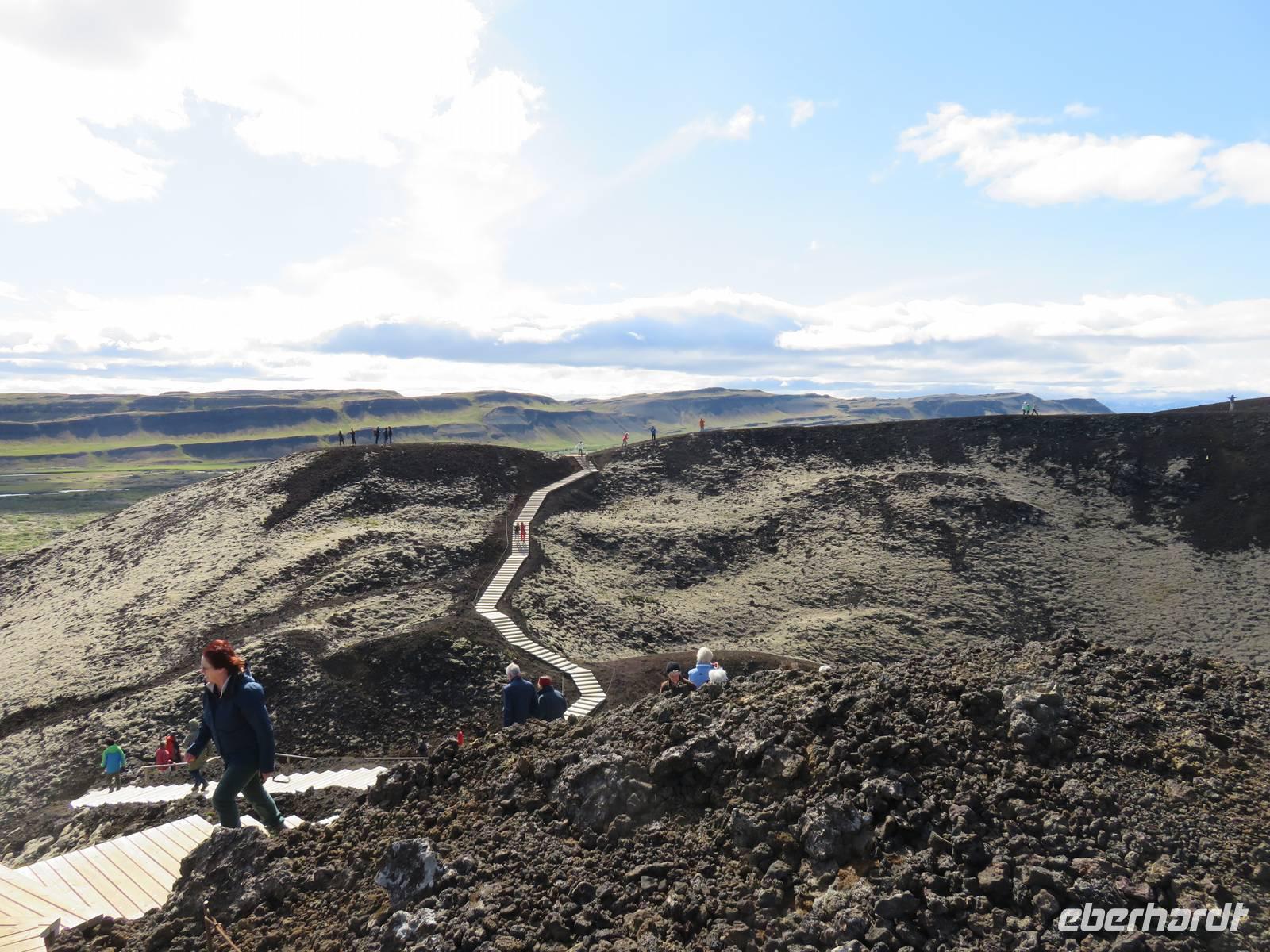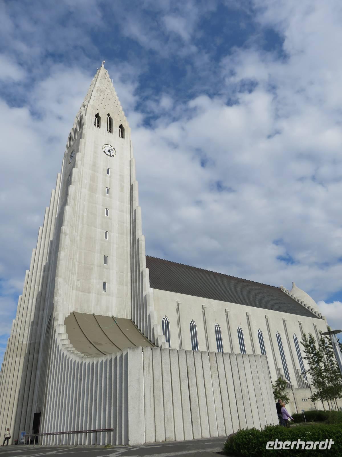 Unser Haustür-Transfer-Service brachte uns pünktlich nach Berlin-Schönefeld, wo wir auf die Gäste trafen, die individuell nach Berlin angereist waren. Gemeinsam gingen wir zum Check In der WOW Air. Jetzt heiß es für uns erst mal Geduld zeigen, denn der Check In verlief zwar problemlos aber sehr langsam. Nachdem wir die Sicherheitskontrolle passiert hatten ging es direkt zum Gate und in das Flugzeug. Der Flug verlief sehr angenehm und teilweise hatten wir bereits aus der Luft einen schönen Blick auf Island und die faszinierende Landschaft mit Gletschern, Schneefeldern, Vulkanen und Lagunen. In Keflavík am Flughafen erwartete uns bereits Rosa, unsere Reiseleiterin für unsere Reise. Wir fuhren zunächst zu einer Bank, um uns mit Isländischen Kronen zu versorgen. Dann ging es durch die Landschaft, die vom Vulkanismus geprägt ist, und eine ganz eigene Faszination ausstrahlt, nach Reykjavík. Unser erstes Ziel war der Perlan, ursprünglich als Thermalwasserspeicher erbaut, thront das architektonisch sehr interessante Bauwerk über der Stadt und beherbergt heute ein Restaurant, ein Cafe und verschiedene Ausstellungen. Wir gingen auf die Aussichtsplattform und hatten einen fantastischen Blick über die Stadt und die sie umgebende Landschaft. Wir ließen unsere Blicke schweifen und anschließend musste natürlich noch das Eis, welches uns von Kollegen bereits angepriesen wurde, probiert werden. Wir kauften uns fast alle eine Kugel Eis. Man hatte uns nicht zu viel versprochen und das Eis war sehr lecker - es gab neben uns bekannten Sorten, aber auch ungewöhnliche, wie zum Beispiel Lakritz-Eis. Wir hatten bereits die Hallgrimskirkja gesehen. Sie war unser nächstes Ziel. Die Kirche dominiert die Stadt und ist von überall zu sehen. Der Betonbau erinnert an die Basaltsäulen der Vulkanregion und wurde nach 40jähriger Bauzeit 1986 geweiht. Der lichtdurchflutete Innenraum der evangelischen Kirche ist ganz schlicht gestaltet und wird von der Orgel mit 5275 Pfeifen und 72 Registern dominiert. Es finden regelmäßig Orgelkonzerte statt, da die Kirche über eine ausgezeichnete Akustik verfügt. Vor der Kirche befindet sich das Denkmal von Leifur Eriksson auf einem Granitsockel. Er gilt ebenfalls als Entdecker Amerikas. Anschließend fuhren wir durch die Innenstadt von Reykjavík. Wir sahen das Rathaus, die typischen aus Wellblech gebauten Häuser, das neue Konzerthaus am Hafen und den Hafen. Am frühen Abend erreichten wir unser Hotel, welches sich am Inlandsflughafen befand unterhalb des Perlan. Nach dem wir unsere Zimmer bezogen, wurden wir mit einem sehr schmackhaften Abendessen im Hotelrestaurant verwöhnt. Es war bereits nach 21.00 Uhr als wir mit dem Essen fertig waren und die Sonne stand immer noch sehr hoch. In dieser Nacht - wie wohl in den nächsten auch - sollte es nie richtig dunkel werden.