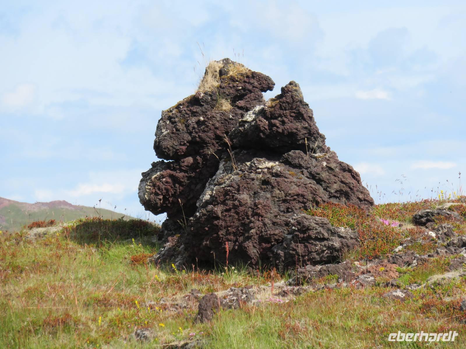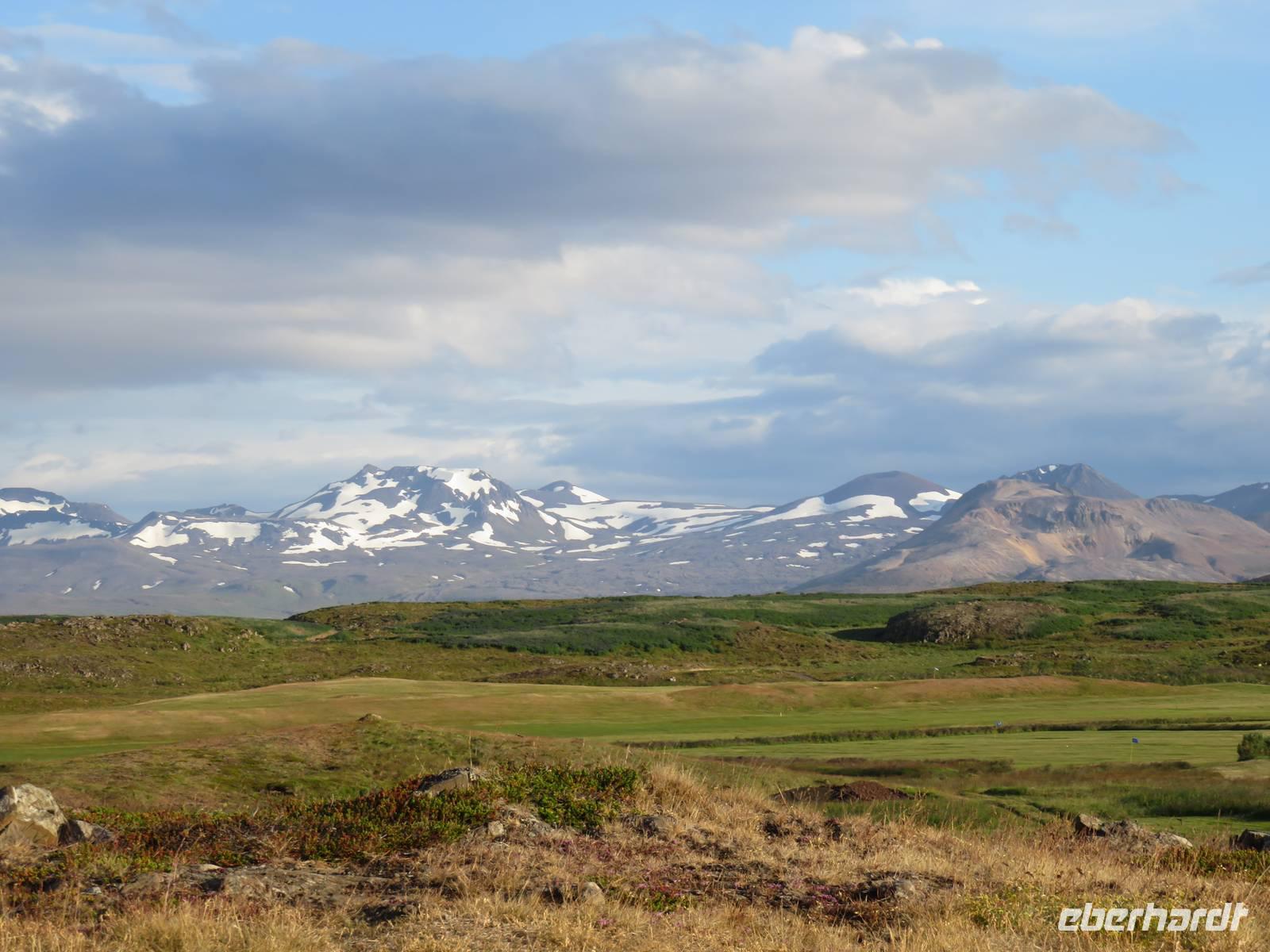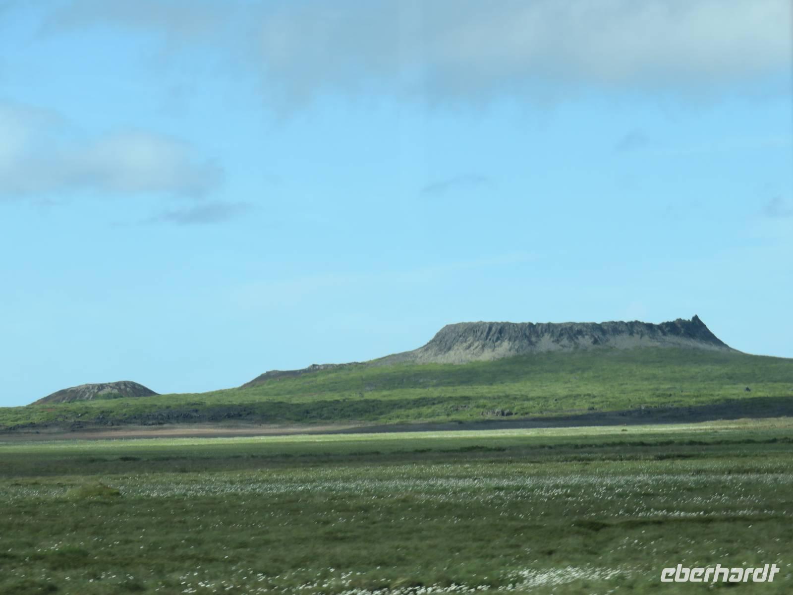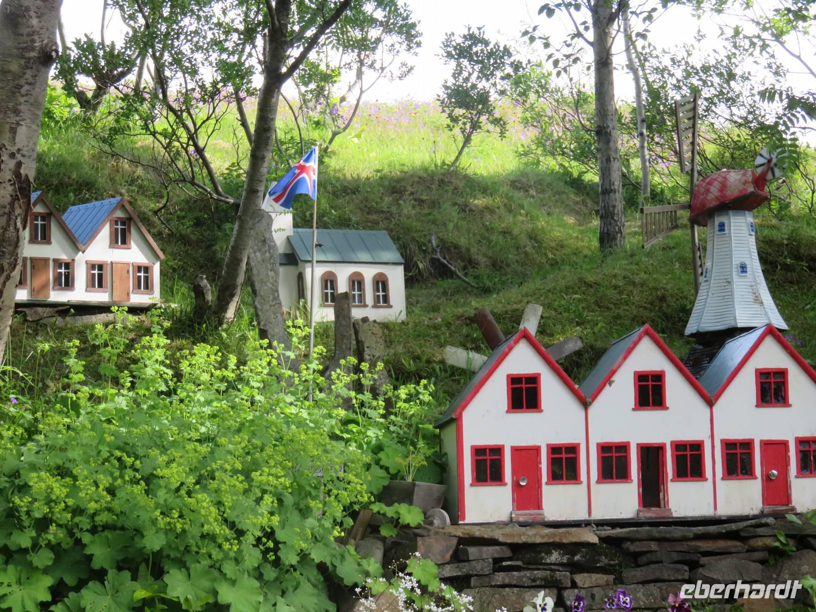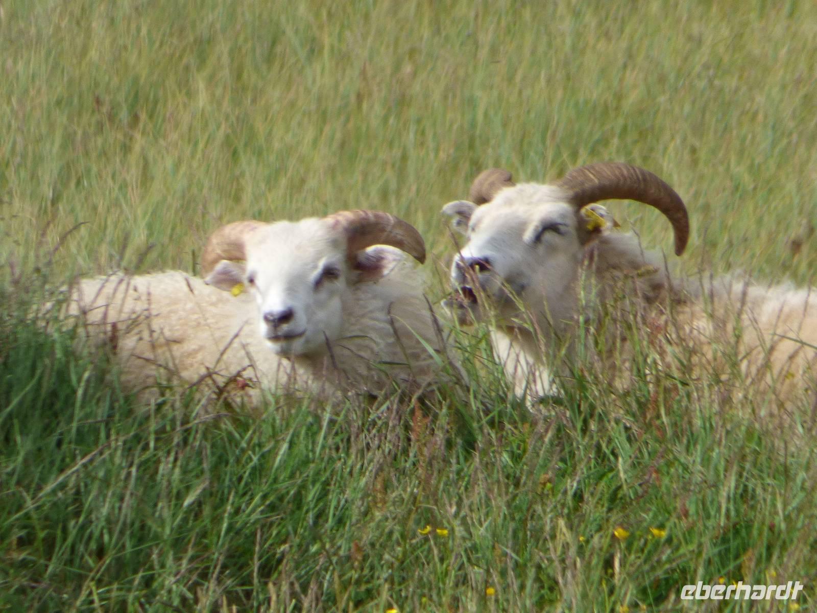 Anschließend umrundeten wir die Halbinsel Tjörnes und uns boten sich schöne Blicke in die Landschaft, die wieder ganz anders als an den letzten Tagen war. Viel mehr Vegetation zeigte sich in diesem Gebiet. Am Nachmittag erreichten wir Asbyrgi. Diese Schlucht mit den imposanten Felswänden ist 3,5 Kilometer lang, 1 Kilometer breit und 100 Meter tief. Von Norden ragt ein Keil in die Schlucht und bekam so die Form eines Hufeisens. Der Überlieferung nach, soll die Schlucht durch einen Hufabdruck von Odins achtbeinigem Pferd Sleipnir entstanden sein. Lange rätselten Wissenschaftler, wie diese Schlucht entstanden sein könnte. Wahrscheinlich lagen einst zwei Wasserfälle dicht beieinander, deren Fallkanten durch die Erosion vereinigt wurden und übrig blieb nur der Keil. Wir spazierten zum See Botnstjörn und zum Aussichtspunkt, von wo wir einen tollen Blick in die Schlucht hatten. Anschließend fuhren wir über Husavik zurück nach Akureyri.