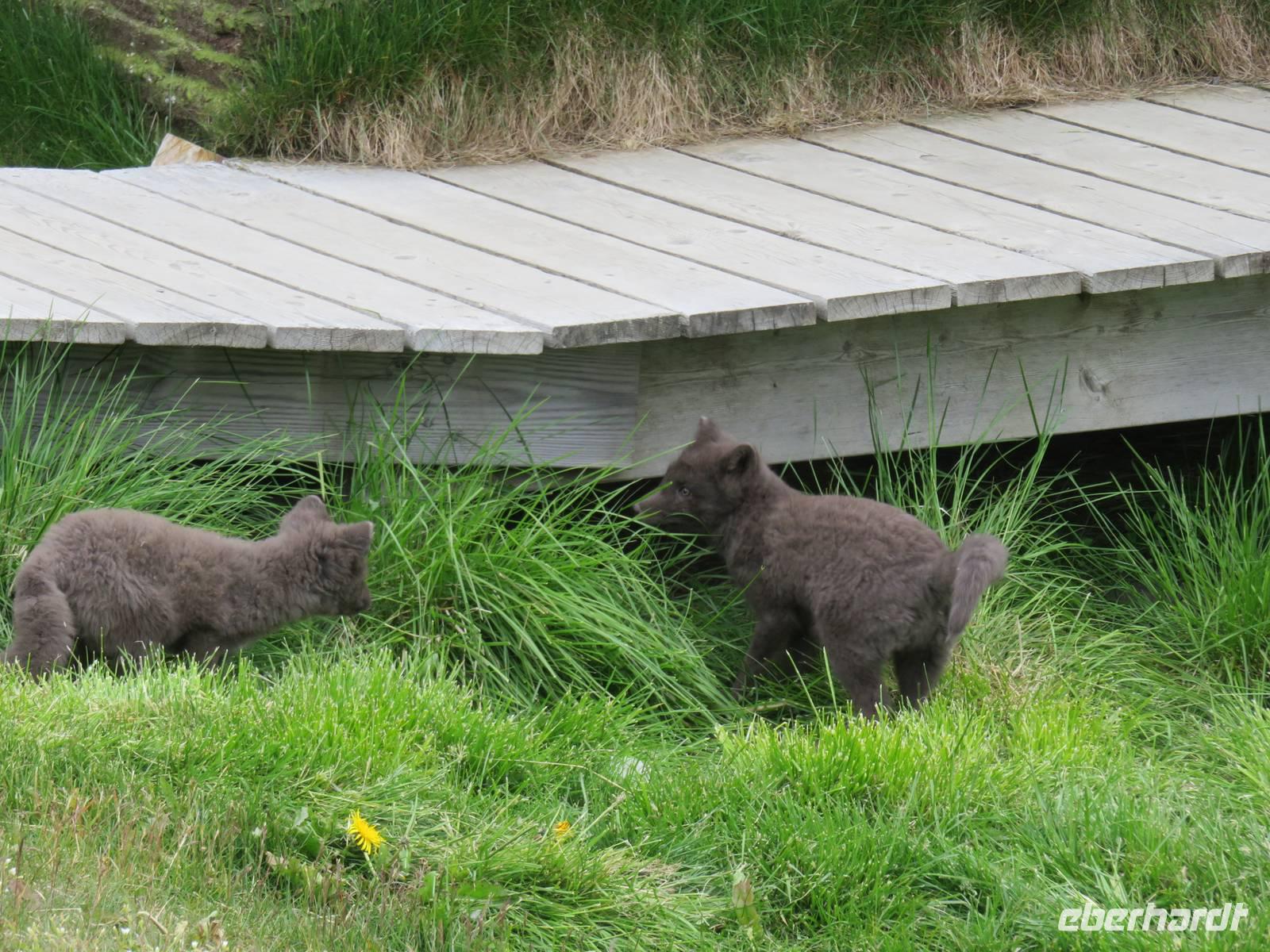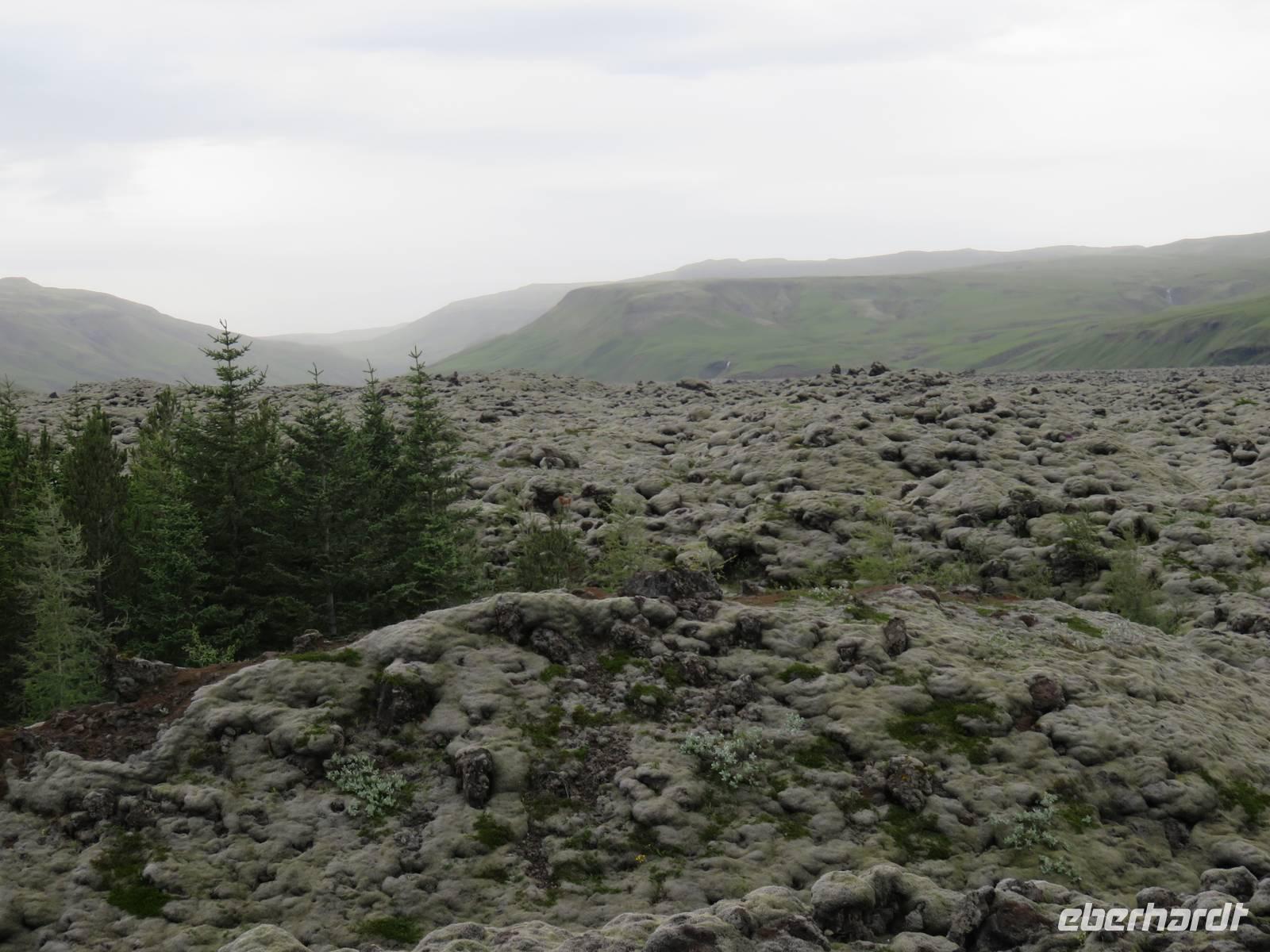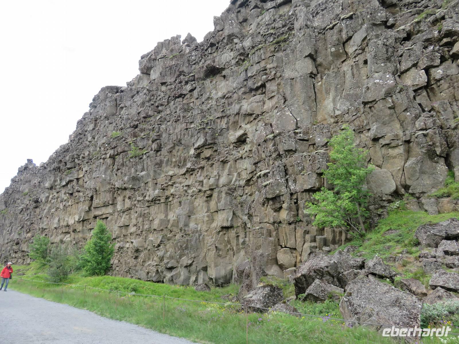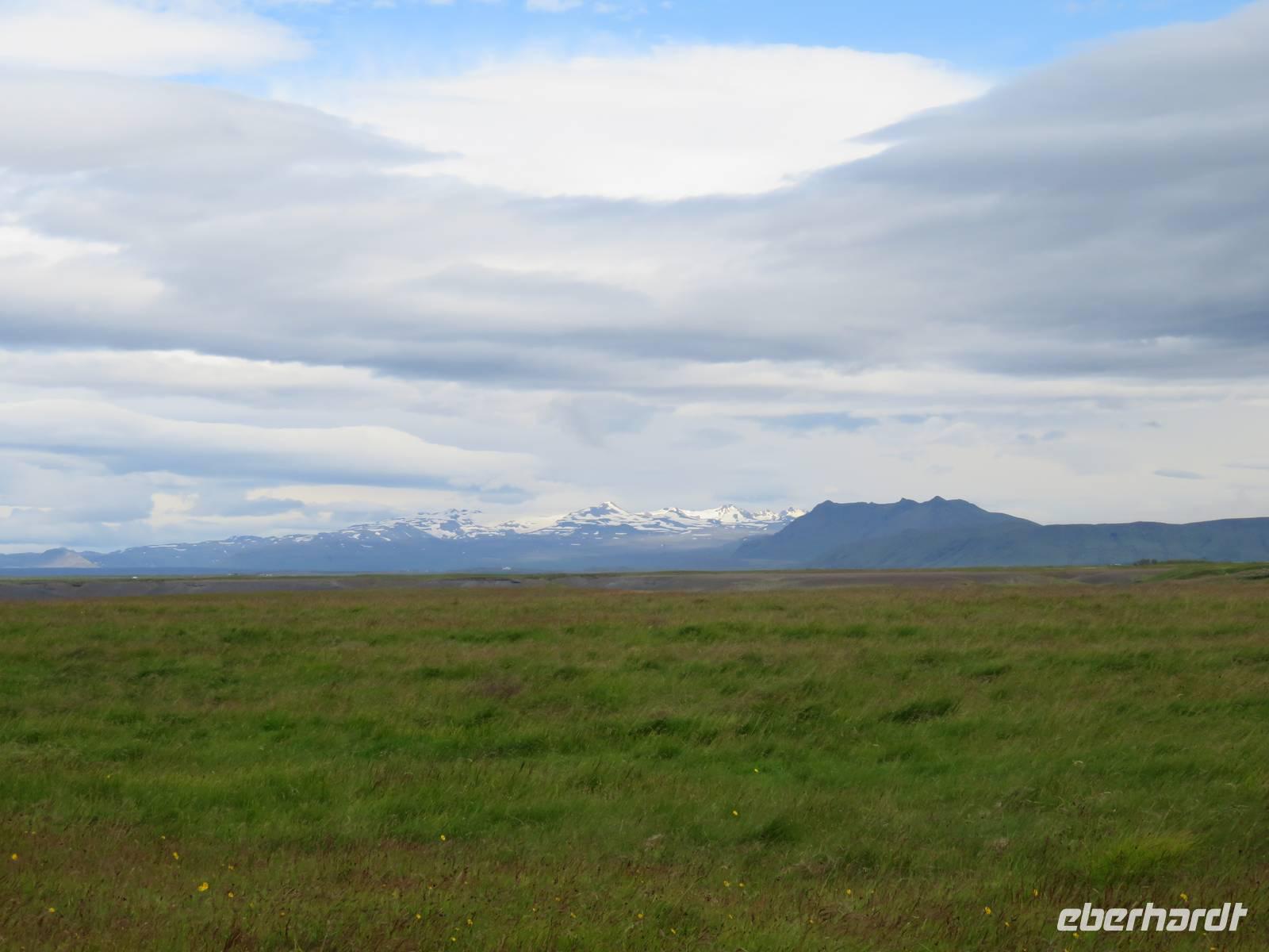 Anschließend umrundeten wir die Halbinsel Tjörnes und uns boten sich schöne Blicke in die Landschaft, die wieder ganz anders als an den letzten Tagen war. Viel mehr Vegetation zeigte sich in diesem Gebiet. Am Nachmittag erreichten wir Asbyrgi. Diese Schlucht mit den imposanten Felswänden ist 3,5 Kilometer lang, 1 Kilometer breit und 100 Meter tief. Von Norden ragt ein Keil in die Schlucht und bekam so die Form eines Hufeisens. Der Überlieferung nach, soll die Schlucht durch einen Hufabdruck von Odins achtbeinigem Pferd Sleipnir entstanden sein. Lange rätselten Wissenschaftler, wie diese Schlucht entstanden sein könnte. Wahrscheinlich lagen einst zwei Wasserfälle dicht beieinander, deren Fallkanten durch die Erosion vereinigt wurden und übrig blieb nur der Keil. Wir spazierten zum See Botnstjörn und zum Aussichtspunkt, von wo wir einen tollen Blick in die Schlucht hatten. Anschließend fuhren wir über Husavik zurück nach Akureyri.