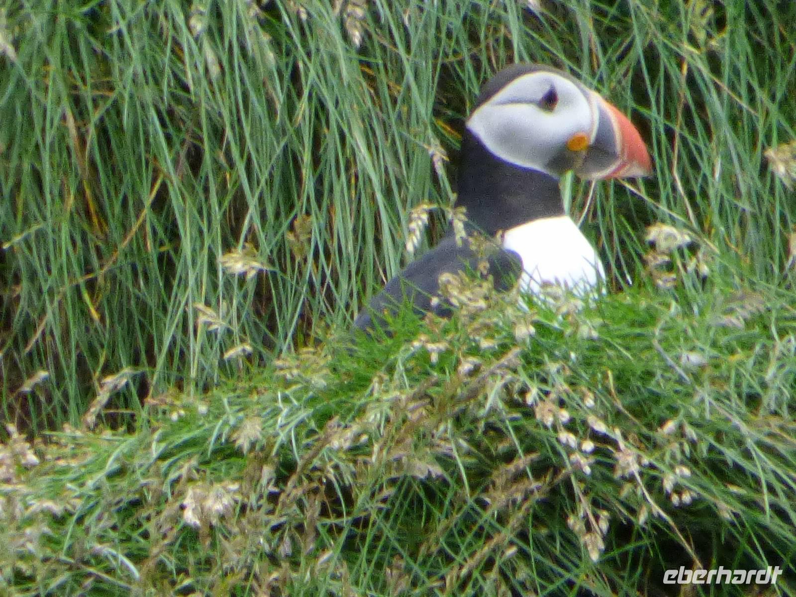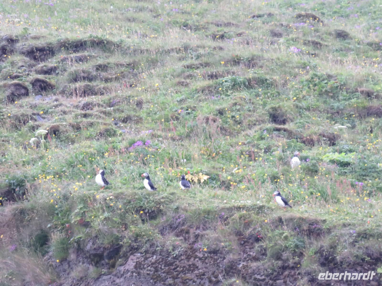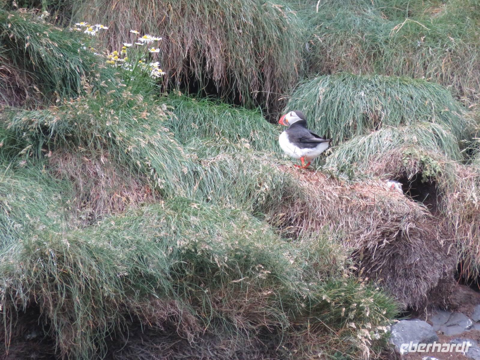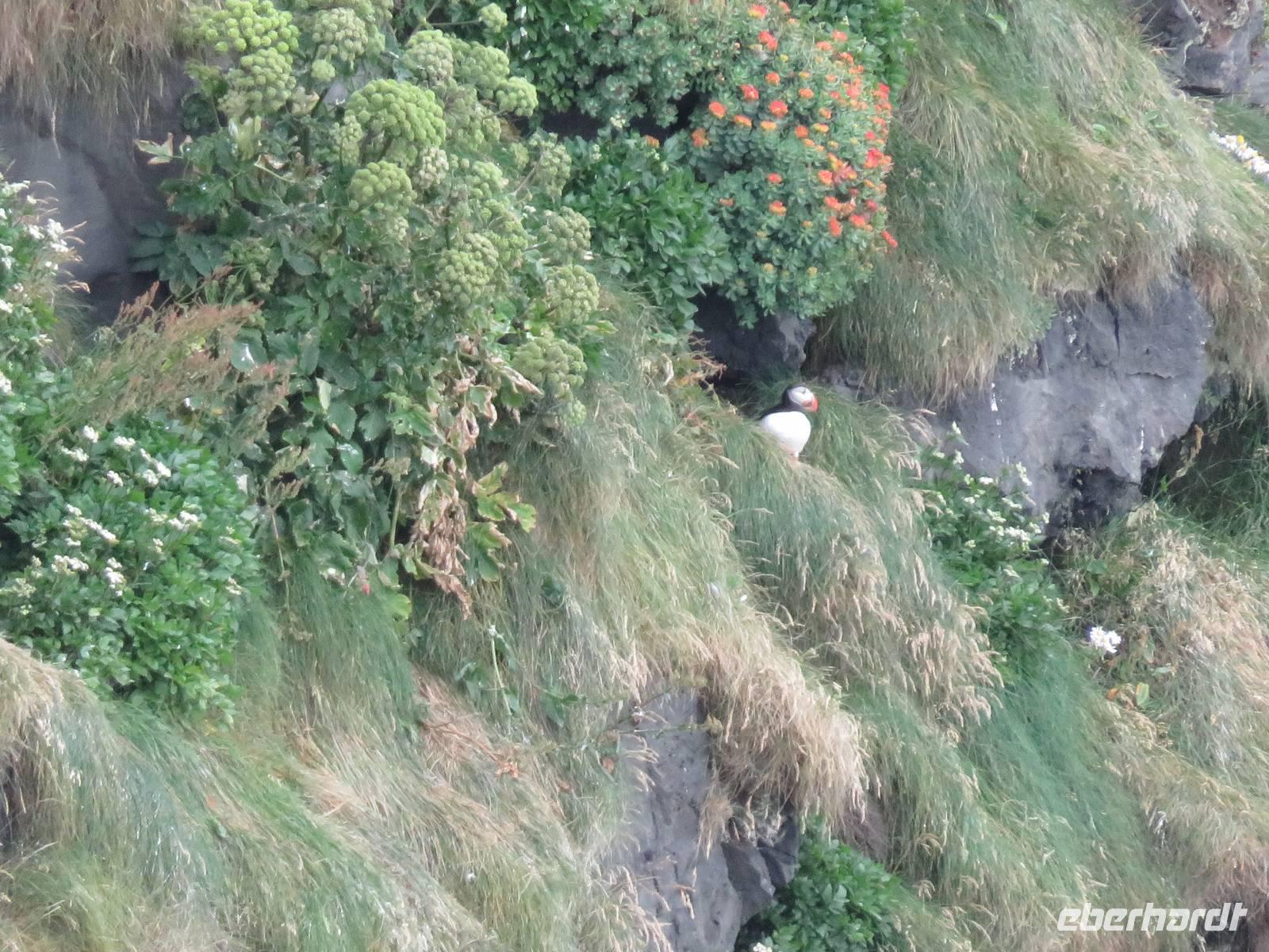 Unseren Tag begannen wir mit der Suche nach den Papageientauchern. Leider waren die Vögel an der Stelle, wo wir sie am Abend gesehen hatten, nicht mehr da. Sie waren bereits zum Fischen unterwegs. Also fuhren wir an eine der schönsten Küsten von Island und hier entdeckten wir die Papageientaucher an der Steilwand. Mit ihren weißen Bäuchen und den rot-gelben Schnäbeln konnten wir sie gut ausmachen. Nachdem wir viele Fotos im Kasten hatten, versuchten wir an einer anderen Stelle noch etwas näher heranzukommen. Aber leider hatten wir dort auch kein Glück. Nur ganz wenige Vögel konnten wir in weiter Entfernung entdecken. Das Skogamuseum war unser nächstes Ziel. In dem hübschen Museum hat ein Isländer viele Dinge aus der Geschichte Islands zusammengetragen und aufbewahrt. Eine Führerin gab uns einen sehr anschaulichen Einblick in das harte Leben der Isländer bis in die Mitte des 20.Jahrhunderts. Wir sahen viele Gegenstände, die dies noch verdeutlichten. In den Torfhäusern konnten wir uns vorstellen, wie beengt und hart das Leben war. Viele Dinge wurden aus Treibholz gefertigt. Die Kleidung der Fischer wurde aus Schafswolle gefertigt und mit Walfett imprägniert. Man konnte nur erahnen, wie das gerochen hat. Um im Winter nicht zu frieren, wurde alles übereinander gezogen, was man hatte. Geschlafen haben die Menschen sitzend in den kleinen Betten und meist teilten sich 2 bis 3 Leute ein Bett. Auch gegessen wurde im Bett, weil einfach nicht mehr Platz war. Nach diesem aufschlussreichen Besuch ging es zum nahegelegen Skogawasserfall. In 25 Metern Breite stürzen die Wassermassen 60 Meter in die Tiefe. Der Legende nach versteckte der Landnehmer Prasi eine Kiste mit Gold hinter dem Wasserfall. Doch dieser Schatz wurde bis heute nicht gefunden. Anschließend führte uns die Reise weiter und wir sahen den Vulkan Eyjafjallajökull in seiner ganzen Größe. Dieser hatte durch seinen Ausbruch im April 2010 für zwei Wochen den Flugverkehr in ganz Europa lahmgelegt. Da wir uns alle noch sehr gut an diese Zeit erinnerten, waren wir neugierig, was sich dabei abgespielt hat. In einem kleinen Besucherzentrum unweit eines Bauernhofes konnten wir uns einen sehr interessanten Film über den Ausbruch, die Folgen für die betroffene Bauernfamilie und die Landschaft ansehen. Anschließend erlebten wir den Seljallandwasserfall. Über einen kleinen Weg kann man hinter den Wasserfall gehen und sozusagen durch das Wasser schauen. Nach einer Pause zum Schauen und Fotografiren fuhren wir weiter Richtung Reykjavik. Nach einem Stopp an einer Raststätte mit Supermarkt, denn einige wollten noch etwas einkaufen, legten wir eine letzte Pause auf einem kleinen Parkplatz mit herrlichem Blick auf den Vulkan Hekla ein. Hier stießen wir nochmals mit einem Brennevin, dem typischen isländischen Kümmelschnaps, auf unsere tolle Reise an. In Reykjavik bezogen wir unsere Zimmer im Icelandair Hotel Natura. Wir verabschiedete Rosa und Gisele. Bei einem guten Abendessen ließen wir den Tag und die Reise ausklingen.