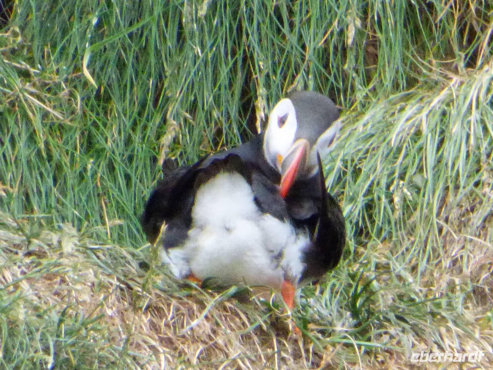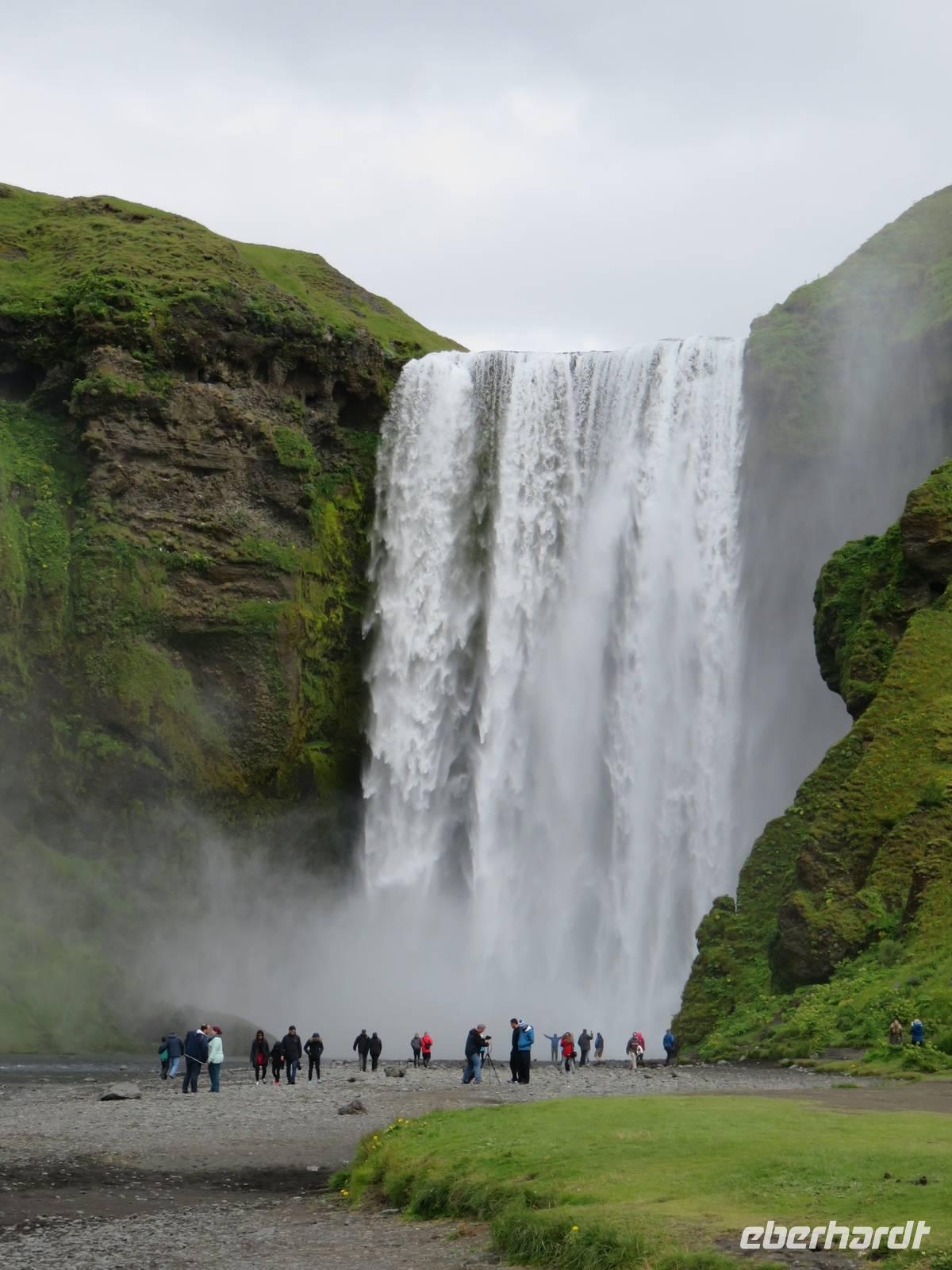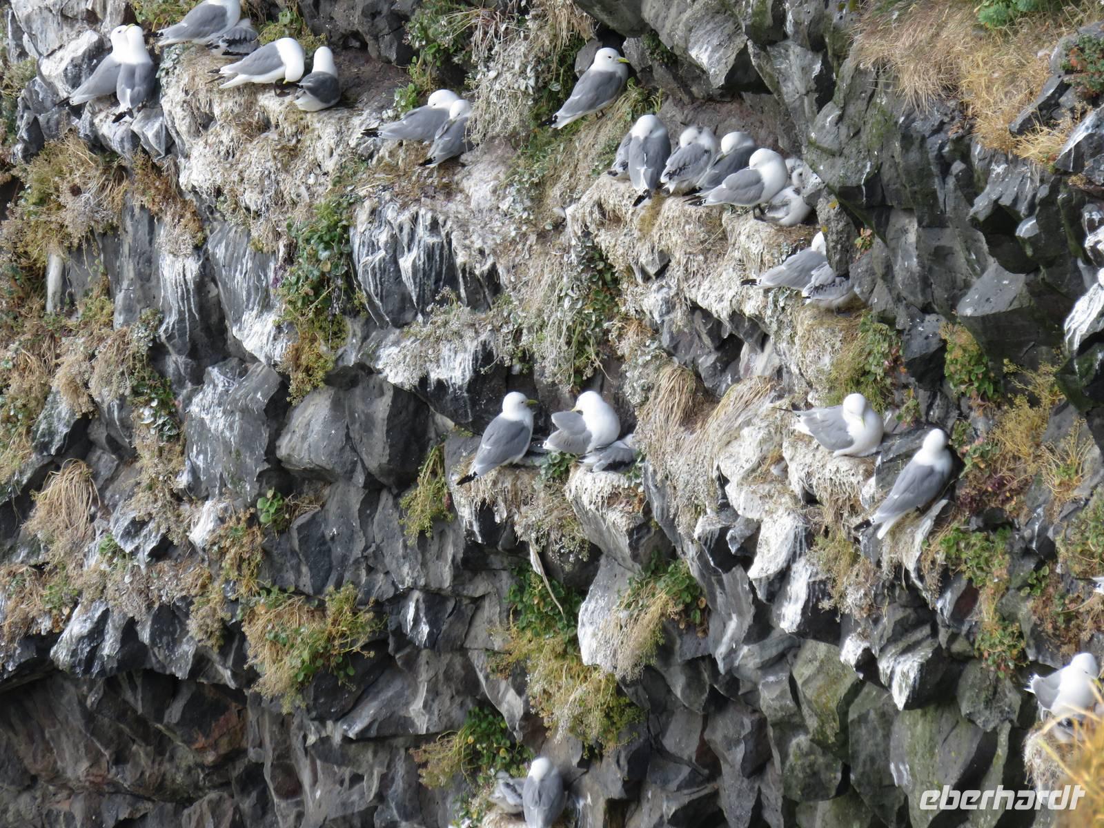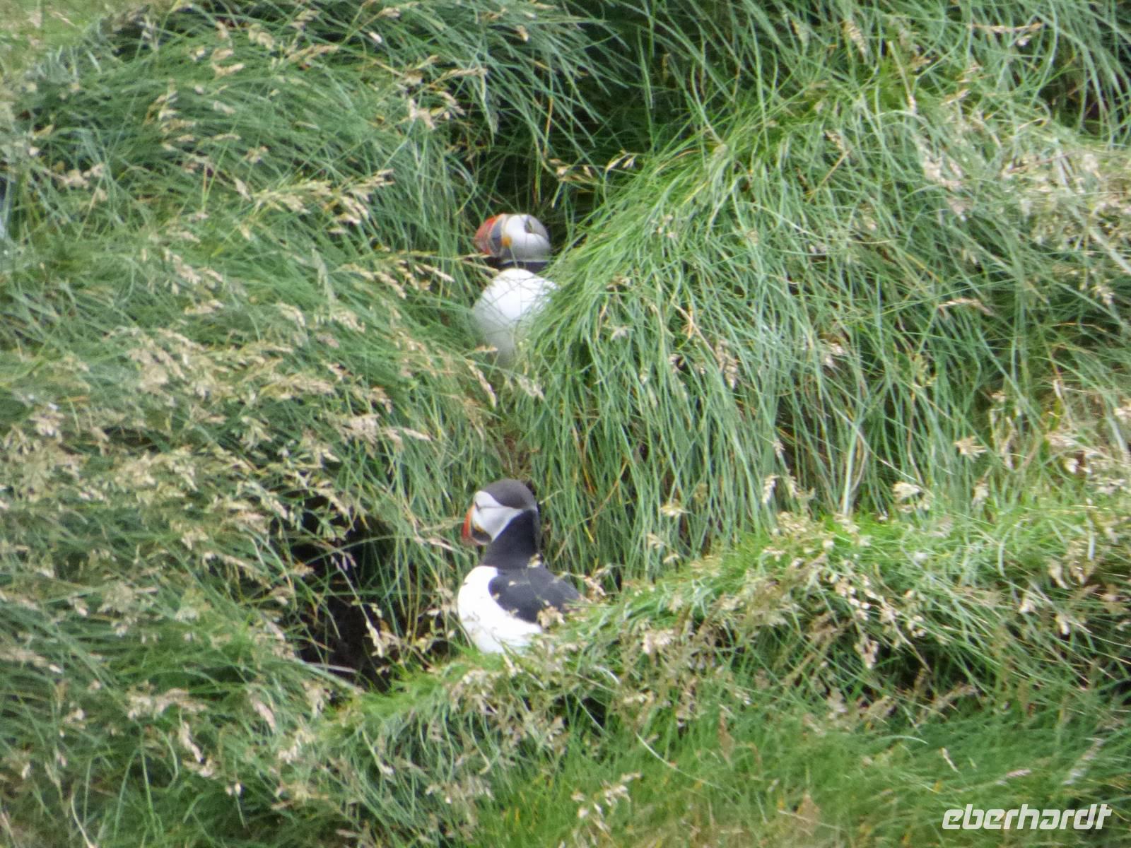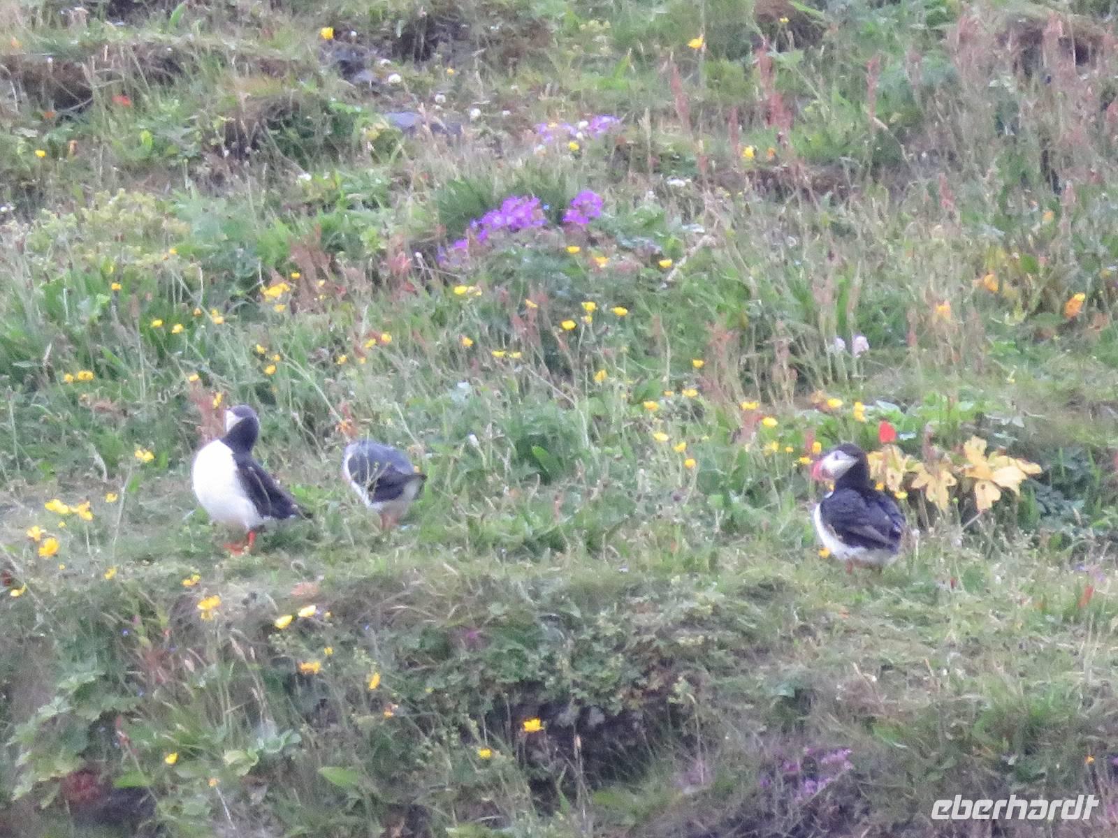 Unseren Tag begannen wir mit der Suche nach den Papageientauchern. Leider waren die Vögel an der Stelle, wo wir sie am Abend gesehen hatten, nicht mehr da. Sie waren bereits zum Fischen unterwegs. Also fuhren wir an eine der schönsten Küsten von Island und hier entdeckten wir die Papageientaucher an der Steilwand. Mit ihren weißen Bäuchen und den rot-gelben Schnäbeln konnten wir sie gut ausmachen. Nachdem wir viele Fotos im Kasten hatten, versuchten wir an einer anderen Stelle noch etwas näher heranzukommen. Aber leider hatten wir dort auch kein Glück. Nur ganz wenige Vögel konnten wir in weiter Entfernung entdecken. Das Skogamuseum war unser nächstes Ziel. In dem hübschen Museum hat ein Isländer viele Dinge aus der Geschichte Islands zusammengetragen und aufbewahrt. Eine Führerin gab uns einen sehr anschaulichen Einblick in das harte Leben der Isländer bis in die Mitte des 20.Jahrhunderts. Wir sahen viele Gegenstände, die dies noch verdeutlichten. In den Torfhäusern konnten wir uns vorstellen, wie beengt und hart das Leben war. Viele Dinge wurden aus Treibholz gefertigt. Die Kleidung der Fischer wurde aus Schafswolle gefertigt und mit Walfett imprägniert. Man konnte nur erahnen, wie das gerochen hat. Um im Winter nicht zu frieren, wurde alles übereinander gezogen, was man hatte. Geschlafen haben die Menschen sitzend in den kleinen Betten und meist teilten sich 2 bis 3 Leute ein Bett. Auch gegessen wurde im Bett, weil einfach nicht mehr Platz war. Nach diesem aufschlussreichen Besuch ging es zum nahegelegen Skogawasserfall. In 25 Metern Breite stürzen die Wassermassen 60 Meter in die Tiefe. Der Legende nach versteckte der Landnehmer Prasi eine Kiste mit Gold hinter dem Wasserfall. Doch dieser Schatz wurde bis heute nicht gefunden. Anschließend führte uns die Reise weiter und wir sahen den Vulkan Eyjafjallajökull in seiner ganzen Größe. Dieser hatte durch seinen Ausbruch im April 2010 für zwei Wochen den Flugverkehr in ganz Europa lahmgelegt. Da wir uns alle noch sehr gut an diese Zeit erinnerten, waren wir neugierig, was sich dabei abgespielt hat. In einem kleinen Besucherzentrum unweit eines Bauernhofes konnten wir uns einen sehr interessanten Film über den Ausbruch, die Folgen für die betroffene Bauernfamilie und die Landschaft ansehen. Anschließend erlebten wir den Seljallandwasserfall. Über einen kleinen Weg kann man hinter den Wasserfall gehen und sozusagen durch das Wasser schauen. Nach einer Pause zum Schauen und Fotografiren fuhren wir weiter Richtung Reykjavik. Nach einem Stopp an einer Raststätte mit Supermarkt, denn einige wollten noch etwas einkaufen, legten wir eine letzte Pause auf einem kleinen Parkplatz mit herrlichem Blick auf den Vulkan Hekla ein. Hier stießen wir nochmals mit einem Brennevin, dem typischen isländischen Kümmelschnaps, auf unsere tolle Reise an. In Reykjavik bezogen wir unsere Zimmer im Icelandair Hotel Natura. Wir verabschiedete Rosa und Gisele. Bei einem guten Abendessen ließen wir den Tag und die Reise ausklingen.