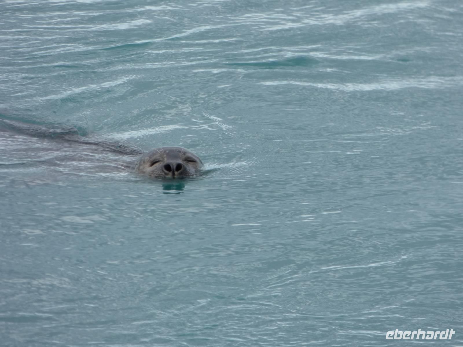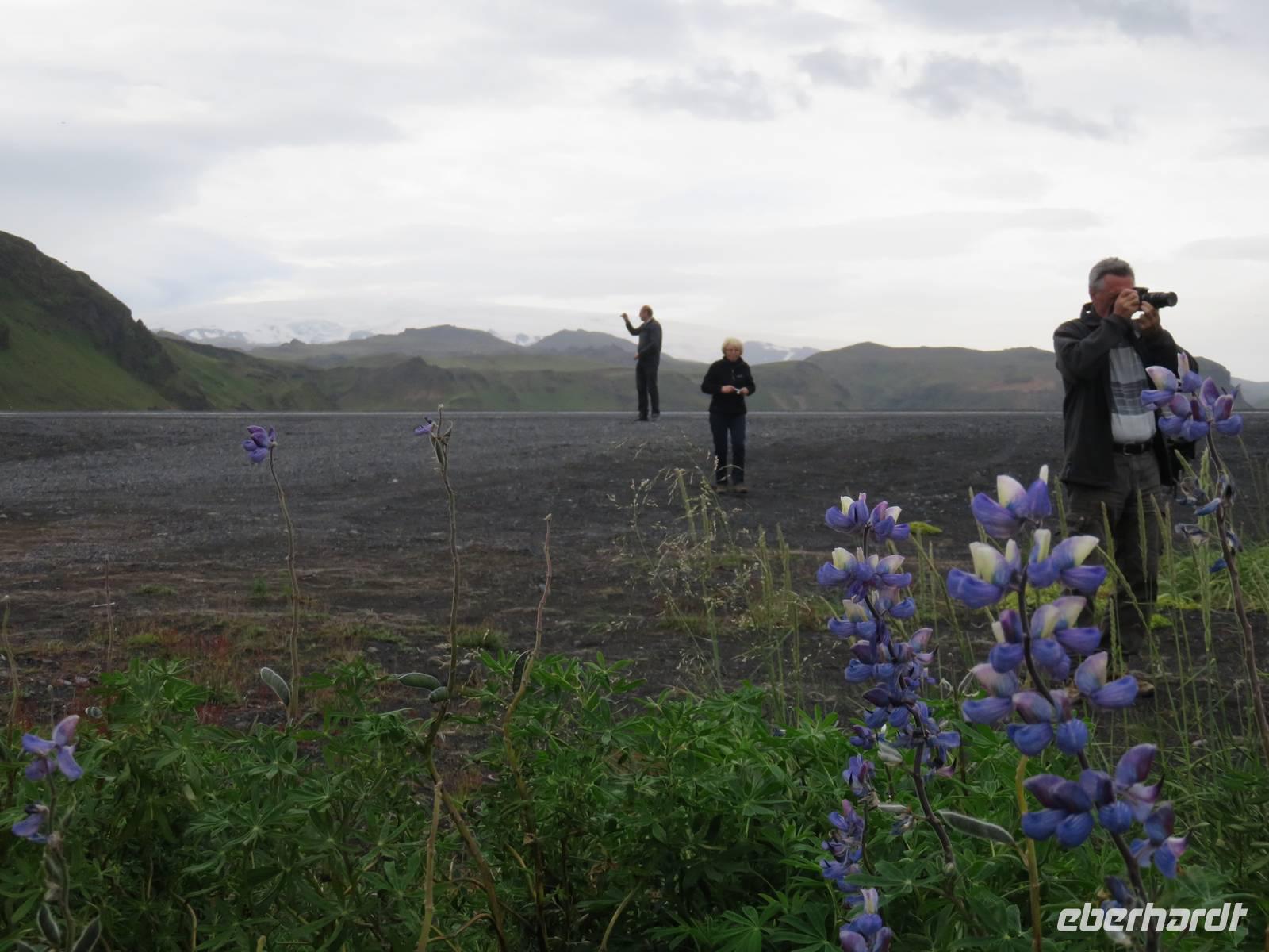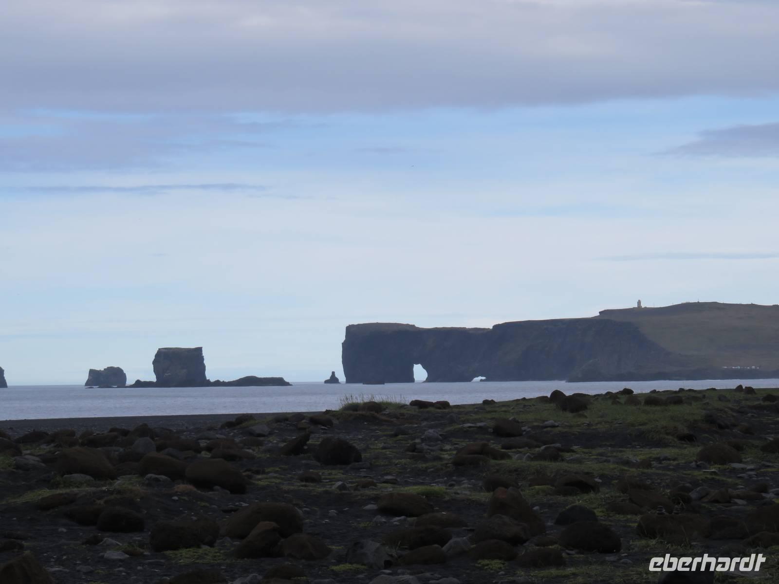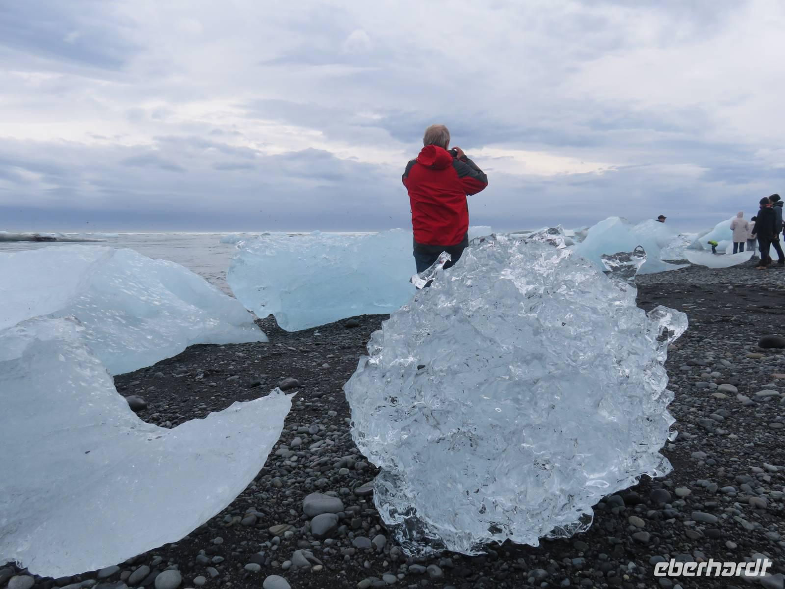 Am Morgen fuhren wir immer im Angesicht des großen Gletschers Vatnajökull und seiner höchsten Erhebung mit 2.110 Metern zur Gletscherlagune Jökulsarlon. Bereits kurz bevor wir den Parkplatz erreichten, sahen wir die großen Eisberge in der Lagune. Wir stiegen in ein Amphibien-Fahrzeug um und es ging direkt in die Lagune. Die Lagune bildete sich seit 1930, als sich der Gletscher zurück zog. Sie ist heute 25 km² groß. Das Eis bricht von der Gletscherzunge ab und landet als Berg oder Scholle in der Lagune. Es ist durch den Druck viel kompakter als anderes Eis und ist transparent. Es benötigt ca. 800 bis 1.200 Jahre bis es an der Gletscherzunge ankommt. So ist das Eis etwa 1.000 Jahre alt, wenn es in der Lagune schwimmt. Die blaue Farbe bekommt das Eis durch die Reflektion des Lichtes, wenn es als transparentes Eis aus dem Wasser kommt. Nach einiger Zeit mit Kontakt zur Luft bilden sich Eiskristalle und das Eis wird weiß. Wir probierten einen Brennevin - den typischen isländischen Schnaps - auf Eis aus der Lagune. Anschließend hatten wir noch etwas Zeit, für Fotos. Wir sahen auch einige Seelöwen. Direkt am Übergang der Lagune ins Meer befindet sich ein schwarzer Strand. Wir sahen die Eisschollen und Eisberge ins Meer schwimmen und an dem Strand lagen die Eisschollen auf dem Sand. Durch Ebbe und Flut ergeben sich diese Naturschauspiele. Ein unglaubliches Erlebnis - Eisschollen am Meeresstrand. Danach haben wir noch an der kleinen Lagune Fjällsarlon, welche sich gerade bildet, einen Fotostopp eingelegt. Hier blies der Wind sehr stark. Nach unserer Mittagspause war Svinafellsjökull unser nächstes Ziel. Die Gletscherzunge kommt sehr weit nach unten und bildet ebenfalls eine kleine Lagune. Wir sahen sehr schön das Eis in verschiedensten Farben und kamen recht nah an die Zunge heran. Am Nationalparkzentrum Skaftafell schauten wir uns einen Film über die Gletscher und den Ausbruch im Jahr 1996 an. Dann ging es durch ein großes Sandfeld, wo inzwischen sehr viel Wind aufgekommen war, weiter Richtung Süden. 1783 kam es zu einem der größten Spaltenausbrüche auf Island. In dessen Folge bildete sich ein 57 km² großes Lavafeld, welches wir durchquerten. Beeindruckende Landschaftformationen, welche heute mit Moos bewachsen sind fingen unsere Blicke ein. Nach einem Fotostopp mit schönem Blick auf Katla, den wohl gefährlichsten, aktiven Vulkan erreichten wir am frühen Abend Vik, wo wir im Hotel unsere Zimmer bezogen. Nach dem Abendessen spazierten wir durch den kleinen Ort zum Strand und einige entdecken sogar noch Papageientaucher - die putzigen Vögel mit den orangen Schäbeln.