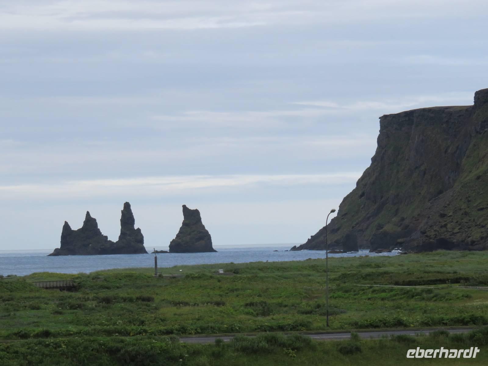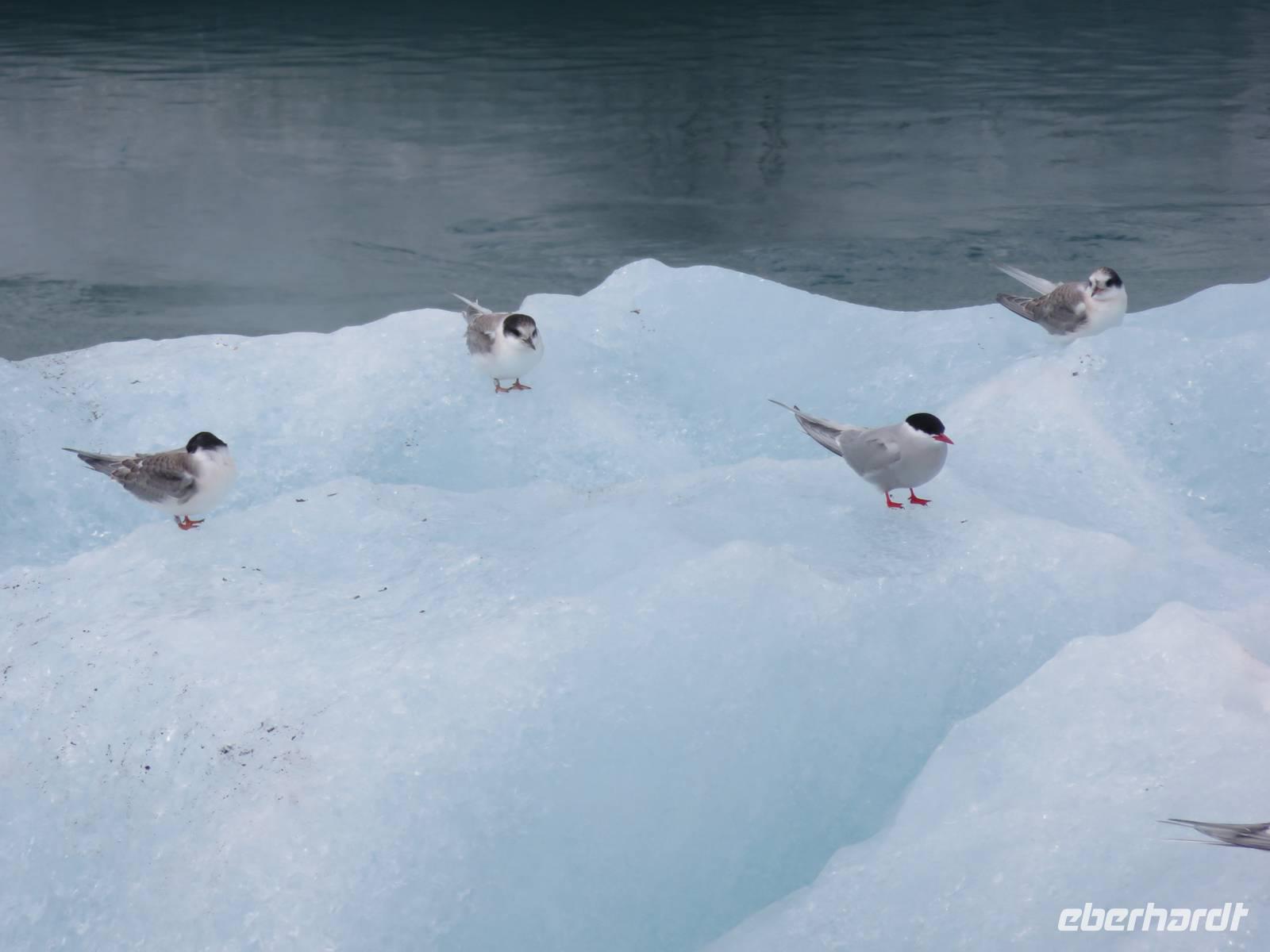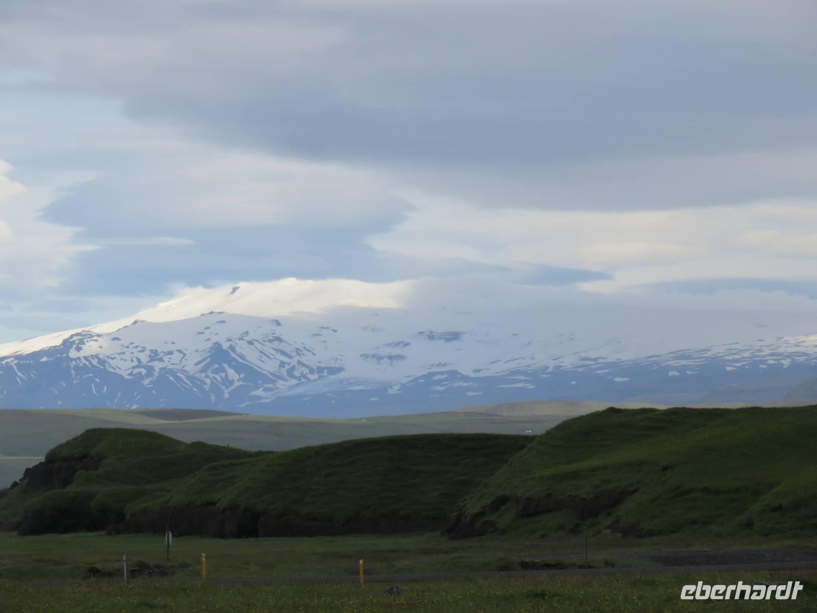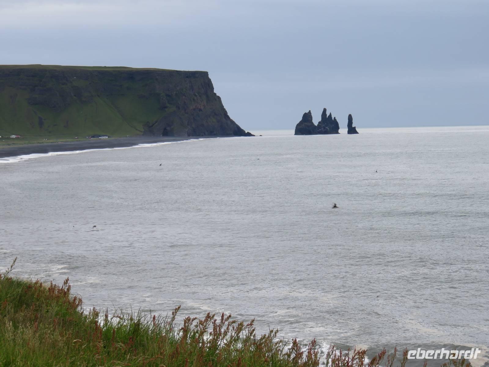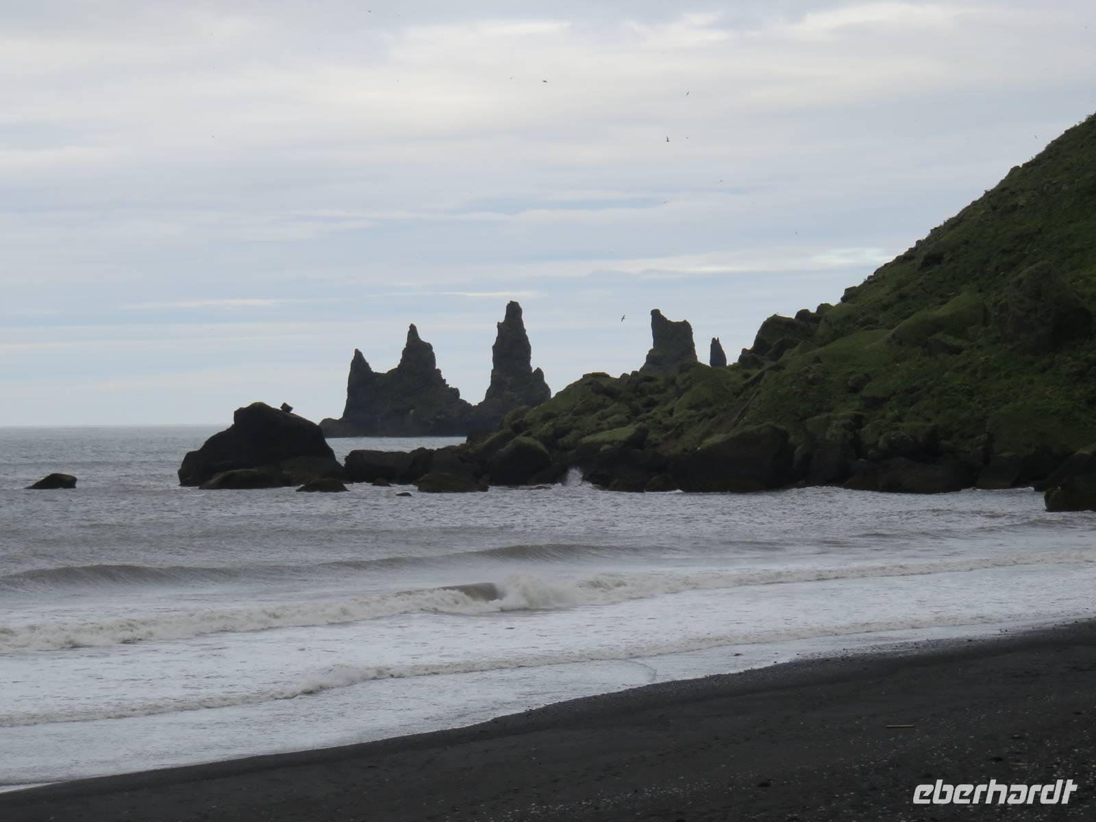 Am Morgen fuhren wir immer im Angesicht des großen Gletschers Vatnajökull und seiner höchsten Erhebung mit 2.110 Metern zur Gletscherlagune Jökulsarlon. Bereits kurz bevor wir den Parkplatz erreichten, sahen wir die großen Eisberge in der Lagune. Wir stiegen in ein Amphibien-Fahrzeug um und es ging direkt in die Lagune. Die Lagune bildete sich seit 1930, als sich der Gletscher zurück zog. Sie ist heute 25 km² groß. Das Eis bricht von der Gletscherzunge ab und landet als Berg oder Scholle in der Lagune. Es ist durch den Druck viel kompakter als anderes Eis und ist transparent. Es benötigt ca. 800 bis 1.200 Jahre bis es an der Gletscherzunge ankommt. So ist das Eis etwa 1.000 Jahre alt, wenn es in der Lagune schwimmt. Die blaue Farbe bekommt das Eis durch die Reflektion des Lichtes, wenn es als transparentes Eis aus dem Wasser kommt. Nach einiger Zeit mit Kontakt zur Luft bilden sich Eiskristalle und das Eis wird weiß. Wir probierten einen Brennevin - den typischen isländischen Schnaps - auf Eis aus der Lagune. Anschließend hatten wir noch etwas Zeit, für Fotos. Wir sahen auch einige Seelöwen. Direkt am Übergang der Lagune ins Meer befindet sich ein schwarzer Strand. Wir sahen die Eisschollen und Eisberge ins Meer schwimmen und an dem Strand lagen die Eisschollen auf dem Sand. Durch Ebbe und Flut ergeben sich diese Naturschauspiele. Ein unglaubliches Erlebnis - Eisschollen am Meeresstrand. Danach haben wir noch an der kleinen Lagune Fjällsarlon, welche sich gerade bildet, einen Fotostopp eingelegt. Hier blies der Wind sehr stark. Nach unserer Mittagspause war Svinafellsjökull unser nächstes Ziel. Die Gletscherzunge kommt sehr weit nach unten und bildet ebenfalls eine kleine Lagune. Wir sahen sehr schön das Eis in verschiedensten Farben und kamen recht nah an die Zunge heran. Am Nationalparkzentrum Skaftafell schauten wir uns einen Film über die Gletscher und den Ausbruch im Jahr 1996 an. Dann ging es durch ein großes Sandfeld, wo inzwischen sehr viel Wind aufgekommen war, weiter Richtung Süden. 1783 kam es zu einem der größten Spaltenausbrüche auf Island. In dessen Folge bildete sich ein 57 km² großes Lavafeld, welches wir durchquerten. Beeindruckende Landschaftformationen, welche heute mit Moos bewachsen sind fingen unsere Blicke ein. Nach einem Fotostopp mit schönem Blick auf Katla, den wohl gefährlichsten, aktiven Vulkan erreichten wir am frühen Abend Vik, wo wir im Hotel unsere Zimmer bezogen. Nach dem Abendessen spazierten wir durch den kleinen Ort zum Strand und einige entdecken sogar noch Papageientaucher - die putzigen Vögel mit den orangen Schäbeln.