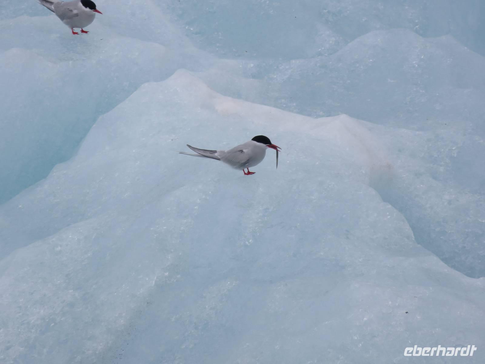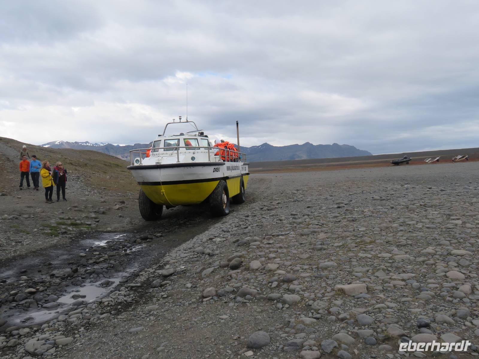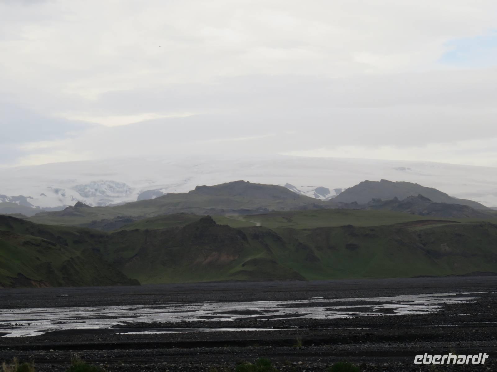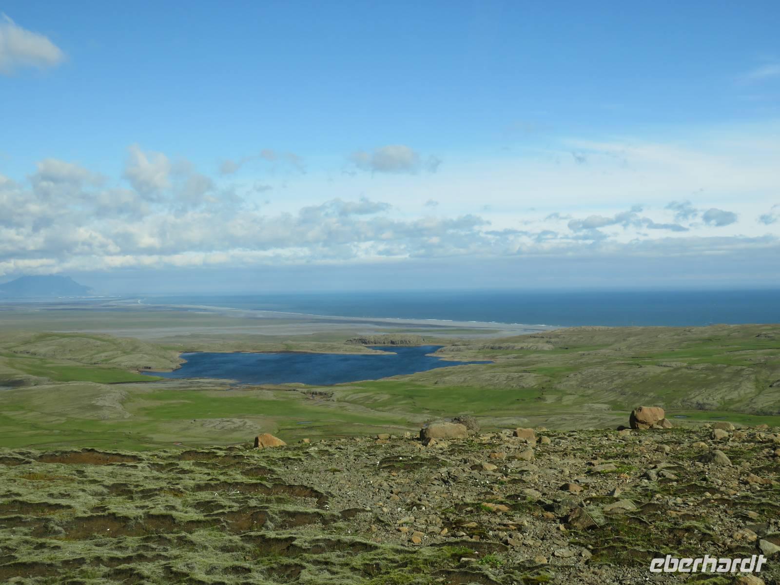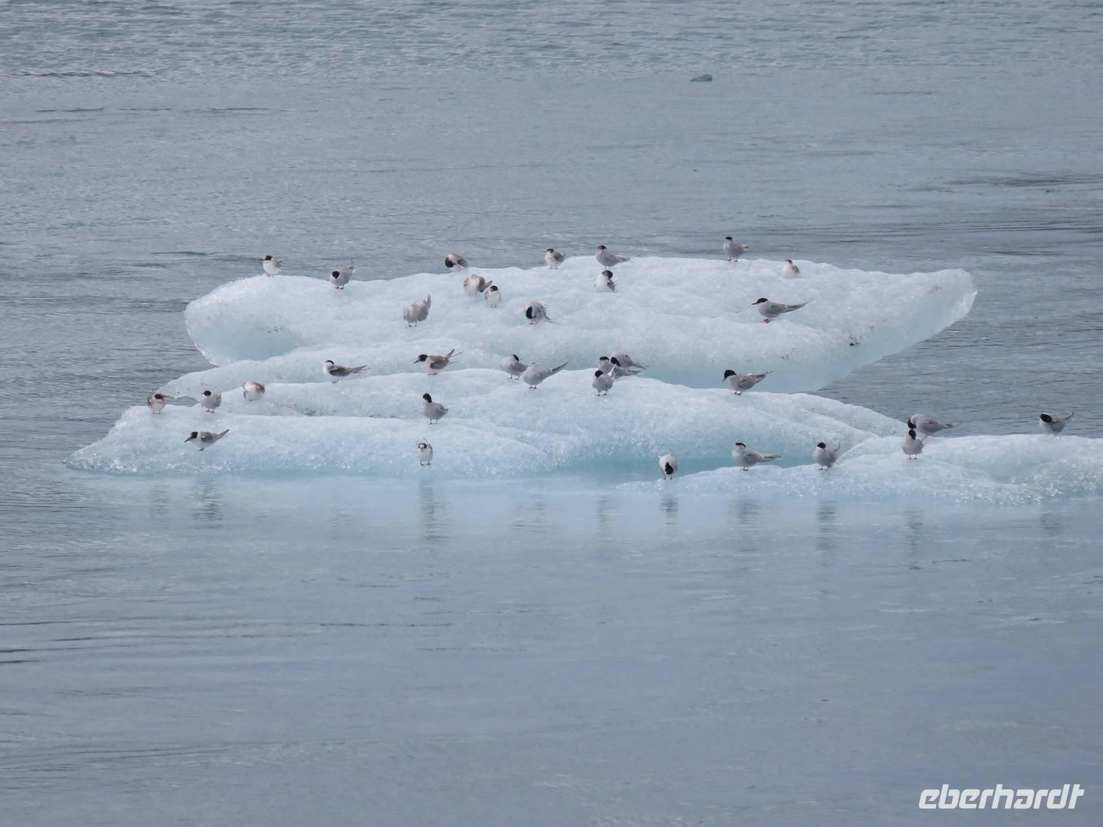Am Morgen fuhren wir immer im Angesicht des großen Gletschers Vatnajökull und seiner höchsten Erhebung mit 2.110 Metern zur Gletscherlagune Jökulsarlon. Bereits kurz bevor wir den Parkplatz erreichten, sahen wir die großen Eisberge in der Lagune. Wir stiegen in ein Amphibien-Fahrzeug um und es ging direkt in die Lagune. Die Lagune bildete sich seit 1930, als sich der Gletscher zurück zog. Sie ist heute 25 km² groß. Das Eis bricht von der Gletscherzunge ab und landet als Berg oder Scholle in der Lagune. Es ist durch den Druck viel kompakter als anderes Eis und ist transparent. Es benötigt ca. 800 bis 1.200 Jahre bis es an der Gletscherzunge ankommt. So ist das Eis etwa 1.000 Jahre alt, wenn es in der Lagune schwimmt. Die blaue Farbe bekommt das Eis durch die Reflektion des Lichtes, wenn es als transparentes Eis aus dem Wasser kommt. Nach einiger Zeit mit Kontakt zur Luft bilden sich Eiskristalle und das Eis wird weiß. Wir probierten einen Brennevin - den typischen isländischen Schnaps - auf Eis aus der Lagune. Anschließend hatten wir noch etwas Zeit, für Fotos. Wir sahen auch einige Seelöwen. Direkt am Übergang der Lagune ins Meer befindet sich ein schwarzer Strand. Wir sahen die Eisschollen und Eisberge ins Meer schwimmen und an dem Strand lagen die Eisschollen auf dem Sand. Durch Ebbe und Flut ergeben sich diese Naturschauspiele. Ein unglaubliches Erlebnis - Eisschollen am Meeresstrand. Danach haben wir noch an der kleinen Lagune Fjällsarlon, welche sich gerade bildet, einen Fotostopp eingelegt. Hier blies der Wind sehr stark. Nach unserer Mittagspause war Svinafellsjökull unser nächstes Ziel. Die Gletscherzunge kommt sehr weit nach unten und bildet ebenfalls eine kleine Lagune. Wir sahen sehr schön das Eis in verschiedensten Farben und kamen recht nah an die Zunge heran. Am Nationalparkzentrum Skaftafell schauten wir uns einen Film über die Gletscher und den Ausbruch im Jahr 1996 an. Dann ging es durch ein großes Sandfeld, wo inzwischen sehr viel Wind aufgekommen war, weiter Richtung Süden. 1783 kam es zu einem der größten Spaltenausbrüche auf Island. In dessen Folge bildete sich ein 57 km² großes Lavafeld, welches wir durchquerten. Beeindruckende Landschaftformationen, welche heute mit Moos bewachsen sind fingen unsere Blicke ein. Nach einem Fotostopp mit schönem Blick auf Katla, den wohl gefährlichsten, aktiven Vulkan erreichten wir am frühen Abend Vik, wo wir im Hotel unsere Zimmer bezogen. Nach dem Abendessen spazierten wir durch den kleinen Ort zum Strand und einige entdecken sogar noch Papageientaucher - die putzigen Vögel mit den orangen Schäbeln.