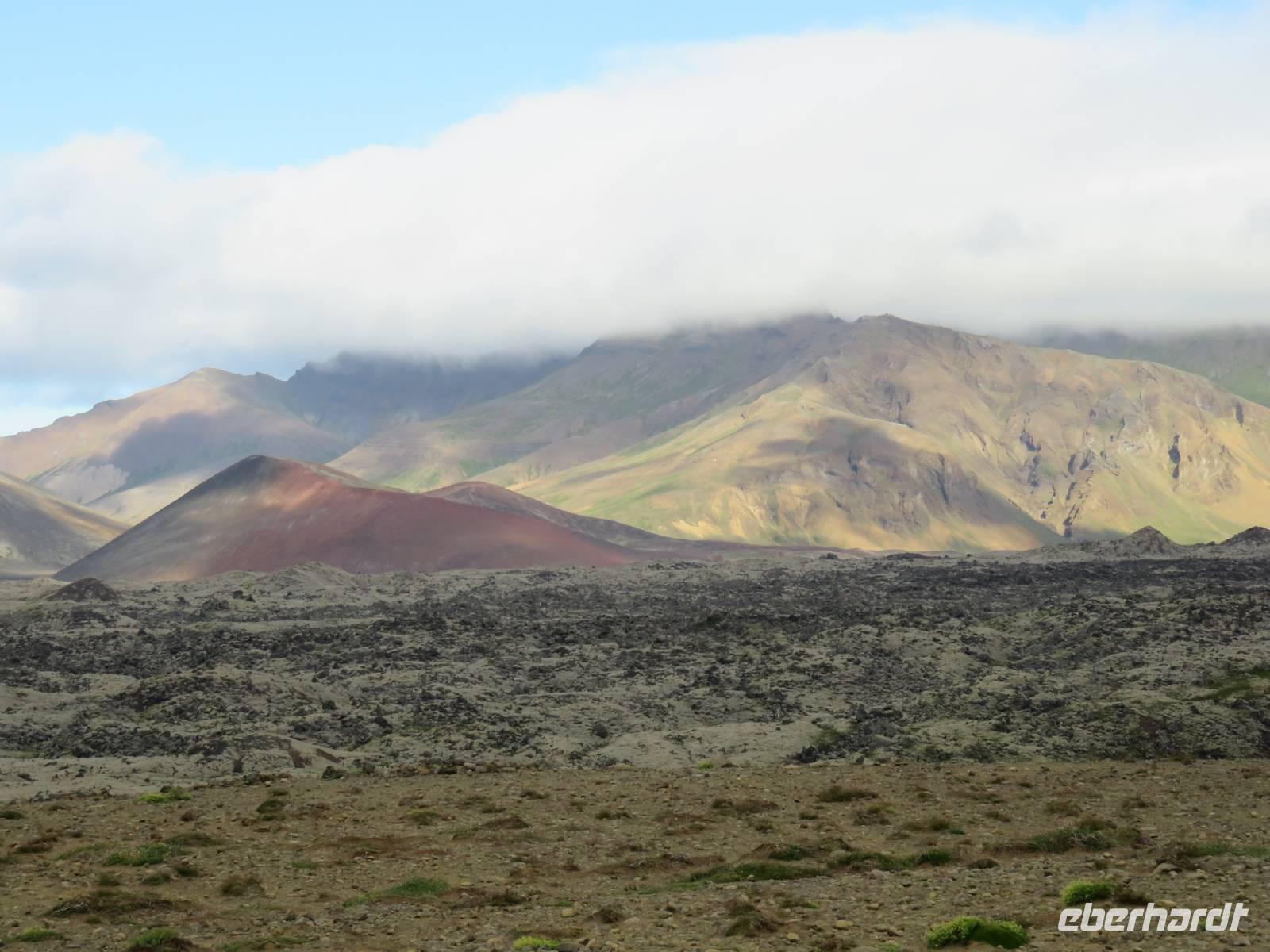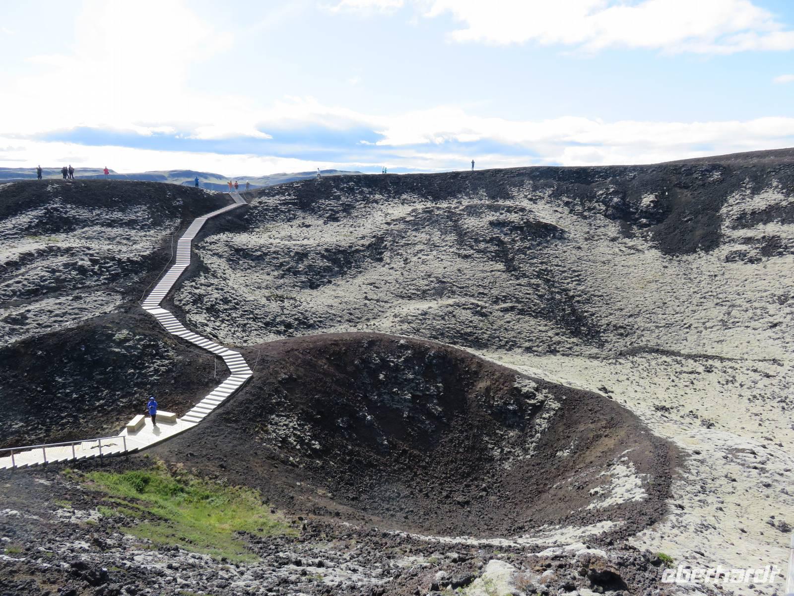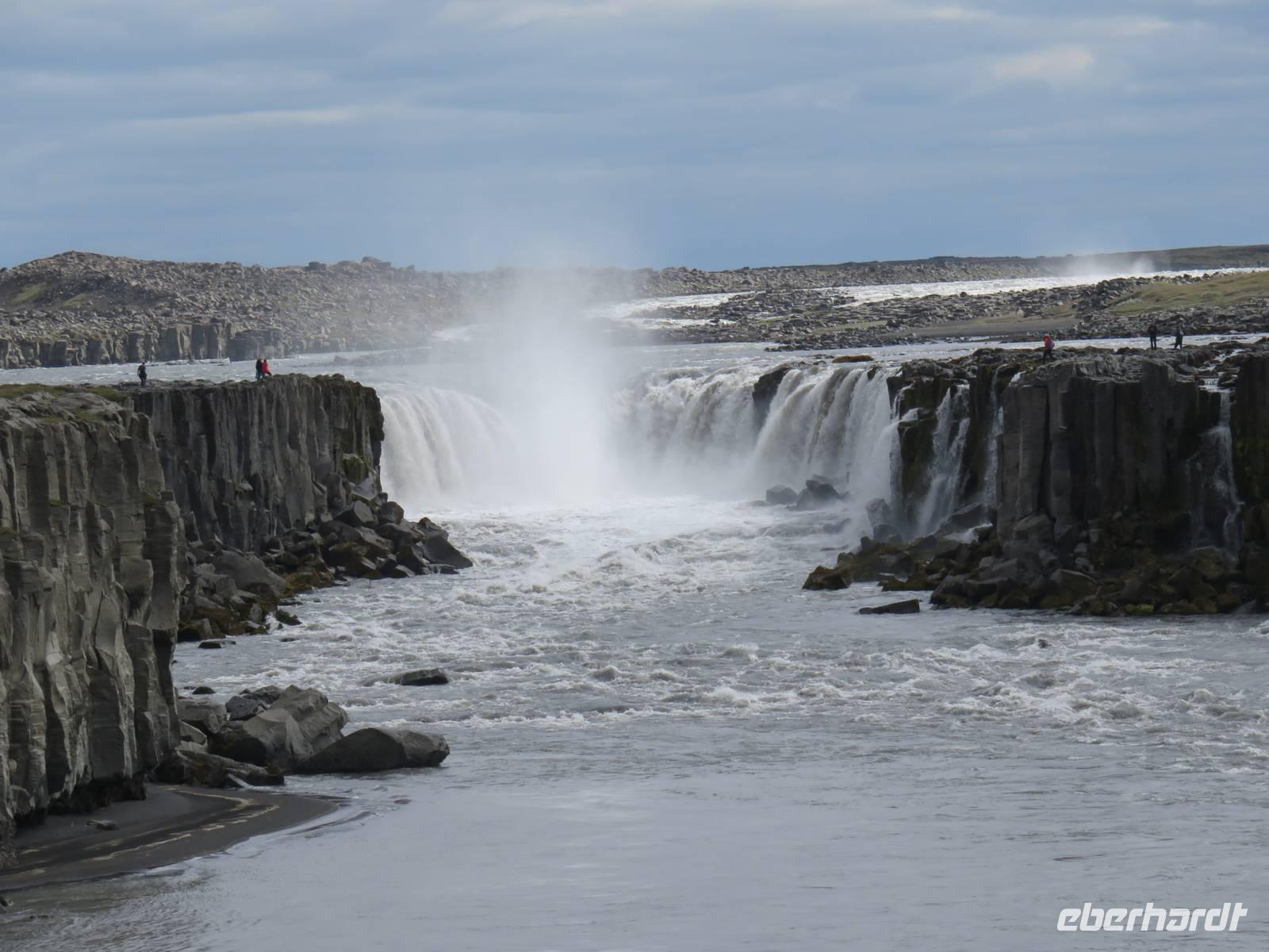 Am heutigen Tag fuhren wir etwas zeitiger los, aber wir wollten ja viel erleben. Zunächst erreichten wir den Myvtan, den Mückensee. Wir besuchten die Pseudokrater. Diese sind nur Scheinkrater und entstanden dadurch, dass die heiße Lava in ein Feuchtgebiet floss und es dort zu explosionsartigen Entladungen von Wasserdampf kam, welche diese Krater schufen. Weiter führte unsere Tour nach Dimmuborgir zu den schwarzen Burgen. Das Lavagestein bildete in dieser bizarren Landschaft ein Labyrinth mit unzähligen verschiedensten Steingebilden. Wir entdeckten sogar eine Höhle, wo sich wohl manchmal die dreizehn isländischen Weihnachtsmänner aufhielten. Anschließend konnten wir bei einem Bad im Thermalbad Jardbödin entspannen. Wir genossen das Baden im mineralhaltigen, warmen Wasser, welches direkt aus der Erde kam, und den Ausblick über die einzigartige Vulkanlandschaft. Bevor es weiterging, nahmen fast alle noch einen kleinen Imbiss ein und wir probierten das Lavabrot, welches direkt im Lavagestein in der Erde gebacken wurde. Vom warmen Wasser ging es mit einem Fotostopp durch die weitere Landschaft, welche an die Mondlandschaft erinnerte, in das Hochtemperaturgebiet Namafjall Hverir. Das Gebiet wird auch Teufelsküche genannt und macht seinem Namen alle Ehre. In Schlammtöpfen spritzte und blubberte der Schlamm aus der Erde und an mehreren Stellen entwich Dampf mit lautem Zischen - es klang fast wie ein Schnellkochtopf - aus dem Boden. In einer Vielzahl von Farben lagerten sich verschiedenste Stoffe auf dem Boden ab und ein starker Schwefelgeruch zog durch die Luft. Die vorletzte Station an diesem Tag waren die Wasserfälle Selfoss und Dettifoss. Diese gehören zu den wasserreichsten Wasserfällen Europas. Wieder ging es zu Fuß durch ein ungewöhnliche Landschaft aus großen Basaltquadern zunächst zum kleineren Selfoss. Danach spazierten wir zum gewaltigen Dettifoss. Auf einer Länge von 100 Metern stürzten die Wassermassen mit lautem Donner 45 Meter in die Tiefe. Ein wahres Schauspiel. Zum Abschluss wollte uns Rosa unbedingt noch einen magischen Ort zeigen. Schon eine Weile sahen wir während unserer Fahrt den schönsten Vulkan Islands, den Breitschultrigen. Er sah aus wie eine Torte mit Sahnehaube. In Mödrudalur an dem kleinen, völlig einsamen und höchstgelegenen Bauernhof Islands legten wir nochmals eine kurze Pause ein und sahen den Vulkan in seiner vollen Schönheit. Nun hatte Gisele, unser Chauffeur, noch eine tolle Idee. Er fuhr nicht die Hauptstraße, sondern eine Piste direkt durch die Einöde der Wüste der Missetäter, wie dieser Bereich genannte wurde. Das war ein einmaliges Erlebnis, denn riesige graue und schwarze Aschefelder unterbrochen durch kleine Vulkankegel bilden eine bizarre Mondlanschaft. Nachdem wir die Hauptstraße wieder erreicht hatten, wandelte sich die Landschaft wieder und wir fuhren durch grüne Täler. Am frühen Abend erreichten wir unser Hotel in Egilstadir. Wir waren uns einig, dieser Tag war der Tag mit den meisten unterschiedlichsten Eindrücken.