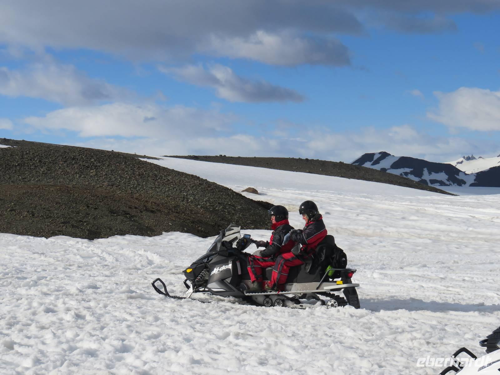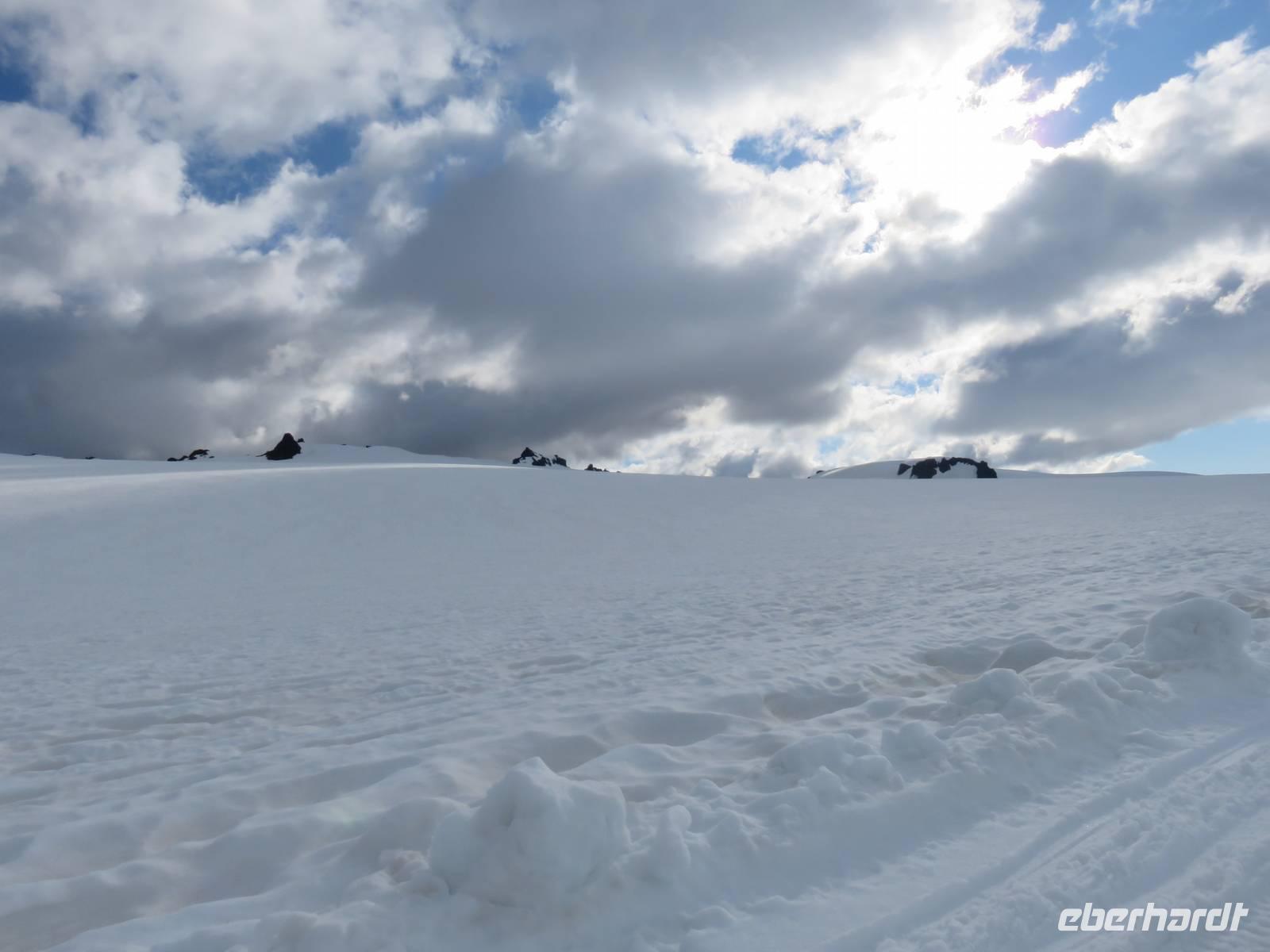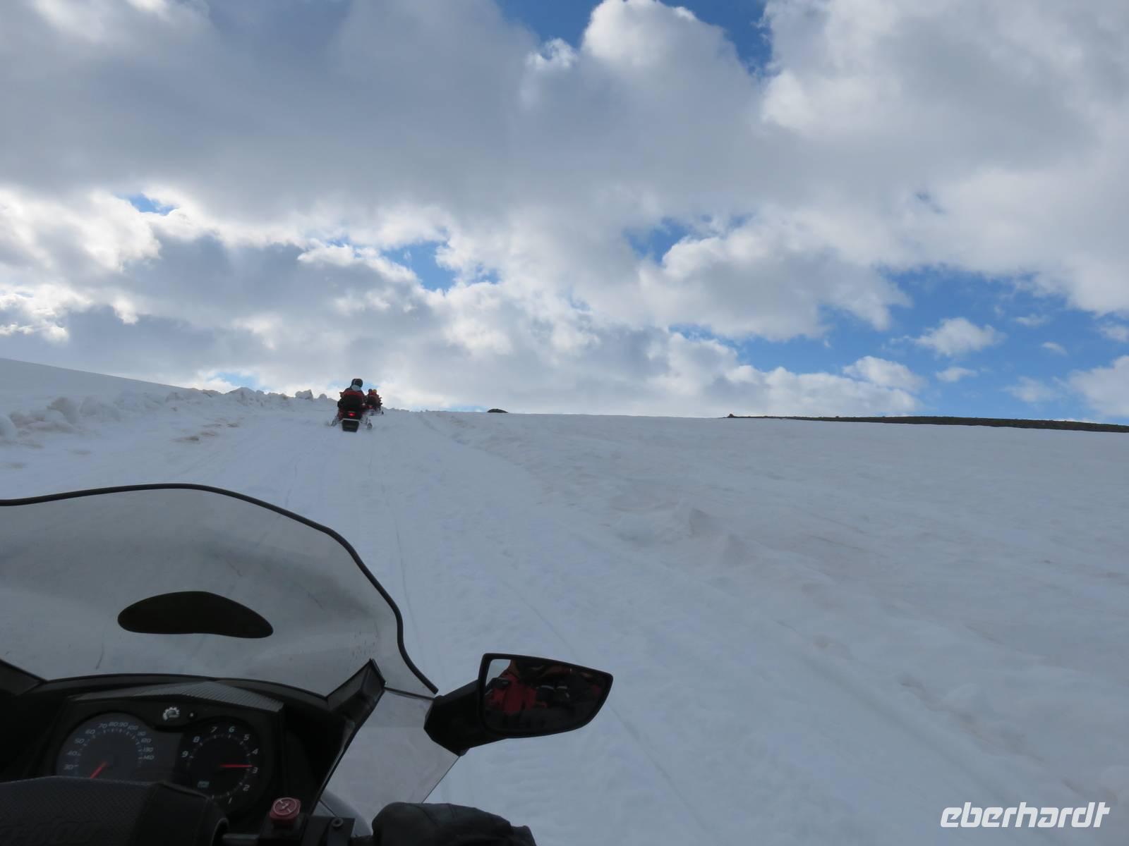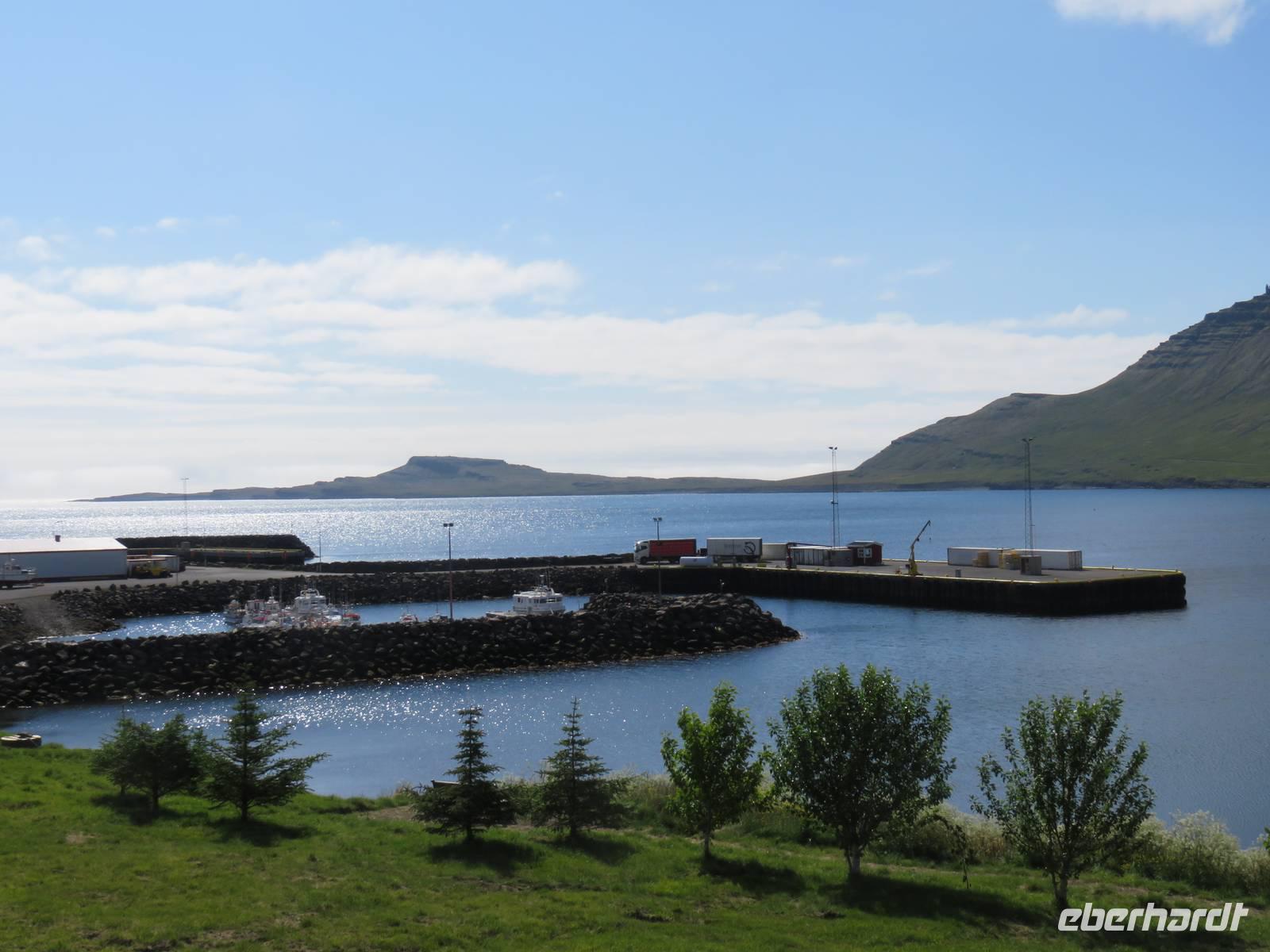 Heute setzten wir unsere Reise in Richtung Osten fort. Wir verließen Egilstadir und es ging zunächst zum Redjarfjord. Nach einem ersten Fotostopp am Fjord erreichten wir Stödvarfjördur. In dem kleinen Ort befindet sich Petras Steinhaus. Die Isländerin sammelte ihr ganzes Leben lang Steine in Island. Von ihren Wanderungen brachte sie diese mit in ihr Haus und legte im Haus und im Garten eine riesige Sammlung von tausenden Steinen an. All diese Kostbarkeiten konnten wir uns ansehen. Petra verstarb vor einigen Jahren, aber ihre Kinder und Enkelkinder führen das Haus weiter und so können sich Touristen aus aller Welt daran erfreuen. Wir waren beeindruckt von der Vielfalt und Farbenpracht der verschiedenen Gesteinsarten, die es in Island gibt. Nun ging es weiter immer entlang der Ostfjorde. Uns eröffneten sich immer wieder einmalig schöne Ausblicke über das Meer und die Küste. Unterwegs legten wir verschiedene Fotostopps ein. Mittags machten wir eine Pause im kleinen Ort Djupivogur. Der Fischerort liegt idyllisch in einer kleinen Bucht. Über die Küstenstraße mit einem weiteren kurzen Fotostopp an einem Leuchtturm fuhren wir Richtung Süden. Am Leuchtturm merkten wir, welche Kraft der Wind hat. Hier blies er besonders stark und wir kamen uns vor, wie im Winter. Am Nachmittag erreichten wir Höfn. Wir bezogen rasch unsere Zimmer im Hotel Höfn und dann erwartete uns schon das nächste Abenteuer. Fast alle Gäste hatten sich zur Teilnahme an einem Ausflug auf den Gletscher Vatnajökull entschieden. Mit zwei Kleinbussen wurden wir am Hotel abgeholt. Zunächst ging es durch eine spektakuläre Landschaft, die der Gletscher geformt hatte, auf 1.400 Meter Höhe zur Basisstation. Nun stiegen wir in Jeeps oder auf Motorschlitten um. Die Motorschlittenfahrer wurden mit einem warmen Overall, Helm und Gummistiefeln ausgerüstet. Nach einer kurzen Einweisung begann der Fahrspaß. Es machte riesigen Spaß mit den Motorschlitten über die Schneefläche zu fahren. Unterwergs legten wir zwei Stopps ein. Unser Guide lieferte uns einige Fakten zum größten Gletscher Europas außerhalb von Grönland: Der Gletscher Vatnajökull hat eine Fläche von über 8.100 km², ist in der Nord-Süd-Ausdehnung 90 km lang und in der Ost-West-Ausdehnung 140 km breit. Wir waren auf einer Höhe von 1.700 Metern und standen auf einer 400 Meter dicken Eisschicht. Die stärkste Eisdecke ist 1.000 Meter dick. Wir genossen bei traumhaftem Wetter den Ausblick über den Gletscher in die Berge und hinunter zum Meer. Es war atemberaubend. Nun hieß es schon wieder umkehren und zurück zur Station zu fahren. Die Rückfahrt ging etwas schneller, denn jeder gab etwas mehr Gas und traute sich etwas mehr Geschwindigkeit zu. Allerdings empfanden wir 45 km/h schon als recht schnell. Begeistert erreichten wir die Station, kleideten uns um und bestiegen wieder die Kleinbusse. Wir fuhren die gleiche Strecke zurück und ließen unsere Blicke nochmals über die einzigartige Landschaft schweifen. Im Hotel wurden wir mit einem fantastische Abendessen erwartet. Ein wunderschöner Tag ging zu Ende!