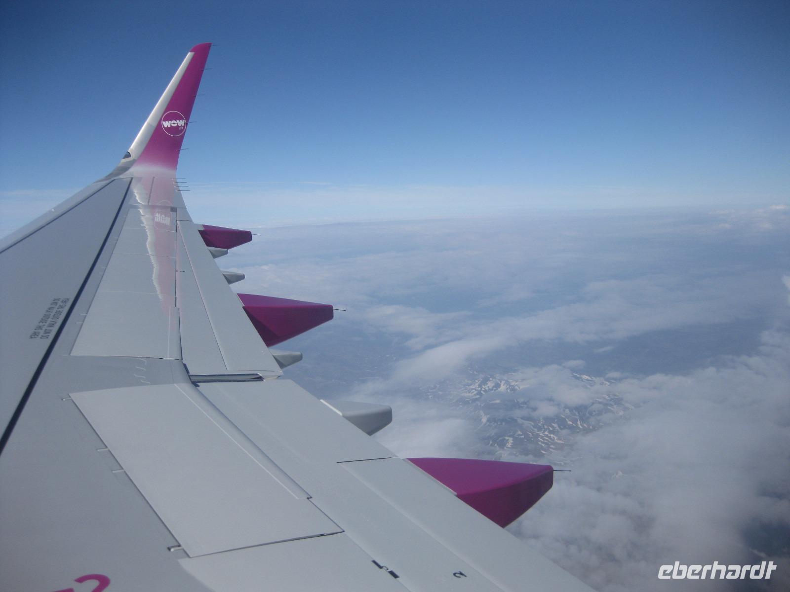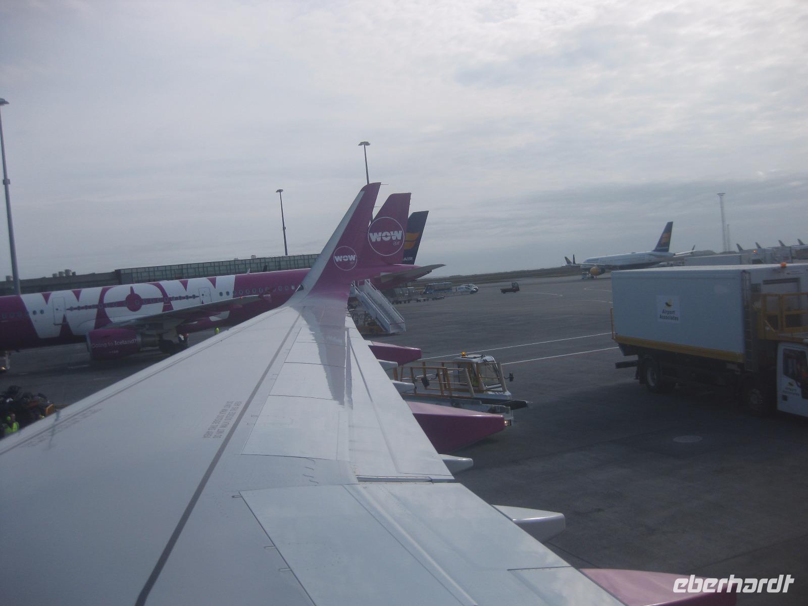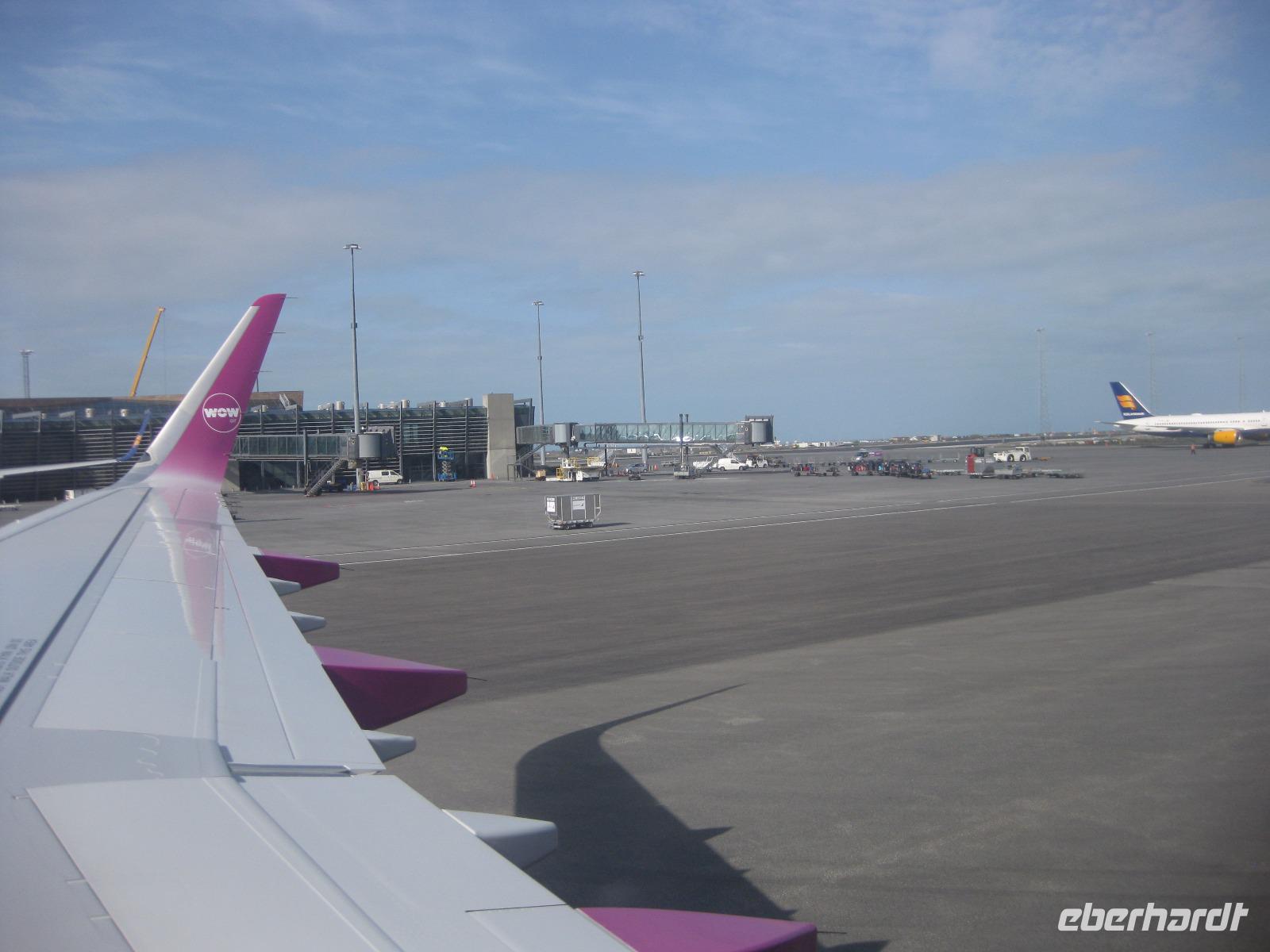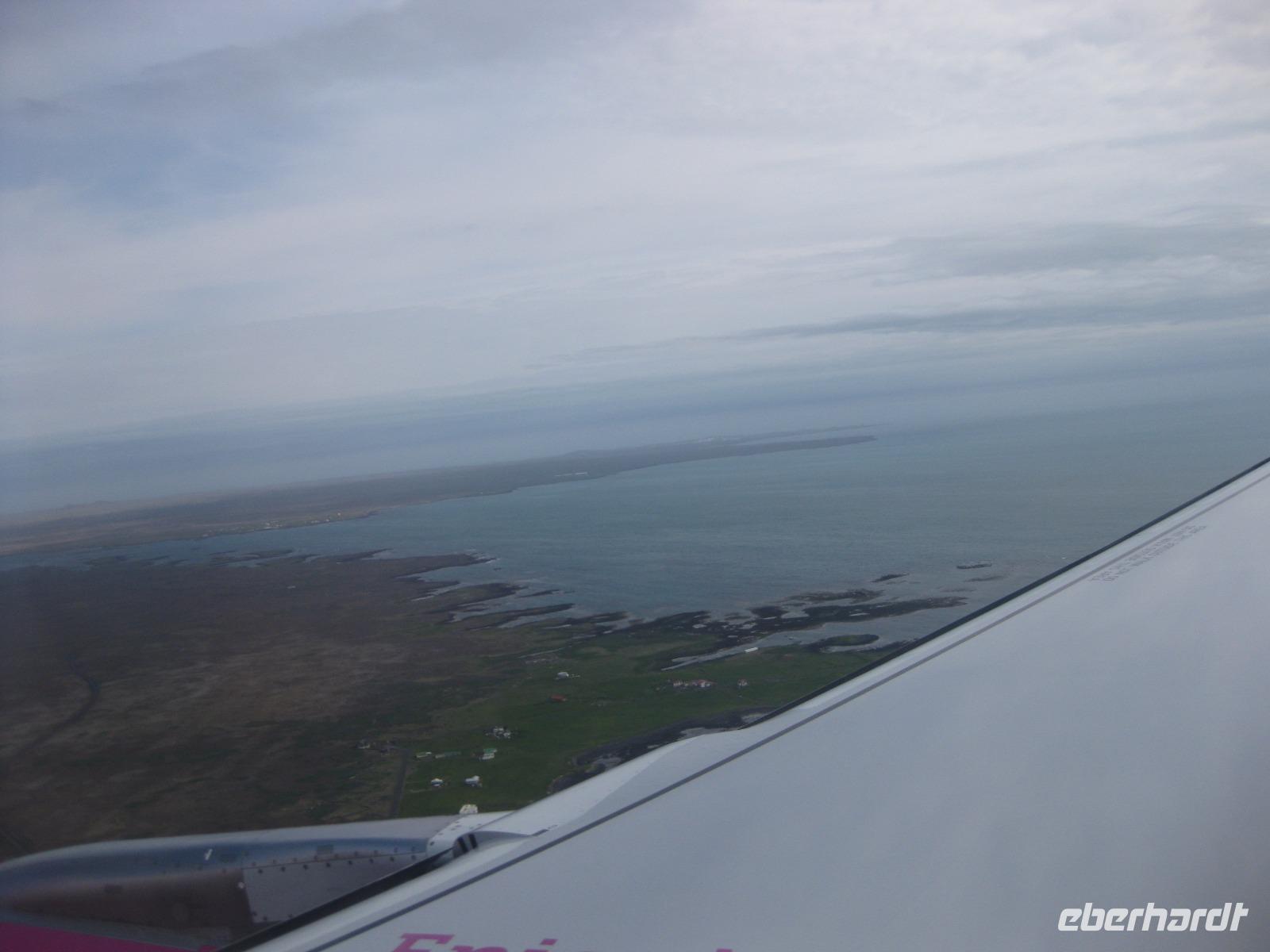 Leider geht unsere Islandreise nun schon wieder zu Ende. Wir müssen sehr früh aufstehen. Ab 2.50 Uhr können wir unsere Breakfastboxen in Empfang nehmen und noch im Hotel etwas davon essen oder mitnehmen und dann am Flughafen essen. An der Hotelbar steht auch Kaffee für uns bereit. Um 3.10 Uhr kommt der Bus und holt uns ab. Wir fahren zum Flughafen nach Keflavik, checken ein, geben unser Gepäck ab und gehen durch die Sicherheitskontrolle. Alles geht unproblematisch. Auf dem Flughafen herrscht reges Treiben, alles ist geöffnet. Wir verabschieden uns von den Gästen, die nach Frankfurt fliegen. Ihre Maschine startet fast zur gleichen Zeit. Fast pünktlich um 6.30 Uhr erheben wir uns in die Lüfte und fliegen nach Berlin-Schönefeld zurück.