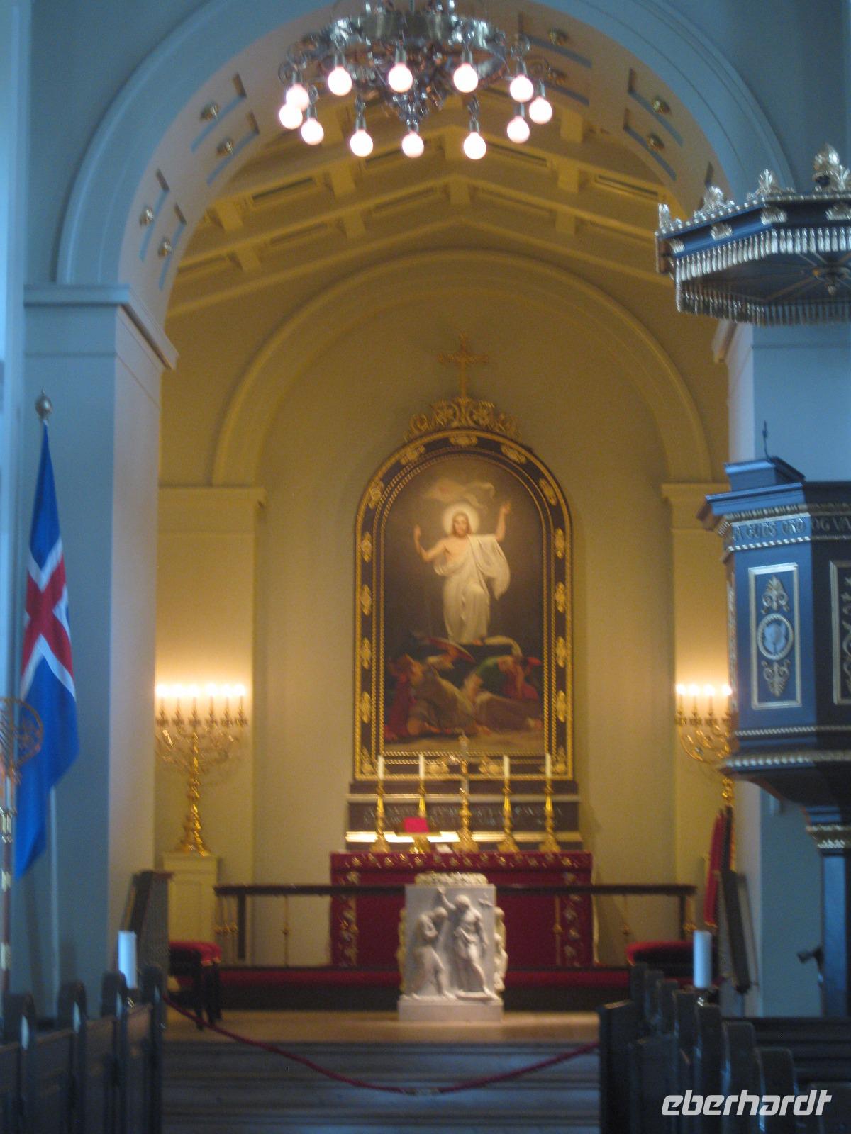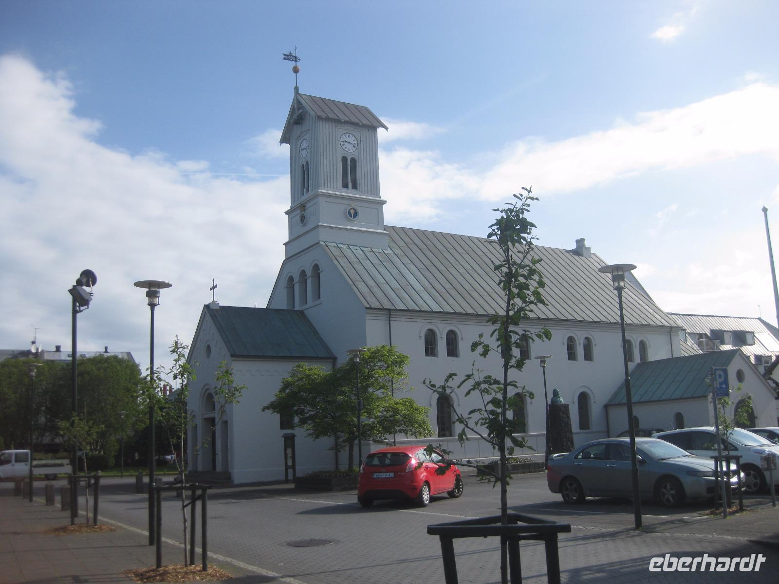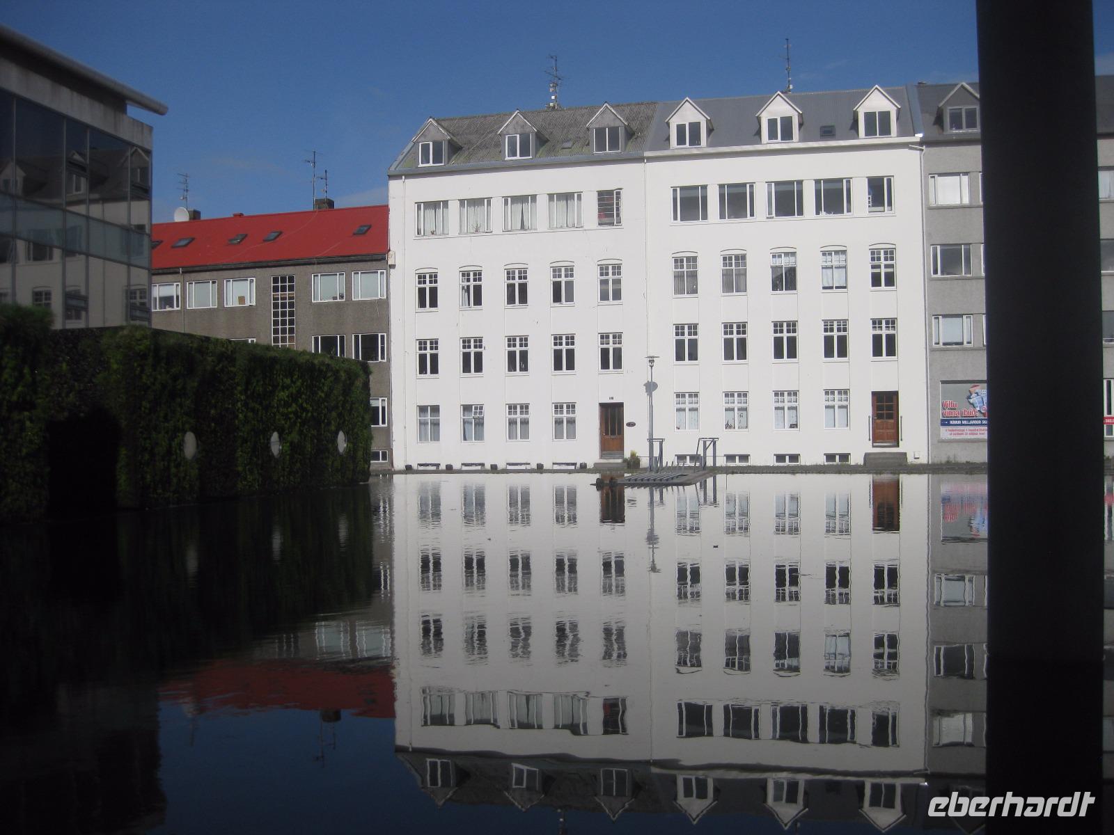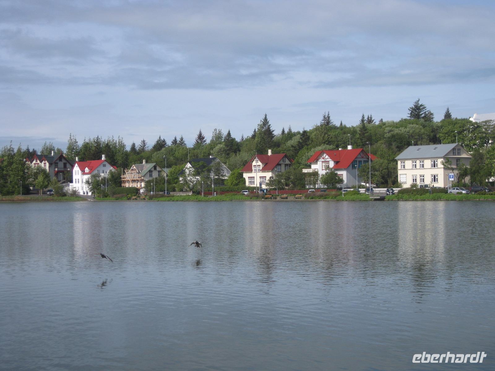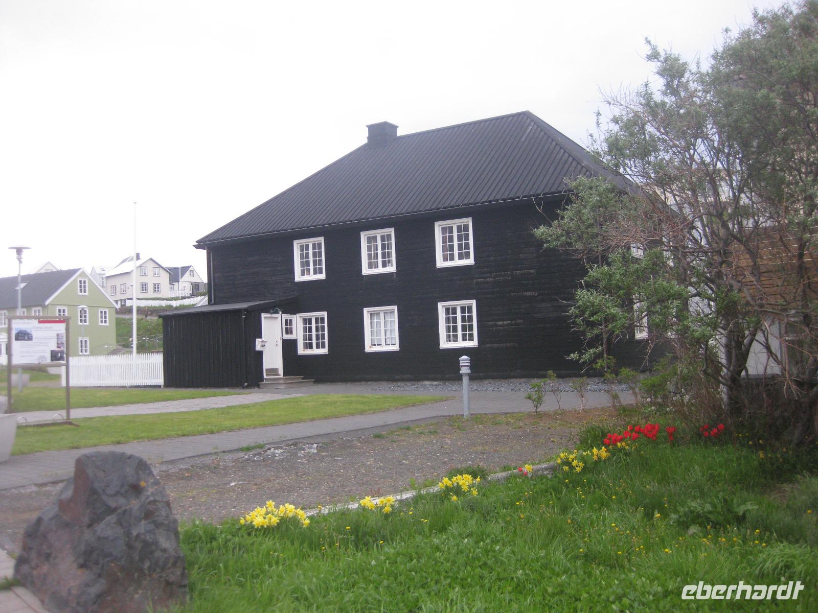 Nach dem Frühstück treffen wir Berglind und wir starten zu einem kleinen ersten Stadtrundgang zu Fuß. Wir sehen das älteste Haus Reykjaviks, Statuen berühmter Isländer, das Parlamentsgebäude, die evangelisch-lutherische Domkirche und das Rathaus und wir tauschen auf der Bank unsere Euro in Isländische Kronen. Dann erwartet uns der Bus und wir starten zu unserer Fahrt auf dem "Goldenen Kreis". Ehe wir Reykjavik verlassen besuchen wir noch das kleine weiße Gästehaus "Höfdi". Hier trafen sich im Jahr 1986 Gorbatschow und Reagan und läuteten das Ende des Kalten Krieges ein.