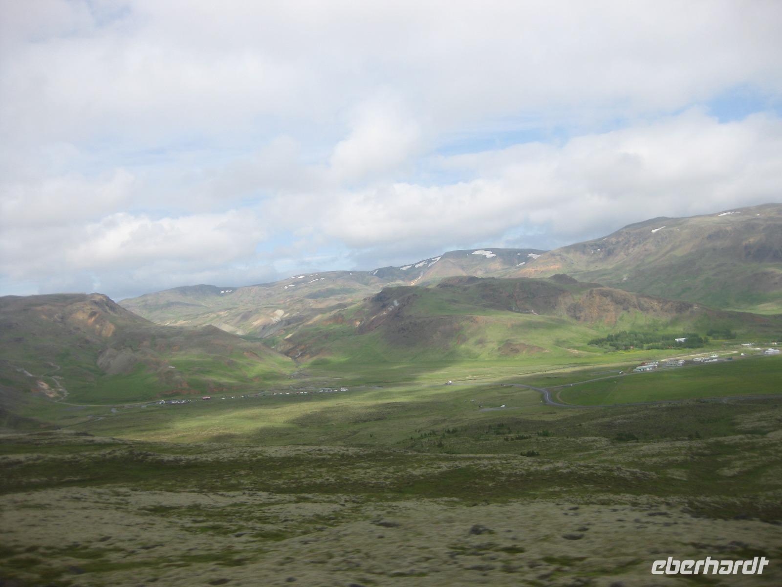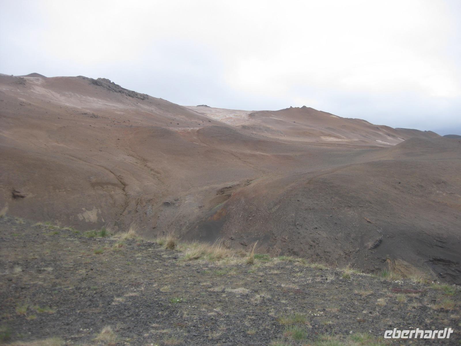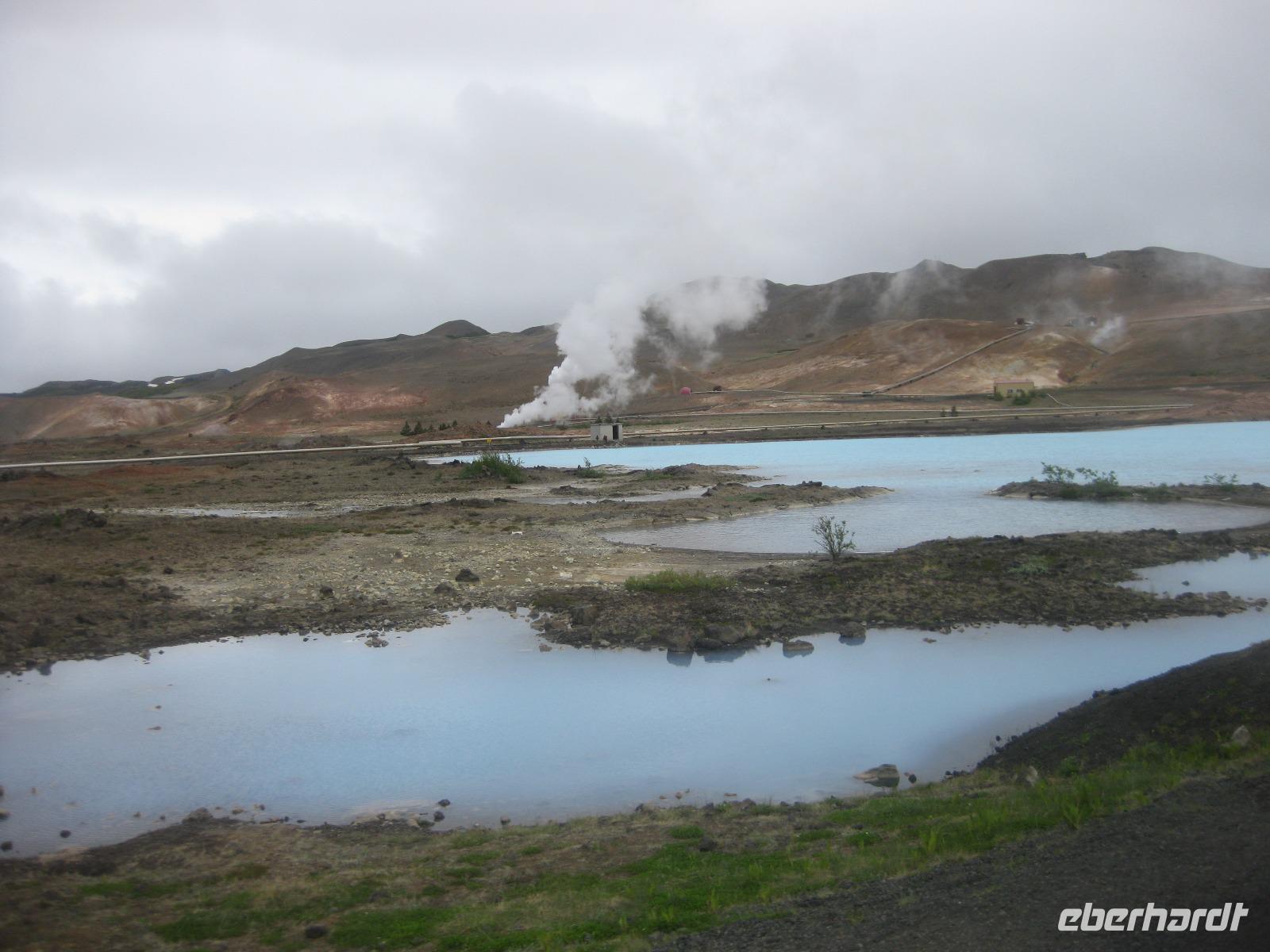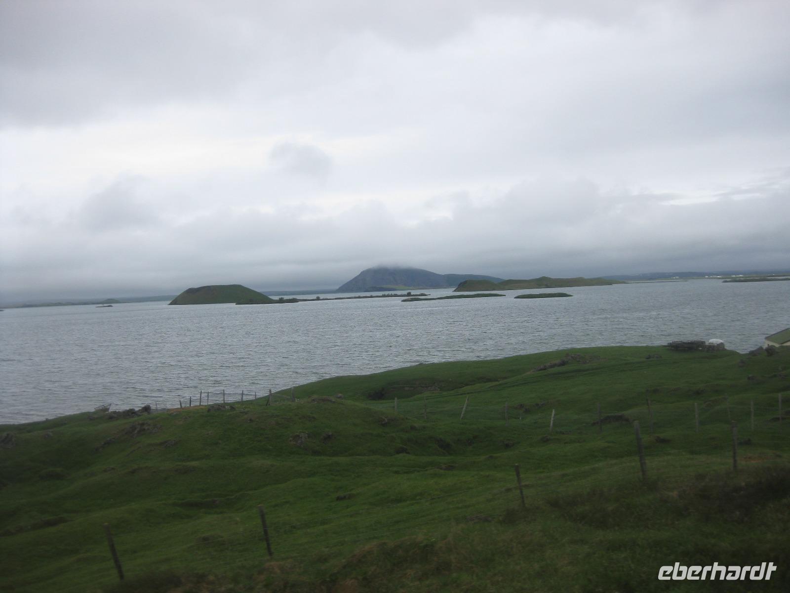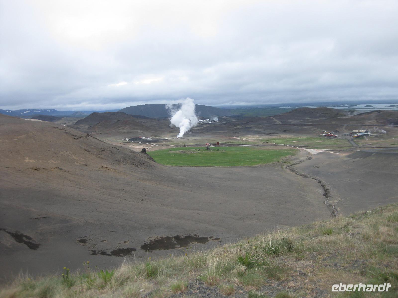 Wir müssen wieder an das andere Ufer des Eyjafjördur und fahren erst einmal ein ganzes Stück die Strecke von gestern. In Höhe des "Godafoss" biegen wir ab und fahren in Richtung Myvatn. Unsere Fahrt geht am "Laxa", einem der besten Lachsflüsse Islands entlang und dann haben wir schon das Myvatn-Gebiet erreicht. Die Landschaft ist hier so grandios, deshalb ein Muss für jeden Islandbesucher.
