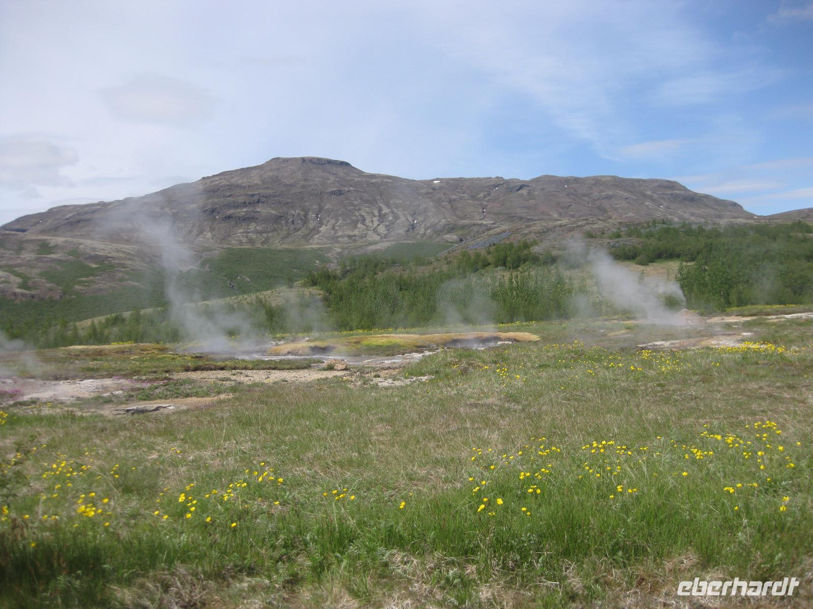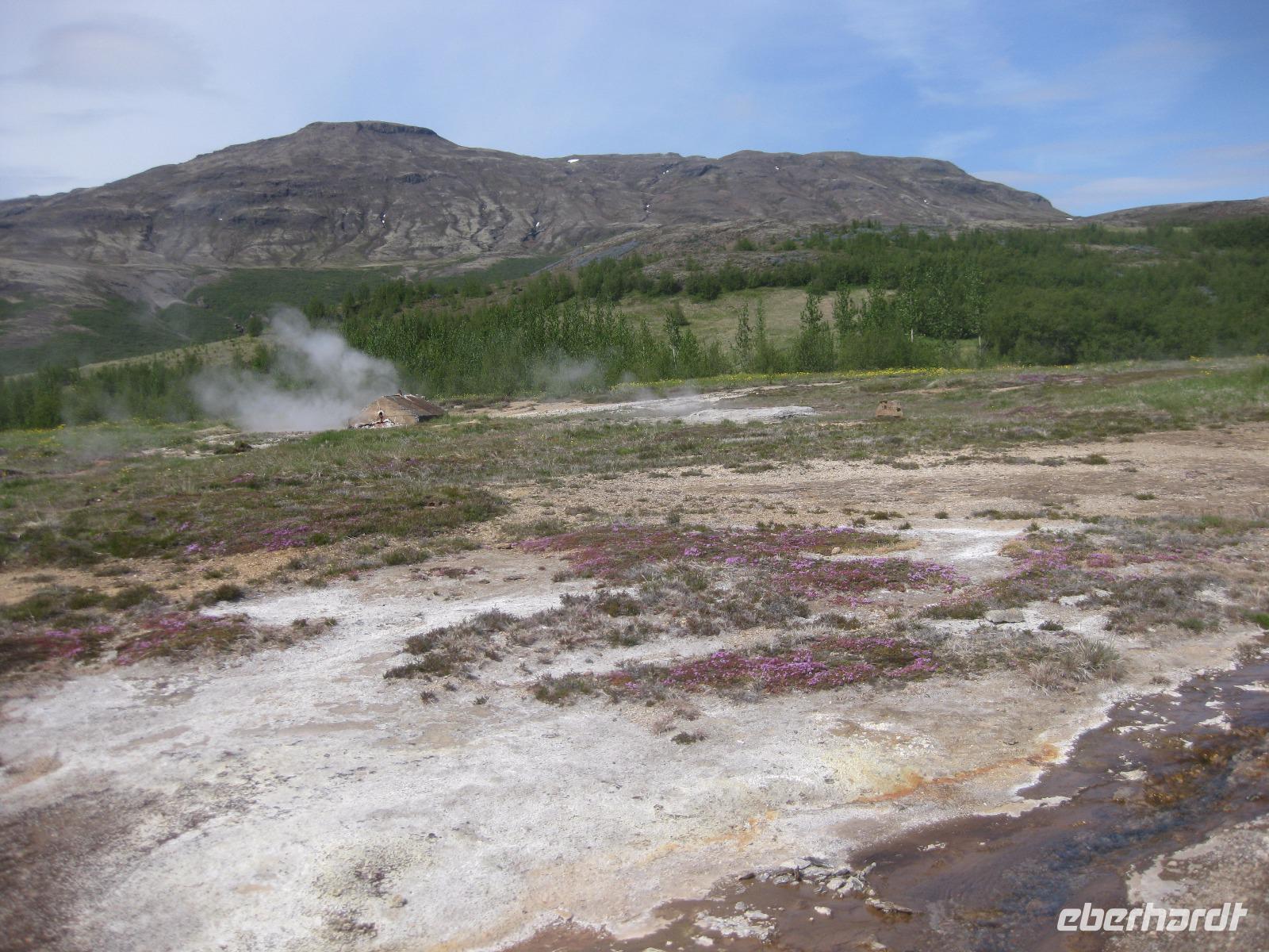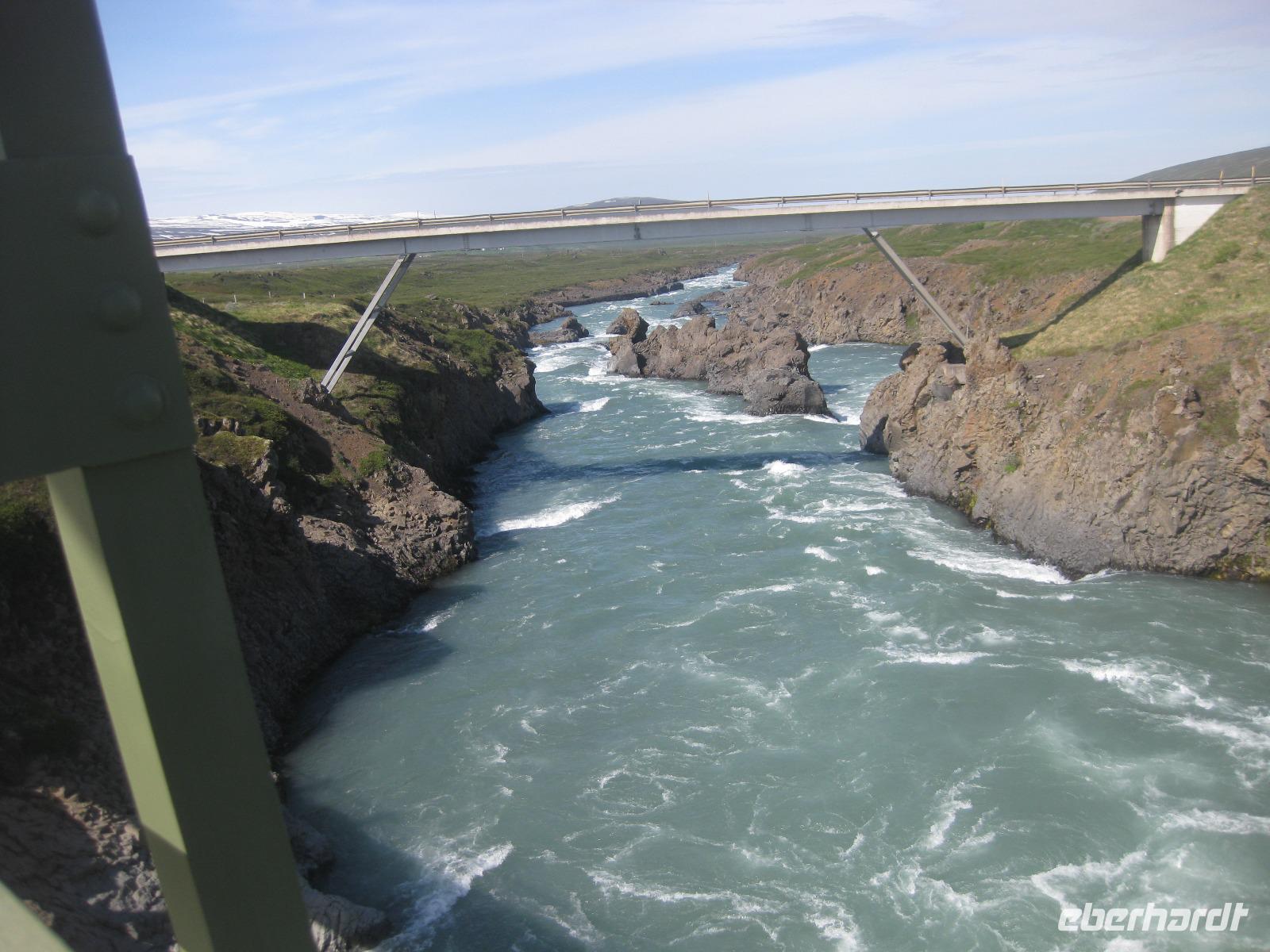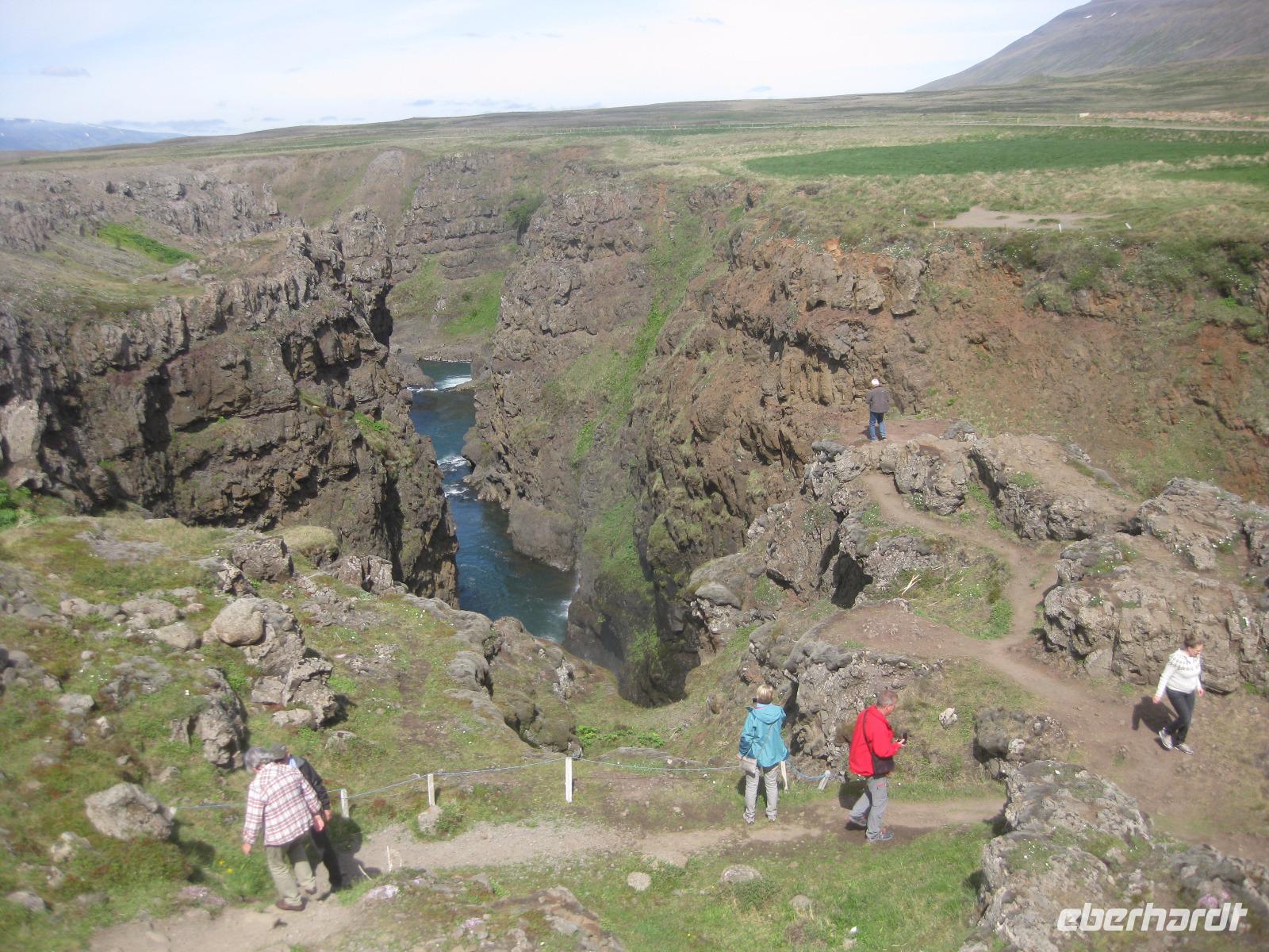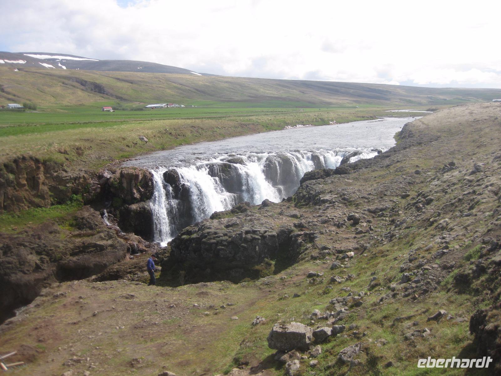 Wir müssen wieder an das andere Ufer des Eyjafjördur und fahren erst einmal ein ganzes Stück die Strecke von gestern. In Höhe des "Godafoss" biegen wir ab und fahren in Richtung Myvatn. Unsere Fahrt geht am "Laxa", einem der besten Lachsflüsse Islands entlang und dann haben wir schon das Myvatn-Gebiet erreicht. Die Landschaft ist hier so grandios, deshalb ein Muss für jeden Islandbesucher.