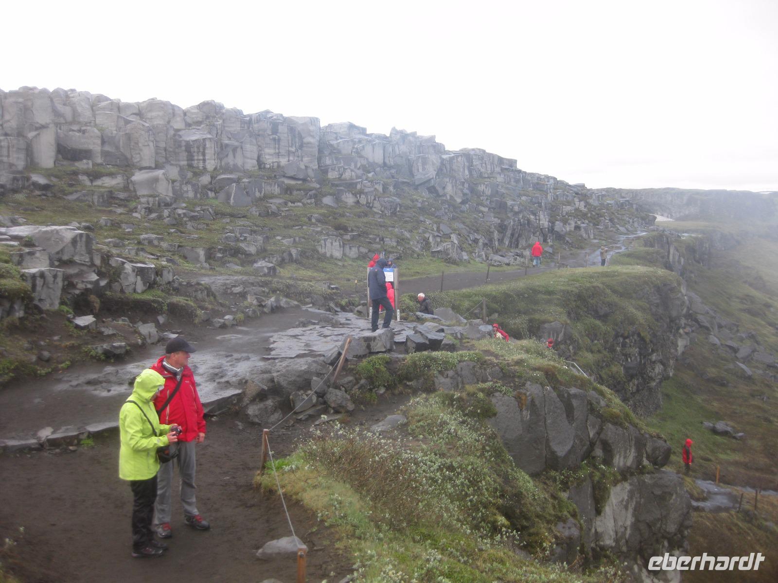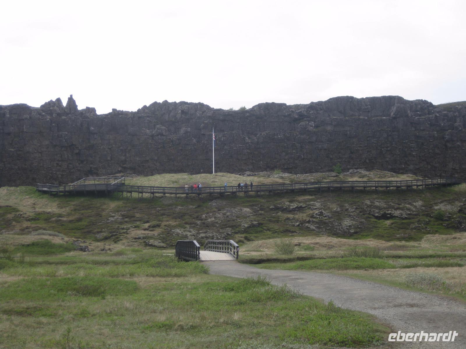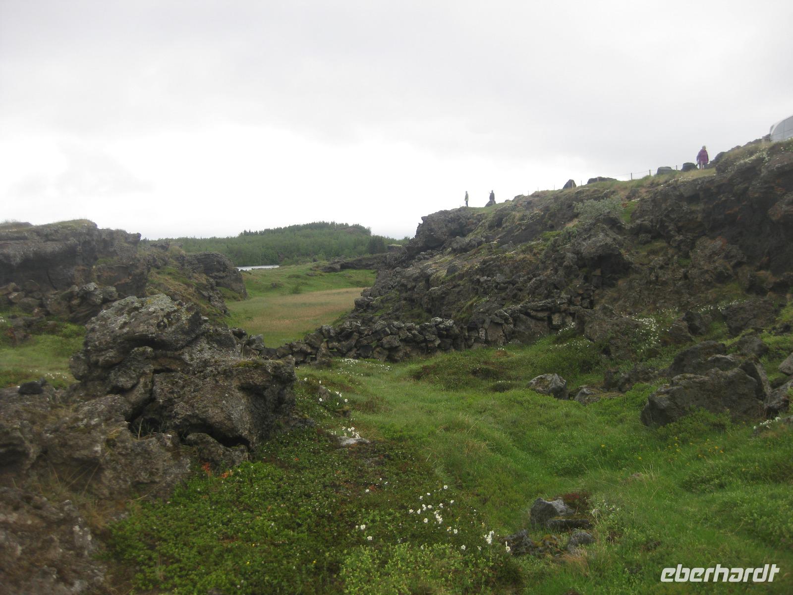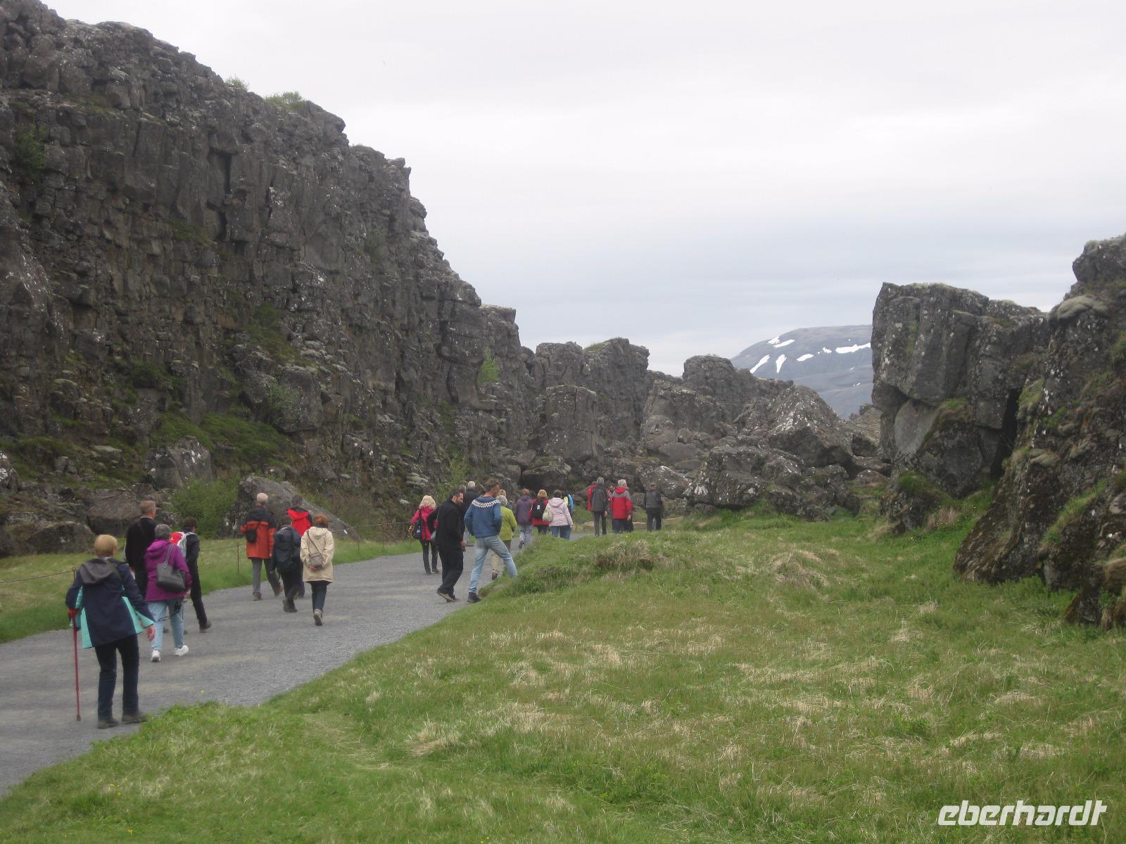 Aber im Laufe der Jahre sind die geotektonischen Platten schon einige Kilometer auseinander gerückt. Historisch ist der Nationalpark von großer Bedeutung, weil hier im Jahr 930 das erste demokratische Parlament der Welt ausgerufen wurde. Hier trat das Althing, das Parlament der Wikingerzeit, zusammen. Wir können genau an diesem Ort stehen. Und Berglind erzählt uns sehr anschaulich von den Ereignissen der damaligen Zeit. Heute begeht das moderne Island an diesem bedeutenden historischen Ort wichtige Ereignisse und Gedenktage.