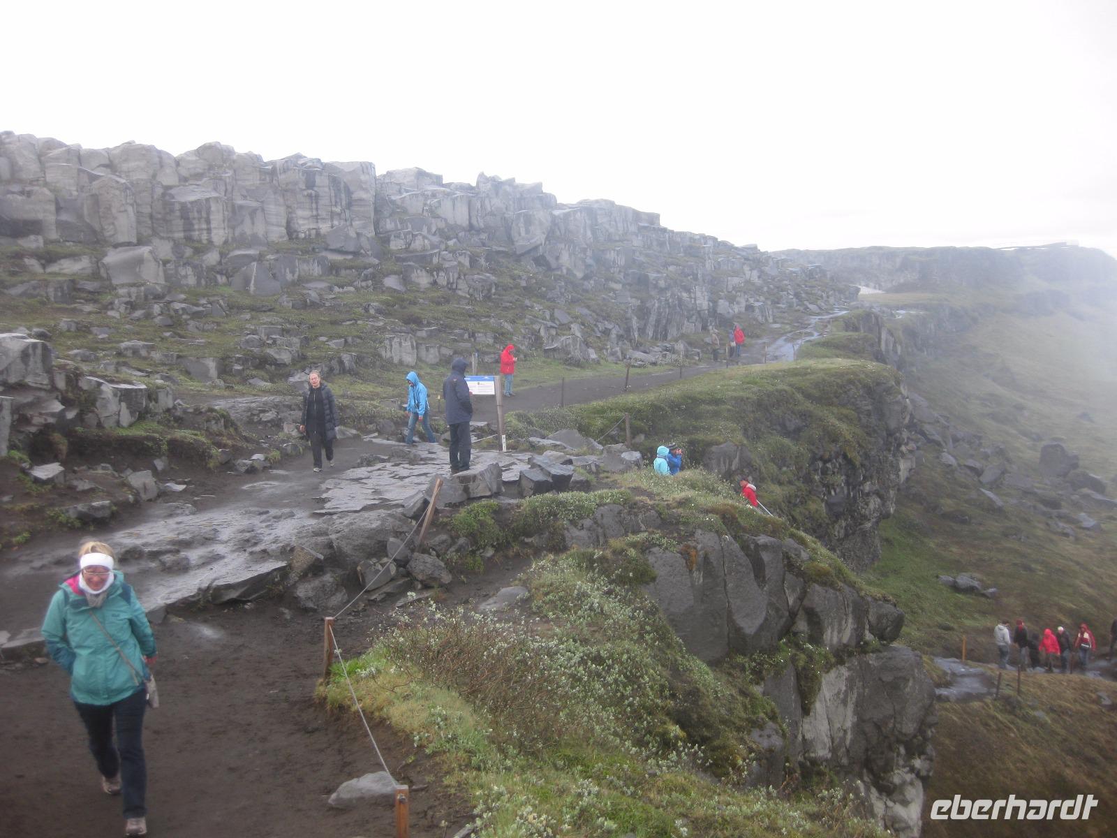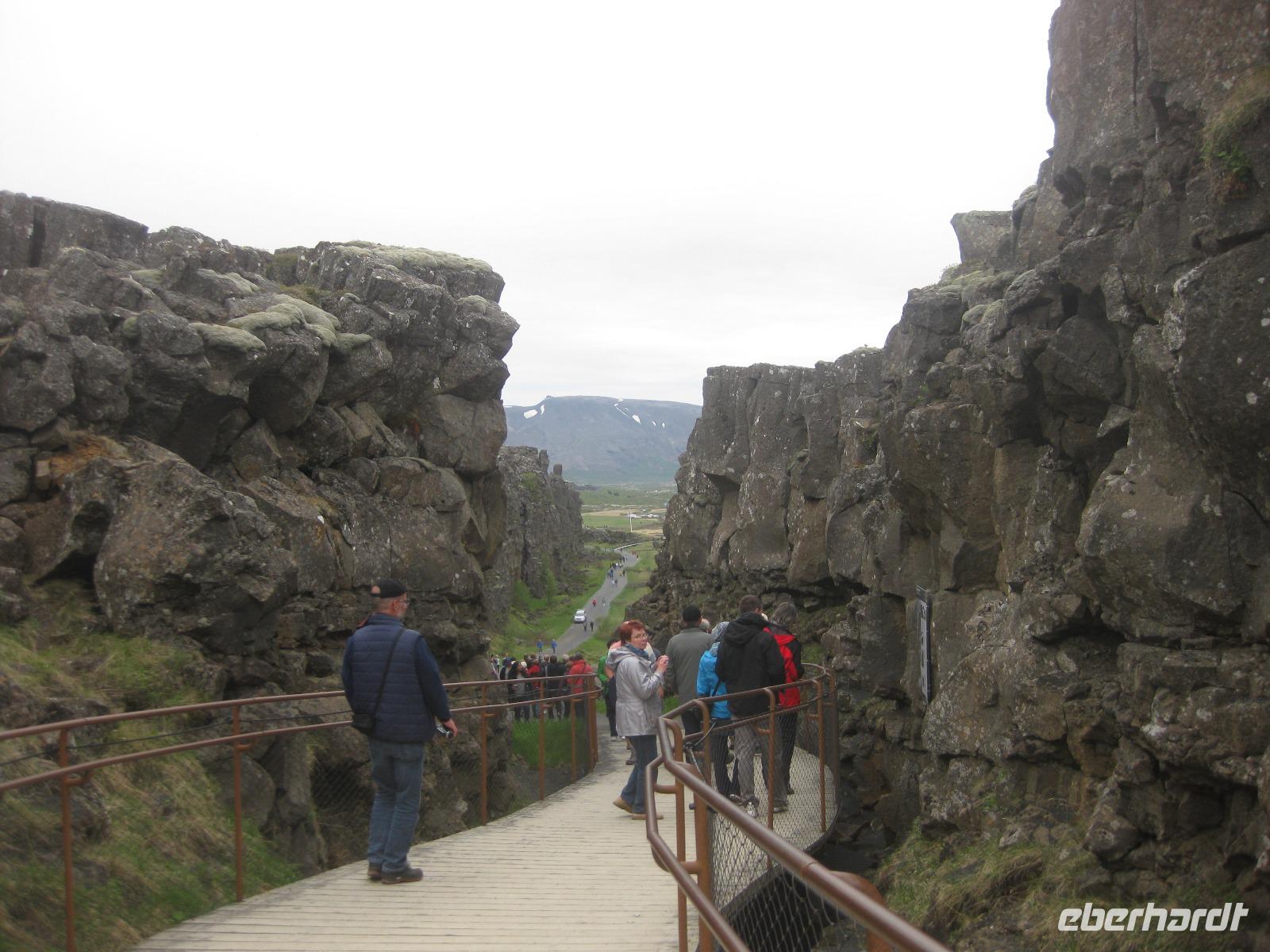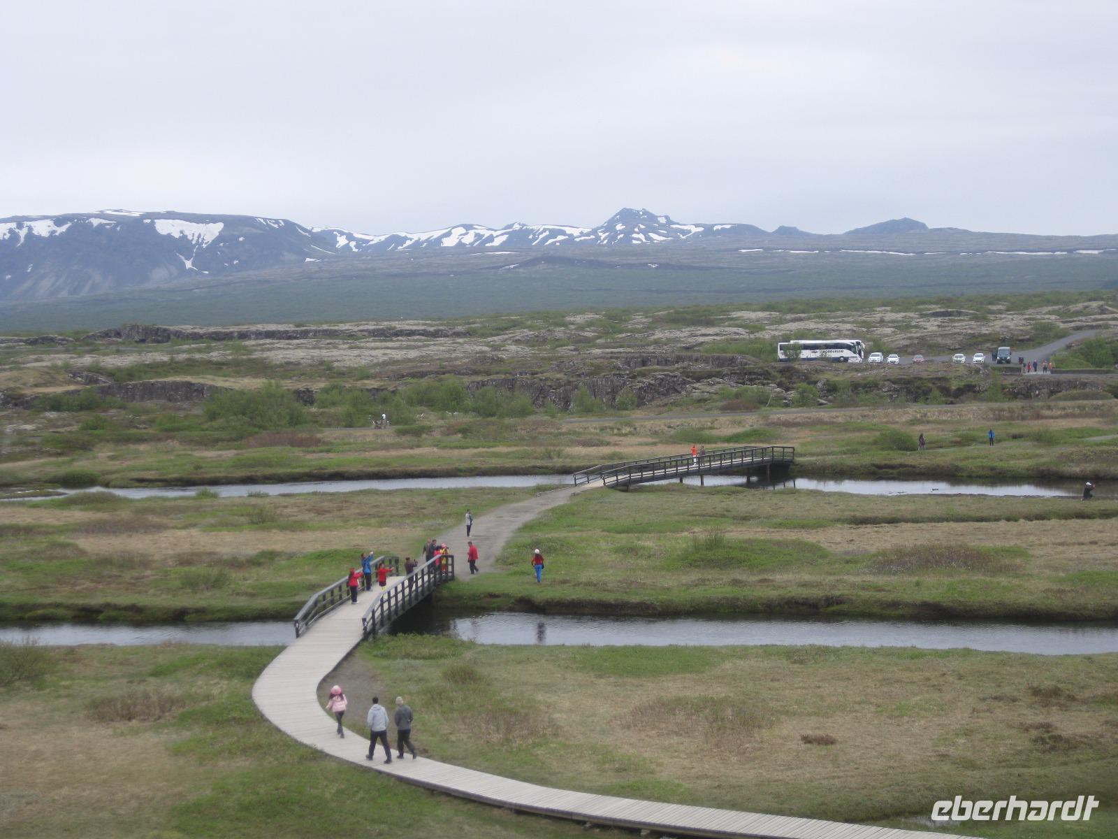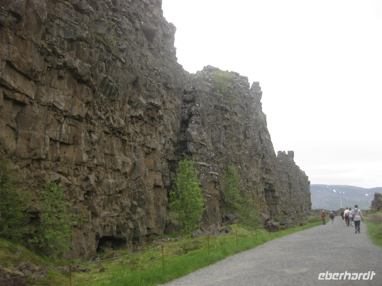 Aber im Laufe der Jahre sind die geotektonischen Platten schon einige Kilometer auseinander gerückt. Historisch ist der Nationalpark von großer Bedeutung, weil hier im Jahr 930 das erste demokratische Parlament der Welt ausgerufen wurde. Hier trat das Althing, das Parlament der Wikingerzeit, zusammen. Wir können genau an diesem Ort stehen. Und Berglind erzählt uns sehr anschaulich von den Ereignissen der damaligen Zeit. Heute begeht das moderne Island an diesem bedeutenden historischen Ort wichtige Ereignisse und Gedenktage.