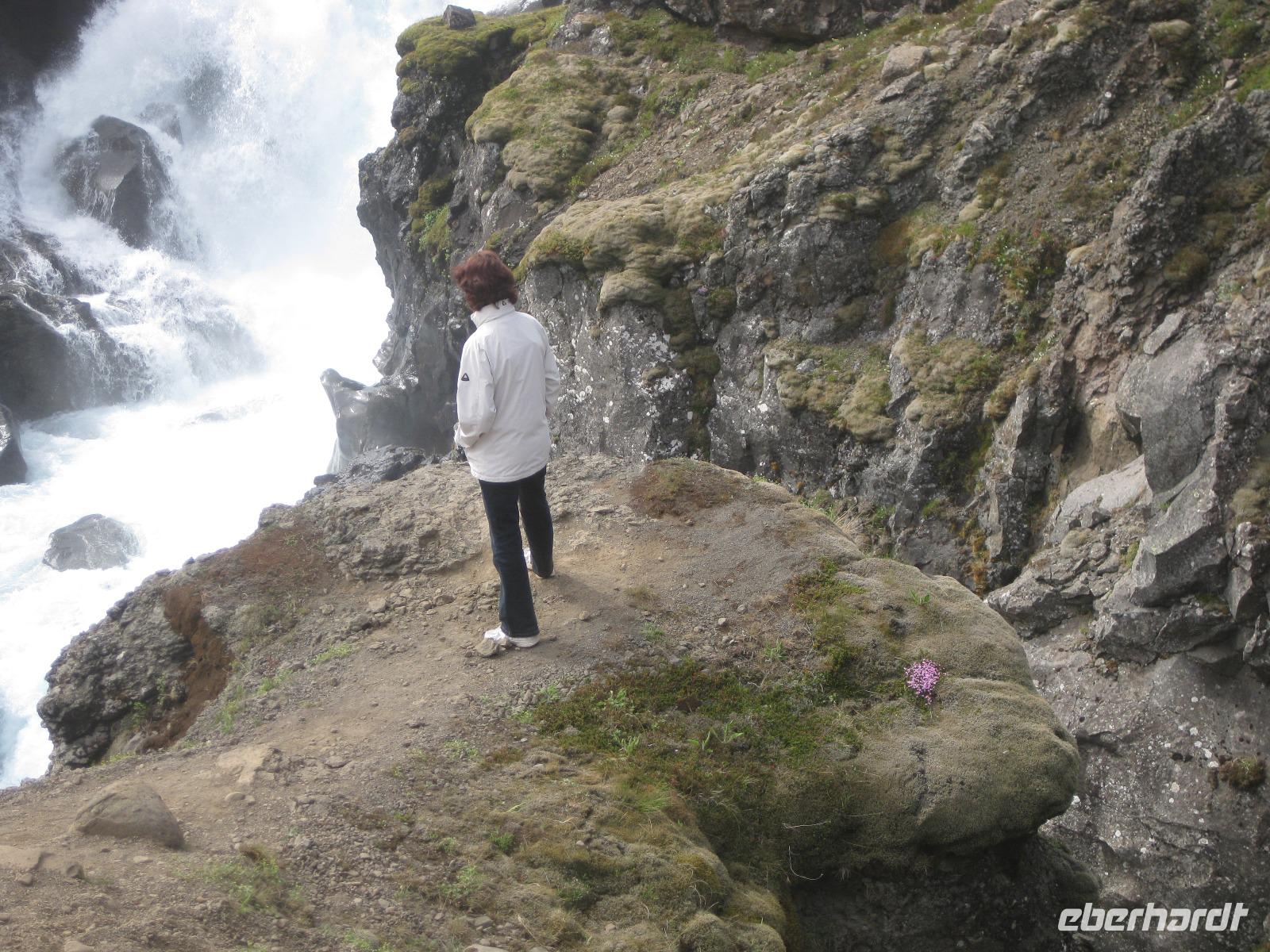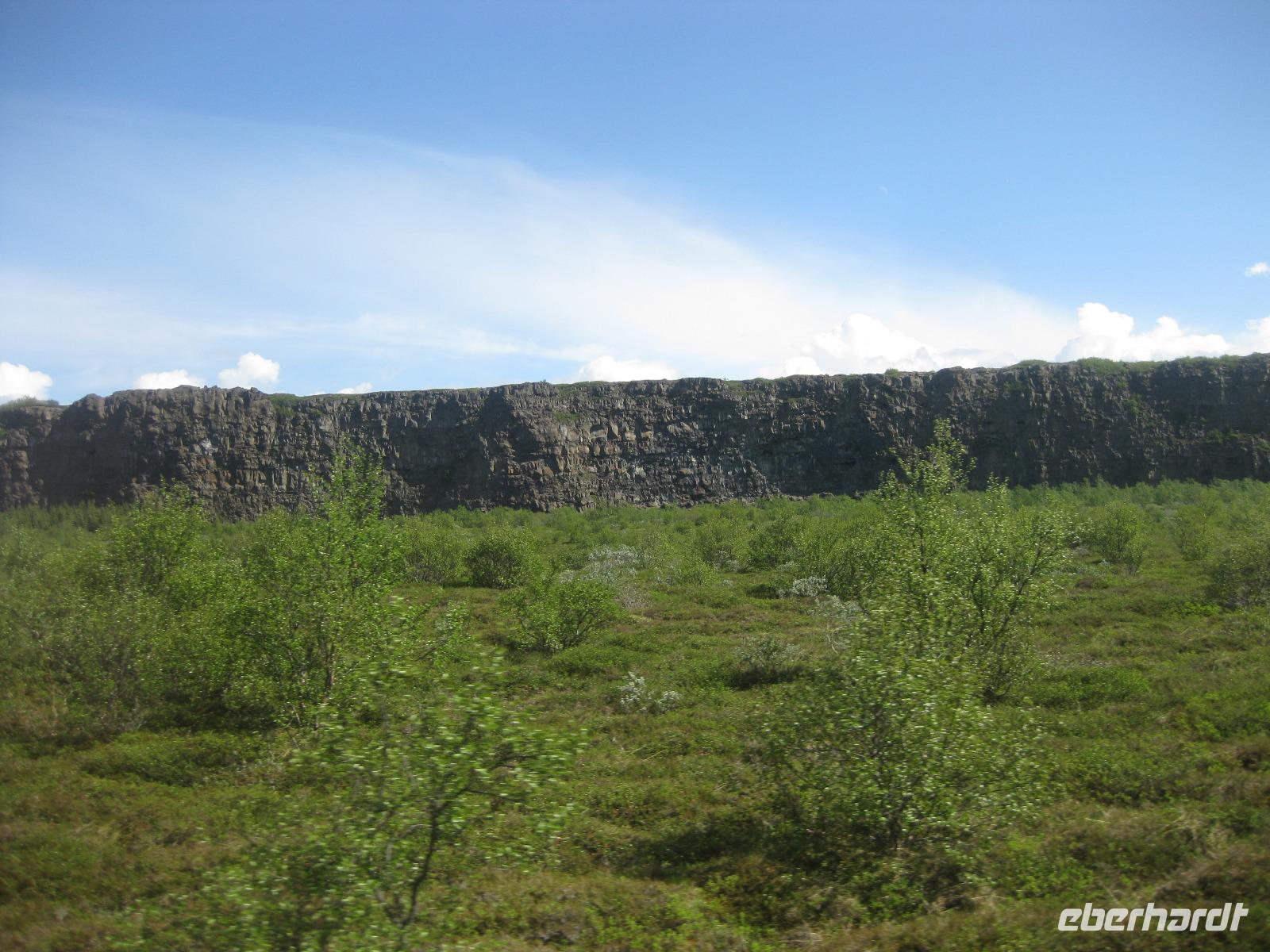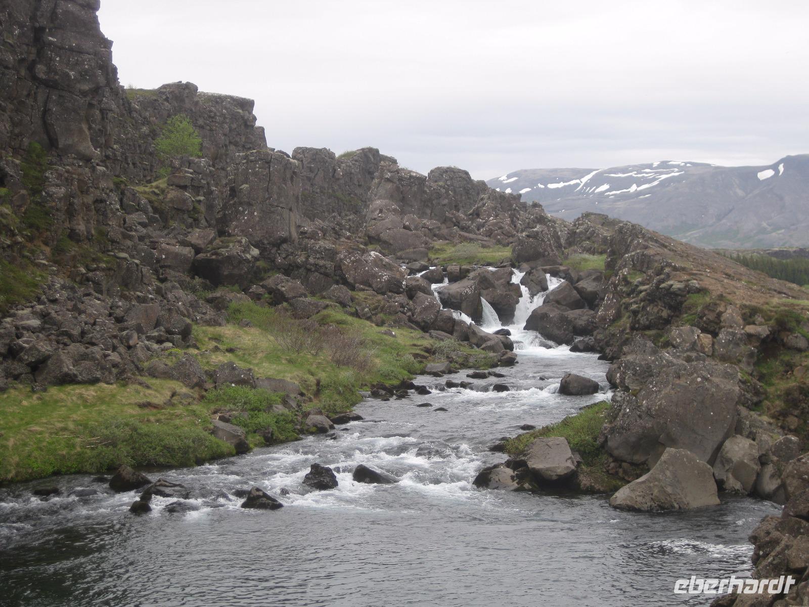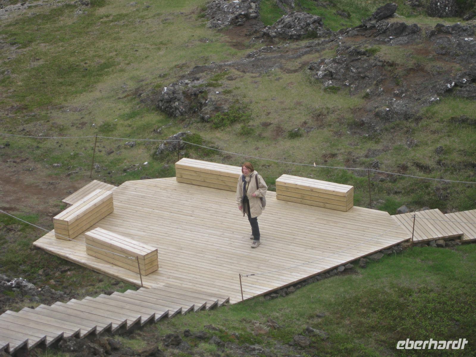 Aber im Laufe der Jahre sind die geotektonischen Platten schon einige Kilometer auseinander gerückt. Historisch ist der Nationalpark von großer Bedeutung, weil hier im Jahr 930 das erste demokratische Parlament der Welt ausgerufen wurde. Hier trat das Althing, das Parlament der Wikingerzeit, zusammen. Wir können genau an diesem Ort stehen. Und Berglind erzählt uns sehr anschaulich von den Ereignissen der damaligen Zeit. Heute begeht das moderne Island an diesem bedeutenden historischen Ort wichtige Ereignisse und Gedenktage.