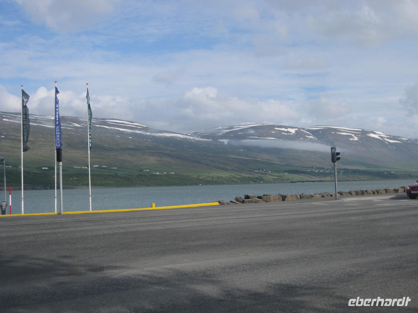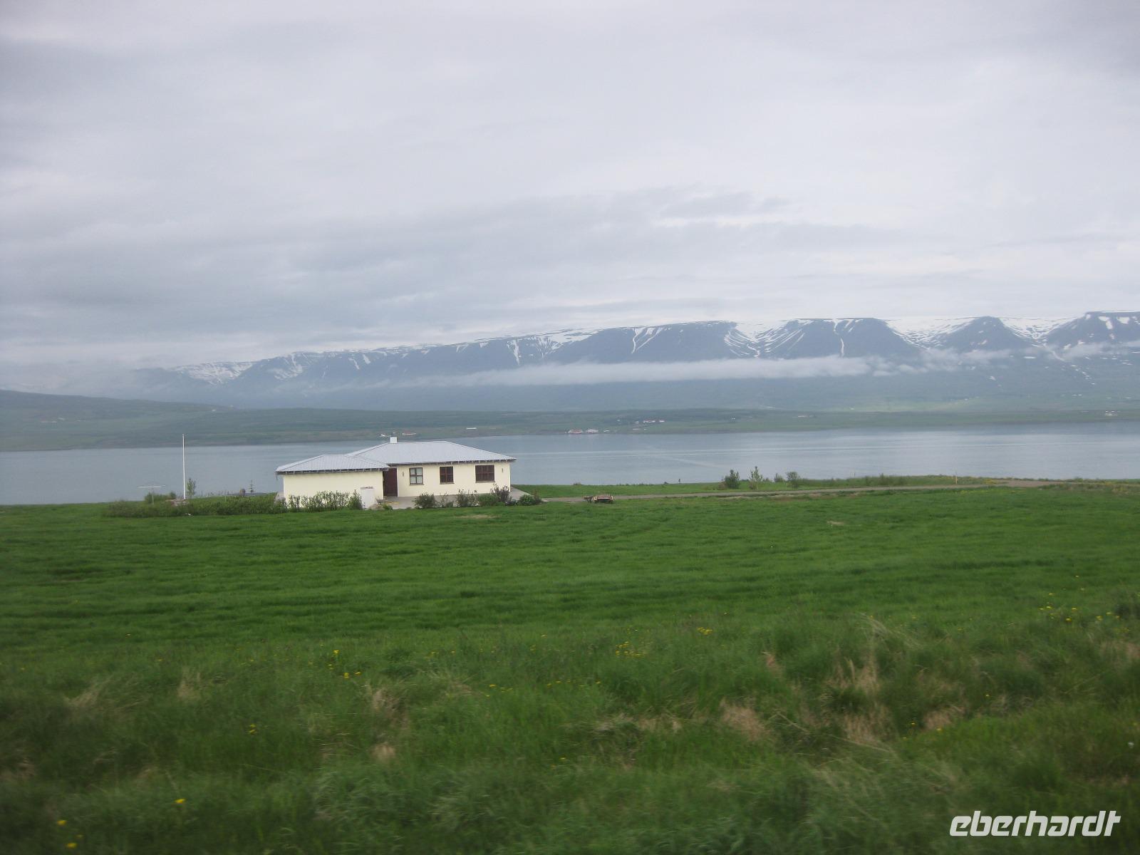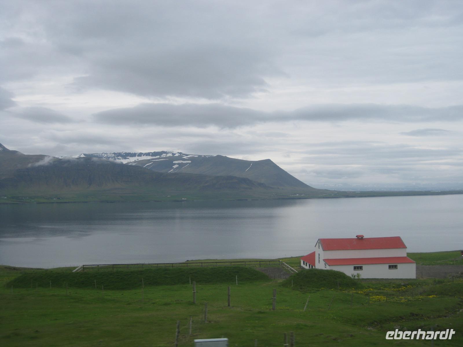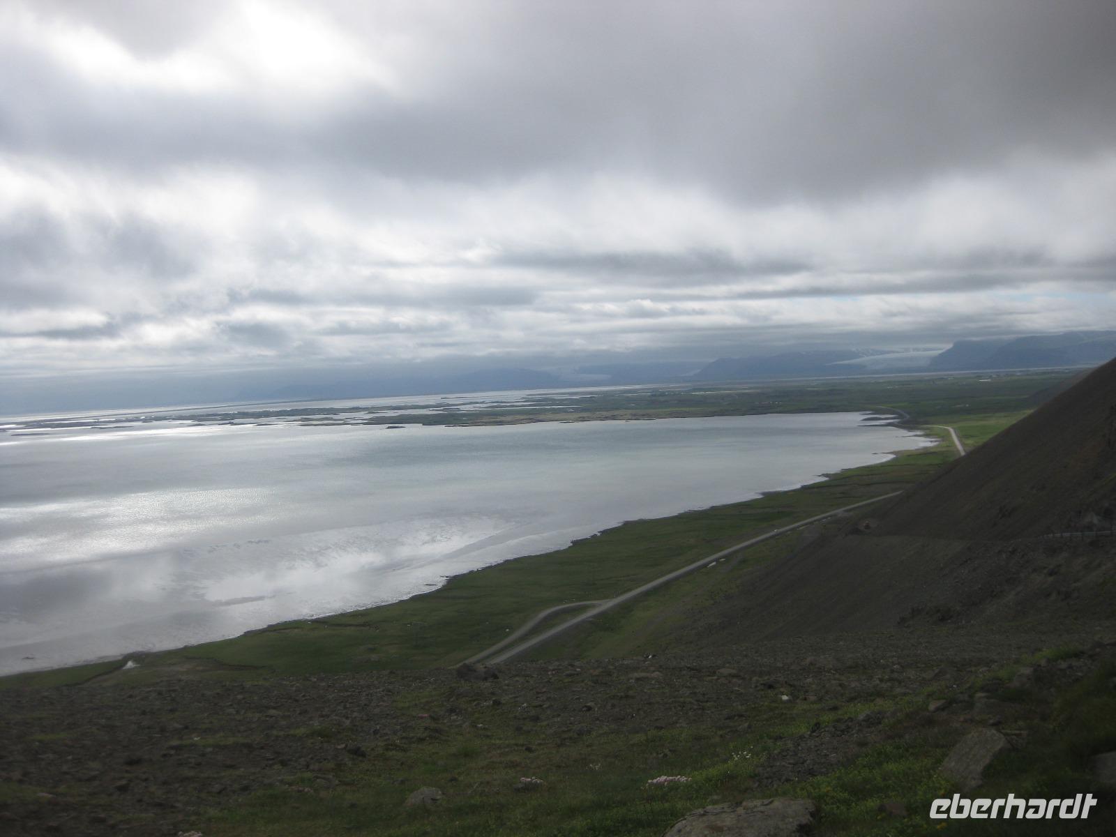 Heute haben wir eine längere Strecke zu fahren. Unser Tagesziel befindet sich ganz im Osten von Island. Und unterwegs gibt es wieder viel Interessantes zu erleben. Leider sieht es draußen erst einmal nicht so gut aus. Die Wolken hängen tief im Eyjafjördur und es regnet sogar ein wenig. Aber wir lassen uns unsere gute Laune nicht verderben, es wird schon unterwegs wieder besser werden.