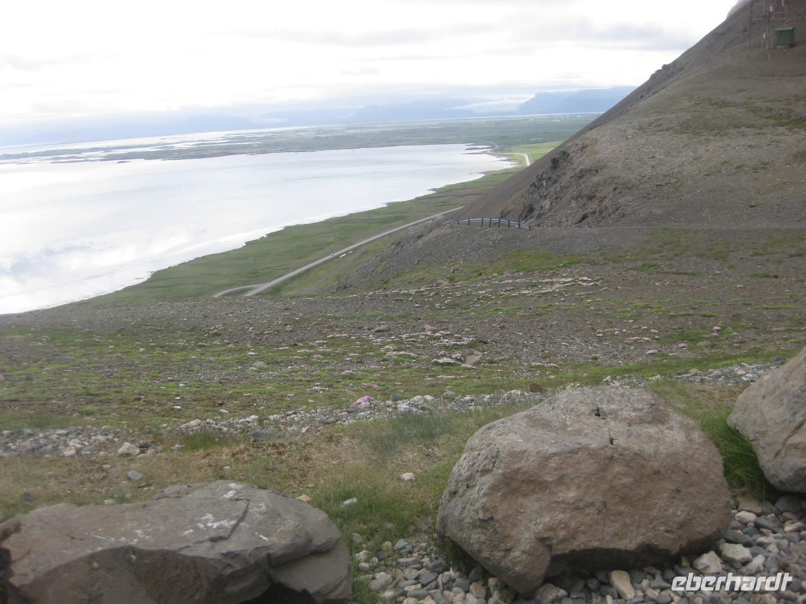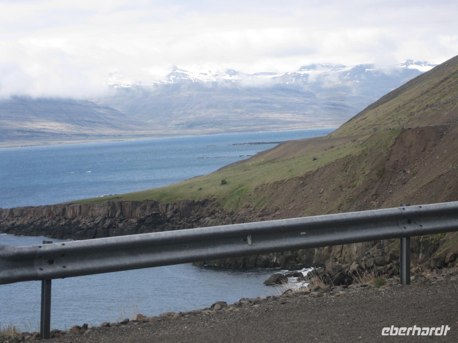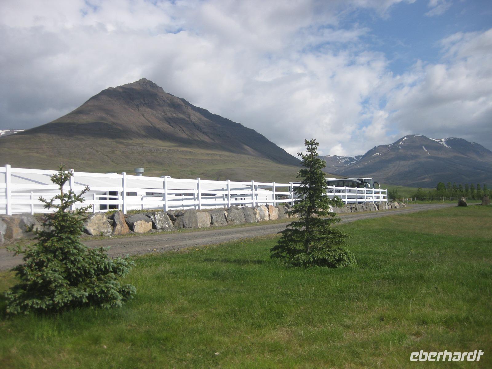 Heute haben wir eine längere Strecke zu fahren. Unser Tagesziel befindet sich ganz im Osten von Island. Und unterwegs gibt es wieder viel Interessantes zu erleben. Leider sieht es draußen erst einmal nicht so gut aus. Die Wolken hängen tief im Eyjafjördur und es regnet sogar ein wenig. Aber wir lassen uns unsere gute Laune nicht verderben, es wird schon unterwegs wieder besser werden.