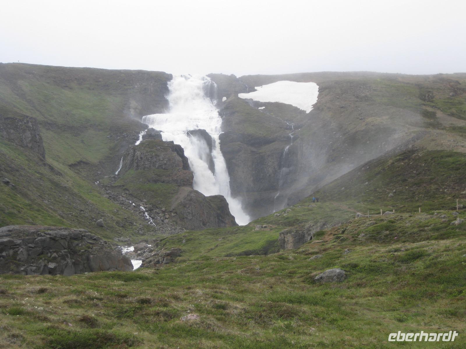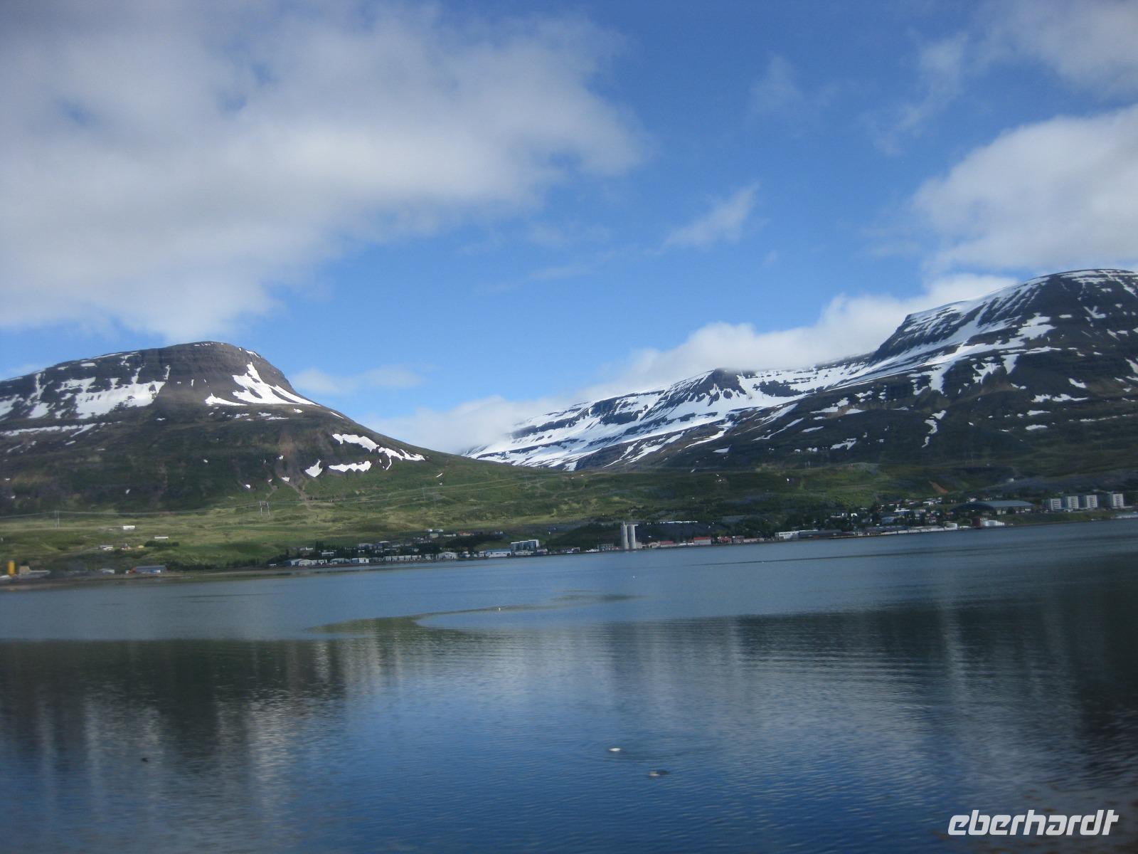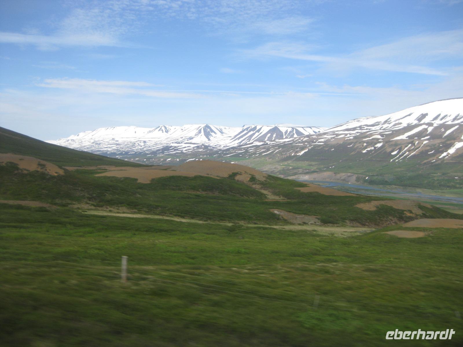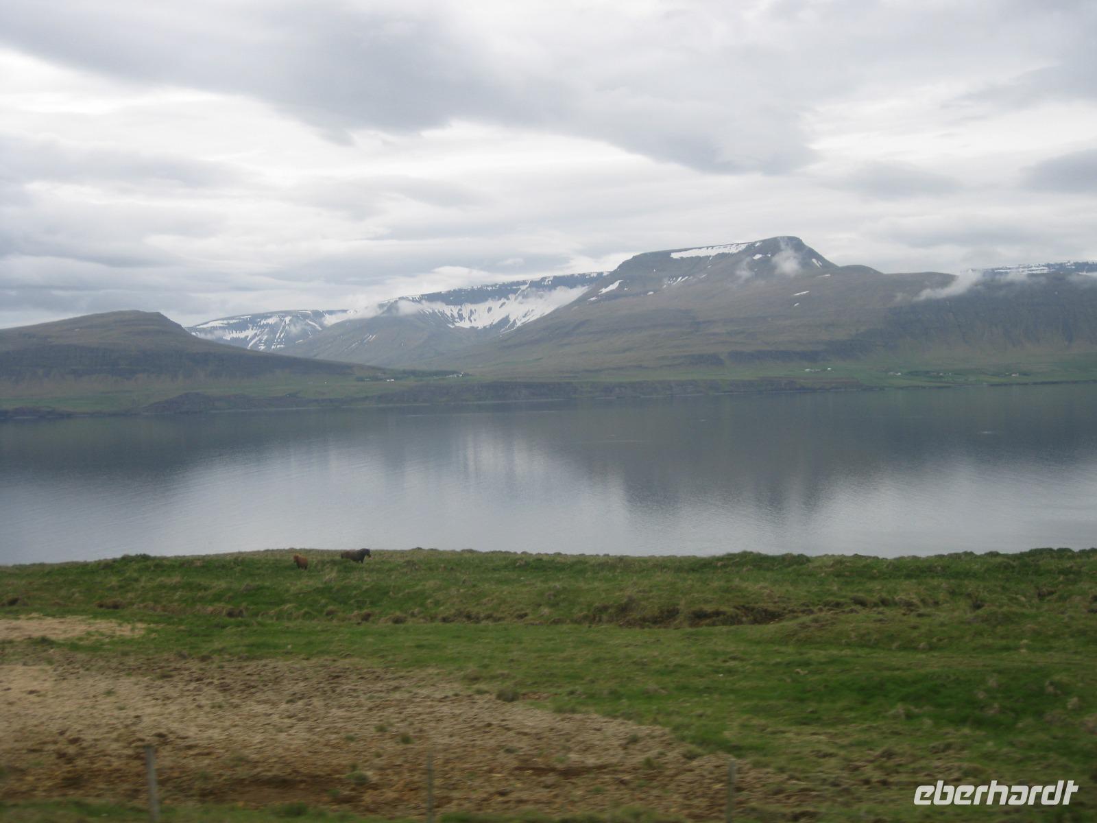 Heute haben wir eine längere Strecke zu fahren. Unser Tagesziel befindet sich ganz im Osten von Island. Und unterwegs gibt es wieder viel Interessantes zu erleben. Leider sieht es draußen erst einmal nicht so gut aus. Die Wolken hängen tief im Eyjafjördur und es regnet sogar ein wenig. Aber wir lassen uns unsere gute Laune nicht verderben, es wird schon unterwegs wieder besser werden.