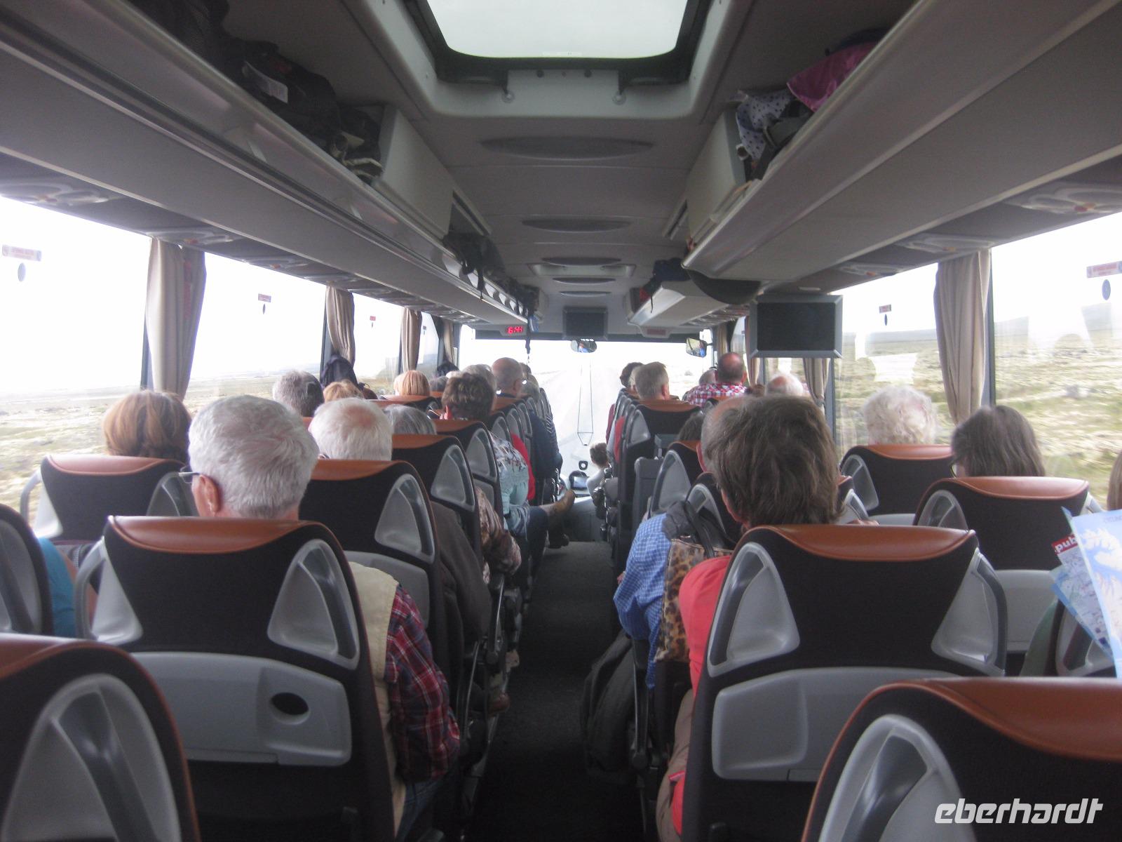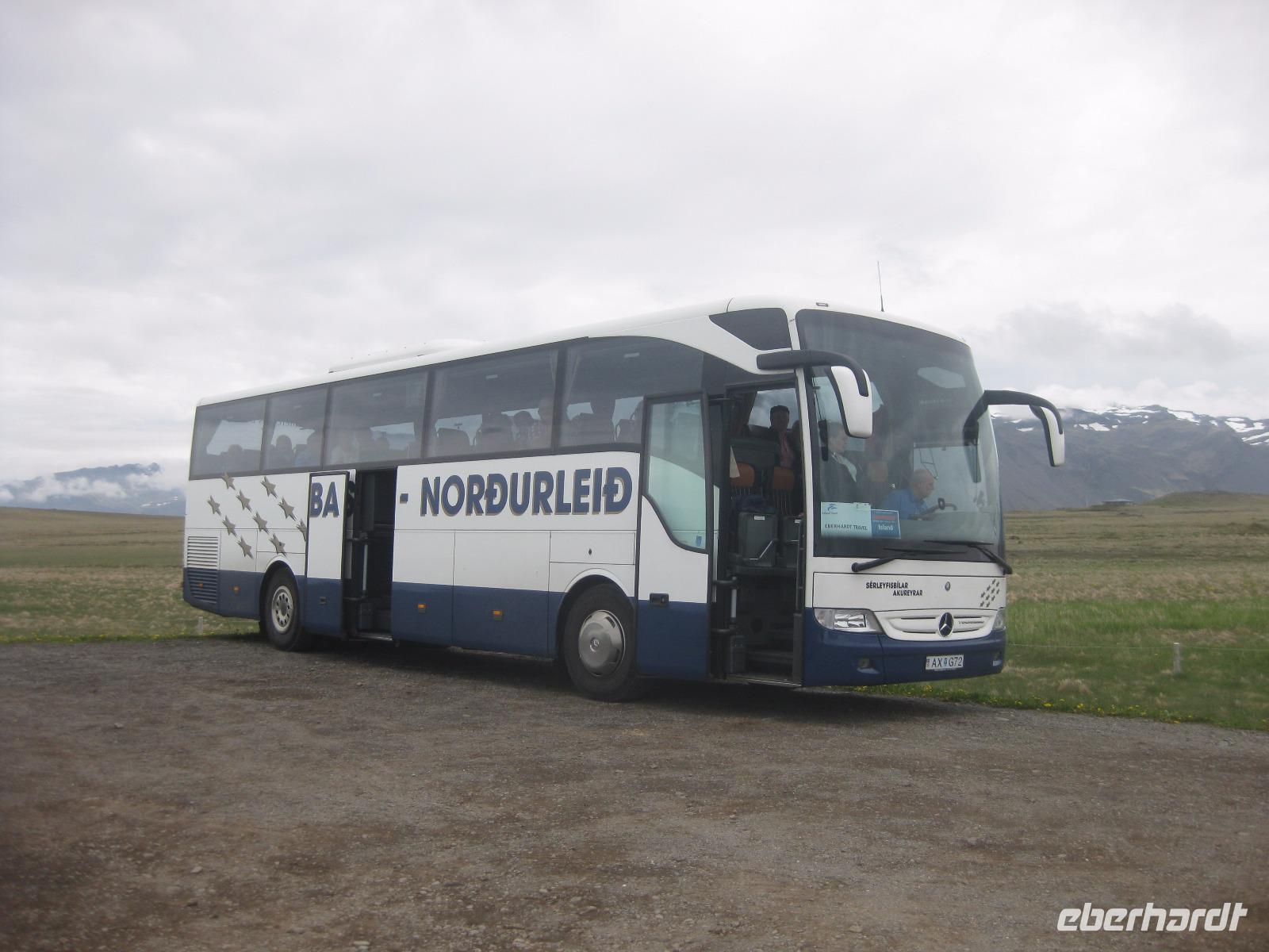 Heute heißt es erst einmal Abschied von Reykjavik nehmen. Leider zeigt sich das Wetter nicht von seiner besten Seite. Der Himmel ist mit dunklen Wolken verhangen, aber es regnet nicht. Ab heute haben wir einen anderen Bus und Fahrer. Ari wird uns nun die ganze Runde um die Insel fahren. Berglind ist auch da und schon kann es losgehen.
