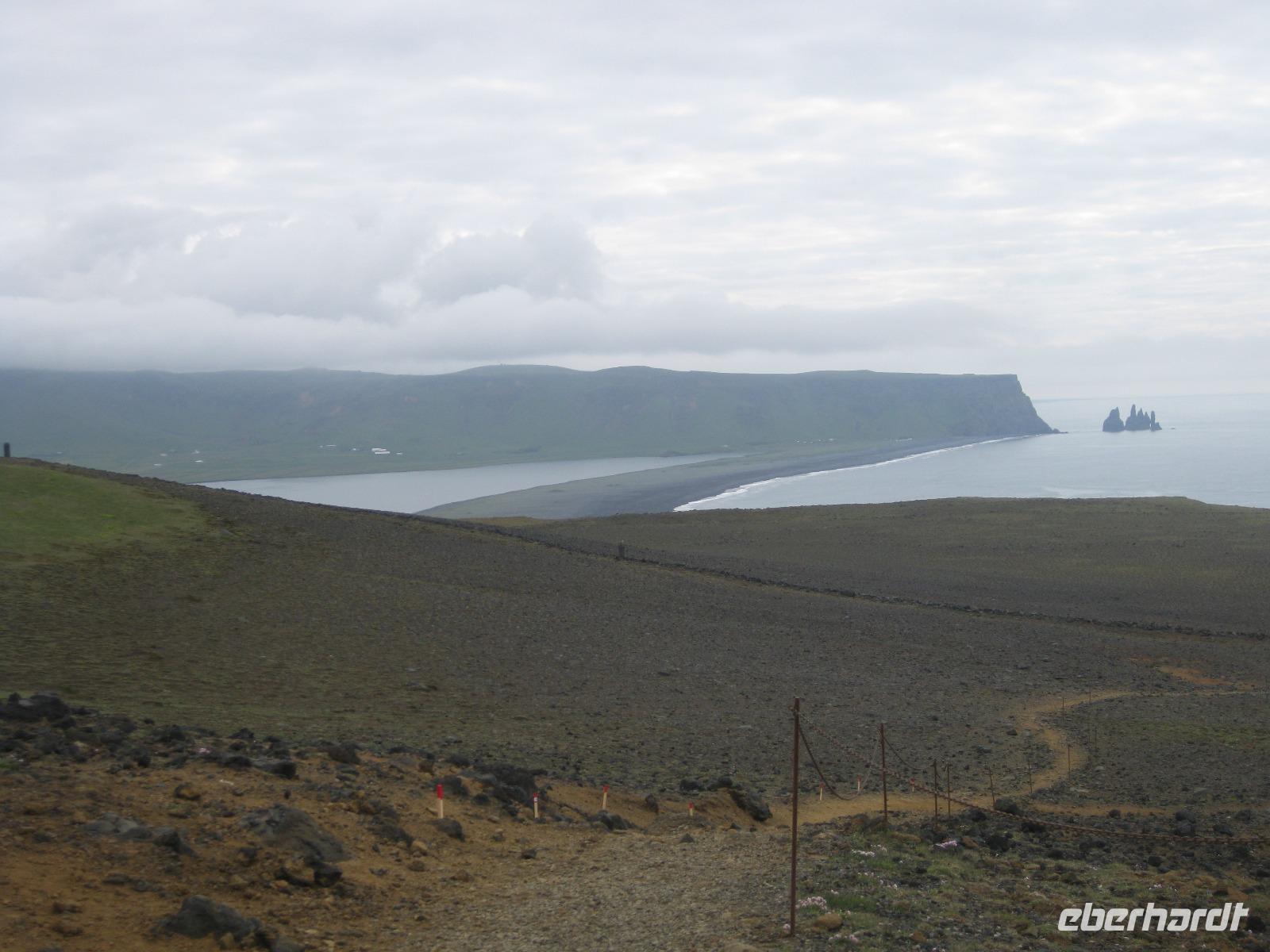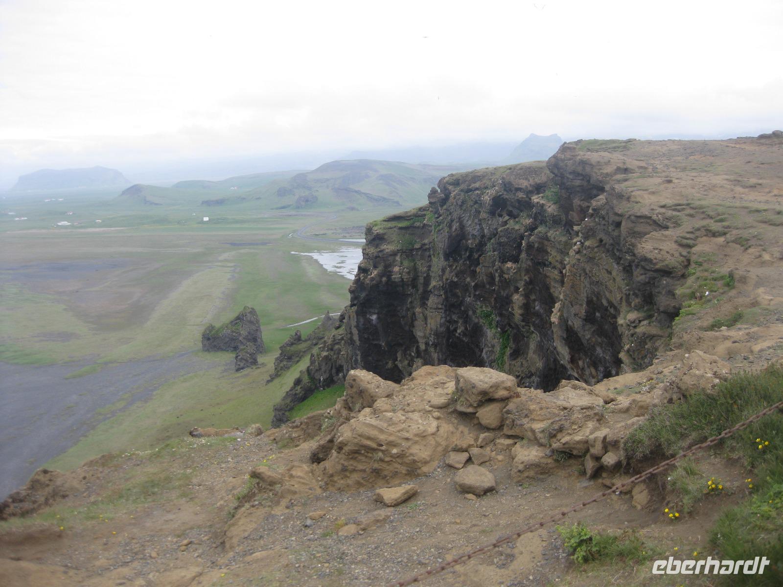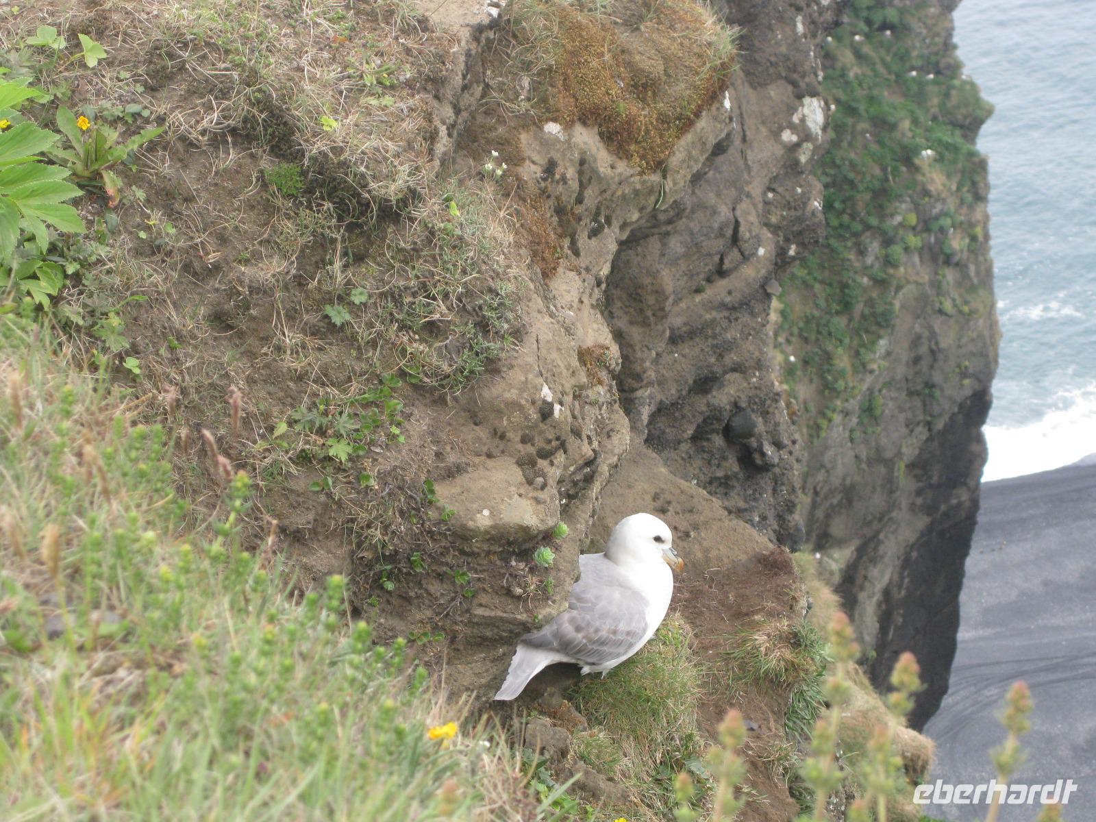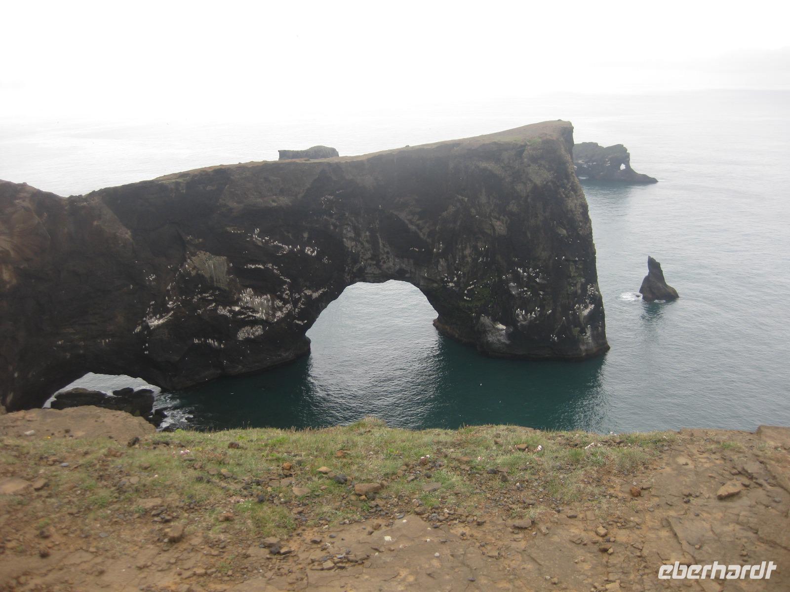 Heute ist nun schon der vorletzte Tag unserer Reise. Wie schnell doch die Zeit vergeht. Nach dem Frühstück starten wir zur letzten Etappe unserer Rundreise. Unser erstes Ziel am heutigen Tag ist die südlichste Landspitze Islands "Durholaey", das Südkap. Von dieser Felsklippe aus hat man bei gutem Wetter einen grandiosen Blick auf den Gletscher Myrdal mit dem Vulkan Katla im Inneren und auf den Vulkan Eyjafjallajökull, der im Jahr 2010 die Welt in Atem hielt. Leider haben sich die Gletscher heute in den Wolken versteckt. Und von "Durholaey" aus bietet sich auch ein faszinierender Blick auf das Felsentor "Tönni" und beiderseits auf die schwarze Sanderküste. Außerdem wird die Felsenklippe von unzähligen Seevögeln bewohnt, unter anderem auch von den Papageientauchern. Heute haben sie sich leider versteckt, sie zeigen sich uns nicht.