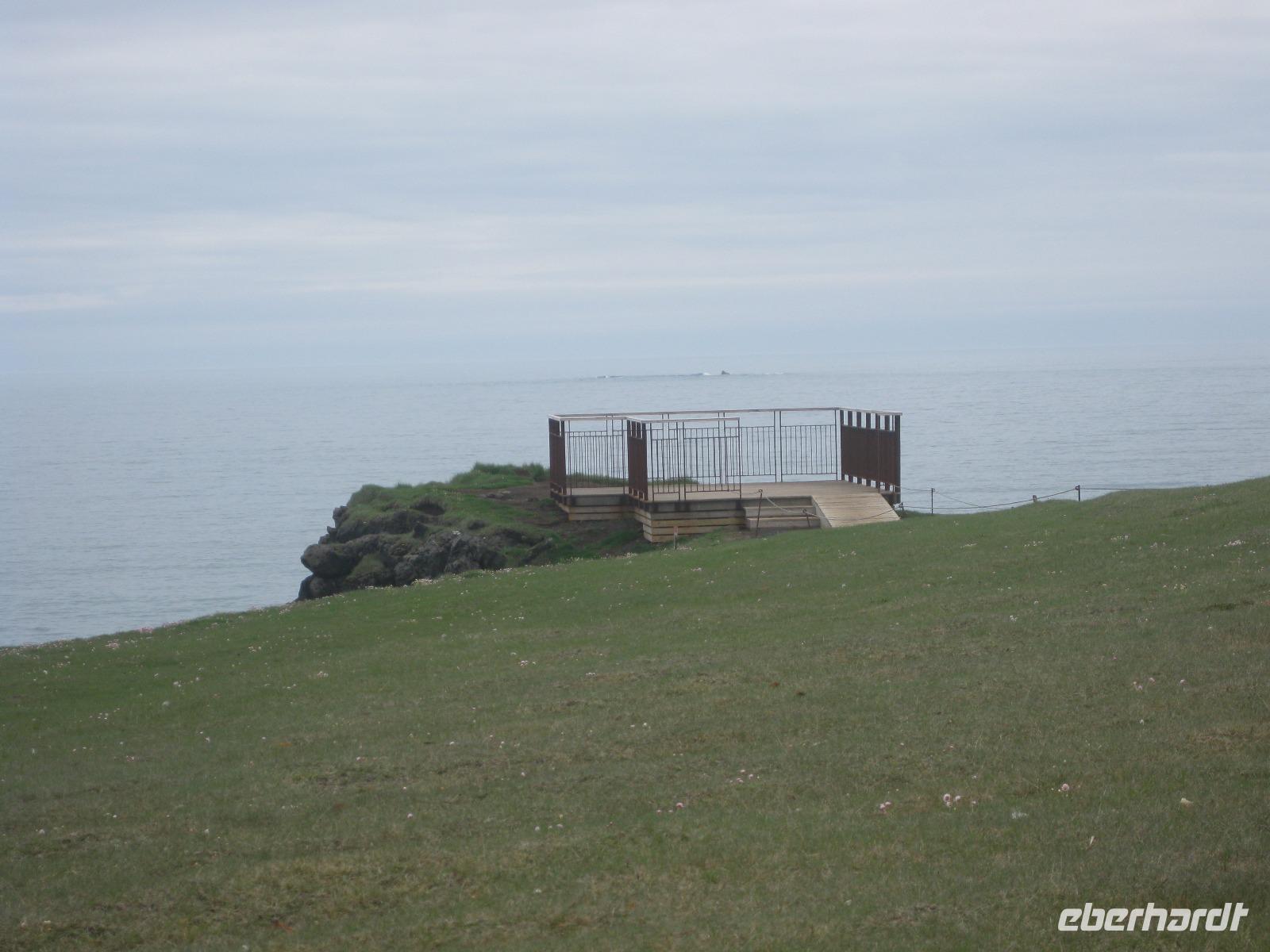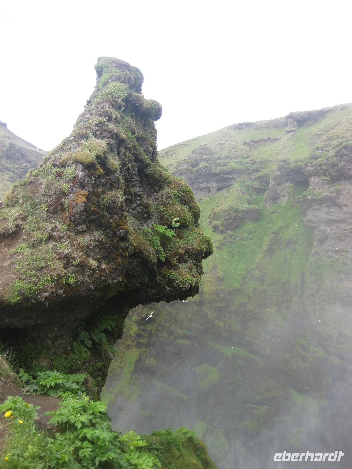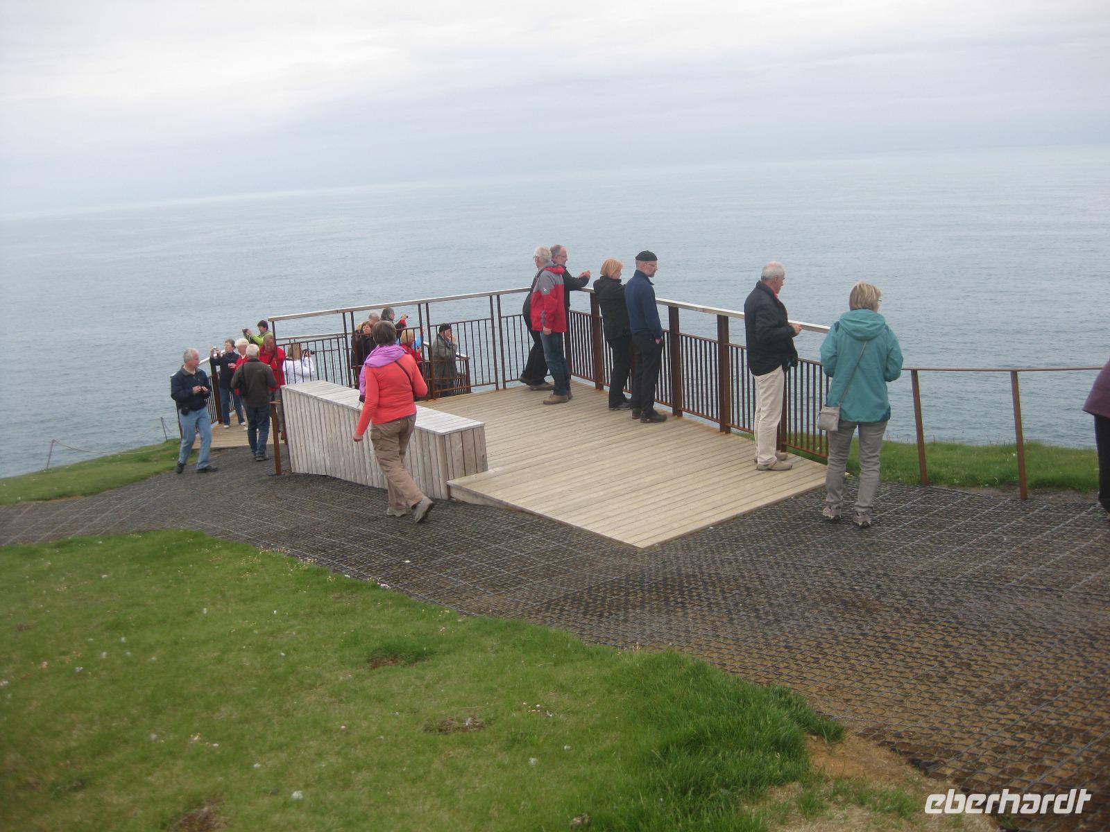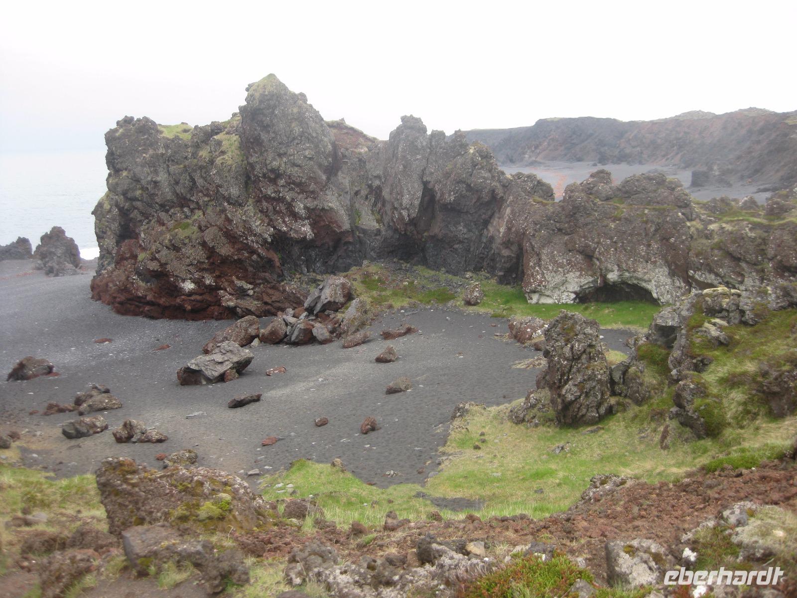 Heute ist nun schon der vorletzte Tag unserer Reise. Wie schnell doch die Zeit vergeht. Nach dem Frühstück starten wir zur letzten Etappe unserer Rundreise. Unser erstes Ziel am heutigen Tag ist die südlichste Landspitze Islands "Durholaey", das Südkap. Von dieser Felsklippe aus hat man bei gutem Wetter einen grandiosen Blick auf den Gletscher Myrdal mit dem Vulkan Katla im Inneren und auf den Vulkan Eyjafjallajökull, der im Jahr 2010 die Welt in Atem hielt. Leider haben sich die Gletscher heute in den Wolken versteckt. Und von "Durholaey" aus bietet sich auch ein faszinierender Blick auf das Felsentor "Tönni" und beiderseits auf die schwarze Sanderküste. Außerdem wird die Felsenklippe von unzähligen Seevögeln bewohnt, unter anderem auch von den Papageientauchern. Heute haben sie sich leider versteckt, sie zeigen sich uns nicht.